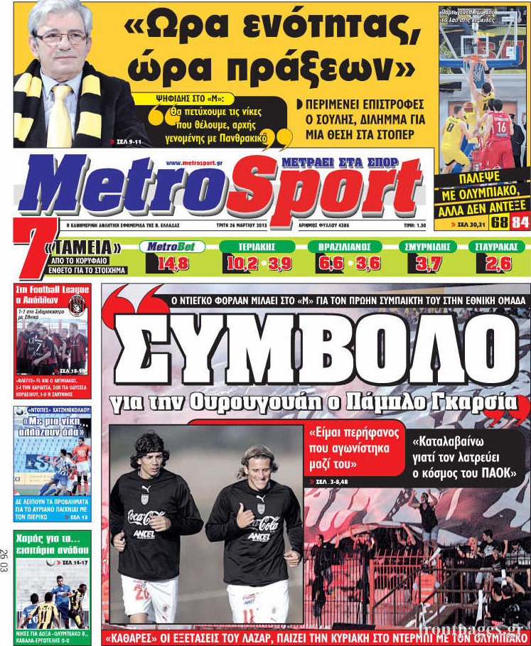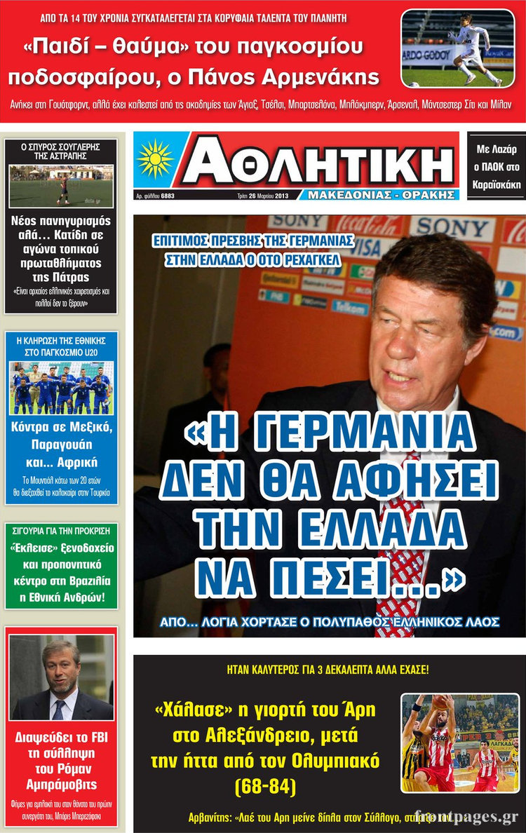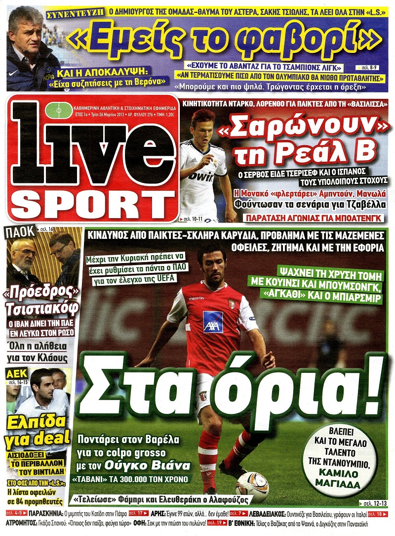 Οι αθλητικές εφημερίδες Enikos Newsroom 08:54, Τρίτη 26 Μαρτίου 2013 Media Οι αθλητικές εφημερίδες ΑΘΛΗΤΙΚΕΣ ΕΦΗΜΕΡΙΔΕΣ ΕΦΗΜΕΡΙΔΕΣ ΠΡΩΤΟΣΕΛΙΔΑ Μοιράσου το: σχολίασε κι εσύ (0 σχόλια) Ακολουθήστε το enikos.gr στο Google News και μάθετε πρώτοι όλες τις ειδήσεις Δείτε όλες τις τελευταίες ειδήσεις από την Ελλάδα και τον Κόσμο στο enikos.gr Ειδήσεις Ροή Ειδήσεων 2 ώρες πριν Ρομπ και Μισέλ Ράινερ: Φωτογραφίες από τη στιγμή που οι αρχές συλλαμβάνουν τον γιο τους – Ο «μεγάλος καβγάς» πριν από την τραγωδία 59 λεπτά πριν Προϋπολογισμός 2026: Σήμερα η ομιλία Μητσοτάκη στη Βουλή – Μέτρα για νέους, μεσαία τάξη και στεγαστικό 2 ώρες πριν Χριστούγεννα: Τι περιμένουν οι έμποροι για να «ζεσταθεί» η αγορά 2 ώρες πριν Κρίσιμη ημέρα για τους αγρότες: Σήμερα θα δώσουν την απάντησή τους στην κυβέρνηση μετά το νέο κάλεσμα για διάλογο 2 ώρες πριν Οι Τούρκοι θέλουν να παρακολουθούν την Αθήνα από την Σμύρνη με Drones – Δείτε βίντεο 3 ώρες πριν Οπτική ψευδαίσθηση: Μόνο 1 στους 10 ανθρώπους θα βρει το κόκκινο αυγό σε 7 δευτερόλεπτα 3 ώρες πριν Υψηλή χοληστερίνη: Γιατρός αποκαλύπτει δύο τρόπους για να την μειώσετε χωρίς φαρμακευτική αγωγή 1 ώρα πριν Ανακαλύφθηκε περίτεχνη μαρμάρινη μπανιέρα που επαναχρησιμοποιήθηκε ως κρήνη 23 λεπτά πριν Η πεθερά της την κατηγορεί πως δεν την ταΐζει σωστά – «Δεν παραπονιέται όμως στον γιο της» 3 λεπτά πριν Tucker Genal: Αυτοκτόνησε ο διάσημος TikToker – Η συγκλονιστική ανάρτηση των αδελφών του 8 λεπτά πριν Τα μυστικά για τις μεταβιβάσεις ακινήτων – Αναλυτικός οδηγός 13 λεπτά πριν «Το θαύμα των Χριστουγέννων»: Σκύλος που εξαφανίστηκε το 2021 βρέθηκε σε καταφύγιο ζώων σε απόσταση 3.200 χιλιομέτρων – ΒΙΝΤΕΟ 18 λεπτά πριν Ευγενία Σαμαρά – Οδυσσέας Παπασπηλιόπουλος: Τίτλοι τέλους 23 λεπτά πριν Η πεθερά της την κατηγορεί πως δεν την ταΐζει σωστά – «Δεν παραπονιέται όμως στον γιο της» ENIKOS NETWORK Η Νο1 άσκηση για σμιλεμένους γλουτούς – Την κάνετε στο σπίτι και διαρκεί 1 λεπτό 54χρονη που νόμιζε ότι είχε ιγμορίτιδα έλαβε διάγνωση για σπάνιο καρκίνο – Η συγκλονιστική μαρτυρία της Φορολογικές δηλώσεις 2026: Στις 16 Μαρτίου αρχίζει η υποβολή – Νέες κατηγορίες στις προσυμπληρωμένες Χριστούγεννα: Τι περιμένουν οι έμποροι για να «ζεσταθεί» η αγορά Σύγχρονος Νοστράδαμος: Προειδοποιεί για «μεγάλο γεγονός» τους επόμενους μήνες που θα συγκλονίσει τη Βρετανία και τον κόσμο Τεστ παρατηρητικότητας: Μπορείτε να βρείτε τις 3 διαφορές στις εικόνες με έναν πιγκουίνο σε 14 δευτερόλεπτα περισσότερα 08:00 , Τρίτη 16 Δεκεμβρίου 2025 Την Κυριακή με τη Realnews: Δωροεπιταγή 10€ Δωροεπιταγή αξίας 10€ για αγορές άνω των 60€ από τα πολυκαταστήματα FactoryOutlet H προσφορά ι... 05:48 , Τρίτη 16 Δεκεμβρίου 2025 Οι οικονομικές εφημερίδες 16/12/2025 Διαβάστε τα πρωτοσέλιδα από τις οικονομικές εφημερίδες, σήμερα 16/12/2025. 05:43 , Τρίτη 16 Δεκεμβρίου 2025 Οι αθλητικές εφημερίδες 16/12/2025 Διαβάστε τα πρωτοσέλιδα από τις αθλητικές εφημερίδες, σήμερα 16/12/2025. 05:38 , Τρίτη 16 Δεκεμβρίου 2025 Οι πολιτικές εφημερίδες 16/12/2025 Διαβάστε τα πρωτοσέλιδα από τις πολιτικές εφημερίδες, σήμερα 16/12/2025. ΤΕΛΕΥΤΑΙΕΣ ΕΙΔΗΣΕΙΣ 8 λεπτά πριν Τα μυστικά για τις μεταβιβάσεις ακινήτων –... 13 λεπτά πριν «Το θαύμα των Χριστουγέννων»: Σκύλος που εξαφανίστηκε... 18 λεπτά πριν Ευγενία Σαμαρά – Οδυσσέας Παπασπηλιόπουλος: Τίτλοι... 23 λεπτά πριν Η πεθερά της την κατηγορεί πως δεν την ταΐζει σωστά... 27 λεπτά πριν Δολοφονία στο Νέο Ψυχικό: «Δεν είχαμε κόντρα με τον... 32 λεπτά πριν Σίδνεϊ: Βίντεο με ηλικιωμένο ζευγά