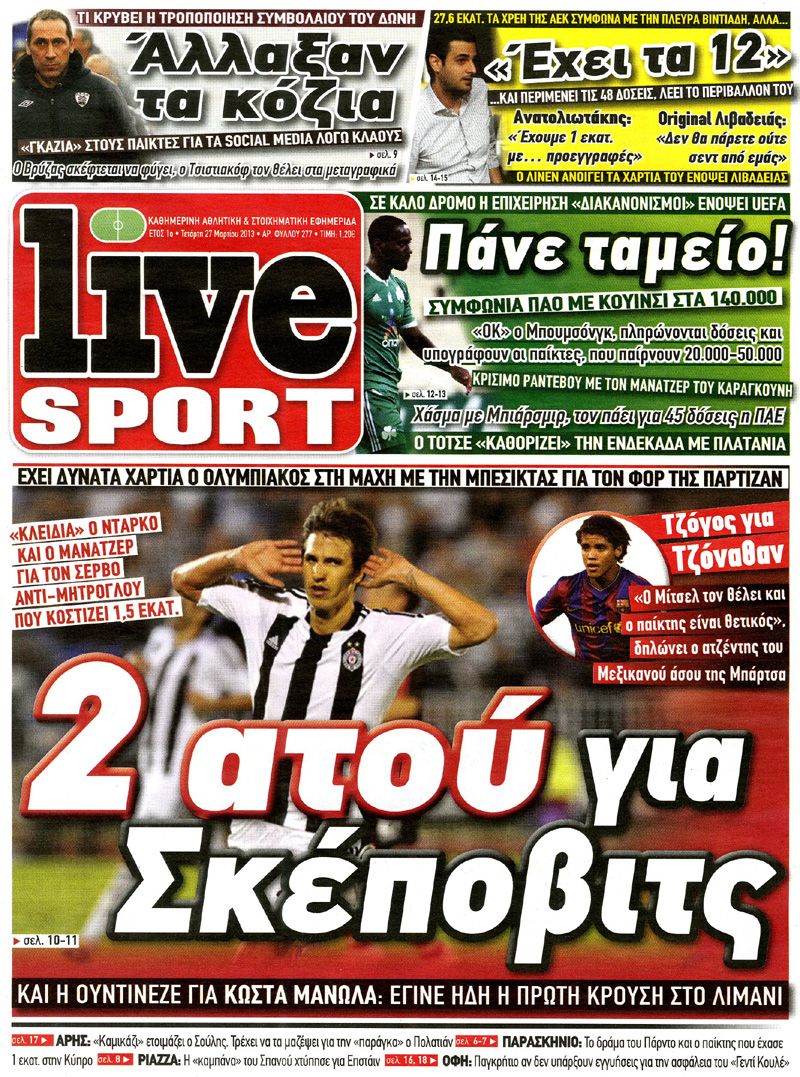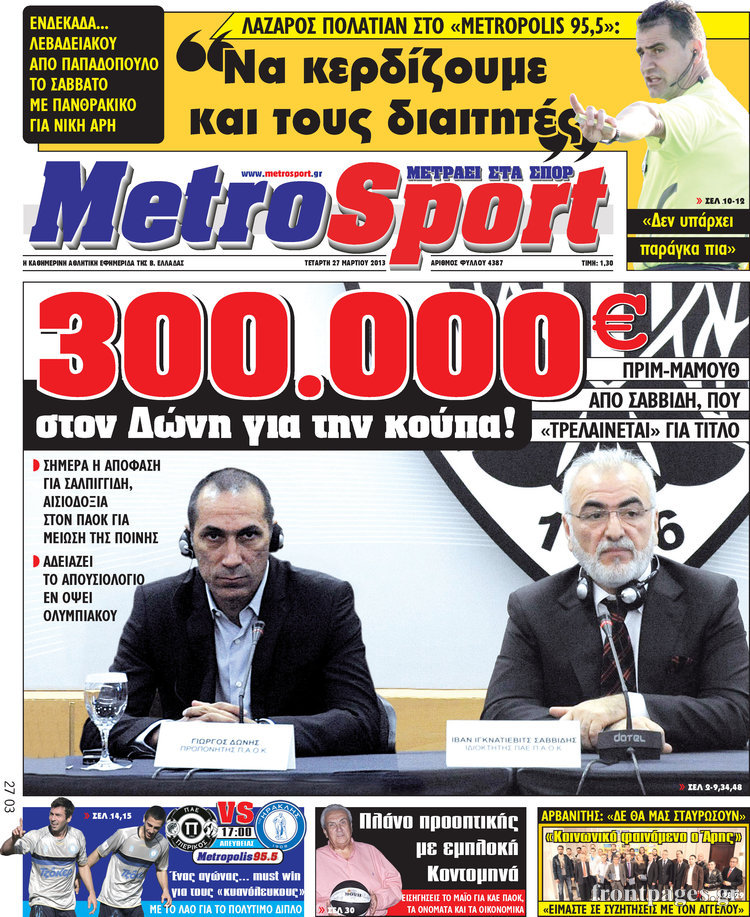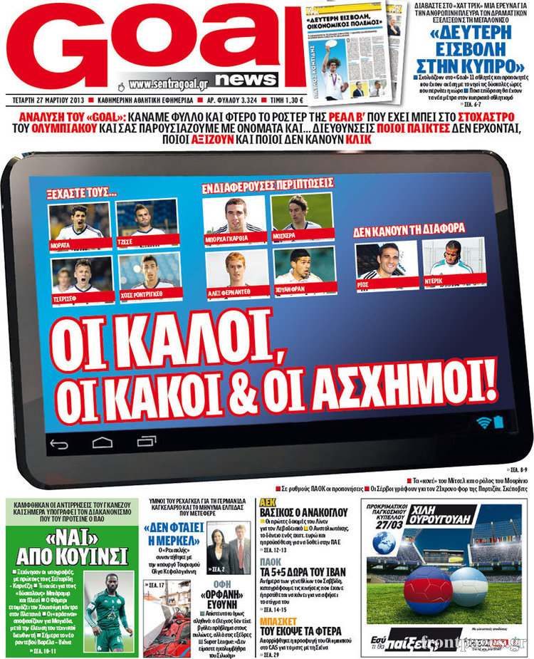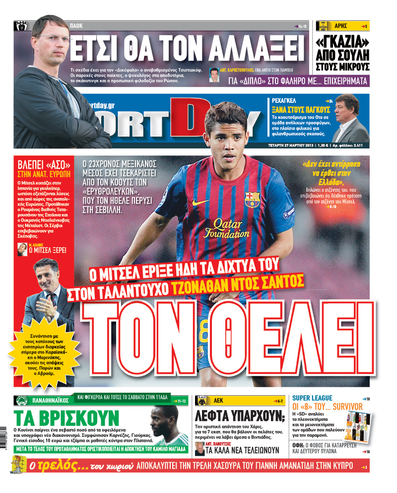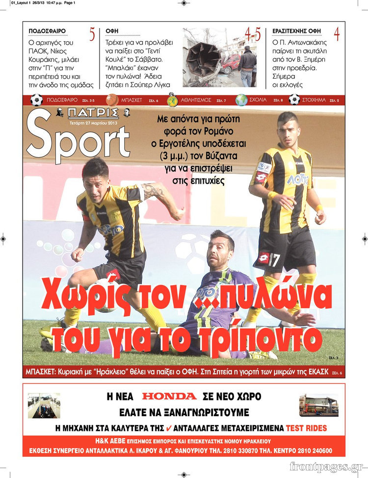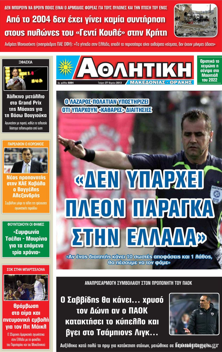 Οι αθλητικές εφημερίδες Enikos Newsroom 08:44, Τετάρτη 27 Μαρτίου 2013 Media Οι αθλητικές εφημερίδες ΑΘΛΗΤΙΚΕΣ ΕΦΗΜΕΡΙΔΕΣ ΕΦΗΜΕΡΙΔΕΣ ΠΡΩΤΟΣΕΛΙΔΑ Μοιράσου το: σχολίασε κι εσύ (0 σχόλια) Ακολουθήστε το enikos.gr στο Google News και μάθετε πρώτοι όλες τις ειδήσεις Δείτε όλες τις τελευταίες ειδήσεις από την Ελλάδα και τον Κόσμο στο enikos.gr Ειδήσεις Ροή Ειδήσεων 3 ώρες πριν Εκτός ευρωομάδας ΣΥΡΙΖΑ ο Νίκος Παππάς μετά την επίθεση στον δημοσιογράφο Νίκο Γιαννόπουλο – Η μήνυση και οι νέες δηλώσεις 4 ώρες πριν «Αγριεύουν» οι αγρότες: «Δεν συντρέχει λόγος συνάντησης με τον πρωθυπουργό» – Ώρα αποφάσεων στη σύσκεψη της Πέμπτης 4 ώρες πριν Κυψέλη: Χωρίς την οικογένειά της δίπλα της απολογήθηκε η 16χρονη – «Της είχε επιτεθεί κάποιος για να την βιάσει, φοβήθηκε και κυκλοφορούσε με μαχαίρι» 3 ώρες πριν Politico: Το πρόβλημα της Ευρώπης δεν είναι το Βέλγιο αλλά ο Ντόναλντ Τραμπ 5 ώρες πριν Αλεξανδρούπολη: Πολυοργανική ανεπάρκεια λόγω υποσιτισμού η αιτία θανάτου του 3χρονου αγοριού 3 ώρες πριν Μυστήριο με τεράστιες κυκλικές πέτρες 200 κιλών – Ανακαλύφθηκαν τυχαία κατά τη διάρκεια οδικών έργων και κανείς δεν ξέρει από πού προέρχονται 4 ώρες πριν Ύπνος: Ειδικός εξηγεί τον πραγματικό λόγο που ξυπνάτε στις 4 τα ξημερώματα – Ο ρόλος των ορμονών και του κιρκάδιου ρυθμού 5 ώρες πριν Αριθμολογία: Οι άνθρωποι που έχουν γεννηθεί αυτές τις 4 ημερομηνίες, είναι τρυφεροί και αγαπούν ανιδιοτελώς 17 ώρες πριν 20 χρόνια τα Χριστούγεννα ξεκινούν στα Public με μεγάλη ποικιλία σε δώρα! 15 λεπτά πριν Ρωσία: Ουκρανικές δυνάμεις έπληξαν πλοίο στο λιμάνι του Ροστόφ – Αναφορές για θύματα 30 λεπτά πριν Βρυξέλλες: Νυχτερινό… μπλόκο αγροτών μπροστά από το κτίριο της Ευρωπαϊκής Επιτροπής – Πάνω από 100 τρακτέρ απέκλεισαν την λεωφόρο 45 λεπτά πριν Euroleague: Απρόσμενη ήττα για την Μονακό του Βασίλη Σπανούλη – Η βαθμολογία μετά το τέλος της 16ης αγωνιστικής 1 ώρα πριν Μουντιάλ 2026: Η νέα ταξιδιωτική απαγόρευση του Ντόναλντ Τραμπ πλήττει (και) τους οπαδούς Σενεγάλης – Ακτής Ελεφαντοστού 1 ώρα πριν Κυριάκος Μητσοτάκης: Στις Βρυξέλλες για την Σύνοδο Κορυφής ΕΕ και Δυτικών Βαλκανίων – Δείτε φωτογραφίες ENIKOS NETWORK Αϋπνία: Το κόλπο που θα σας βοηθήσει να κοιμηθείτε απόψε – Είναι απλό και έχει αποτέλεσμα 2,6 εκατομμύρια πολίτες έχουν ήδη εμβολιαστεί κατά της γρίπης ΕΛΣΤΑΤ: Τι δείχνουν τα νέα στοιχεία για τις ηλεκτρονικές παραγγελίες των επιχειρήσεων ΚΕΠΕ: Οι 3 διακριτές συμβολές των ΜμΕ και της μεταποίησης στην ελληνική οικονομία Χαρτογραφώντας το «σημείο χωρίς επιστροφή»: Για πρώτη φορά αποκαλύπτεται με λεπτομέρεια το ακανθώδες όριο της ατμόσφαιρας τ... Η Google καταργεί τη λειτουργία «dark web report» – Πώς θα μπορούν οι χρήστες να διαγράφουν τα δεδομένα τους περισσότερα 22:24 , Τετάρτη 17 Δεκεμβρίου 2025 Το Σπίτι Δίπλα Στο Ποτάμι: Σε κίνδυνο η υγεία του Απόστολου – Τι θα δούμε απόψε “Το Σπίτι Δίπλα στο Ποτάμι” ξετυλίγει το νήμα της ζωής των πέντε αδελφών με καταισ... 21:14 , Τετάρτη 17 Δεκεμβρίου 2025 Παιχνίδια Εκδίκησης: Θα καταφέρει ο Χρήστος να κλονίσει την εμπιστοσύνη της Μάγιας απέναντι στον Άγη; Τα «Παιχνίδια Εκδίκησης» έρχονται απόψε στις 22:30, στον Αντ1, με το τελευταίο επεισόδιο της χ... 20:57 , Τετάρτη 17 Δεκεμβρίου 2025 Άγιος Έρωτας: Η Χλόη καταθέτει εναντίον του πατέρα της και ο Χάρης αποκαλύπτει στον Κλεάνθη ότι δεν είναι ο βιολογικός του πατέρας. Γεμάτο αποκαλύψεις είναι το νέο επεισόδιο της σειράς “Άγιος Έρωτας” απόψε στις 21:... 20:15 , Τετάρτη 17 Δεκ