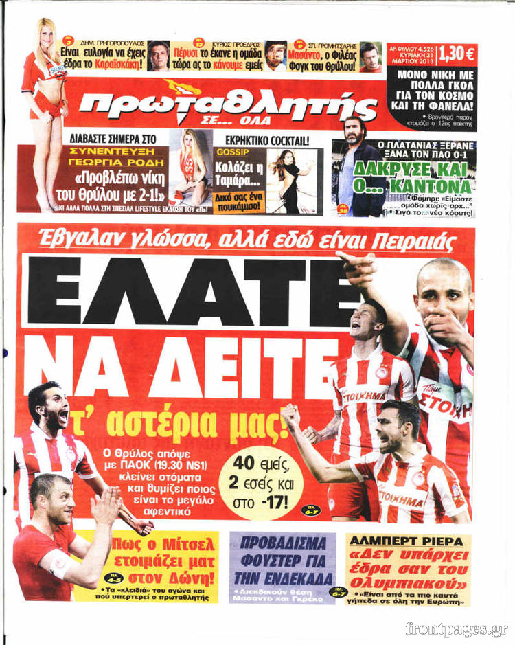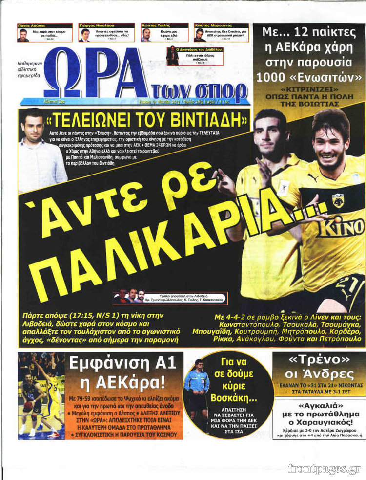 Οι αθλητικές εφημερίδες Enikos Newsroom 10:03, Κυριακή 31 Μαρτίου 2013 Media Οι αθλητικές εφημερίδες ΑΘΛΗΤΙΚΕΣ ΕΦΗΜΕΡΙΔΕΣ ΕΦΗΜΕΡΙΔΕΣ Μοιράσου το: σχολίασε κι εσύ (0 σχόλια) Ακολουθήστε το enikos.gr στο Google News και μάθετε πρώτοι όλες τις ειδήσεις Δείτε όλες τις τελευταίες ειδήσεις από την Ελλάδα και τον Κόσμο στο enikos.gr Ειδήσεις Ροή Ειδήσεων 1 ώρα πριν Αυξάνουν την πίεση προς την κυβέρνηση οι αγρότες: Κλείνουν παρακαμπτήριους και ανοίγουν διόδια – Τι θα γίνει τις γιορτές 57 λεπτά πριν Φοινικούντα: Το Σάββατο απολογείται ο 30χρονος γιος γνωστού επιχειρηματία της Πλάκας που παραδόθηκε – Όσα είπε στους αστυνομικούς και ο ρόλος του στο έγκλημα 39 λεπτά πριν Μπορεί ο Μαδούρο να αντέξει τον αποκλεισμό του Τραμπ; Τι θα χρειαστεί η Ουάσινγκτον για να τον ανατρέψει 3 ώρες πριν Δημοσκόπηση Metron Analysis: Στις 10 μονάδες η διαφορά ΝΔ-ΠΑΣΟΚ, στην 3η θέση η Πλεύση Ελευθερίας – 8 στους 10 στηρίζουν τον αγώνα των αγροτών 2 ώρες πριν Πρίγκιπας Ουίλιαμ – Κέιτ: Η νέα οικογενειακή φωτογραφία για τις Χριστουγεννιάτικες κάρτες του 2025 2 ώρες πριν Ύπνος: Η απλή βραδινή ρουτίνα για να προστατεύσετε τα μαλλιά σας από το κρύο κατά τη διάρκεια του χειμώνα 3 ώρες πριν Manifesting: Πώς να συναντήσετε τον σύντροφο της ζωής σας, ανάλογα με τον μήνα γέννησής σας 2 ημέρες πριν 20 χρόνια τα Χριστούγεννα ξεκινούν στα Public με μεγάλη ποικιλία σε δώρα! 43 λεπτά πριν Αρχαιολόγοι ανακάλυψαν ρωμαϊκά τεχνουργήματα από μια πόλη που δεν υπήρξε ποτέ – Τα τρία εντυπωσιακά κτίρια και ο αμφορέας με τις… σαρδέλες 8 λεπτά πριν Αθηνά Μαξίμου: Η τρυφερή ανάρτηση για τα γενέθλια του Αιμίλιου Χειλάκη – «Είναι η εκλεκτική συγγένειά μου, η επιλογή και η ευθύνη μου» 23 λεπτά πριν Παναθηναϊκός – Χάποελ Τελ Αβίβ 93-82: Με… φόρα από την Κωνσταντινούπολη 39 λεπτά πριν Μπορεί ο Μαδούρο να αντέξει τον αποκλεισμό του Τραμπ; Τι θα χρειαστεί η Ουάσινγκτον για να τον ανατρέψει 43 λεπτά πριν Αρχαιολόγοι ανακάλυψαν ρωμαϊκά τεχνουργήματα από μια πόλη που δεν υπήρξε ποτέ – Τα τρία εντυπωσιακά κτίρια και ο αμφορέας με τις… σαρδέλες 44 λεπτά πριν Στο ΟΑΚΑ για το «Παναθηναϊκός – Χάποελ» η Κίμπερλι Γκίλφοϊλ – ΦΩΤΟ ENIKOS NETWORK Σε περίοδο αυξημένης δραστηριότητας η γρίπη στην Ελλάδα-Μέτρα προστασίας από τον ΕΟΔΥ Σκέφτεστε συνέχεια συζητήσεις που έχετε κάνει; Τι σημαίνει αυτό, σύμφωνα με ειδικό Στεγαστικό: Τι λέει η ΠΟΜΙΔΑ για τα νέα μέτρα που ανακοίνωσε ο Κυριάκος Μητσοτάκης Λαγκάρντ: Αισιόδοξη για την ανάπτυξη της Ευρωζώνης, αβέβαιη για τον πληθωρισμό Χαρτογραφώντας το «σημείο χωρίς επιστροφή»: Για πρώτη φορά αποκαλύπτεται με λεπτομέρεια το ακανθώδες όριο της ατμόσφαιρας τ... Η Google καταργεί τη λειτουργία «dark web report» – Πώς θα μπορούν οι χρήστες να διαγράφουν τα δεδομένα τους περισσότερα 17:45 , Πέμπτη 18 Δεκεμβρίου 2025 ROUK ZOUK: Εορταστικό επεισόδιο με καλεσμένους τους πρωταγωνιστές του «Γιατί ρε πατέρα» Το Σάββατο 20 Δεκεμβρίου στις 21:00, η Ζέτα Μακρυπούλια υποδέχεται εκλεκτούς ηθοποιούς που όλο... 17:20 , Πέμπτη 18 Δεκεμβρίου 2025 Άγιος έρωτας: Η Χριστίνα εξομολογείται στον πατέρα Νικόλαο, απόψε στις 21:00 στον Alpha Η Νότα αποφασίζει να εκδικηθεί τον Πέτρο και τον Στέφανο, για χάρη του Λούη, όμως τα πράγματα ... 16:50 , Πέμπτη 18 Δεκεμβρίου 2025 Να μ’ αγαπάς: Ζωή και Φωτεινή συμφιλιώνονται ως μάνα με κόρη, απόψε στις 20:00 Η ταυτότητα του Άγγελου αποκαλύπτεται στο νέο επεισόδιο της σειράς “Να μ’ αγαπάς... 15:52 , Πέμπτη 18 Δεκεμβρίου 2025 Το Σπίτι Δίπλα Στο Ποτάμι: Το καθηλωτικό τελευταίο επεισ