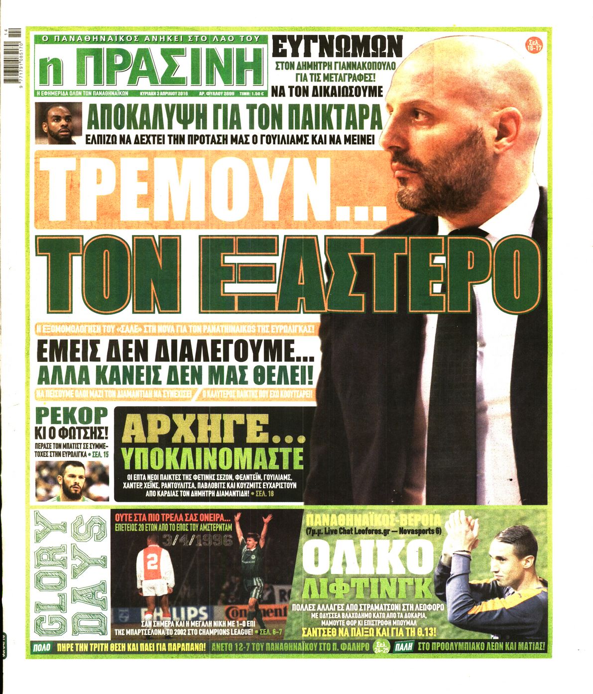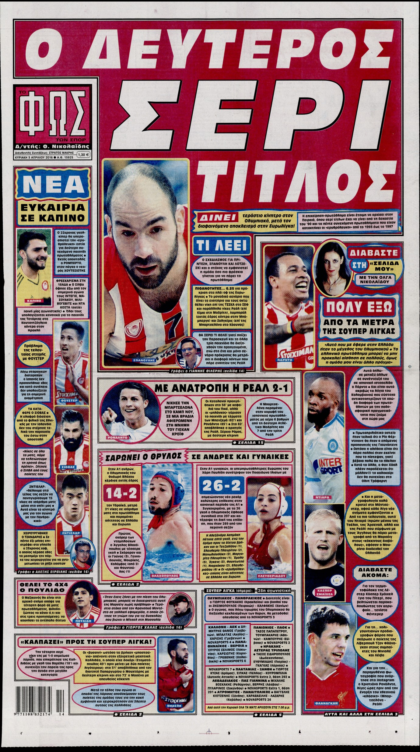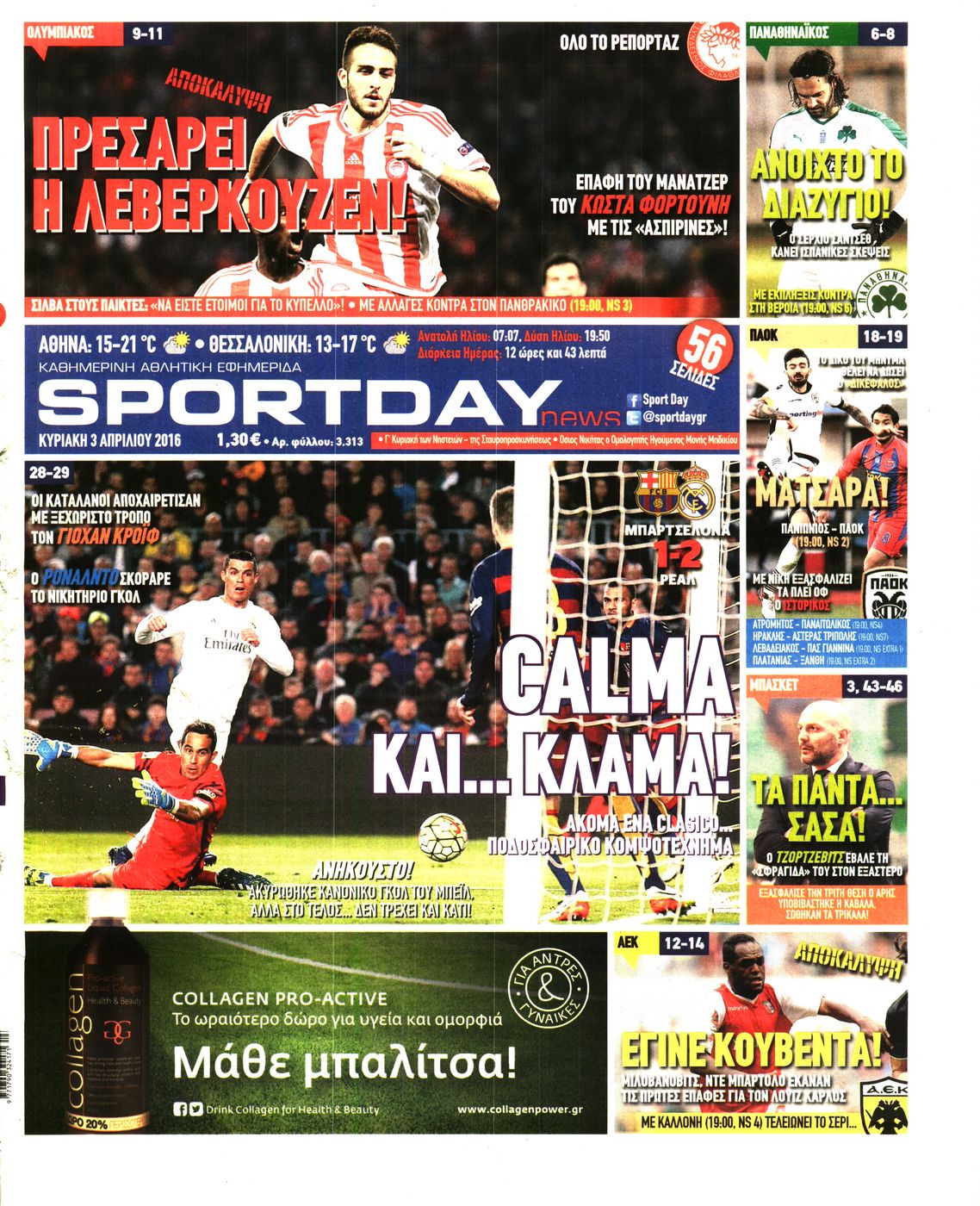 Oι αθλητικές εφημερίδες 3/4/2016 Enikos Newsroom 06:02, Κυριακή 03 Απριλίου 2016 Media Διαβάστε τα σημερινά πρωτοσέλιδα των αθλητικών εφημερίδων: ΑΘΛΗΤΙΚΕΣ ΕΦΗΜΕΡΙΔΕΣ ΠΡΩΤΟΣΕΛΙΔΑ Μοιράσου το: σχολίασε κι εσύ (0 σχόλια) Ακολουθήστε το enikos.gr στο Google News και μάθετε πρώτοι όλες τις ειδήσεις Δείτε όλες τις τελευταίες ειδήσεις από την Ελλάδα και τον Κόσμο στο enikos.gr Ειδήσεις Ροή Ειδήσεων 49 λεπτά πριν Δημοσκόπηση Metron Analysis: Στις 10 μονάδες η διαφορά ΝΔ-ΠΑΣΟΚ, στην 3η θέση η Πλεύση Ελευθερίας – 8 στους 10 στηρίζουν τον αγώνα των αγροτών 5 ώρες πριν Αγρότες: «Όχι στον διάλογο, μας εμπαίζει η κυβέρνηση» – Αποφάσισαν κλιμάκωση των κινητοποιήσεων, τι θα γίνει τα Χριστούγεννα 37 λεπτά πριν Νίκος Παππάς στον ΑΝΤ1: «Δεν κρύβομαι – Μετά το συμβάν ακολούθησα κανονικά το πρόγραμμά μου» – ΒΙΝΤΕΟ 2 ώρες πριν Αθήνα: Εξαρθρώθηκε εγκληματική οργάνωση που διακινούσε ναρκωτικά σε μορφή σοκολάτας – Δύο τράπερ ανάμεσα στους 4 συλληφθέντες – ΒΙΝΤΕΟ 29 λεπτά πριν Διαμαντής Καραναστάσης: Οδηγούσε υπό την επήρεια αλκοόλ – Του αφαιρέθηκε το δίπλωμα και του επιβλήθηκε πρόστιμο 350 ευρώ 60 λεπτά πριν Manifesting: Πώς να συναντήσετε τον σύντροφο της ζωής σας, ανάλογα με τον μήνα γέννησής σας 3 ώρες πριν Γάμος: 11 ψυχρές αλλά ευγενικές φράσεις, που λέει ένας άνδρας όταν σκέφτεται τον χωρισμό 2 ώρες πριν Σφουγγάρισμα: Η συνήθεια που θα σας βοηθήσει να διατηρήσετε το σπίτι σας καθαρό και τακτοποιημένο 2 ημέρες πριν 20 χρόνια τα Χριστούγεννα ξεκινούν στα Public με μεγάλη ποικιλία σε δώρα! 8 λεπτά πριν Κατερίνα Καινούργιου: «Δεν θα αφήσω κανέναν να χαλάσει τη ζαχαρένια μου στην ομορφότερη περίοδο της ζωής μου» 15 λεπτά πριν Θεσσαλονίκη: Προθεσμία για την επόμενη εβδομάδα έλαβαν οι συλληφθέντες για το κύκλωμα trafficking – Οι οίκοι ανοχής, τα «φρουτάκια» και οι ρόλοι 22 λεπτά πριν Πρίγκιπας Ουίλιαμ – Κέιτ: Η νέα οικογενειακή φωτογραφία για τις Χριστουγεννιάτικες κάρτες του 2025 29 λεπτά πριν Διαμαντής Καραναστάσης: Οδηγούσε υπό την επήρεια αλκοόλ – Του αφαιρέθηκε το δίπλωμα και του επιβλήθηκε πρόστιμο 350 ευρώ 37 λεπτά πριν Νίκος Παππάς στον ΑΝΤ1: «Δεν κρύβομαι – Μετά το συμβάν ακολούθησα κανονικά το πρόγραμμά μου» – ΒΙΝΤΕΟ ENIKOS NETWORK Σε περίοδο αυξημένης δραστηριότητας η γρίπη στην Ελλάδα-Μέτρα προστασίας από τον ΕΟΔΥ Σκέφτεστε συνέχεια συζητήσεις που έχετε κάνει; Τι σημαίνει αυτό, σύμφωνα με ειδικό ΕΛΤΑ: Αυτό είναι το νέο σχέδιο μετασχηματισμού του Οργανισμού- Τι δήλωσαν Πιερρακάκης και Παπαστεργίου ΕΛΣΤΑΤ: Τι δείχνουν τα νέα στοιχεία για τον μόνιμο πληθυσμό στην Ελλάδα Χαρτογραφώντας το «σημείο χωρίς επιστροφή»: Για πρώτη φορά αποκαλύπτεται με λεπτομέρεια το ακανθώδες όριο της ατμόσφαιρας τ... Η Google καταργεί τη λειτουργία «dark web report» – Πώς θα μπορούν οι χρήστες να διαγράφουν τα δεδομένα τους περισσότερα 17:45 , Πέμπτη 18 Δεκεμβρίου 2025 ROUK ZOUK: Εορταστικό επεισόδιο με καλεσμένους τους πρωταγωνιστές του «Γιατί ρε πατέρα» Το Σάββατο 20 Δεκεμβρίου στις 21:00, η Ζέτα Μακρυπούλια υποδέχεται εκλεκτούς ηθοποιούς που όλο... 17:20 , Πέμπτη 18 Δεκεμβρίου 2025 Άγιος έρωτας: Η Χριστίνα εξομολογείται στον πατέρα Νικόλαο, απόψε στις 21:00 στον Alpha Η Νότα αποφασίζει να εκδικηθεί τον Πέτρο και τον Στέφανο, για χάρη του Λούη, όμως τα πράγματα ... 16:50 , Πέμπτη 18 Δεκεμβρίου 2025 Να μ’ αγαπάς: Ζωή και Φωτεινή συμφιλιώνονται ως μάνα με κόρη, απόψε στις 20:00 Η ταυτότητα του Άγγελου αποκαλύπτεται στο νέο επεισόδιο της σειράς “Να μ’ αγαπάς... 15:52 , Πέμπτη 18 Δεκεμβρίου 2025 Το