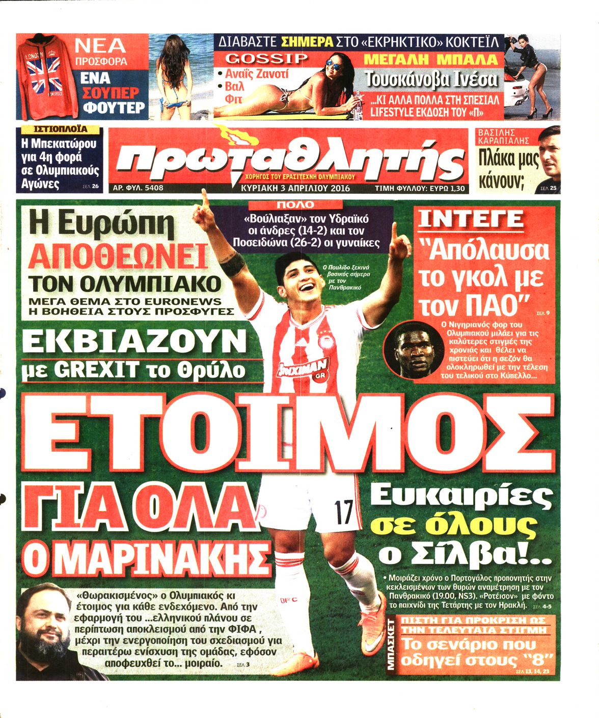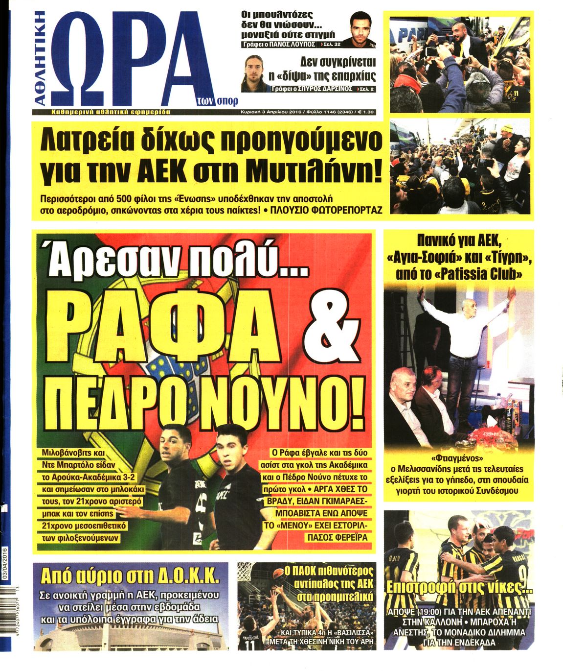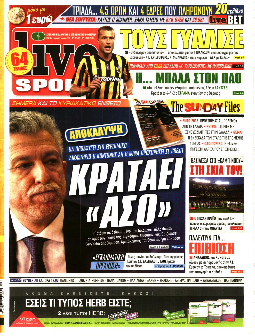 Oι αθλητικές εφημερίδες 3/4/2016 Enikos Newsroom 06:02, Κυριακή 03 Απριλίου 2016 Media Διαβάστε τα σημερινά πρωτοσέλιδα των αθλητικών εφημερίδων: ΑΘΛΗΤΙΚΕΣ ΕΦΗΜΕΡΙΔΕΣ ΠΡΩΤΟΣΕΛΙΔΑ Μοιράσου το: σχολίασε κι εσύ (0 σχόλια) Ακολουθήστε το enikos.gr στο Google News και μάθετε πρώτοι όλες τις ειδήσεις Δείτε όλες τις τελευταίες ειδήσεις από την Ελλάδα και τον Κόσμο στο enikos.gr Ειδήσεις Ροή Ειδήσεων 49 λεπτά πριν Δημοσκόπηση Metron Analysis: Στις 10 μονάδες η διαφορά ΝΔ-ΠΑΣΟΚ, στην 3η θέση η Πλεύση Ελευθερίας – 8 στους 10 στηρίζουν τον αγώνα των αγροτών 5 ώρες πριν Αγρότες: «Όχι στον διάλογο, μας εμπαίζει η κυβέρνηση» – Αποφάσισαν κλιμάκωση των κινητοποιήσεων, τι θα γίνει τα Χριστούγεννα 37 λεπτά πριν Νίκος Παππάς στον ΑΝΤ1: «Δεν κρύβομαι – Μετά το συμβάν ακολούθησα κανονικά το πρόγραμμά μου» – ΒΙΝΤΕΟ 2 ώρες πριν Αθήνα: Εξαρθρώθηκε εγκληματική οργάνωση που διακινούσε ναρκωτικά σε μορφή σοκολάτας – Δύο τράπερ ανάμεσα στους 4 συλληφθέντες – ΒΙΝΤΕΟ 29 λεπτά πριν Διαμαντής Καραναστάσης: Οδηγούσε υπό την επήρεια αλκοόλ – Του αφαιρέθηκε το δίπλωμα και του επιβλήθηκε πρόστιμο 350 ευρώ 60 λεπτά πριν Manifesting: Πώς να συναντήσετε τον σύντροφο της ζωής σας, ανάλογα με τον μήνα γέννησής σας 3 ώρες πριν Γάμος: 11 ψυχρές αλλά ευγενικές φράσεις, που λέει ένας άνδρας όταν σκέφτεται τον χωρισμό 2 ώρες πριν Σφουγγάρισμα: Η συνήθεια που θα σας βοηθήσει να διατηρήσετε το σπίτι σας καθαρό και τακτοποιημένο 2 ημέρες πριν 20 χρόνια τα Χριστούγεννα ξεκινούν στα Public με μεγάλη ποικιλία σε δώρα! 8 λεπτά πριν Κατερίνα Καινούργιου: «Δεν θα αφήσω κανέναν να χαλάσει τη ζαχαρένια μου στην ομορφότερη περίοδο της ζωής μου» 15 λεπτά πριν Θεσσαλονίκη: Προθεσμία για την επόμενη εβδομάδα έλαβαν οι συλληφθέντες για το κύκλωμα trafficking – Οι οίκοι ανοχής, τα «φρουτάκια» και οι ρόλοι 22 λεπτά πριν Πρίγκιπας Ουίλιαμ – Κέιτ: Η νέα οικογενειακή φωτογραφία για τις Χριστουγεννιάτικες κάρτες του 2025 29 λεπτά πριν Διαμαντής Καραναστάσης: Οδηγούσε υπό την επήρεια αλκοόλ – Του αφαιρέθηκε το δίπλωμα και του επιβλήθηκε πρόστιμο 350 ευρώ 37 λεπτά πριν Νίκος Παππάς στον ΑΝΤ1: «Δεν κρύβομαι – Μετά το συμβάν ακολούθησα κανονικά το πρόγραμμά μου» – ΒΙΝΤΕΟ ENIKOS NETWORK Σε περίοδο αυξημένης δραστηριότητας η γρίπη στην Ελλάδα-Μέτρα προστασίας από τον ΕΟΔΥ Σκέφτεστε συνέχεια συζητήσεις που έχετε κάνει; Τι σημαίνει αυτό, σύμφωνα με ειδικό ΕΛΤΑ: Αυτό είναι το νέο σχέδιο μετασχηματισμού του Οργανισμού- Τι δήλωσαν Πιερρακάκης και Παπαστεργίου ΕΛΣΤΑΤ: Τι δείχνουν τα νέα στοιχεία για τον μόνιμο πληθυσμό στην Ελλάδα Χαρτογραφώντας το «σημείο χωρίς επιστροφή»: Για πρώτη φορά αποκαλύπτεται με λεπτομέρεια το ακανθώδες όριο της ατμόσφαιρας τ... Η Google καταργεί τη λειτουργία «dark web report» – Πώς θα μπορούν οι χρήστες να διαγράφουν τα δεδομένα τους περισσότερα 17:45 , Πέμπτη 18 Δεκεμβρίου 2025 ROUK ZOUK: Εορταστικό επεισόδιο με καλεσμένους τους πρωταγωνιστές του «Γιατί ρε πατέρα» Το Σάββατο 20 Δεκεμβρίου στις 21:00, η Ζέτα Μακρυπούλια υποδέχεται εκλεκτούς ηθοποιούς που όλο... 17:20 , Πέμπτη 18 Δεκεμβρίου 2025 Άγιος έρωτας: Η Χριστίνα εξομολογείται στον πατέρα Νικόλαο, απόψε στις 21:00 στον Alpha Η Νότα αποφασίζει να εκδικηθεί τον Πέτρο και τον Στέφανο, για χάρη του Λούη, όμως τα πράγματα ... 16:50 , Πέμπτη 18 Δεκεμβρίου 2025 Να μ’ αγαπάς: Ζωή και Φωτεινή συμφιλιώνονται ως μάνα με κόρη, απόψε στις 20:00 Η ταυτότητα του Άγγελου αποκαλύπτεται στο νέο επεισόδιο της σειράς “Να μ’ αγαπάς... 15:52 , Πέμπτη 18 Δεκεμβρίου 2025 Το