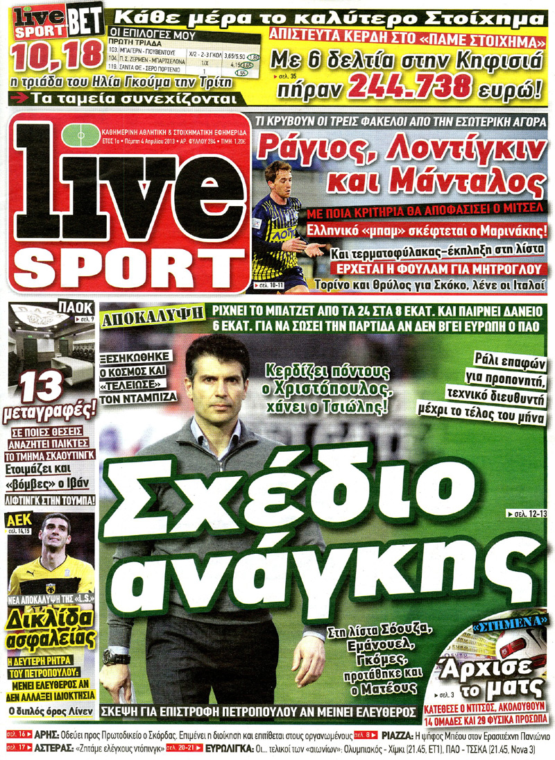 Οι αθλητικές εφημερίδες Enikos Newsroom 08:45, Πέμπτη 04 Απριλίου 2013 Media Οι αθλητικές εφημερίδες ΕΦΗΜΕΡΙΔΕΣ ΕΦΗΜΕΡΙΔΕΣ ΠΡΩΤΟΣΕΛΙΔΑ ΠΡΩΤΟΣΕΛΙΔΑ Μοιράσου το: σχολίασε κι εσύ (0 σχόλια) Ακολουθήστε το enikos.gr στο Google News και μάθετε πρώτοι όλες τις ειδήσεις Δείτε όλες τις τελευταίες ειδήσεις από την Ελλάδα και τον Κόσμο στο enikos.gr Ειδήσεις Ροή Ειδήσεων 27 λεπτά πριν Κυριάκος Μητσοτάκης μετά το «όχι» των αγροτών: Διάλογος δεν γίνεται με τελεσίγραφα και οι λύσεις προκύπτουν μόνο από συζήτηση 3 ώρες πριν ΟΠΕΚΕΠΕ – Κρήτη: Στην Ευρωπαϊκή Εισαγγελία οι 15 από τους 16 συλληφθέντες για τις παράνομες επιδοτήσεις 1 ώρα πριν Πανεπιστήμιο Μπράουν: Βίντεο με αστυνομικούς να διασώζουν φοιτητές που είχαν κρυφτεί σε βιβλιοθήκη – Μαρτυρίες για σκηνές χάους και τρόμου 2 ώρες πριν Δώρο Χριστουγέννων 2025: Αντίστροφη μέτρηση για την καταβολή του – Ποιοι θα πάρουν περισσότερα φέτος και τι ισχύει για τη μερική απασχόληση 2 ώρες πριν Κυριακή με ανοιχτά καταστήματα σήμερα: Το ωράριο λειτουργίας – Τι ισχύει για τα σούπερ μάρκετ 32 λεπτά πριν Η ζωή γίνεται πολύ καλύτερη για 3 ζώδια – «Ίσως έχει έρθει η ώρα να κάνετε μια πραγματική και μόνιμη αλλαγή» 1 ώρα πριν Ξέσπασε σε κλάματα με το χριστουγεννιάτικο δώρο του άνδρα της – «Μου είπε ότι είμαι το πιο αχάριστο άτομο που έχει γνωρίσει» 2 ώρες πριν Στο φως απομεινάρια μιας ξεχασμένης πόλης που «σημαδεύτηκε από συγκρούσεις» – Είναι θαμμένη κάτω από σύγχρονη μεγαλούπολη 5 ώρες πριν Σπλαχνικό λίπος: Γιατρός του Χάρβαρντ αποκαλύπτει 7 τροφές που βοηθούν στη μείωσή του με φυσικό τρόπο 9 λεπτά πριν Ένωση Δικαστών και Εισαγγελέων: Ζητεί από την Πολιτεία μέτρα για να ανακτηθεί η κοινωνική εμπιστοσύνη στη Δικαιοσύνη 17 λεπτά πριν Πάτρα: Νέες κινητοποιήσεις αγροτών και κτηνοτρόφων – Πού υπάρχουν μπλόκα στη Δυτική Ελλάδα 25 λεπτά πριν Η γη της ελιάς: Η αρχή του τέλους του Δημοσθένη πλησιάζει 27 λεπτά πριν Κυριάκος Μητσοτάκης μετά το «όχι» των αγροτών: Διάλογος δεν γίνεται με τελεσίγραφα και οι λύσεις προκύπτουν μόνο από συζήτηση 32 λεπτά πριν Η ζωή γίνεται πολύ καλύτερη για 3 ζώδια – «Ίσως έχει έρθει η ώρα να κάνετε μια πραγματική και μόνιμη αλλαγή» ENIKOS NETWORK Η «βρώμικη» αλήθεια για τον στεγνωτήρα χεριών: Πώς διασπείρει τα μικρόβια αντί να τα εξαλείφει, σύμφωνα με το Κλίβελαντ Η Samantha του Sex & The City αποκαλύπτει την εμπειρία της με την εμμηνόπαυση: «Έμαθα καλύτερα τον εαυτό μου» e- ΕΦΚΑ και ΔΥΠΑ: Ο «χάρτης» των πληρωμών έως και τις 19 Δεκεμβρίου Εθνικό Μητρώο Παροχών και Ενισχύσεων: Ποιες αλλαγές έρχονται και πώς θα λειτουργεί Σύγχρονος Νοστράδαμος: Προειδοποιεί για «μεγάλο γεγονός» τους επόμενους μήνες που θα συγκλονίσει τη Βρετανία και τον κόσμο Τεστ παρατηρητικότητας: Μπορείτε να βρείτε τις 3 διαφορές στις εικόνες με έναν πιγκουίνο σε 14 δευτερόλεπτα περισσότερα 10:07 , Κυριακή 14 Δεκεμβρίου 2025 Η γη της ελιάς: Η αρχή του τέλους του Δημοσθένη πλησιάζει Η δραματική σειρά του MEGA «Η γη της ελιάς» επιφυλάσσει ακόμα μεγαλύτερες ανατροπές. Κάθε επει... 08:46 , Κυριακή 14 Δεκεμβρίου 2025 Η Realnews στο www.pressreader.com Διαβάστε την ψηφιακή έκδοση της εφημερίδας στην οθόνη του κινητού, του tablet και του υπολογισ... 08:15 , Κυριακή 14 Δεκεμβρίου 2025 Σήμερα με τη Realnews: Food & Travel μαζί Beaute και Μαστορέματα Σήμερα με τη Realnews: Food & Travel μαζί Beaute και Μαστορέματα Food & Travel Ετοιμάζ... 07:46 , Κυριακή 14 Δεκεμβρίου 2025 Σήμερα με τη Realnews: Σκάναρε & κέρδισε με το PaduApp Τo κορυφαίο app επιβράβευσης στην Ελλάδα που σε ανταμείβ