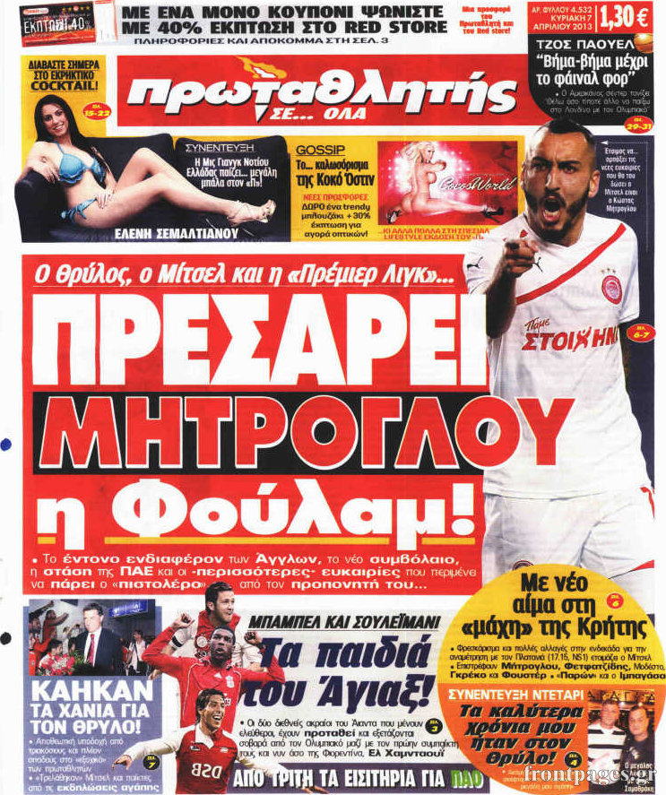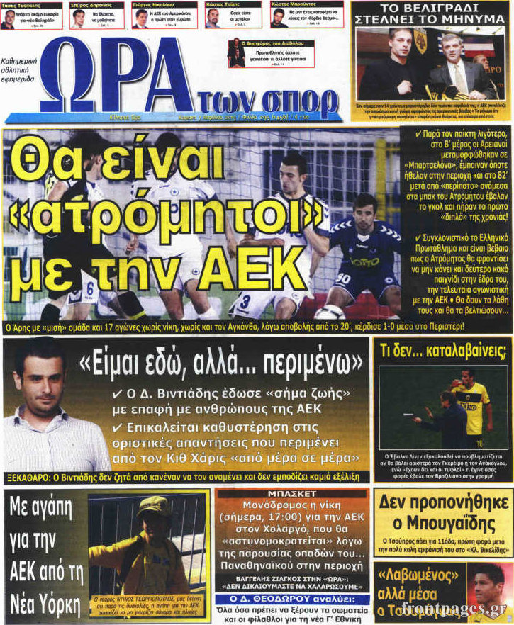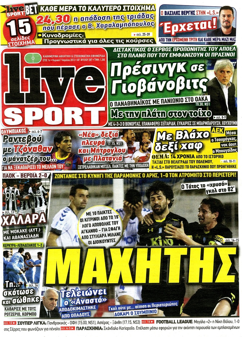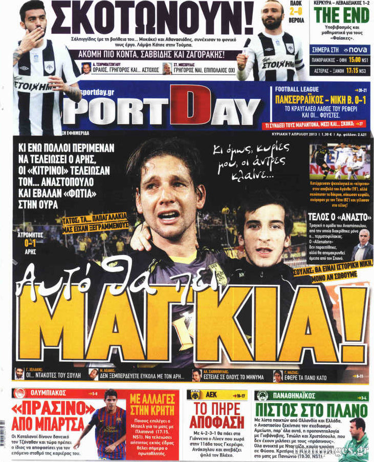 Οι αθλητικές εφημερίδες Enikos Newsroom 09:14, Κυριακή 07 Απριλίου 2013 Media Οι αθλητικές εφημερίδες Τα πρωτοσέλιδα των αθλητικών εφημερίδων. ΑΘΛΗΤΙΚΕΣ ΕΦΗΜΕΡΙΔΕΣ ΕΦΗΜΕΡΙΔΕΣ ΠΡΩΤΟΣΕΛΙΔΑ Μοιράσου το: σχολίασε κι εσύ (0 σχόλια) Ακολουθήστε το enikos.gr στο Google News και μάθετε πρώτοι όλες τις ειδήσεις Δείτε όλες τις τελευταίες ειδήσεις από την Ελλάδα και τον Κόσμο στο enikos.gr Ειδήσεις Ροή Ειδήσεων 5 ώρες πριν Εκτός ευρωομάδας ΣΥΡΙΖΑ ο Νίκος Παππάς μετά την επίθεση στον δημοσιογράφο Νίκο Γιαννόπουλο – Η μήνυση και οι νέες δηλώσεις 5 ώρες πριν «Αγριεύουν» οι αγρότες: «Δεν συντρέχει λόγος συνάντησης με τον πρωθυπουργό» – Ώρα αποφάσεων στη σύσκεψη της Πέμπτης 5 ώρες πριν Κυψέλη: Χωρίς την οικογένειά της δίπλα της απολογήθηκε η 16χρονη – «Της είχε επιτεθεί κάποιος για να την βιάσει, φοβήθηκε και κυκλοφορούσε με μαχαίρι» 5 ώρες πριν Politico: Το πρόβλημα της Ευρώπης δεν είναι το Βέλγιο αλλά ο Ντόναλντ Τραμπ 7 ώρες πριν Αλεξανδρούπολη: Πολυοργανική ανεπάρκεια λόγω υποσιτισμού η αιτία θανάτου του 3χρονου αγοριού 5 ώρες πριν Μυστήριο με τεράστιες κυκλικές πέτρες 200 κιλών – Ανακαλύφθηκαν τυχαία κατά τη διάρκεια οδικών έργων και κανείς δεν ξέρει από πού προέρχονται 6 ώρες πριν Ύπνος: Ειδικός εξηγεί τον πραγματικό λόγο που ξυπνάτε στις 4 τα ξημερώματα – Ο ρόλος των ορμονών και του κιρκάδιου ρυθμού 7 ώρες πριν Αριθμολογία: Οι άνθρωποι που έχουν γεννηθεί αυτές τις 4 ημερομηνίες, είναι τρυφεροί και αγαπούν ανιδιοτελώς 19 ώρες πριν 20 χρόνια τα Χριστούγεννα ξεκινούν στα Public με μεγάλη ποικιλία σε δώρα! 14 λεπτά πριν Αλ Τσαντίρι Νιουζ: «Λύγισε» ο Δημήτρης Λάλος για τον Δημήτρη Ήμελλο – «Τον μνημονεύω, να ‘ναι καλά εκεί που είναι» 29 λεπτά πριν GNTM: Με δάκρυα τον αποχαιρέτησε η Ηλιάνα Παπαγεωργίου πριν από τον ημιτελικό – «Αισθάνομαι πολύ παράξενα» 44 λεπτά πριν Αμερικανικά στρατεύματα στον Ισημερινό για «προσωρινή» επιχείρηση κατά των ναρκωτικών 60 λεπτά πριν Βραζιλία: Το Κογκρέσο ενέκρινε σχέδιο νόμου για τη μείωση της ποινής του πρώην προέδρου Μπολσονάρου 1 ώρα πριν Ένταση στο περιφερειακό συμβούλιο Δυτικής Μακεδονίας: Φωνές, σπρωξιές και διακοπή – Δείτε βίντεο ENIKOS NETWORK Αϋπνία: Το κόλπο που θα σας βοηθήσει να κοιμηθείτε απόψε – Είναι απλό και έχει αποτέλεσμα 2,6 εκατομμύρια πολίτες έχουν ήδη εμβολιαστεί κατά της γρίπης ΕΛΣΤΑΤ: Τι δείχνουν τα νέα στοιχεία για τις ηλεκτρονικές παραγγελίες των επιχειρήσεων ΚΕΠΕ: Οι 3 διακριτές συμβολές των ΜμΕ και της μεταποίησης στην ελληνική οικονομία Χαρτογραφώντας το «σημείο χωρίς επιστροφή»: Για πρώτη φορά αποκαλύπτεται με λεπτομέρεια το ακανθώδες όριο της ατμόσφαιρας τ... Η Google καταργεί τη λειτουργία «dark web report» – Πώς θα μπορούν οι χρήστες να διαγράφουν τα δεδομένα τους περισσότερα 02:30 , Πέμπτη 18 Δεκεμβρίου 2025 Αλ Τσαντίρι Νιουζ: Η κόρη της Πάολα στο κοινό – Η ατάκα Λαζόπουλου που την έκανε να «κοκκινήσει» Γιορτινή διάθεση και ευχάριστες στιγμές γέμισε η αποψινή, τελευταία για το 2025, εκπομπή του «... 22:24 , Τετάρτη 17 Δεκεμβρίου 2025 Το Σπίτι Δίπλα Στο Ποτάμι: Σε κίνδυνο η υγεία του Απόστολου – Τι θα δούμε απόψε “Το Σπίτι Δίπλα στο Ποτάμι” ξετυλίγει το νήμα της ζωής των πέντε αδελφών με καταισ... 21:14 , Τετάρτη 17 Δεκεμβρίου 2025 Παιχνίδια Εκδίκησης: Θα καταφέρει ο Χρήστος να κλονίσει την εμπιστοσύνη της Μάγιας απέναντι στον Άγη; Τα «Παιχνίδια Εκδίκησης» έρχονται απόψε στις 22:30, στον Αντ1, με το τελευταίο επεισόδιο της χ... 20:57 , Τετάρτη 17 Δεκεμβρίου 2025 Άγιος Έρωτ