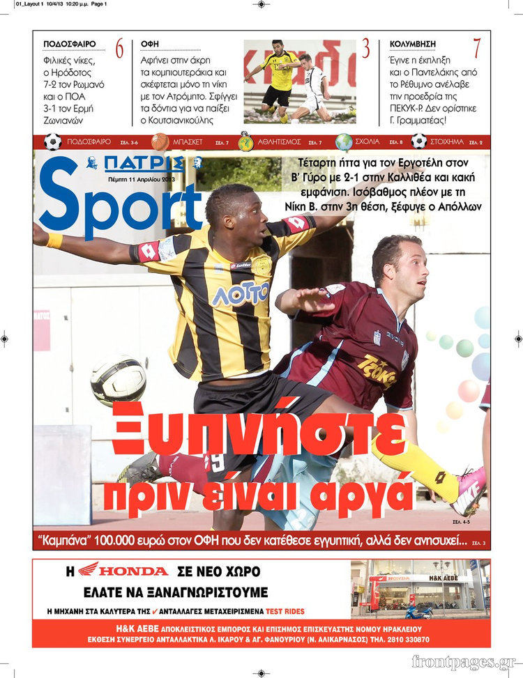 Οι αθλητικές εφημερίδες Enikos Newsroom 09:21, Πέμπτη 11 Απριλίου 2013 Media Οι αθλητικές εφημερίδες ΑΘΛΗΤΙΚΕΣ ΕΦΗΜΕΙΔΕΣ ΕΦΗΜΕΡΙΔΕΣ Μοιράσου το: σχολίασε κι εσύ (0 σχόλια) Ακολουθήστε το enikos.gr στο Google News και μάθετε πρώτοι όλες τις ειδήσεις Δείτε όλες τις τελευταίες ειδήσεις από την Ελλάδα και τον Κόσμο στο enikos.gr Ειδήσεις Ροή Ειδήσεων 7 ώρες πριν Χριστούγεννα στα μπλόκα: Επιμένουν στις κινητοποιήσεις τους οι αγρότες – Ανοίγουν τα διόδια το Σαββατοκύριακο 7 ώρες πριν Ουκρανία: Η άνευ προηγουμένου επίθεση σε ρωσικό τάνκερ στη Μεσόγειο και το μήνυμα προς στον Πούτιν – Το «μακρύ χέρι» του Κιέβου 7 ώρες πριν Πούτιν: Τα μηνύματα σε Ευρώπη και ΝΑΤΟ από το μαραθώνιο «σόου» του – Η απαίτηση για «σεβασμό» και η ειρήνη «με τους όρους» της Μόσχας 7 ώρες πριν Τραμπ: Δεν αποκλείει την πιθανότητα ενός πολέμου στη Βενεζουέλα – «Ο Μαδούρο ξέρει καλύτερα από τον καθένα τι ακριβώς θέλω» 8 ώρες πριν Συνεχίζει να προκαλεί ο Μίτσκοσκι: «Για μένα το όνομα Μακεδονία είναι ιερό» 7 λεπτά πριν Τα ζώδια σήμερα, Σάββατο 20 Δεκεμβρίου: Παρθένοι, το σύμπαν σας δίνει το κλειδί 7 ώρες πριν Ανακαλύφθηκαν αρχαία χρυσά νομίσματα 2.200 ετών που απεικονίζουν τον θεό Απόλλωνα – Η άγνωστη σύνδεση με τον Φίλιππο Β΄ της Μακεδονίας 8 ώρες πριν Ύπνος: Μια κρυφή κατάσταση του εγκεφάλου πριν από τον ύπνο μπορεί να είναι το “κλειδί” για υψηλή ευφυΐα και δημιουργικότητα 9 ώρες πριν Αριθμολογία: Οι άνθρωποι που έχουν γεννηθεί αυτές τις 4 ημερομηνίες, συχνά παρεξηγούνται – «Η καλοσύνη τους κρύβει τεράστια δύναμη» 7 λεπτά πριν Τα ζώδια σήμερα, Σάββατο 20 Δεκεμβρίου: Παρθένοι, το σύμπαν σας δίνει το κλειδί 12 λεπτά πριν Παιανία: Δυο αυτοκίνητα τυλίχτηκαν στις φλόγες – Συναγερμός στην Πυροσβεστική 15 λεπτά πριν Εφημερεύοντα φαρμακεία σε Αθήνα και Θεσσαλονίκη (20/12) 21 λεπτά πριν Γιώργος Μπαρτζώκας: «Για εμένα σημαίνει πάρα πολλά να ακούω το όνομά μου από τον κόσμο του Ολυμπιακού» 31 λεπτά πριν ΟΗΕ: Το Συμβούλιο Ασφαλείας παρατείνει για έναν χρόνο την εντολή της ειρηνευτικής δύναμης στο Κονγκό ENIKOS NETWORK Το ΕΚΑΒ τιμήθηκε από την Ακαδημία Αθηνών για τα 40 χρόνια προσφοράς του Έχετε πραγματικά μεγάλη καρδιά; 10 χαρακτηριστικά όσων έχουν καλοσύνη Αναστολή μέτρων αναγκαστικής εκτέλεσης για κτηνοτρόφους που πλήττονται από την ευλογιά των αιγοπροβάτων Πλήρης επάρκεια προϊόντων στις λαϊκές της Αττικής, παρά τις αγροτικές κινητοποιήσεις – Τι απαντούν οι πωλητές Χαρτογραφώντας το «σημείο χωρίς επιστροφή»: Για πρώτη φορά αποκαλύπτεται με λεπτομέρεια το ακανθώδες όριο της ατμόσφαιρας τ... Η Google καταργεί τη λειτουργία «dark web report» – Πώς θα μπορούν οι χρήστες να διαγράφουν τα δεδομένα τους περισσότερα 04:20 , Σάββατο 20 Δεκεμβρίου 2025 Αγγελική Νικολούλη: Τα συλλυπητήρια για την απώλεια της Ειρήνης Μαρινάκη Τα συλληπητήρια στον πρόεδρο του Mega, τον Βαγγέλη Μαρινάκη, για την απώλεια της μητέρας του Ε... 02:50 , Σάββατο 20 Δεκεμβρίου 2025 GNTM: Η Ξένια Τσίρκοβα αναδείχθηκε μεγάλη νικήτρια και πήρε τις 50.000 ευρώ – Ποιος βρέθηκε σε απόσταση αναπνοής; Με φαντασμαγορικό τρόπο ολοκληρώθηκε το βράδυ της Παρασκευής ο μεγάλος τελικός του GNTM, μέσα ... 22:42 , Παρασκευή 19 Δεκεμβρίου 2025 Γιώργος Γιαννόπουλος για “Το σόι σου”: “Είναι ευτυχία και ευλογία αυτή η σειρά” «Είναι ευτυχία και ευλογία η συγκυρία αυτής της σειράς», θα πει ο Γιώργος Γιαννόπουλος -ο αγαπ... 20:37 , Παρασκευή 19 Δεκεμβρίου 2025 Don’t Forget The Lyrics: Η Έλλη Κοκκίνου υποδέχεται 4 παίκτες που θα κάνουν τα π