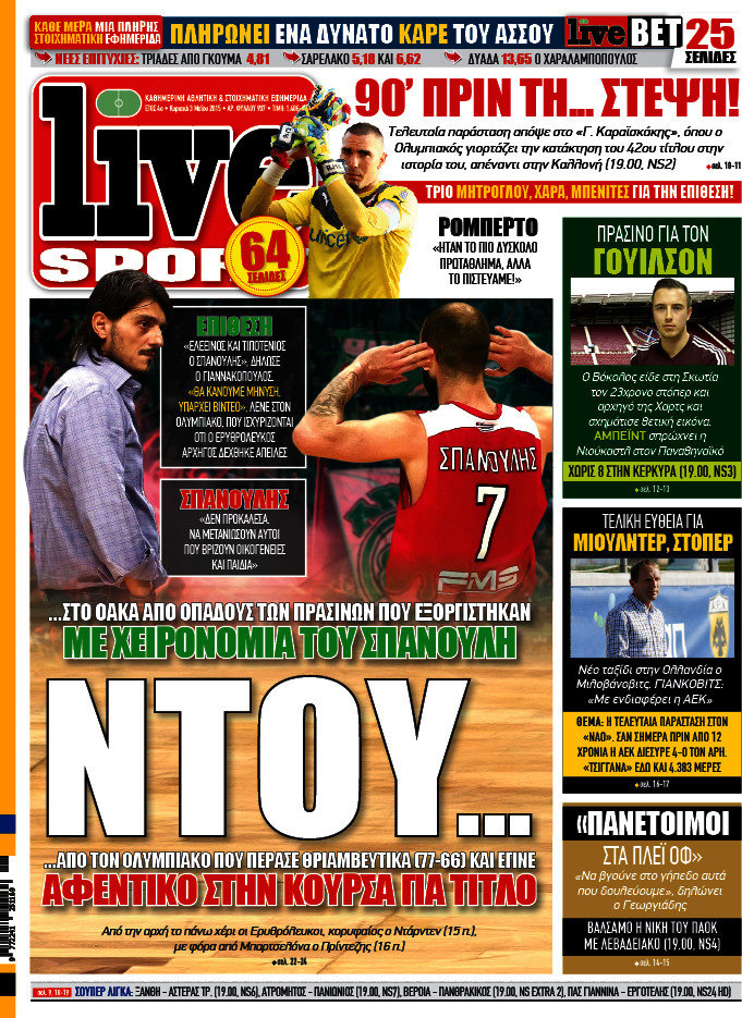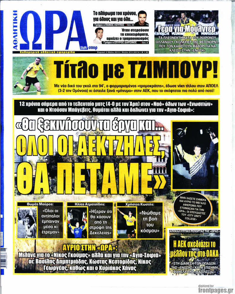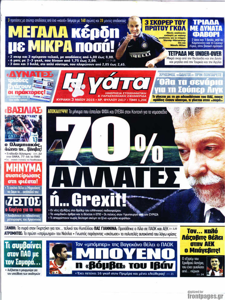 Οι αθλητικές εφημερίδες 3/5/2015 Enikos Newsroom 07:49, Κυριακή 03 Μαΐου 2015 Media Διαβάστε τα σημερινά πρωτοσέλιδα των αθλητικών εφημερίδων: ΑΘΛΗΤΙΚΕΣ ΕΦΗΜΕΡΙΔΕΣ ΠΡΩΤΟΣΕΛΙΔΑ Μοιράσου το: σχολίασε κι εσύ (0 σχόλια) Ακολουθήστε το enikos.gr στο Google News και μάθετε πρώτοι όλες τις ειδήσεις Δείτε όλες τις τελευταίες ειδήσεις από την Ελλάδα και τον Κόσμο στο enikos.gr Ειδήσεις Ροή Ειδήσεων 1 ώρα πριν Χριστούγεννα στα μπλόκα: Επιμένουν στις κινητοποιήσεις τους οι αγρότες – Ανοίγουν τα διόδια το Σαββατοκύριακο 2 ώρες πριν Ουκρανία: Η άνευ προηγουμένου επίθεση σε ρωσικό τάνκερ στη Μεσόγειο και το μήνυμα προς στον Πούτιν – Το «μακρύ χέρι» του Κιέβου 48 λεπτά πριν Πούτιν: Τα μηνύματα σε Ευρώπη και ΝΑΤΟ από το μαραθώνιο «σόου» του – Η απαίτηση για «σεβασμό» και η ειρήνη «με τους όρους» της Μόσχας 2 ώρες πριν Τραμπ: Δεν αποκλείει την πιθανότητα ενός πολέμου στη Βενεζουέλα – «Ο Μαδούρο ξέρει καλύτερα από τον καθένα τι ακριβώς θέλω» 2 ώρες πριν Συνεχίζει να προκαλεί ο Μίτσκοσκι: «Για μένα το όνομα Μακεδονία είναι ιερό» 49 λεπτά πριν Ανακαλύφθηκαν αρχαία χρυσά νομίσματα 2.200 ετών που απεικονίζουν τον θεό Απόλλωνα – Η άγνωστη σύνδεση με τον Φίλιππο Β΄ της Μακεδονίας 2 ώρες πριν Ύπνος: Μια κρυφή κατάσταση του εγκεφάλου πριν από τον ύπνο μπορεί να είναι το “κλειδί” για υψηλή ευφυΐα και δημιουργικότητα 3 ώρες πριν Αριθμολογία: Οι άνθρωποι που έχουν γεννηθεί αυτές τις 4 ημερομηνίες, συχνά παρεξηγούνται – «Η καλοσύνη τους κρύβει τεράστια δύναμη» 4 ώρες πριν Ξεχάστε το καθάρισμα το Σαββατοκύριακο: Ο «κανόνας των 20 λεπτών» που θα σας λύσει τα χέρια 4 λεπτά πριν Σάμος: Άνοιξε το μπλόκο των αγροτών στον κόμβο Κοκκαρίου – Σε νέα συνεδρίαση θα καθορίσουν την στάση τους 12 λεπτά πριν Άνω Λιόσια: Πυροβολισμοί σε επιχείρηση με χαλιά – Εντοπίστηκαν 10 κάλυκες 19 λεπτά πριν Γάζα: Ισραηλινό πλήγμα σε σχολείο που είχαν καταφύγει εκτοπισμένοι – Τουλάχιστον έξι νεκροί 33 λεπτά πριν Ολυμπιακός – Βιλερμπάν 107-84: Επιστροφή στις νίκες με… προπόνηση 39 λεπτά πριν Νέος Κόσμος: Συνελήφθη 41χρονος με ένταλμα από την Τουρκία για εμπόριο ναρκωτικών και ληστεία ENIKOS NETWORK Το ΕΚΑΒ τιμήθηκε από την Ακαδημία Αθηνών για τα 40 χρόνια προσφοράς του Έχετε πραγματικά μεγάλη καρδιά; 10 χαρακτηριστικά όσων έχουν καλοσύνη Αναστολή μέτρων αναγκαστικής εκτέλεσης για κτηνοτρόφους που πλήττονται από την ευλογιά των αιγοπροβάτων Πλήρης επάρκεια προϊόντων στις λαϊκές της Αττικής, παρά τις αγροτικές κινητοποιήσεις – Τι απαντούν οι πωλητές Χαρτογραφώντας το «σημείο χωρίς επιστροφή»: Για πρώτη φορά αποκαλύπτεται με λεπτομέρεια το ακανθώδες όριο της ατμόσφαιρας τ... Η Google καταργεί τη λειτουργία «dark web report» – Πώς θα μπορούν οι χρήστες να διαγράφουν τα δεδομένα τους περισσότερα 22:42 , Παρασκευή 19 Δεκεμβρίου 2025 Γιώργος Γιαννόπουλος για “Το σόι σου”: “Είναι ευτυχία και ευλογία αυτή η σειρά” «Είναι ευτυχία και ευλογία η συγκυρία αυτής της σειράς», θα πει ο Γιώργος Γιαννόπουλος -ο αγαπ... 20:37 , Παρασκευή 19 Δεκεμβρίου 2025 Don’t Forget The Lyrics: Η Έλλη Κοκκίνου υποδέχεται 4 παίκτες που θα κάνουν τα πάντα για να μη χάσουν ούτε… μισή λέξη από τους στίχους Το «Don’t Forget The Lyrics» επιστρέφει απόψε, Παρασκευή 19 Δεκεμβρίου, στις 21:00 με νέο επει... 19:31 , Παρασκευή 19 Δεκεμβρίου 2025 GNTM: Απόψε ο μεγάλος τελικός για τους 4 φιναλίστ Έπειτα από μήνες γεμάτους μόδα, δημιουργία και έντονες αναμετρήσεις, το GNTM 2025 κορυφώνεται,... 18:11 , Παρασκευή 19 Δεκεμβρίου 2025 Το σόι σου: Ο Άρης έρ