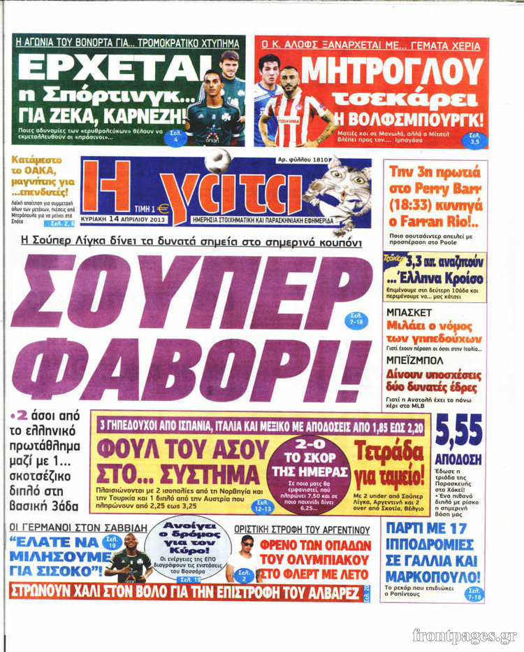 Οι αθλητικές εφημερίδες Enikos Newsroom 08:40, Κυριακή 14 Απριλίου 2013 Media Οι αθλητικές εφημερίδες ΑΘΛΗΤΙΚΕΣ ΕΦΗΜΕΡΙΔΕΣ ΕΦΗΜΕΡΙΔΕΣ Μοιράσου το: σχολίασε κι εσύ (0 σχόλια) Ακολουθήστε το enikos.gr στο Google News και μάθετε πρώτοι όλες τις ειδήσεις Δείτε όλες τις τελευταίες ειδήσεις από την Ελλάδα και τον Κόσμο στο enikos.gr Ειδήσεις Ροή Ειδήσεων 18 λεπτά πριν Ζελένσκι: Μόνο οι ΗΠΑ και ο Τραμπ μπορούν να πιέσουν τη Ρωσία να βάλει τέλος στον πόλεμο 36 λεπτά πριν Φοινικούντα: Προφυλακιστέος ο 30χρονος για συνέργεια στη διπλή δολοφονία – Και άλλα πρόσωπα στο «μικροσκόπιο» 2 ώρες πριν Κυριάκος Μητσοτάκης: Στην Ιερουσαλήμ την Τρίτη ο Πρωθυπουργός για την τριμερή Ελλάδας, Κύπρου, Ισραήλ – Θα συναντηθεί και με τον Αμπάς 5 ώρες πριν Πώς δρούσε το κύκλωμα που διακινούσε ναρκωτικά σε σχολεία – Υπέβαλαν σε βασανιστήρια όσους δεν τηρούσαν τους «κανόνες πειθαρχίας» 1 ώρα πριν Πάπας Λέων: Όταν έχει αϋπνίες επενδύει παραγωγικά τον χρόνο του – Ποιο παιχνίδι παίζει στο κινητό 27 λεπτά πριν Αριθμολογία: Ο αριθμός του φύλακα αγγέλου σας, με βάση τον μήνα γέννησής σας – «Έτσι σας στέλνει σημάδια το σύμπαν» 1 ώρα πριν Πώς να απαλλαγείτε από τη μυρωδιά του τηγανητού φαγητού: Το μυστικό βρίσκεται στην κουζίνα σας 2 ώρες πριν Μήπως οι γιορτές σας δεν είναι τόσο τέλειες; 7 χριστουγεννιάτικες συνήθειες που μαρτυρούν ότι μια οικογένεια είναι δυσλειτουργική 12 ώρες πριν Enerwave: Το νέο «ρεύμα» στη λιανική ενέργειας που αλλάζει την εμπειρία του καταναλωτή 10 λεπτά πριν Εριέττα Μανούρη: «Έχω νιώσει ανταγωνισμό από άντρες, μύθος αυτό που λένε για τις γυναίκες» 18 λεπτά πριν Ζελένσκι: Μόνο οι ΗΠΑ και ο Τραμπ μπορούν να πιέσουν τη Ρωσία να βάλει τέλος στον πόλεμο 27 λεπτά πριν Αριθμολογία: Ο αριθμός του φύλακα αγγέλου σας, με βάση τον μήνα γέννησής σας – «Έτσι σας στέλνει σημάδια το σύμπαν» 36 λεπτά πριν Φοινικούντα: Προφυλακιστέος ο 30χρονος για συνέργεια στη διπλή δολοφονία – Και άλλα πρόσωπα στο «μικροσκόπιο» 47 λεπτά πριν Super League: Ο Σιαμπάνης «κατέβασε ρολά» και ο Βόλος νίκησε 1-0 τον Παναιτωλικό ENIKOS NETWORK Οι γυναίκες αποκαλύπτουν το πιο ελκυστικό πράγμα που μπορεί να κάνει ένας άνδρας Ομορφιά και αντιγήρανση: Ειδικοί μιλούν για συσκευές περιποίησης του δέρματος Εφορία: 7 αλλαγές σε δηλώσεις και ελέγχους ακινήτων – Όλα όσα πρέπει να γνωρίζετε Πορτοκαλί τιμολόγια ρεύματος: Τα σημεία που πρέπει να προσέξουν οι καταναλωτές – Πότε θα εφαρμοστούν Χαρτογραφώντας το «σημείο χωρίς επιστροφή»: Για πρώτη φορά αποκαλύπτεται με λεπτομέρεια το ακανθώδες όριο της ατμόσφαιρας τ... Η Google καταργεί τη λειτουργία «dark web report» – Πώς θα μπορούν οι χρήστες να διαγράφουν τα δεδομένα τους περισσότερα 20:30 , Σάββατο 20 Δεκεμβρίου 2025 Αυτή την Κυριακή με τη Realnews: Instyle, μαζί Drive και Realnews Geopolitics Αυτή την Κυριακή με τη Realnews: Instyle, μαζί Drive και Realnews Geopolitics Instyle Η Άννα Ρ... 20:28 , Σάββατο 20 Δεκεμβρίου 2025 Ο ΑΝΤ1 γεμίζει τις γιορτές με μουσική – Ποιους καλλιτέχνες θα απολαύσουμε Φέτος στον ΑΝΤ1 γιορτάζουμε τις νύχτες μας παρέα με αγαπημένους καλλιτέχνες και μεγάλες μουσι... 18:19 , Σάββατο 20 Δεκεμβρίου 2025 HOTΕΛ ΕΛVIRA: Η Ελβίρα μαθαίνει πως ο Χάρι μένει κρυφά στο ξενοδοχείο του Παντελή Συνεχίζονται οι εκλογές για πρόεδρο, στο νέο επεισόδιο της κωμικής σειράς του MEGA, HOTΕΛ ΕΛVI... 14:04 , Σάββατο 20 Δεκεμβρίου 2025 Η Realnews αυτής της Κυριακής (21/12/2025) Με τίτλο: «Ασπίδα προστασίας για την Ελλάδα» κυκλοφορεί, αυτήν την Κυριακή, η Realnews. Σημαντ... ΤΕΛΕΥΤΑΙΕΣ ΕΙΔΗΣΕΙΣ 10 λεπτά πρι