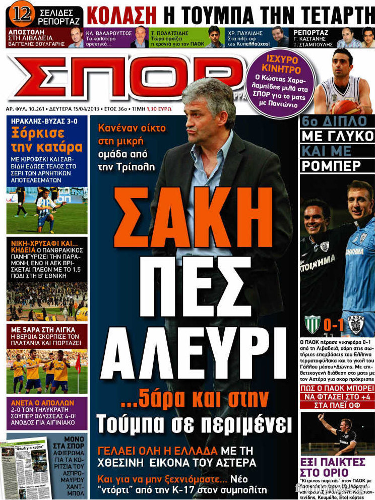 Οι αθλητικές εφημερίδες Enikos Newsroom 08:37, Δευτέρα 15 Απριλίου 2013 Media Οι αθλητικές εφημερίδες Τα πρωτοσέλιδα των αθλητικών εφημερίδων. ΑΘΛΗΤΙΚΕΣ ΕΦΗΜΕΡΙΔΕΣ ΕΦΗΜΕΡΙΔΕΣ ΠΡΩΤΟΣΕΛΙΔΑ Μοιράσου το: σχολίασε κι εσύ (0 σχόλια) Ακολουθήστε το enikos.gr στο Google News και μάθετε πρώτοι όλες τις ειδήσεις Δείτε όλες τις τελευταίες ειδήσεις από την Ελλάδα και τον Κόσμο στο enikos.gr Ειδήσεις Ροή Ειδήσεων 3 ώρες πριν Ακίλα Σάλεχ: «Άκυρο» το τουρκολιβυκό μνημόνιο λέει ο πρόεδρος της λιβυκής Βουλής – Ανοίγει ο διάλογος με Ελλάδα, Αίγυπτο και Τουρκία 8 ώρες πριν Αγρότες: Την Τρίτη η απόφαση για διάλογο ή κλιμάκωση των κινητοποιήσεών τους – Πώς χαρακτηρίζουν τις ανακοινώσεις Τσιάρα και οι επόμενες κινήσεις 7 ώρες πριν Τραμπ για Ουκρανία: «Είμαστε πιο κοντά σε συμφωνία από ποτέ» – «Πολυεθνική δύναμη» προτείνουν οι Ευρωπαίοι 7 ώρες πριν Κυψέλη: Η 16χρονη που μαχαίρωσε την 14χρονη είχε συλληφθεί 3 φορές στο παρελθόν – Έβριζε καθηγητές, έβαζε φωτιές σε κάδους και εκβίαζε συμμαθητές της 7 ώρες πριν Τρομοκρατική επίθεση στο Σίδνεϊ: Θλίψη για τα 15 θύματα – Οργή στην εβραϊκή κοινότητα που προειδοποιούσε επί δύο χρόνια 7 ώρες πριν Επιστήμονες ίσως έλυσαν το μυστήριο γύρω από τα Χόμπιτ – Νέα έρευνα αποκαλύπτει πώς εξαφανίστηκαν 8 ώρες πριν Ύπνος: Η αρχαία μορφή άσκησης που αποδεικνύεται αποτελεσματική στην αντιμετώπιση της αϋπνίας, σύμφωνα με μελέτη 9 ώρες πριν Αριθμολογία: Ο τυχερός σας αριθμός, ανάλογα με τον μήνα γέννησής σας 10 ώρες πριν Πώς να μην μαραίνονται γρήγορα τα κομμένα λουλούδια: Το λάθος στην τοποθέτηση του βάζου που πρέπει να αποφεύγετε 37 δευτερόλεπτα πριν Δώρο Χριστουγέννων 2025: Ποιοι εργαζόμενοι το δικαιούνται – Η online εφαρμογή της ΓΣΕΕ για να το υπολογίσετε 9 λεπτά πριν Υψηλή χοληστερίνη: Γιατρός αποκαλύπτει δύο τρόπους για να την μειώσετε χωρίς φαρμακευτική αγωγή 16 λεπτά πριν Σαν σήμερα 16 Δεκεμβρίου: Τα σημαντικότερα γεγονότα της ημέρας 21 λεπτά πριν Οι οικονομικές εφημερίδες 16/12/2025 26 λεπτά πριν Οι αθλητικές εφημερίδες 16/12/2025 ENIKOS NETWORK Πότε το χρόνιο ροχαλητό να αποτελέσει ένδειξη κινδύνου για την καρδιά; Τι λένε οι ειδικοί Μάριος Θεμιστοκλέους: Το ΕΣΥ ενισχύεται, εκσυγχρονίζεται, αλλάζει ΕΒΕΠ για αγροτικές κινητοποιήσεις: Κάθε επιπλέον εβδομάδα προσθέτει περίπου 200 εκατ. ευρώ ζημιά Τι προβλέπει το νομοσχέδιο του υπουργείου Εθνικής Άμυνας – Oι αλλαγές στους μισθούς Σύγχρονος Νοστράδαμος: Προειδοποιεί για «μεγάλο γεγονός» τους επόμενους μήνες που θα συγκλονίσει τη Βρετανία και τον κόσμο Τεστ παρατηρητικότητας: Μπορείτε να βρείτε τις 3 διαφορές στις εικόνες με έναν πιγκουίνο σε 14 δευτερόλεπτα περισσότερα 05:48 , Τρίτη 16 Δεκεμβρίου 2025 Οι οικονομικές εφημερίδες 16/12/2025 Διαβάστε τα πρωτοσέλιδα από τις οικονομικές εφημερίδες, σήμερα 16/12/2025. 05:43 , Τρίτη 16 Δεκεμβρίου 2025 Οι αθλητικές εφημερίδες 16/12/2025 Διαβάστε τα πρωτοσέλιδα από τις αθλητικές εφημερίδες, σήμερα 16/12/2025. 05:38 , Τρίτη 16 Δεκεμβρίου 2025 Οι πολιτικές εφημερίδες 16/12/2025 Διαβάστε τα πρωτοσέλιδα από τις πολιτικές εφημερίδες, σήμερα 16/12/2025. 21:35 , Δευτέρα 15 Δεκεμβρίου 2025 Το Σπίτι Δίπλα Στο Ποτάμι: Η Ιουλία και ο Φωκάς μετακομίζουν στη Ρόδο – Δύο νέοι χαρακτήρες μπαίνουν στη σειρά Δύο νέοι, κομβικοί χαρακτήρες κάνουν την εμφάνισή τους αυτή την εβδομάδα στην αγαπημένη σειρά ... ΤΕΛΕΥΤΑΙΕΣ ΕΙΔΗΣΕΙΣ 9 λεπτά πριν Υψηλή χοληστερίνη: Γιατρός αποκαλύπτει δύο τρόπους... 16 λεπτά πριν Σαν σήμερα 16 Δεκεμβρίου: Τα σημαντικότερα γεγονότα... 2