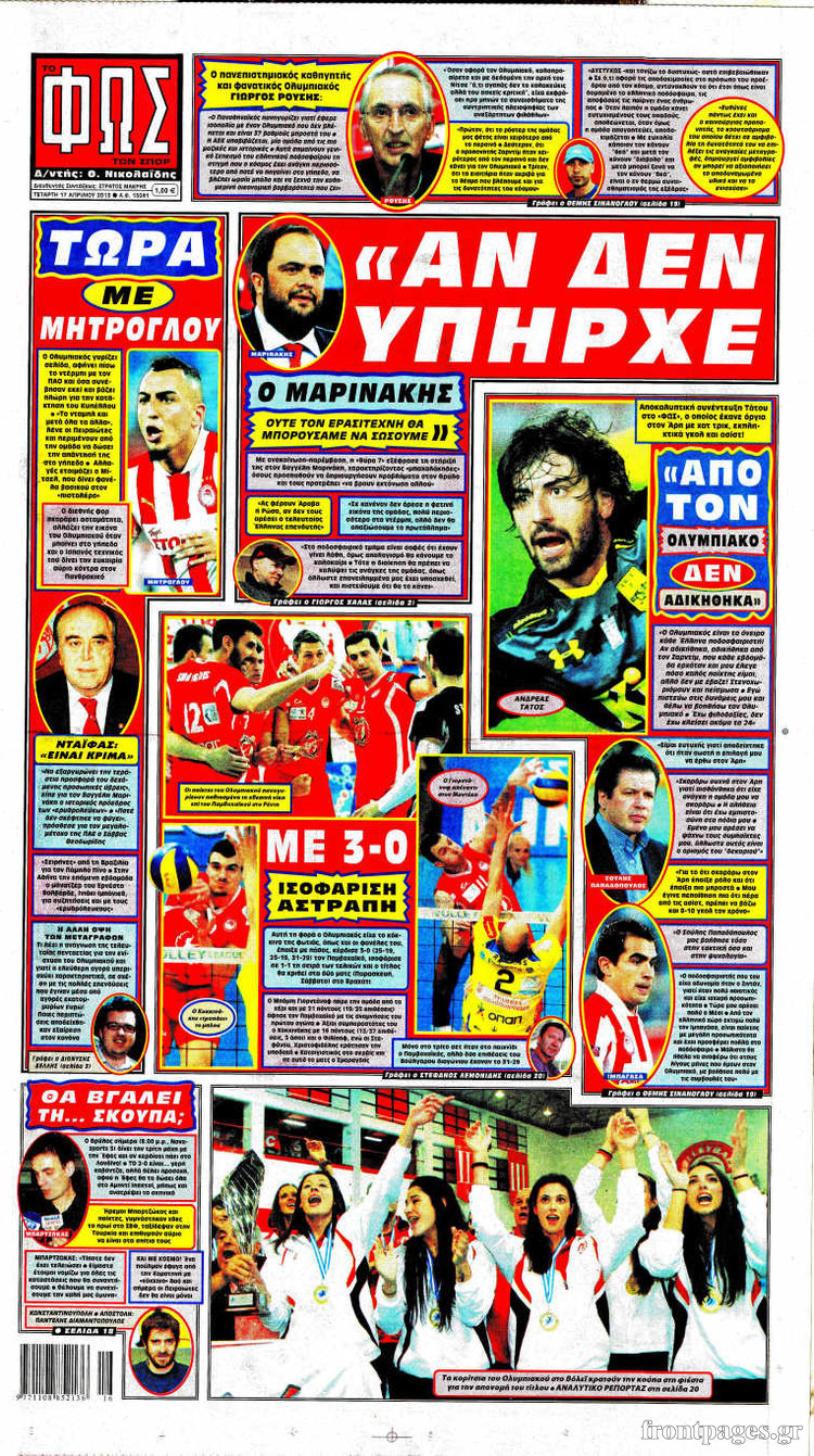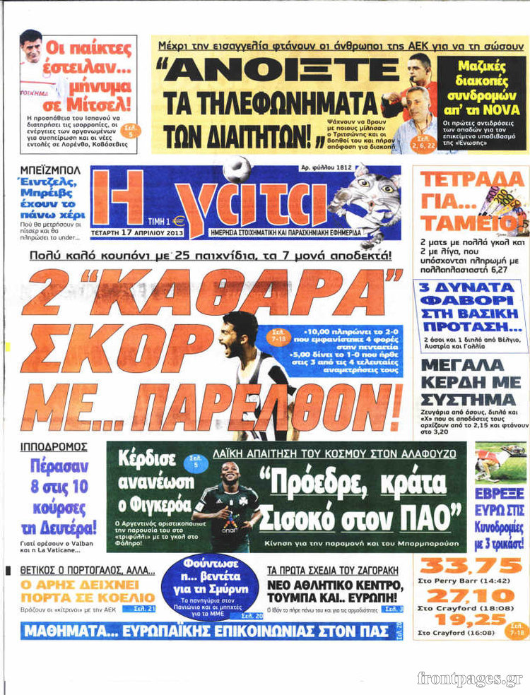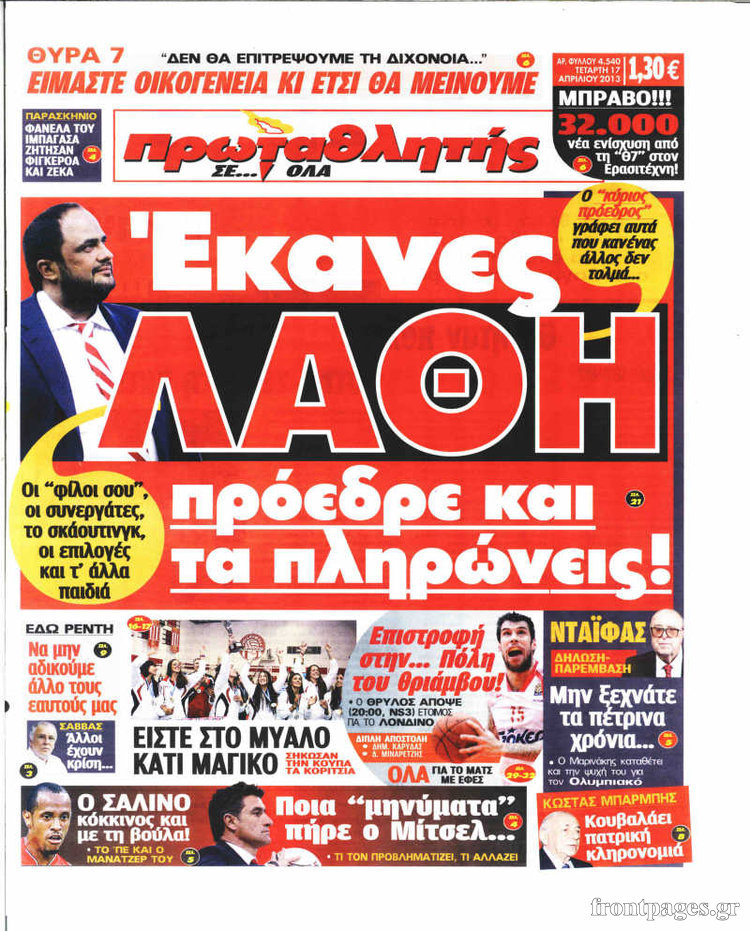 Οι αθλητικές εφημερίδες Enikos Newsroom 08:37, Τετάρτη 17 Απριλίου 2013 Media Οι αθλητικές εφημερίδες Τα πρωτοσέλιδα των αθλητικών εφημερίδων. ΑΘΛΗΤΙΚΕΣ ΕΦΗΜΕΡΙΔΕΣ ΕΦΗΜΕΡΙΔΕΣ ΠΡΩΤΟΣΕΛΙΔΑ Μοιράσου το: σχολίασε κι εσύ (0 σχόλια) Ακολουθήστε το enikos.gr στο Google News και μάθετε πρώτοι όλες τις ειδήσεις Δείτε όλες τις τελευταίες ειδήσεις από την Ελλάδα και τον Κόσμο στο enikos.gr Ειδήσεις Ροή Ειδήσεων 3 ώρες πριν Ακίλα Σάλεχ: «Άκυρο» το τουρκολιβυκό μνημόνιο λέει ο πρόεδρος της λιβυκής Βουλής – Ανοίγει ο διάλογος με Ελλάδα, Αίγυπτο και Τουρκία 8 ώρες πριν Αγρότες: Την Τρίτη η απόφαση για διάλογο ή κλιμάκωση των κινητοποιήσεών τους – Πώς χαρακτηρίζουν τις ανακοινώσεις Τσιάρα και οι επόμενες κινήσεις 7 ώρες πριν Τραμπ για Ουκρανία: «Είμαστε πιο κοντά σε συμφωνία από ποτέ» – «Πολυεθνική δύναμη» προτείνουν οι Ευρωπαίοι 7 ώρες πριν Κυψέλη: Η 16χρονη που μαχαίρωσε την 14χρονη είχε συλληφθεί 3 φορές στο παρελθόν – Έβριζε καθηγητές, έβαζε φωτιές σε κάδους και εκβίαζε συμμαθητές της 7 ώρες πριν Τρομοκρατική επίθεση στο Σίδνεϊ: Θλίψη για τα 15 θύματα – Οργή στην εβραϊκή κοινότητα που προειδοποιούσε επί δύο χρόνια 7 ώρες πριν Επιστήμονες ίσως έλυσαν το μυστήριο γύρω από τα Χόμπιτ – Νέα έρευνα αποκαλύπτει πώς εξαφανίστηκαν 8 ώρες πριν Ύπνος: Η αρχαία μορφή άσκησης που αποδεικνύεται αποτελεσματική στην αντιμετώπιση της αϋπνίας, σύμφωνα με μελέτη 9 ώρες πριν Αριθμολογία: Ο τυχερός σας αριθμός, ανάλογα με τον μήνα γέννησής σας 10 ώρες πριν Πώς να μην μαραίνονται γρήγορα τα κομμένα λουλούδια: Το λάθος στην τοποθέτηση του βάζου που πρέπει να αποφεύγετε 59 δευτερόλεπτα πριν Δώρο Χριστουγέννων 2025: Ποιοι εργαζόμενοι το δικαιούνται – Η online εφαρμογή της ΓΣΕΕ για να το υπολογίσετε 9 λεπτά πριν Υψηλή χοληστερίνη: Γιατρός αποκαλύπτει δύο τρόπους για να την μειώσετε χωρίς φαρμακευτική αγωγή 17 λεπτά πριν Σαν σήμερα 16 Δεκεμβρίου: Τα σημαντικότερα γεγονότα της ημέρας 21 λεπτά πριν Οι οικονομικές εφημερίδες 16/12/2025 26 λεπτά πριν Οι αθλητικές εφημερίδες 16/12/2025 ENIKOS NETWORK Πότε το χρόνιο ροχαλητό να αποτελέσει ένδειξη κινδύνου για την καρδιά; Τι λένε οι ειδικοί Μάριος Θεμιστοκλέους: Το ΕΣΥ ενισχύεται, εκσυγχρονίζεται, αλλάζει ΕΒΕΠ για αγροτικές κινητοποιήσεις: Κάθε επιπλέον εβδομάδα προσθέτει περίπου 200 εκατ. ευρώ ζημιά Τι προβλέπει το νομοσχέδιο του υπουργείου Εθνικής Άμυνας – Oι αλλαγές στους μισθούς Σύγχρονος Νοστράδαμος: Προειδοποιεί για «μεγάλο γεγονός» τους επόμενους μήνες που θα συγκλονίσει τη Βρετανία και τον κόσμο Τεστ παρατηρητικότητας: Μπορείτε να βρείτε τις 3 διαφορές στις εικόνες με έναν πιγκουίνο σε 14 δευτερόλεπτα περισσότερα 05:48 , Τρίτη 16 Δεκεμβρίου 2025 Οι οικονομικές εφημερίδες 16/12/2025 Διαβάστε τα πρωτοσέλιδα από τις οικονομικές εφημερίδες, σήμερα 16/12/2025. 05:43 , Τρίτη 16 Δεκεμβρίου 2025 Οι αθλητικές εφημερίδες 16/12/2025 Διαβάστε τα πρωτοσέλιδα από τις αθλητικές εφημερίδες, σήμερα 16/12/2025. 05:38 , Τρίτη 16 Δεκεμβρίου 2025 Οι πολιτικές εφημερίδες 16/12/2025 Διαβάστε τα πρωτοσέλιδα από τις πολιτικές εφημερίδες, σήμερα 16/12/2025. 21:35 , Δευτέρα 15 Δεκεμβρίου 2025 Το Σπίτι Δίπλα Στο Ποτάμι: Η Ιουλία και ο Φωκάς μετακομίζουν στη Ρόδο – Δύο νέοι χαρακτήρες μπαίνουν στη σειρά Δύο νέοι, κομβικοί χαρακτήρες κάνουν την εμφάνισή τους αυτή την εβδομάδα στην αγαπημένη σειρά ... ΤΕΛΕΥΤΑΙΕΣ ΕΙΔΗΣΕΙΣ 9 λεπτά πριν Υψηλή χοληστερίνη: Γιατρός αποκαλύπτει δύο τρόπους... 17 λεπτά πριν Σαν σήμερα 16 Δεκεμβρίου: Τα σημαντικότερα γεγονότα... 2