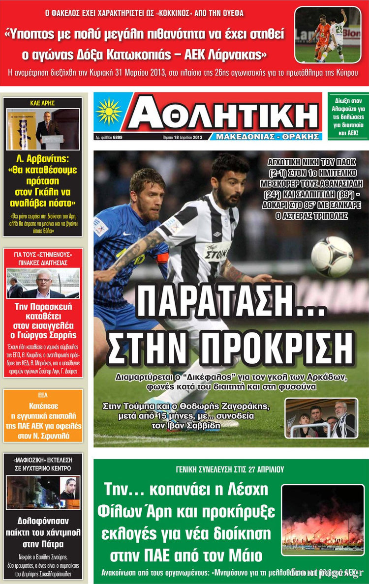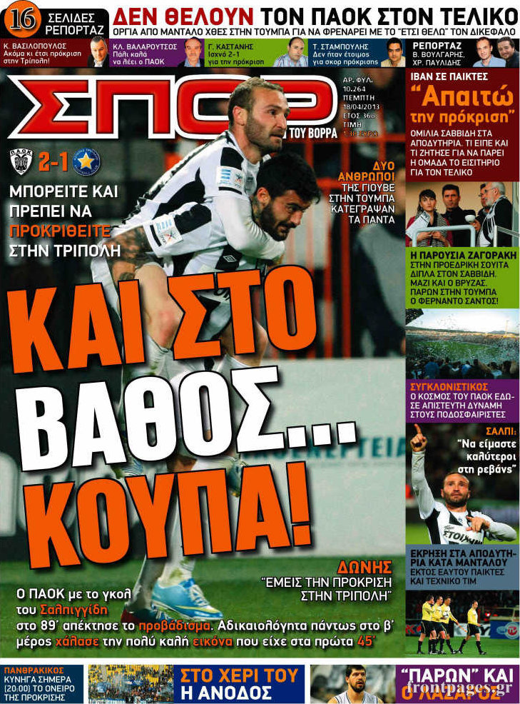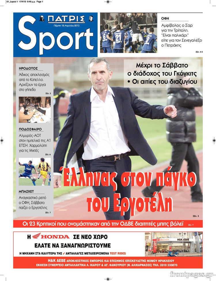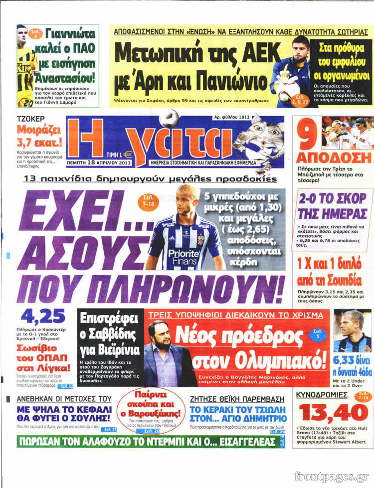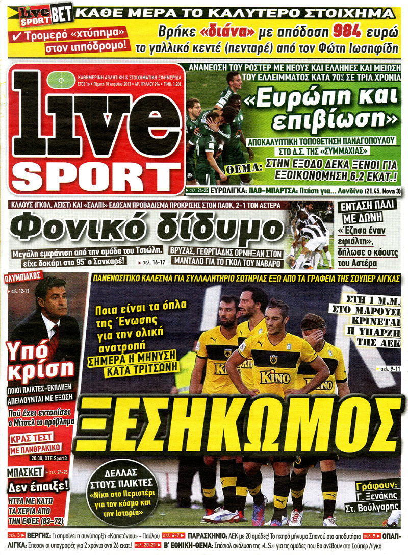 Οι αθλητικές εφημερίδες Enikos Newsroom 08:25, Πέμπτη 18 Απριλίου 2013 Media Οι αθλητικές εφημερίδες Τα πρωτοσέλιδα των αθλητικών εφημερίδων. ΑΘΛΗΤΙΚΕΣ ΕΦΗΜΕΡΙΔΕΣ ΕΦΗΜΕΡΙΔΕΣ ΠΡΩΤΟΣΕΛΙΔΑ Μοιράσου το: σχολίασε κι εσύ (0 σχόλια) Ακολουθήστε το enikos.gr στο Google News και μάθετε πρώτοι όλες τις ειδήσεις Δείτε όλες τις τελευταίες ειδήσεις από την Ελλάδα και τον Κόσμο στο enikos.gr Ειδήσεις Ροή Ειδήσεων 3 ώρες πριν Ακίλα Σάλεχ: «Άκυρο» το τουρκολιβυκό μνημόνιο λέει ο πρόεδρος της λιβυκής Βουλής – Ανοίγει ο διάλογος με Ελλάδα, Αίγυπτο και Τουρκία 7 ώρες πριν Αγρότες: Την Τρίτη η απόφαση για διάλογο ή κλιμάκωση των κινητοποιήσεών τους – Πώς χαρακτηρίζουν τις ανακοινώσεις Τσιάρα και οι επόμενες κινήσεις 7 ώρες πριν Τραμπ για Ουκρανία: «Είμαστε πιο κοντά σε συμφωνία από ποτέ» – «Πολυεθνική δύναμη» προτείνουν οι Ευρωπαίοι 7 ώρες πριν Κυψέλη: Η 16χρονη που μαχαίρωσε την 14χρονη είχε συλληφθεί 3 φορές στο παρελθόν – Έβριζε καθηγητές, έβαζε φωτιές σε κάδους και εκβίαζε συμμαθητές της 7 ώρες πριν Τρομοκρατική επίθεση στο Σίδνεϊ: Θλίψη για τα 15 θύματα – Οργή στην εβραϊκή κοινότητα που προειδοποιούσε επί δύο χρόνια 7 ώρες πριν Επιστήμονες ίσως έλυσαν το μυστήριο γύρω από τα Χόμπιτ – Νέα έρευνα αποκαλύπτει πώς εξαφανίστηκαν 8 ώρες πριν Ύπνος: Η αρχαία μορφή άσκησης που αποδεικνύεται αποτελεσματική στην αντιμετώπιση της αϋπνίας, σύμφωνα με μελέτη 9 ώρες πριν Αριθμολογία: Ο τυχερός σας αριθμός, ανάλογα με τον μήνα γέννησής σας 10 ώρες πριν Πώς να μην μαραίνονται γρήγορα τα κομμένα λουλούδια: Το λάθος στην τοποθέτηση του βάζου που πρέπει να αποφεύγετε 29 δευτερόλεπτα πριν Δώρο Χριστουγέννων 2025: Ποιοι εργαζόμενοι το δικαιούνται – Η online εφαρμογή της ΓΣΕΕ για να το υπολογίσετε 8 λεπτά πριν Υψηλή χοληστερίνη: Γιατρός αποκαλύπτει δύο τρόπους για να την μειώσετε χωρίς φαρμακευτική αγωγή 16 λεπτά πριν Σαν σήμερα 16 Δεκεμβρίου: Τα σημαντικότερα γεγονότα της ημέρας 21 λεπτά πριν Οι οικονομικές εφημερίδες 16/12/2025 26 λεπτά πριν Οι αθλητικές εφημερίδες 16/12/2025 ENIKOS NETWORK Πότε το χρόνιο ροχαλητό να αποτελέσει ένδειξη κινδύνου για την καρδιά; Τι λένε οι ειδικοί Μάριος Θεμιστοκλέους: Το ΕΣΥ ενισχύεται, εκσυγχρονίζεται, αλλάζει ΕΒΕΠ για αγροτικές κινητοποιήσεις: Κάθε επιπλέον εβδομάδα προσθέτει περίπου 200 εκατ. ευρώ ζημιά Τι προβλέπει το νομοσχέδιο του υπουργείου Εθνικής Άμυνας – Oι αλλαγές στους μισθούς Σύγχρονος Νοστράδαμος: Προειδοποιεί για «μεγάλο γεγονός» τους επόμενους μήνες που θα συγκλονίσει τη Βρετανία και τον κόσμο Τεστ παρατηρητικότητας: Μπορείτε να βρείτε τις 3 διαφορές στις εικόνες με έναν πιγκουίνο σε 14 δευτερόλεπτα περισσότερα 05:48 , Τρίτη 16 Δεκεμβρίου 2025 Οι οικονομικές εφημερίδες 16/12/2025 Διαβάστε τα πρωτοσέλιδα από τις οικονομικές εφημερίδες, σήμερα 16/12/2025. 05:43 , Τρίτη 16 Δεκεμβρίου 2025 Οι αθλητικές εφημερίδες 16/12/2025 Διαβάστε τα πρωτοσέλιδα από τις αθλητικές εφημερίδες, σήμερα 16/12/2025. 05:38 , Τρίτη 16 Δεκεμβρίου 2025 Οι πολιτικές εφημερίδες 16/12/2025 Διαβάστε τα πρωτοσέλιδα από τις πολιτικές εφημερίδες, σήμερα 16/12/2025. 21:35 , Δευτέρα 15 Δεκεμβρίου 2025 Το Σπίτι Δίπλα Στο Ποτάμι: Η Ιουλία και ο Φωκάς μετακομίζουν στη Ρόδο – Δύο νέοι χαρακτήρες μπαίνουν στη σειρά Δύο νέοι, κομβικοί χαρακτήρες κάνουν την εμφάνισή τους αυτή την εβδομάδα στην αγαπημένη σειρά ... ΤΕΛΕΥΤΑΙΕΣ ΕΙΔΗΣΕΙΣ 8 λεπτά πριν Υψηλή χοληστερίνη: Γιατρός αποκαλύπτει δύο τρόπους... 16 λεπτά πριν Σαν σήμερα 16 Δεκεμβρίου: Τα σημαντικότερα γεγονότα... 21 