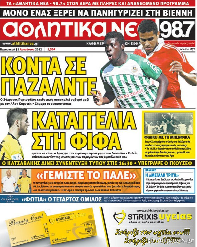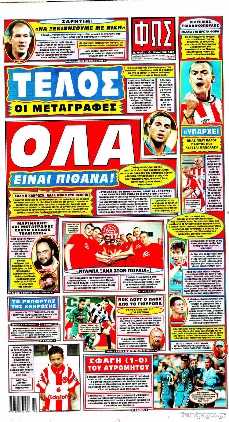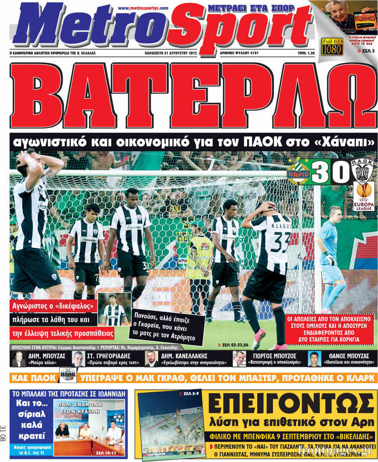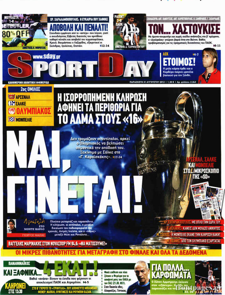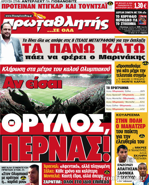 Τα πρωτοσέλιδα των σημερινών αθλητικών εφημερίδων.