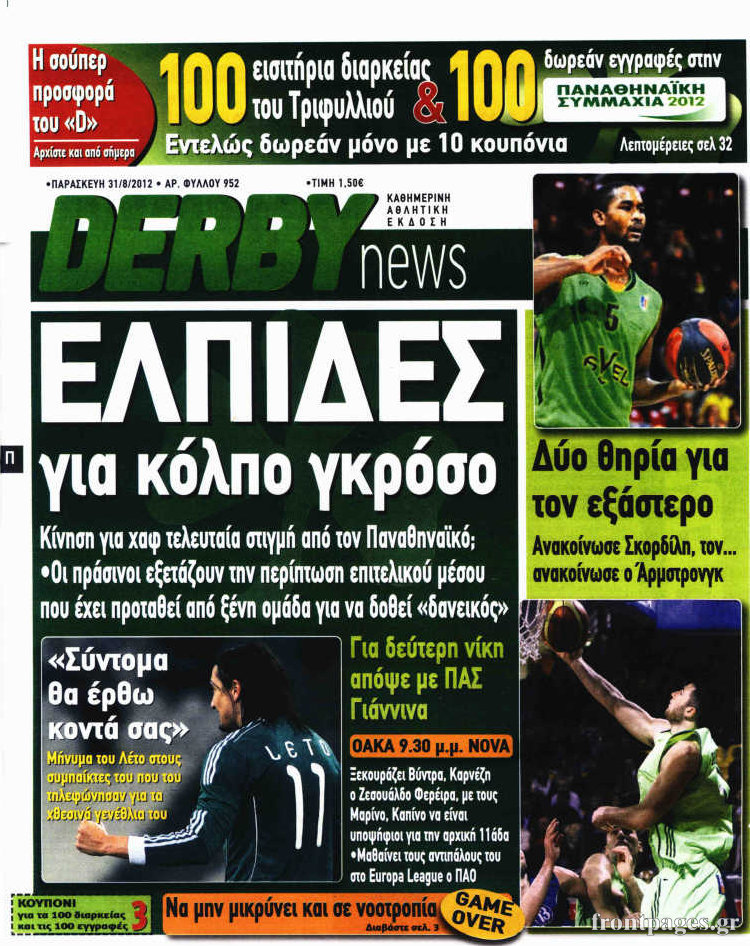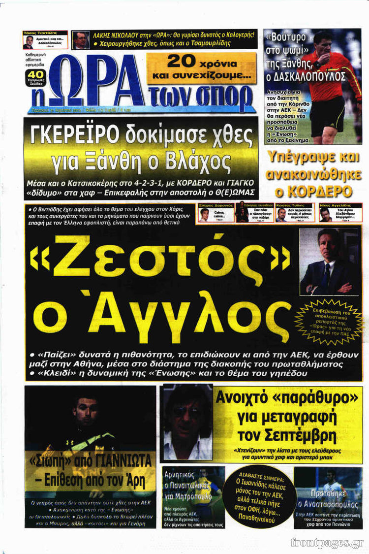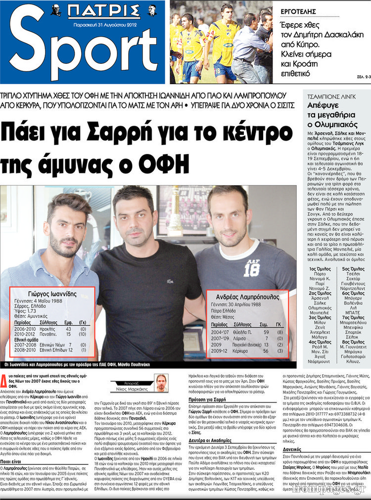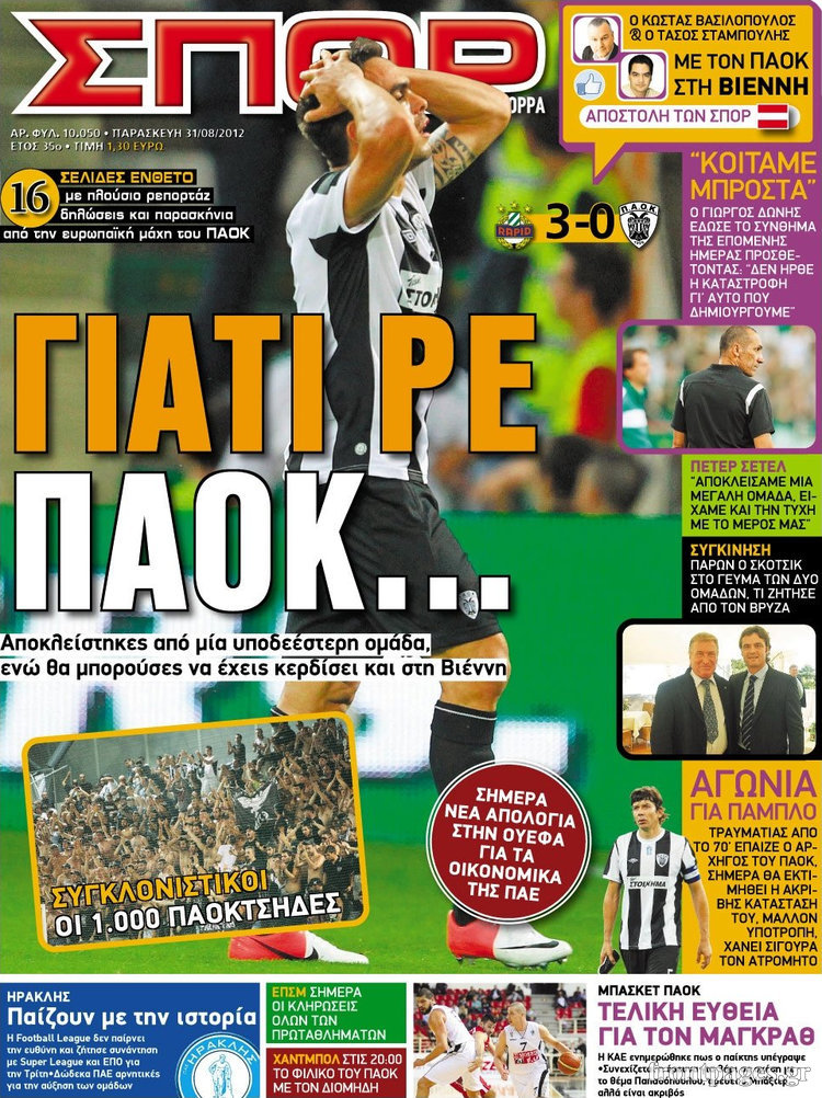 Τα πρωτοσέλιδα των σημερινών αθλητικών εφημερίδων.