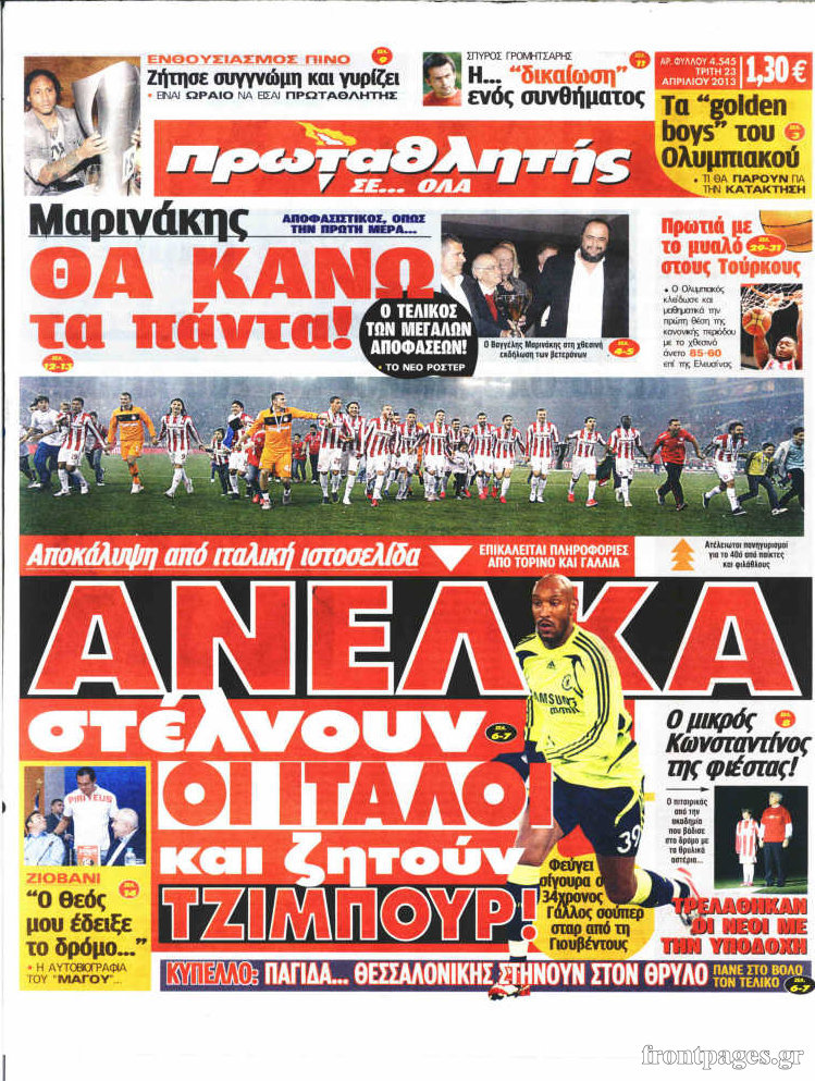 Οι αθλητικές εφημερίδες Enikos Newsroom 08:53, Τρίτη 23 Απριλίου 2013 Media Οι αθλητικές εφημερίδες Τα πρωτοσέλιδα των αθλητικών εφημερίδων. ΑΘΛΗΤΙΚΕΣ ΕΦΗΜΕΡΙΔΕΣ ΕΦΗΜΕΡΙΔΕΣ ΠΡΩΤΟΣΕΛΙΔΑ Μοιράσου το: σχολίασε κι εσύ (0 σχόλια) Ακολουθήστε το enikos.gr στο Google News και μάθετε πρώτοι όλες τις ειδήσεις Δείτε όλες τις τελευταίες ειδήσεις από την Ελλάδα και τον Κόσμο στο enikos.gr Ειδήσεις Ροή Ειδήσεων 3 ώρες πριν Ακίλα Σάλεχ: «Άκυρο» το τουρκολιβυκό μνημόνιο λέει ο πρόεδρος της λιβυκής Βουλής – Ανοίγει ο διάλογος με Ελλάδα, Αίγυπτο και Τουρκία 7 ώρες πριν Αγρότες: Την Τρίτη η απόφαση για διάλογο ή κλιμάκωση των κινητοποιήσεών τους – Πώς χαρακτηρίζουν τις ανακοινώσεις Τσιάρα και οι επόμενες κινήσεις 7 ώρες πριν Τραμπ για Ουκρανία: «Είμαστε πιο κοντά σε συμφωνία από ποτέ» – «Πολυεθνική δύναμη» προτείνουν οι Ευρωπαίοι 7 ώρες πριν Κυψέλη: Η 16χρονη που μαχαίρωσε την 14χρονη είχε συλληφθεί 3 φορές στο παρελθόν – Έβριζε καθηγητές, έβαζε φωτιές σε κάδους και εκβίαζε συμμαθητές της 6 ώρες πριν Τρομοκρατική επίθεση στο Σίδνεϊ: Θλίψη για τα 15 θύματα – Οργή στην εβραϊκή κοινότητα που προειδοποιούσε επί δύο χρόνια 7 ώρες πριν Επιστήμονες ίσως έλυσαν το μυστήριο γύρω από τα Χόμπιτ – Νέα έρευνα αποκαλύπτει πώς εξαφανίστηκαν 8 ώρες πριν Ύπνος: Η αρχαία μορφή άσκησης που αποδεικνύεται αποτελεσματική στην αντιμετώπιση της αϋπνίας, σύμφωνα με μελέτη 9 ώρες πριν Αριθμολογία: Ο τυχερός σας αριθμός, ανάλογα με τον μήνα γέννησής σας 10 ώρες πριν Πώς να μην μαραίνονται γρήγορα τα κομμένα λουλούδια: Το λάθος στην τοποθέτηση του βάζου που πρέπει να αποφεύγετε 4 λεπτά πριν Οι αθλητικές εφημερίδες 16/12/2025 9 λεπτά πριν Οι πολιτικές εφημερίδες 16/12/2025 17 λεπτά πριν Τα ζώδια σήμερα, Τρίτη 16 Δεκεμβρίου: Ιχθύες, δεν χρειάζεται να έχετε όλες τις απαντήσεις 25 λεπτά πριν Εφημερεύοντα φαρμακεία σε Αθήνα και Θεσσαλονίκη (16/12) 32 λεπτά πριν Οκτώ νεκροί σε πλήγματα των ΗΠΑ κατά τριών σκαφών που φέρεται να μετέφεραν ναρκωτικά στον Ανατολικό Ειρηνικό ENIKOS NETWORK Πότε το χρόνιο ροχαλητό να αποτελέσει ένδειξη κινδύνου για την καρδιά; Τι λένε οι ειδικοί Μάριος Θεμιστοκλέους: Το ΕΣΥ ενισχύεται, εκσυγχρονίζεται, αλλάζει ΕΒΕΠ για αγροτικές κινητοποιήσεις: Κάθε επιπλέον εβδομάδα προσθέτει περίπου 200 εκατ. ευρώ ζημιά Τι προβλέπει το νομοσχέδιο του υπουργείου Εθνικής Άμυνας – Oι αλλαγές στους μισθούς Σύγχρονος Νοστράδαμος: Προειδοποιεί για «μεγάλο γεγονός» τους επόμενους μήνες που θα συγκλονίσει τη Βρετανία και τον κόσμο Τεστ παρατηρητικότητας: Μπορείτε να βρείτε τις 3 διαφορές στις εικόνες με έναν πιγκουίνο σε 14 δευτερόλεπτα περισσότερα 05:43 , Τρίτη 16 Δεκεμβρίου 2025 Οι αθλητικές εφημερίδες 16/12/2025 Διαβάστε τα πρωτοσέλιδα από τις αθλητικές εφημερίδες, σήμερα 16/12/2025. 05:38 , Τρίτη 16 Δεκεμβρίου 2025 Οι πολιτικές εφημερίδες 16/12/2025 Διαβάστε τα πρωτοσέλιδα από τις πολιτικές εφημερίδες, σήμερα 16/12/2025. 21:35 , Δευτέρα 15 Δεκεμβρίου 2025 Το Σπίτι Δίπλα Στο Ποτάμι: Η Ιουλία και ο Φωκάς μετακομίζουν στη Ρόδο – Δύο νέοι χαρακτήρες μπαίνουν στη σειρά Δύο νέοι, κομβικοί χαρακτήρες κάνουν την εμφάνισή τους αυτή την εβδομάδα στην αγαπημένη σειρά ... 19:46 , Δευτέρα 15 Δεκεμβρίου 2025 Άγιος έρωτας: Η Χριστίνα λέει την αλήθεια στον Αντρέα Ο Βασίλης δέχεται επίθεση από τους συμμαθητές του, η Αναστασία είναι συντετριμμένη με την απώλ... ΤΕΛΕΥΤΑΙΕΣ ΕΙΔΗΣΕΙΣ 4 λεπτά πριν Οι αθλητικές εφημερίδες 16/12/2025 9 λεπτά πριν Οι πολιτικές εφημερίδες 16/12/2025 17 λεπτά πριν Τα ζώδια σ