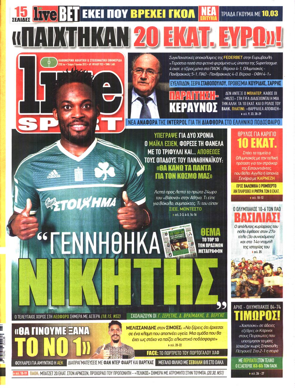 Οι αθλητικές εφημερίδες 3/6/2015 Enikos Newsroom 07:10, Τετάρτη 03 Ιουνίου 2015 Media Διαβάστε τα σημερινά πρωτοσέλιδα των αθλητικών εφημερίδων: ΑΘΛΗΤΙΚΕΣ ΕΦΗΜΕΡΙΔΕΣ ΠΡΩΤΟΣΕΛΙΔΑ Μοιράσου το: σχολίασε κι εσύ (0 σχόλια) Ακολουθήστε το enikos.gr στο Google News και μάθετε πρώτοι όλες τις ειδήσεις Δείτε όλες τις τελευταίες ειδήσεις από την Ελλάδα και τον Κόσμο στο enikos.gr Ειδήσεις Ροή Ειδήσεων 3 ώρες πριν Από το Ορμένιο ως τα Μάλγαρα κι από τη Σιάτιστα μέχρι τη Νίκαια: Μπλόκα σε όλη την Ελλάδα – Το Σάββατο ανοίγουν τα διόδια οι αγρότες 1 ώρα πριν Εμπλοκή και αερομαχίες με οπλισμένα τουρκικά F-16 στο Αιγαίο 3 ώρες πριν Αττική: Θρίλερ με νεκρό βρέφος 5 μηνών – Κοιμόταν στο ίδιο κρεβάτι με τους γονείς του 55 λεπτά πριν Πούτιν: «Ναι, είμαι ερωτευμένος» – Βίντεο από τη σπάνια προσωπική παραδοχή του 3 ώρες πριν Μεσόγειος: Η διαδρομή του ρωσικού τάνκερ «Qendil» και η στοχευμένη επίθεση της Ουκρανίας με drone – Ο Πούτιν προειδοποίησε για αντίποινα 5 ώρες πριν Τα 5 ζώδια που ευνοούνται στην ερωτική ζωή τους την επόμενη εβδομάδα – «Η ενέργεια του Αιγόκερου φέρνει αγάπη και σταθερότητα» 6 ώρες πριν Αυτό το έξυπνο μαθηματικό κόλπο θα μπορούσε να αλλάξει τον τρόπο με τον οποίο οι επιστήμονες μελετούν τους σεισμούς 2 ώρες πριν Μήπως έχετε χάσει τον εαυτό σας στη σχέση σας; 7 «αθόρυβες» υποχωρήσεις που μάλλον κάνατε, χωρίς να το συνειδητοποιήσετε 4 ώρες πριν Κουίζ για την παλιά Αθήνα: Αναγνωρίζετε την περιοχή; Έχετε περάσει 100% από εκεί 6 λεπτά πριν Don’t Forget The Lyrics: Η Έλλη Κοκκίνου υποδέχεται 4 παίκτες που θα κάνουν τα πάντα για να μη χάσουν ούτε… μισή λέξη από τους στίχους 12 λεπτά πριν Πλεύρης στον ΑΝΤ1: Η βασική πολιτική που ψηφίστηκε από τους υπουργούς Μετανάστευσης είναι η δημιουργία κέντρων κράτησης μεταναστών στην Αφρική – ΒΙΝΤΕΟ 17 λεπτά πριν Η εξομολόγηση της Νίκης Σερέτη: «Δεν κρύβω ότι ήταν πάρα πολύ δύσκολο όλο αυτό που βίωσα» 22 λεπτά πριν Αγρότες: Κλειστό ξανά το ρεύμα εισόδου στα Μάλγαρα – Άνοιξαν τον κόμβο της Χαλκηδόνας 28 λεπτά πριν Νίκος Γιαννόπουλος: «Μου επιτέθηκε ο Παππάς – Ήμουν νηφάλιος, δεν τον προκάλεσα» – ΒΙΝΤΕΟ ENIKOS NETWORK Έχετε πραγματικά μεγάλη καρδιά; 10 χαρακτηριστικά όσων έχουν καλοσύνη «Η σούπερ» γρίπη εξαπλώνεται στην Ευρώπη-Στοιχεία από το ECDC για την αποτελεσματικότητα του εμβολίου Επίδομα παιδιού: Πότε ανοίγει ξανά η πλατφόρμα για τις αιτήσεις Προκήρυξη ΑΣΕΠ για 397 μόνιμες προσλήψεις στο Δημόσιο: Βγήκαν τα προσωρινά αποτελέσματα – Πότε αρχίζει η υποβολή ενστάσεων Χαρτογραφώντας το «σημείο χωρίς επιστροφή»: Για πρώτη φορά αποκαλύπτεται με λεπτομέρεια το ακανθώδες όριο της ατμόσφαιρας τ... Η Google καταργεί τη λειτουργία «dark web report» – Πώς θα μπορούν οι χρήστες να διαγράφουν τα δεδομένα τους περισσότερα 20:37 , Παρασκευή 19 Δεκεμβρίου 2025 Don’t Forget The Lyrics: Η Έλλη Κοκκίνου υποδέχεται 4 παίκτες που θα κάνουν τα πάντα για να μη χάσουν ούτε… μισή λέξη από τους στίχους Το «Don’t Forget The Lyrics» επιστρέφει απόψε, Παρασκευή 19 Δεκεμβρίου, στις 21:00 με νέο επει... 19:31 , Παρασκευή 19 Δεκεμβρίου 2025 GNTM: Απόψε ο μεγάλος τελικός για τους 4 φιναλίστ Έπειτα από μήνες γεμάτους μόδα, δημιουργία και έντονες αναμετρήσεις, το GNTM 2025 κορυφώνεται,... 18:11 , Παρασκευή 19 Δεκεμβρίου 2025 Το σόι σου: Ο Άρης έρχεται στην Ελλάδα για τις γιορτές των Χριστουγέννων – Τι θα δούμε στο αποψινό εορταστικό επεισόδιο Ένα απολαυστικό, εορταστικό επεισόδιο της σειράς “Το σόι σου”, γεμάτο ευτράπελα αλ... 15:15 , Παρασκευή 19 Δεκεμβρίου 2025 Την Κυ