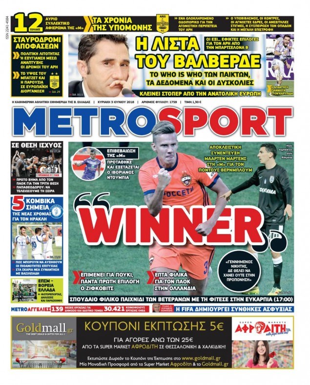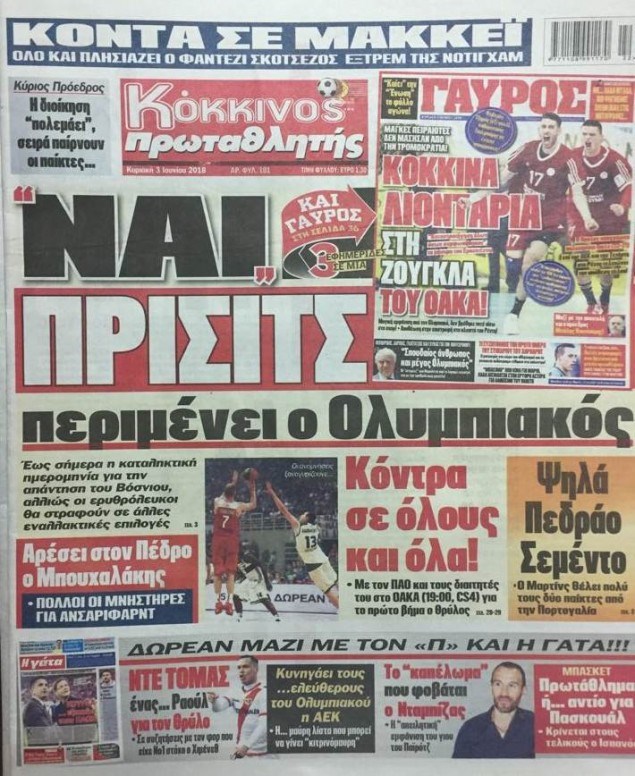 Οι αθλητικές εφημερίδες 3/6/2018 Κώστας Τεό 06:27, Κυριακή 03 Ιουνίου 2018 Media Διαβάστε τα σημερινά πρωτοσέλιδα των αθλητικών εφημερίδων: ΑΘΛΗΤΙΚΕΣ ΕΦΗΜΕΡΙΔΕΣ ΠΡΩΤΟΣΕΛΙΔΑ Μοιράσου το: σχολίασε κι εσύ (0 σχόλια) Ακολουθήστε το enikos.gr στο Google News και μάθετε πρώτοι όλες τις ειδήσεις Δείτε όλες τις τελευταίες ειδήσεις από την Ελλάδα και τον Κόσμο στο enikos.gr Ειδήσεις Ροή Ειδήσεων 13 λεπτά πριν Χριστούγεννα στα μπλόκα: Επιμένουν στις κινητοποιήσεις τους οι αγρότες – Ανοίγουν τα διόδια το Σαββατοκύριακο 42 λεπτά πριν Τραμπ: Δεν αποκλείει την πιθανότητα ενός πολέμου στη Βενεζουέλα – «Ο Μαδούρο ξέρει καλύτερα από τον καθένα τι ακριβώς θέλω» 36 λεπτά πριν Ουκρανία: Η άνευ προηγουμένου επίθεση σε ρωσικό τάνκερ στη Μεσόγειο και το μήνυμα προς στον Πούτιν – Το «μακρύ χέρι» του Κιέβου 3 ώρες πριν Πούτιν: «Ναι, είμαι ερωτευμένος» – Βίντεο από τη σπάνια προσωπική παραδοχή του 1 ώρα πριν Συνεχίζει να προκαλεί ο Μίτσκοσκι: «Για μένα το όνομα Μακεδονία είναι ιερό» 2 ώρες πριν Αριθμολογία: Οι άνθρωποι που έχουν γεννηθεί αυτές τις 4 ημερομηνίες, συχνά παρεξηγούνται – «Η καλοσύνη τους κρύβει τεράστια δύναμη» 4 ώρες πριν Μήπως έχετε χάσει τον εαυτό σας στη σχέση σας; 7 «αθόρυβες» υποχωρήσεις που μάλλον κάνατε, χωρίς να το συνειδητοποιήσετε 3 ώρες πριν Ξεχάστε το καθάρισμα το Σαββατοκύριακο: Ο «κανόνας των 20 λεπτών» που θα σας λύσει τα χέρια 51 λεπτά πριν Ύπνος: Μια κρυφή κατάσταση του εγκεφάλου πριν από τον ύπνο μπορεί να είναι το “κλειδί” για υψηλή ευφυΐα και δημιουργικότητα 3 λεπτά πριν Παναθηναϊκός: «Μέσα» οι Σφιντέρσκι και Τουμπά για το ματς με τον ΠΑΟΚ – Τι έδειξε η μαγνητική του Πάντοβιτς 9 λεπτά πριν Γιώργος Γιαννόπουλος για “Το σόι σου”: “Είναι ευτυχία και ευλογία αυτή η σειρά” 13 λεπτά πριν Χριστούγεννα στα μπλόκα: Επιμένουν στις κινητοποιήσεις τους οι αγρότες – Ανοίγουν τα διόδια το Σαββατοκύριακο 25 λεπτά πριν Χάρι και Μέγκαν: Η σπάνια οικογενειακή φωτογραφία με τον Άρτσι και τη Λίλιμπετ – Τι σχεδιάζουν για τα Χριστούγεννα 31 λεπτά πριν Βασίλης Καρράς: «Είναι πάντα δίπλα μου, δεν έφυγε…», λέει ο αδελφός του ENIKOS NETWORK Το ΕΚΑΒ τιμήθηκε από την Ακαδημία Αθηνών για τα 40 χρόνια προσφοράς του Έχετε πραγματικά μεγάλη καρδιά; 10 χαρακτηριστικά όσων έχουν καλοσύνη Πλήρης επάρκεια προϊόντων στις λαϊκές της Αττικής, παρά τις αγροτικές κινητοποιήσεις – Τι απαντούν οι πωλητές ΑΑΔΕ: Νέες αναβαθμίσεις στο Ψηφιακό Πελατολόγιο και την εφαρμογή myDATAapp – Τι πρέπει να γνωρίζετε Χαρτογραφώντας το «σημείο χωρίς επιστροφή»: Για πρώτη φορά αποκαλύπτεται με λεπτομέρεια το ακανθώδες όριο της ατμόσφαιρας τ... Η Google καταργεί τη λειτουργία «dark web report» – Πώς θα μπορούν οι χρήστες να διαγράφουν τα δεδομένα τους περισσότερα 22:42 , Παρασκευή 19 Δεκεμβρίου 2025 Γιώργος Γιαννόπουλος για “Το σόι σου”: “Είναι ευτυχία και ευλογία αυτή η σειρά” «Είναι ευτυχία και ευλογία η συγκυρία αυτής της σειράς», θα πει ο Γιώργος Γιαννόπουλος -ο αγαπ... 20:37 , Παρασκευή 19 Δεκεμβρίου 2025 Don’t Forget The Lyrics: Η Έλλη Κοκκίνου υποδέχεται 4 παίκτες που θα κάνουν τα πάντα για να μη χάσουν ούτε… μισή λέξη από τους στίχους Το «Don’t Forget The Lyrics» επιστρέφει απόψε, Παρασκευή 19 Δεκεμβρίου, στις 21:00 με νέο επει... 19:31 , Παρασκευή 19 Δεκεμβρίου 2025 GNTM: Απόψε ο μεγάλος τελικός για τους 4 φιναλίστ Έπειτα από μήνες γεμάτους μόδα, δημιουργία και έντονες αναμετρήσεις, το GNTM 2025 κορυφώνεται,... 18:11 , Παρασκευή 19 Δεκεμβρίου 2025 Το σόι σου: Ο Άρης έρχεται στην Ελλ