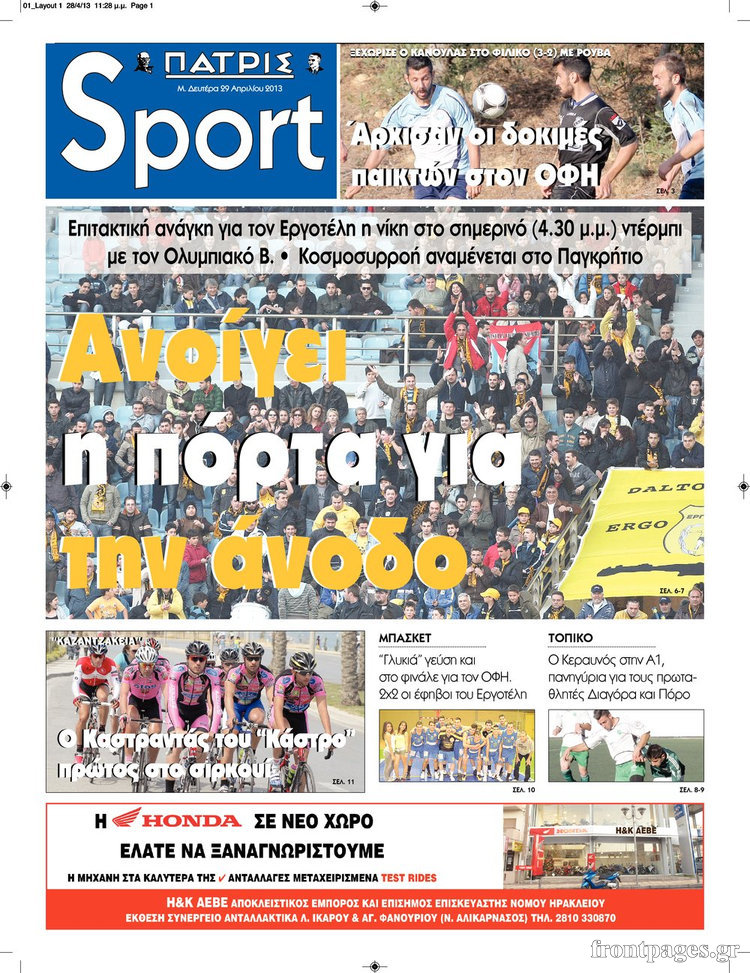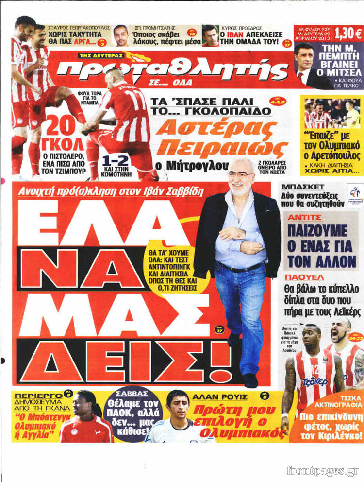 Οι αθλητικές εφημερίδες Enikos Newsroom 09:37, Δευτέρα 29 Απριλίου 2013 Media Οι αθλητικές εφημερίδες Τα πρωτοσέλιδα των αθλητικών εφημερίδων: ΑΘΛΗΤΙΚΕΣ ΕΦΗΜΕΡΙΔΕΣ ΕΦΗΜΕΡΙΔΕΣ ΠΡΩΤΟΣΕΛΙΔΑ Μοιράσου το: σχολίασε κι εσύ (0 σχόλια) Ακολουθήστε το enikos.gr στο Google News και μάθετε πρώτοι όλες τις ειδήσεις Δείτε όλες τις τελευταίες ειδήσεις από την Ελλάδα και τον Κόσμο στο enikos.gr Ειδήσεις Ροή Ειδήσεων 2 ώρες πριν Αυξάνουν την πίεση προς την κυβέρνηση οι αγρότες: Κλείνουν παρακαμπτήριους και ανοίγουν διόδια – Τι θα γίνει τις γιορτές 48 λεπτά πριν ΟΠΕΚΕΠΕ: Προφυλακιστέος ο φερόμενος αρχηγός και ο λογιστής της εγκληματικής οργάνωσης 2 ώρες πριν Φοινικούντα: Το Σάββατο απολογείται ο 30χρονος γιος γνωστού επιχειρηματία της Πλάκας που παραδόθηκε – Όσα είπε στους αστυνομικούς και ο ρόλος του στο έγκλημα 1 ώρα πριν Μπορεί ο Μαδούρο να αντέξει τον αποκλεισμό του Τραμπ; Τι θα χρειαστεί η Ουάσινγκτον για να τον ανατρέψει 3 ώρες πριν Πρίγκιπας Ουίλιαμ – Κέιτ: Η νέα οικογενειακή φωτογραφία για τις Χριστουγεννιάτικες κάρτες του 2025 3 ώρες πριν Ύπνος: Η απλή βραδινή ρουτίνα για να προστατεύσετε τα μαλλιά σας από το κρύο κατά τη διάρκεια του χειμώνα 4 ώρες πριν Manifesting: Πώς να συναντήσετε τον σύντροφο της ζωής σας, ανάλογα με τον μήνα γέννησής σας 2 ημέρες πριν 20 χρόνια τα Χριστούγεννα ξεκινούν στα Public με μεγάλη ποικιλία σε δώρα! 2 ώρες πριν Αρχαιολόγοι ανακάλυψαν ρωμαϊκά τεχνουργήματα από μια πόλη που δεν υπήρξε ποτέ – Τα τρία εντυπωσιακά κτίρια και ο αμφορέας με τις… σαρδέλες 28 λεπτά πριν ΑΕΚ – Κραϊόβα 3-2: Επική ανατροπή και πρόκριση στους «16» του Conference League η Ένωση 48 λεπτά πριν ΟΠΕΚΕΠΕ: Προφυλακιστέος ο φερόμενος αρχηγός και ο λογιστής της εγκληματικής οργάνωσης 58 λεπτά πριν Αθηνά Μαξίμου: Η τρυφερή ανάρτηση για τα γενέθλια του Αιμίλιου Χειλάκη – «Είναι η εκλεκτική συγγένειά μου, η επιλογή και η ευθύνη μου» 1 ώρα πριν Παναθηναϊκός – Χάποελ Τελ Αβίβ 93-82: Με… φόρα από την Κωνσταντινούπολη 1 ώρα πριν Μπορεί ο Μαδούρο να αντέξει τον αποκλεισμό του Τραμπ; Τι θα χρειαστεί η Ουάσινγκτον για να τον ανατρέψει ENIKOS NETWORK Σε περίοδο αυξημένης δραστηριότητας η γρίπη στην Ελλάδα-Μέτρα προστασίας από τον ΕΟΔΥ Σκέφτεστε συνέχεια συζητήσεις που έχετε κάνει; Τι σημαίνει αυτό, σύμφωνα με ειδικό Στεγαστικό: Τι λέει η ΠΟΜΙΔΑ για τα νέα μέτρα που ανακοίνωσε ο Κυριάκος Μητσοτάκης Λαγκάρντ: Αισιόδοξη για την ανάπτυξη της Ευρωζώνης, αβέβαιη για τον πληθωρισμό Χαρτογραφώντας το «σημείο χωρίς επιστροφή»: Για πρώτη φορά αποκαλύπτεται με λεπτομέρεια το ακανθώδες όριο της ατμόσφαιρας τ... Η Google καταργεί τη λειτουργία «dark web report» – Πώς θα μπορούν οι χρήστες να διαγράφουν τα δεδομένα τους περισσότερα 17:45 , Πέμπτη 18 Δεκεμβρίου 2025 ROUK ZOUK: Εορταστικό επεισόδιο με καλεσμένους τους πρωταγωνιστές του «Γιατί ρε πατέρα» Το Σάββατο 20 Δεκεμβρίου στις 21:00, η Ζέτα Μακρυπούλια υποδέχεται εκλεκτούς ηθοποιούς που όλο... 17:20 , Πέμπτη 18 Δεκεμβρίου 2025 Άγιος έρωτας: Η Χριστίνα εξομολογείται στον πατέρα Νικόλαο, απόψε στις 21:00 στον Alpha Η Νότα αποφασίζει να εκδικηθεί τον Πέτρο και τον Στέφανο, για χάρη του Λούη, όμως τα πράγματα ... 16:50 , Πέμπτη 18 Δεκεμβρίου 2025 Να μ’ αγαπάς: Ζωή και Φωτεινή συμφιλιώνονται ως μάνα με κόρη, απόψε στις 20:00 Η ταυτότητα του Άγγελου αποκαλύπτεται στο νέο επεισόδιο της σειράς “Να μ’ αγαπάς... 15:52 , Πέμπτη 18 Δεκεμβρίου 2025 Το Σπίτι Δίπλα Στο Ποτάμι: Το καθηλωτικό τελευταίο επεισόδιο για το 2025 απόψε στις 22:30 Καθηλώνει το 