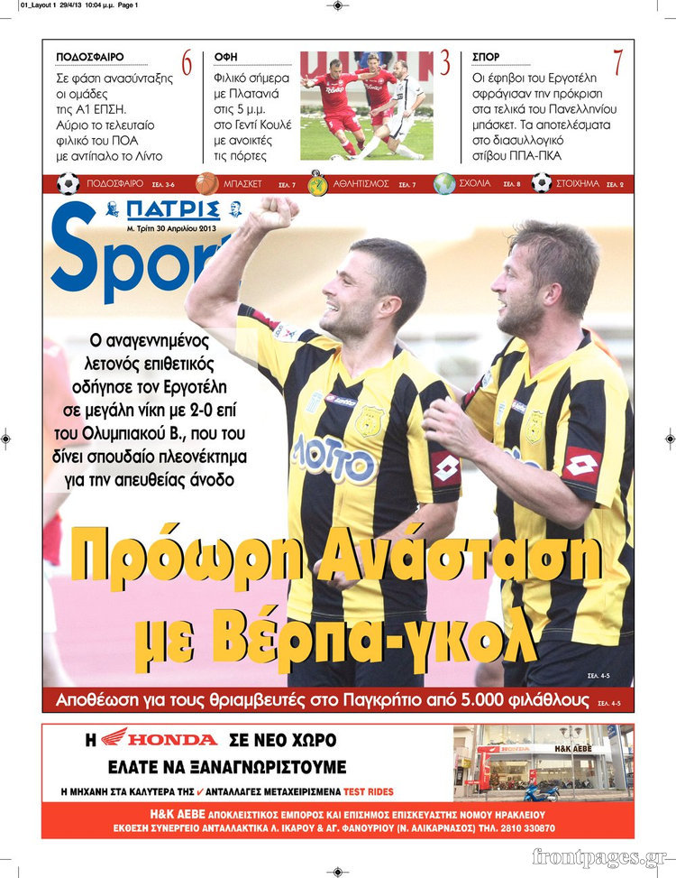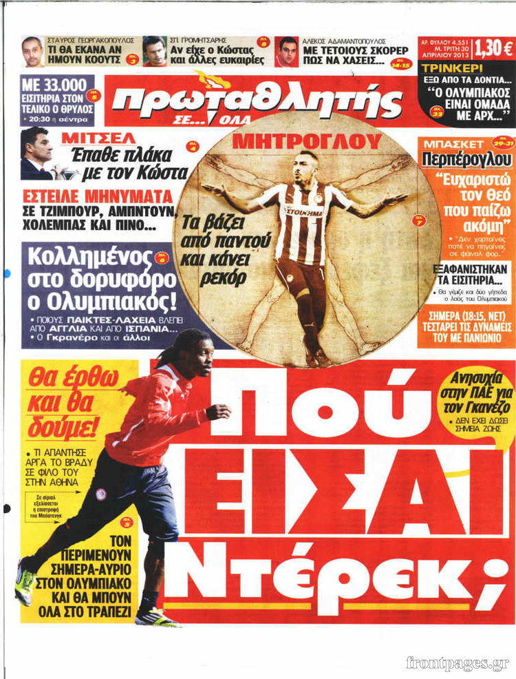 Οι αθλητικές εφημερίδες Enikos Newsroom 08:30, Τρίτη 30 Απριλίου 2013 Media Οι αθλητικές εφημερίδες Τα πρωτοσέλιδα των αθλητικών εφημερίδων: ΑΘΛΗΤΙΚΕΣ ΕΦΗΜΕΡΙΔΕΣ ΕΦΗΜΕΡΙΔΕΣ ΠΡΩΤΟΣΕΛΙΔΑ Μοιράσου το: σχολίασε κι εσύ (0 σχόλια) Ακολουθήστε το enikos.gr στο Google News και μάθετε πρώτοι όλες τις ειδήσεις Δείτε όλες τις τελευταίες ειδήσεις από την Ελλάδα και τον Κόσμο στο enikos.gr Ειδήσεις Ροή Ειδήσεων 56 λεπτά πριν Αυξάνουν την πίεση προς την κυβέρνηση οι αγρότες: Κλείνουν παρακαμπτήριους και ανοίγουν διόδια – Τι θα γίνει τις γιορτές 46 λεπτά πριν Φοινικούντα: Το Σάββατο απολογείται ο 30χρονος γιος γνωστού επιχειρηματία της Πλάκας που παραδόθηκε – Όσα είπε στους αστυνομικούς και ο ρόλος του στο έγκλημα 28 λεπτά πριν Μπορεί ο Μαδούρο να αντέξει τον αποκλεισμό του Τραμπ; Τι θα χρειαστεί η Ουάσινγκτον για να τον ανατρέψει 2 ώρες πριν Δημοσκόπηση Metron Analysis: Στις 10 μονάδες η διαφορά ΝΔ-ΠΑΣΟΚ, στην 3η θέση η Πλεύση Ελευθερίας – 8 στους 10 στηρίζουν τον αγώνα των αγροτών 2 ώρες πριν Πρίγκιπας Ουίλιαμ – Κέιτ: Η νέα οικογενειακή φωτογραφία για τις Χριστουγεννιάτικες κάρτες του 2025 2 ώρες πριν Ύπνος: Η απλή βραδινή ρουτίνα για να προστατεύσετε τα μαλλιά σας από το κρύο κατά τη διάρκεια του χειμώνα 3 ώρες πριν Manifesting: Πώς να συναντήσετε τον σύντροφο της ζωής σας, ανάλογα με τον μήνα γέννησής σας 2 ημέρες πριν 20 χρόνια τα Χριστούγεννα ξεκινούν στα Public με μεγάλη ποικιλία σε δώρα! 32 λεπτά πριν Αρχαιολόγοι ανακάλυψαν ρωμαϊκά τεχνουργήματα από μια πόλη που δεν υπήρξε ποτέ – Τα τρία εντυπωσιακά κτίρια και ο αμφορέας με τις… σαρδέλες 13 λεπτά πριν Παναθηναϊκός – Χάποελ Τελ Αβίβ 93-82: Με… φόρα από την Κωνσταντινούπολη 28 λεπτά πριν Μπορεί ο Μαδούρο να αντέξει τον αποκλεισμό του Τραμπ; Τι θα χρειαστεί η Ουάσινγκτον για να τον ανατρέψει 32 λεπτά πριν Αρχαιολόγοι ανακάλυψαν ρωμαϊκά τεχνουργήματα από μια πόλη που δεν υπήρξε ποτέ – Τα τρία εντυπωσιακά κτίρια και ο αμφορέας με τις… σαρδέλες 34 λεπτά πριν Στο ΟΑΚΑ για το «Παναθηναϊκός – Χάποελ» η Κίμπερλι Γκίλφοϊλ – ΦΩΤΟ 41 λεπτά πριν Ούρσουλα φον ντερ Λάιεν: Μετατίθεται για τον Ιανουάριο η υπογραφή της εμπορικής συμφωνίας «ΕΕ-MERCOSUR» ENIKOS NETWORK Σε περίοδο αυξημένης δραστηριότητας η γρίπη στην Ελλάδα-Μέτρα προστασίας από τον ΕΟΔΥ Σκέφτεστε συνέχεια συζητήσεις που έχετε κάνει; Τι σημαίνει αυτό, σύμφωνα με ειδικό Στεγαστικό: Τι λέει η ΠΟΜΙΔΑ για τα νέα μέτρα που ανακοίνωσε ο Κυριάκος Μητσοτάκης Λαγκάρντ: Αισιόδοξη για την ανάπτυξη της Ευρωζώνης, αβέβαιη για τον πληθωρισμό Χαρτογραφώντας το «σημείο χωρίς επιστροφή»: Για πρώτη φορά αποκαλύπτεται με λεπτομέρεια το ακανθώδες όριο της ατμόσφαιρας τ... Η Google καταργεί τη λειτουργία «dark web report» – Πώς θα μπορούν οι χρήστες να διαγράφουν τα δεδομένα τους περισσότερα 17:45 , Πέμπτη 18 Δεκεμβρίου 2025 ROUK ZOUK: Εορταστικό επεισόδιο με καλεσμένους τους πρωταγωνιστές του «Γιατί ρε πατέρα» Το Σάββατο 20 Δεκεμβρίου στις 21:00, η Ζέτα Μακρυπούλια υποδέχεται εκλεκτούς ηθοποιούς που όλο... 17:20 , Πέμπτη 18 Δεκεμβρίου 2025 Άγιος έρωτας: Η Χριστίνα εξομολογείται στον πατέρα Νικόλαο, απόψε στις 21:00 στον Alpha Η Νότα αποφασίζει να εκδικηθεί τον Πέτρο και τον Στέφανο, για χάρη του Λούη, όμως τα πράγματα ... 16:50 , Πέμπτη 18 Δεκεμβρίου 2025 Να μ’ αγαπάς: Ζωή και Φωτεινή συμφιλιώνονται ως μάνα με κόρη, απόψε στις 20:00 Η ταυτότητα του Άγγελου αποκαλύπτεται στο νέο επεισόδιο της σειράς “Να μ’ αγαπάς... 15:52 , Πέμπτη 18 Δεκεμβρίου 2025 Το Σπίτι Δίπλα Στο Ποτάμι: Το καθηλ