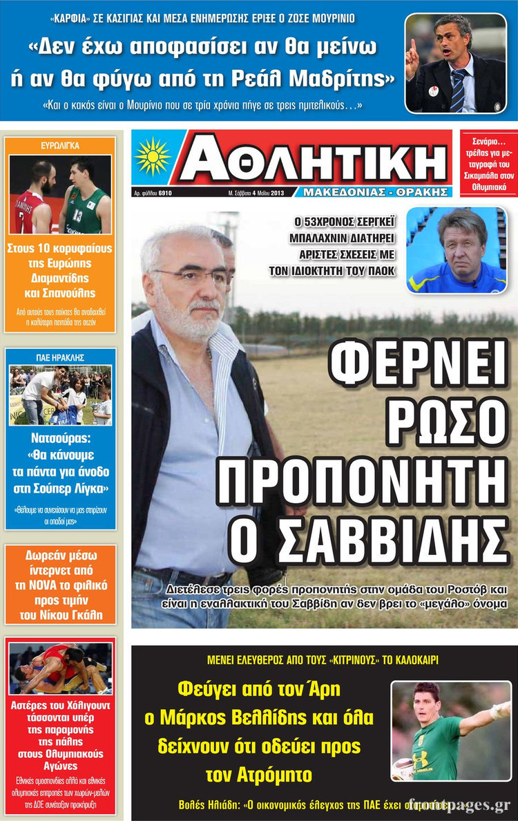 Οι αθλητικές εφημερίδες Enikos Newsroom 09:22, Σάββατο 04 Μαΐου 2013 Media Οι αθλητικές εφημερίδες Διαβάστε τα πρωτοσέλιδα των αθλητικών εφημερίδων ΑΘΛΗΤΙΚΕΣ ΕΦΗΜΕΡΙΔΕΣ ΕΦΗΜΕΡΙΔΕΣ ΠΡΩΤΟΣΕΛΙΔΑ Μοιράσου το: σχολίασε κι εσύ (0 σχόλια) Ακολουθήστε το enikos.gr στο Google News και μάθετε πρώτοι όλες τις ειδήσεις Δείτε όλες τις τελευταίες ειδήσεις από την Ελλάδα και τον Κόσμο στο enikos.gr Ειδήσεις Ροή Ειδήσεων 3 ώρες πριν Ακίλα Σάλεχ: «Άκυρο» το τουρκολιβυκό μνημόνιο λέει ο πρόεδρος της λιβυκής Βουλής – Ανοίγει ο διάλογος με Ελλάδα, Αίγυπτο και Τουρκία 7 ώρες πριν Αγρότες: Την Τρίτη η απόφαση για διάλογο ή κλιμάκωση των κινητοποιήσεών τους – Πώς χαρακτηρίζουν τις ανακοινώσεις Τσιάρα και οι επόμενες κινήσεις 7 ώρες πριν Τραμπ για Ουκρανία: «Είμαστε πιο κοντά σε συμφωνία από ποτέ» – «Πολυεθνική δύναμη» προτείνουν οι Ευρωπαίοι 7 ώρες πριν Κυψέλη: Η 16χρονη που μαχαίρωσε την 14χρονη είχε συλληφθεί 3 φορές στο παρελθόν – Έβριζε καθηγητές, έβαζε φωτιές σε κάδους και εκβίαζε συμμαθητές της 6 ώρες πριν Τρομοκρατική επίθεση στο Σίδνεϊ: Θλίψη για τα 15 θύματα – Οργή στην εβραϊκή κοινότητα που προειδοποιούσε επί δύο χρόνια 7 ώρες πριν Επιστήμονες ίσως έλυσαν το μυστήριο γύρω από τα Χόμπιτ – Νέα έρευνα αποκαλύπτει πώς εξαφανίστηκαν 8 ώρες πριν Ύπνος: Η αρχαία μορφή άσκησης που αποδεικνύεται αποτελεσματική στην αντιμετώπιση της αϋπνίας, σύμφωνα με μελέτη 9 ώρες πριν Αριθμολογία: Ο τυχερός σας αριθμός, ανάλογα με τον μήνα γέννησής σας 10 ώρες πριν Πώς να μην μαραίνονται γρήγορα τα κομμένα λουλούδια: Το λάθος στην τοποθέτηση του βάζου που πρέπει να αποφεύγετε 4 λεπτά πριν Οι αθλητικές εφημερίδες 16/12/2025 9 λεπτά πριν Οι πολιτικές εφημερίδες 16/12/2025 17 λεπτά πριν Τα ζώδια σήμερα, Τρίτη 16 Δεκεμβρίου: Ιχθύες, δεν χρειάζεται να έχετε όλες τις απαντήσεις 25 λεπτά πριν Εφημερεύοντα φαρμακεία σε Αθήνα και Θεσσαλονίκη (16/12) 32 λεπτά πριν Οκτώ νεκροί σε πλήγματα των ΗΠΑ κατά τριών σκαφών που φέρεται να μετέφεραν ναρκωτικά στον Ανατολικό Ειρηνικό ENIKOS NETWORK Πότε το χρόνιο ροχαλητό να αποτελέσει ένδειξη κινδύνου για την καρδιά; Τι λένε οι ειδικοί Μάριος Θεμιστοκλέους: Το ΕΣΥ ενισχύεται, εκσυγχρονίζεται, αλλάζει ΕΒΕΠ για αγροτικές κινητοποιήσεις: Κάθε επιπλέον εβδομάδα προσθέτει περίπου 200 εκατ. ευρώ ζημιά Τι προβλέπει το νομοσχέδιο του υπουργείου Εθνικής Άμυνας – Oι αλλαγές στους μισθούς Σύγχρονος Νοστράδαμος: Προειδοποιεί για «μεγάλο γεγονός» τους επόμενους μήνες που θα συγκλονίσει τη Βρετανία και τον κόσμο Τεστ παρατηρητικότητας: Μπορείτε να βρείτε τις 3 διαφορές στις εικόνες με έναν πιγκουίνο σε 14 δευτερόλεπτα περισσότερα 05:43 , Τρίτη 16 Δεκεμβρίου 2025 Οι αθλητικές εφημερίδες 16/12/2025 Διαβάστε τα πρωτοσέλιδα από τις αθλητικές εφημερίδες, σήμερα 16/12/2025. 05:38 , Τρίτη 16 Δεκεμβρίου 2025 Οι πολιτικές εφημερίδες 16/12/2025 Διαβάστε τα πρωτοσέλιδα από τις πολιτικές εφημερίδες, σήμερα 16/12/2025. 21:35 , Δευτέρα 15 Δεκεμβρίου 2025 Το Σπίτι Δίπλα Στο Ποτάμι: Η Ιουλία και ο Φωκάς μετακομίζουν στη Ρόδο – Δύο νέοι χαρακτήρες μπαίνουν στη σειρά Δύο νέοι, κομβικοί χαρακτήρες κάνουν την εμφάνισή τους αυτή την εβδομάδα στην αγαπημένη σειρά ... 19:46 , Δευτέρα 15 Δεκεμβρίου 2025 Άγιος έρωτας: Η Χριστίνα λέει την αλήθεια στον Αντρέα Ο Βασίλης δέχεται επίθεση από τους συμμαθητές του, η Αναστασία είναι συντετριμμένη με την απώλ... ΤΕΛΕΥΤΑΙΕΣ ΕΙΔΗΣΕΙΣ 4 λεπτά πριν Οι αθλητικές εφημερίδες 16/12/2025 9 λεπτά πριν Οι πολιτικές εφημερίδες 16/12/2025 17 λεπτά πριν Τα