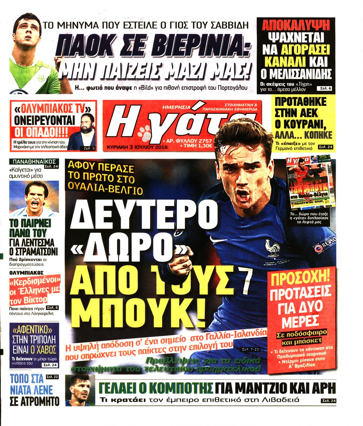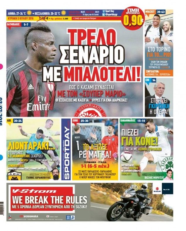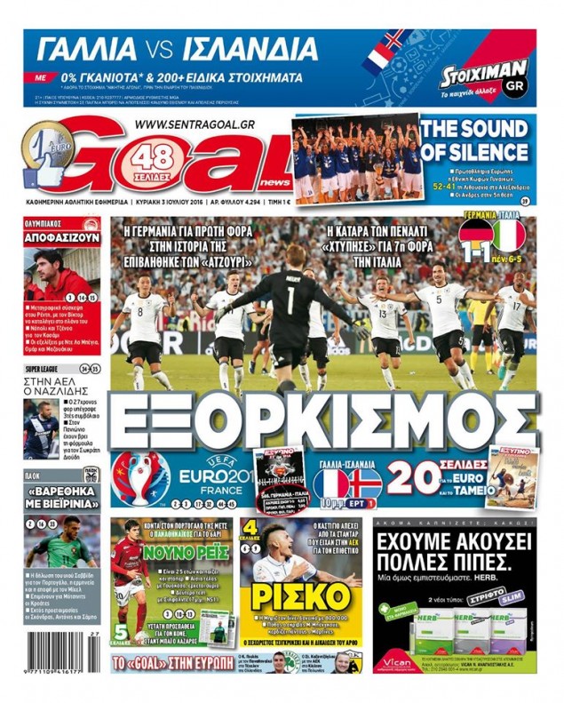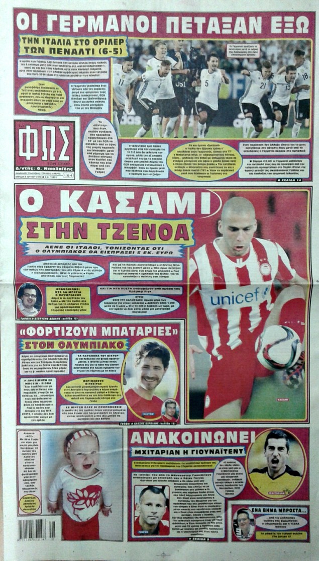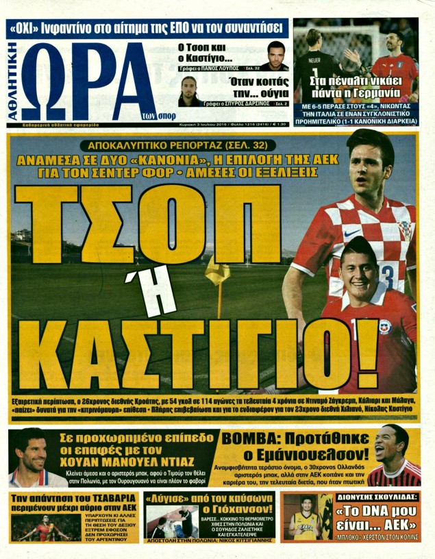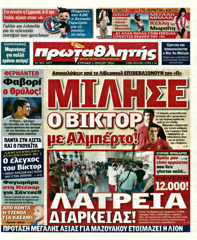 Οι αθλητικές εφημερίδες 3/7/2016 Enikos Newsroom 04:38, Κυριακή 03 Ιουλίου 2016 Media Διαβάστε τα σημερινά πρωτοσέλιδα των αθλητικών εφημερίδων: ΑΘΛΗΤΙΚΕΣ ΕΦΗΜΕΡΙΔΕΣ ΠΡΩΤΟΣΕΛΙΔΑ Μοιράσου το: σχολίασε κι εσύ (0 σχόλια) Ακολουθήστε το enikos.gr στο Google News και μάθετε πρώτοι όλες τις ειδήσεις Δείτε όλες τις τελευταίες ειδήσεις από την Ελλάδα και τον Κόσμο στο enikos.gr Ειδήσεις Ροή Ειδήσεων 3 ώρες πριν Εκτός ευρωομάδας ΣΥΡΙΖΑ ο Νίκος Παππάς μετά την επίθεση στον δημοσιογράφο Νίκο Γιαννόπουλο – Η μήνυση και οι νέες δηλώσεις 4 ώρες πριν «Αγριεύουν» οι αγρότες: «Δεν συντρέχει λόγος συνάντησης με τον πρωθυπουργό» – Ώρα αποφάσεων στη σύσκεψη της Πέμπτης 4 ώρες πριν Κυψέλη: Χωρίς την οικογένειά της δίπλα της απολογήθηκε η 16χρονη – «Της είχε επιτεθεί κάποιος για να την βιάσει, φοβήθηκε και κυκλοφορούσε με μαχαίρι» 3 ώρες πριν Politico: Το πρόβλημα της Ευρώπης δεν είναι το Βέλγιο αλλά ο Ντόναλντ Τραμπ 5 ώρες πριν Αλεξανδρούπολη: Πολυοργανική ανεπάρκεια λόγω υποσιτισμού η αιτία θανάτου του 3χρονου αγοριού 3 ώρες πριν Μυστήριο με τεράστιες κυκλικές πέτρες 200 κιλών – Ανακαλύφθηκαν τυχαία κατά τη διάρκεια οδικών έργων και κανείς δεν ξέρει από πού προέρχονται 4 ώρες πριν Ύπνος: Ειδικός εξηγεί τον πραγματικό λόγο που ξυπνάτε στις 4 τα ξημερώματα – Ο ρόλος των ορμονών και του κιρκάδιου ρυθμού 5 ώρες πριν Αριθμολογία: Οι άνθρωποι που έχουν γεννηθεί αυτές τις 4 ημερομηνίες, είναι τρυφεροί και αγαπούν ανιδιοτελώς 17 ώρες πριν 20 χρόνια τα Χριστούγεννα ξεκινούν στα Public με μεγάλη ποικιλία σε δώρα! 7 λεπτά πριν Ρωσία: Ουκρανικές δυνάμεις έπληξαν πλοίο στο λιμάνι του Ροστόφ – Αναφορές για θύματα 22 λεπτά πριν Βρυξέλλες: Νυχτερινό… μπλόκο αγροτών μπροστά από το κτίριο της Ευρωπαϊκής Επιτροπής – Πάνω από 100 τρακτέρ απέκλεισαν την λεωφόρο 38 λεπτά πριν Euroleague: Απρόσμενη ήττα για την Μονακό του Βασίλη Σπανούλη – Η βαθμολογία μετά το τέλος της 16ης αγωνιστικής 53 λεπτά πριν Μουντιάλ 2026: Η νέα ταξιδιωτική απαγόρευση του Ντόναλντ Τραμπ πλήττει (και) τους οπαδούς Σενεγάλης – Ακτής Ελεφαντοστού 1 ώρα πριν Κυριάκος Μητσοτάκης: Στις Βρυξέλλες για την Σύνοδο Κορυφής ΕΕ και Δυτικών Βαλκανίων – Δείτε φωτογραφίες ENIKOS NETWORK Αϋπνία: Το κόλπο που θα σας βοηθήσει να κοιμηθείτε απόψε – Είναι απλό και έχει αποτέλεσμα 2,6 εκατομμύρια πολίτες έχουν ήδη εμβολιαστεί κατά της γρίπης ΕΛΣΤΑΤ: Τι δείχνουν τα νέα στοιχεία για τις ηλεκτρονικές παραγγελίες των επιχειρήσεων ΚΕΠΕ: Οι 3 διακριτές συμβολές των ΜμΕ και της μεταποίησης στην ελληνική οικονομία Χαρτογραφώντας το «σημείο χωρίς επιστροφή»: Για πρώτη φορά αποκαλύπτεται με λεπτομέρεια το ακανθώδες όριο της ατμόσφαιρας τ... Η Google καταργεί τη λειτουργία «dark web report» – Πώς θα μπορούν οι χρήστες να διαγράφουν τα δεδομένα τους περισσότερα 22:24 , Τετάρτη 17 Δεκεμβρίου 2025 Το Σπίτι Δίπλα Στο Ποτάμι: Σε κίνδυνο η υγεία του Απόστολου – Τι θα δούμε απόψε “Το Σπίτι Δίπλα στο Ποτάμι” ξετυλίγει το νήμα της ζωής των πέντε αδελφών με καταισ... 21:14 , Τετάρτη 17 Δεκεμβρίου 2025 Παιχνίδια Εκδίκησης: Θα καταφέρει ο Χρήστος να κλονίσει την εμπιστοσύνη της Μάγιας απέναντι στον Άγη; Τα «Παιχνίδια Εκδίκησης» έρχονται απόψε στις 22:30, στον Αντ1, με το τελευταίο επεισόδιο της χ... 20:57 , Τετάρτη 17 Δεκεμβρίου 2025 Άγιος Έρωτας: Η Χλόη καταθέτει εναντίον του πατέρα της και ο Χάρης αποκαλύπτει στον Κλεάνθη ότι δεν είναι ο βιολογικός του πατέρας. Γεμάτο αποκαλύψεις είναι το νέο επεισόδιο της σειράς “Άγιος Έρωτας” α