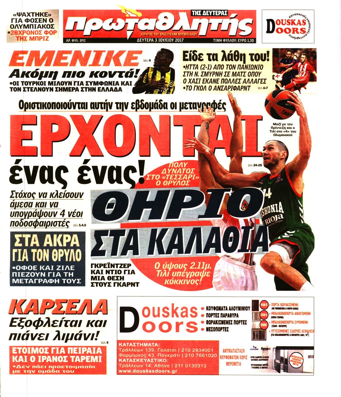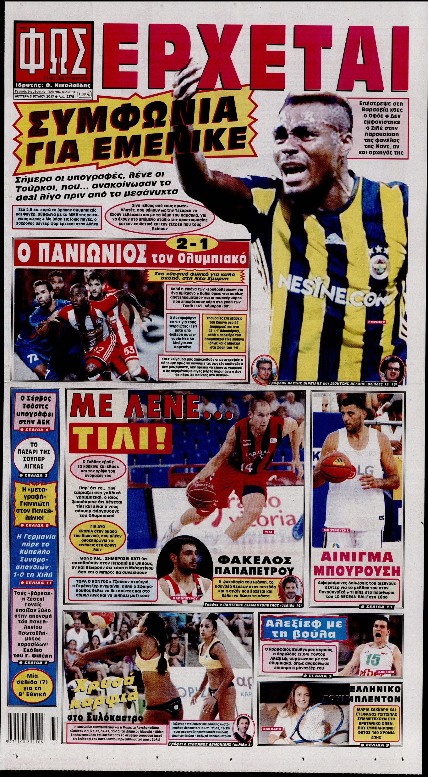 Οι αθλητικές εφημερίδες 3/7/2017 Κώστας Τεό 06:34, Δευτέρα 03 Ιουλίου 2017 Media Διαβάστε τα σημερινά πρωτοσέλιδα των αθλητικών εφημερίδων: ΑΘΛΗΤΙΚΕΣ ΕΦΗΜΕΡΙΔΕΣ ΠΡΩΤΟΣΕΛΙΔΑ Μοιράσου το: σχολίασε κι εσύ (0 σχόλια) Ακολουθήστε το enikos.gr στο Google News και μάθετε πρώτοι όλες τις ειδήσεις Δείτε όλες τις τελευταίες ειδήσεις από την Ελλάδα και τον Κόσμο στο enikos.gr Ειδήσεις Ροή Ειδήσεων 2 ώρες πριν Αυξάνουν την πίεση προς την κυβέρνηση οι αγρότες: Κλείνουν παρακαμπτήριους και ανοίγουν διόδια – Τι θα γίνει τις γιορτές 1 ώρα πριν ΟΠΕΚΕΠΕ: Προφυλακιστέος ο φερόμενος αρχηγός και ο λογιστής της εγκληματικής οργάνωσης 2 ώρες πριν Φοινικούντα: Το Σάββατο απολογείται ο 30χρονος γιος γνωστού επιχειρηματία της Πλάκας που παραδόθηκε – Όσα είπε στους αστυνομικούς και ο ρόλος του στο έγκλημα 2 ώρες πριν Μπορεί ο Μαδούρο να αντέξει τον αποκλεισμό του Τραμπ; Τι θα χρειαστεί η Ουάσινγκτον για να τον ανατρέψει 3 ώρες πριν Πρίγκιπας Ουίλιαμ – Κέιτ: Η νέα οικογενειακή φωτογραφία για τις Χριστουγεννιάτικες κάρτες του 2025 3 ώρες πριν Ύπνος: Η απλή βραδινή ρουτίνα για να προστατεύσετε τα μαλλιά σας από το κρύο κατά τη διάρκεια του χειμώνα 4 ώρες πριν Manifesting: Πώς να συναντήσετε τον σύντροφο της ζωής σας, ανάλογα με τον μήνα γέννησής σας 2 ημέρες πριν 20 χρόνια τα Χριστούγεννα ξεκινούν στα Public με μεγάλη ποικιλία σε δώρα! 2 ώρες πριν Αρχαιολόγοι ανακάλυψαν ρωμαϊκά τεχνουργήματα από μια πόλη που δεν υπήρξε ποτέ – Τα τρία εντυπωσιακά κτίρια και ο αμφορέας με τις… σαρδέλες 3 λεπτά πριν Conference League: Με Νόα, Ντρίτα, Άλκμααρ ή Τσέλιε στους «16» η ΑΕΚ 11 λεπτά πριν Conference League: Απευθείας στους «16» η ΑΕΚ Λάρνακας και η Ρακόβ των Σβάρνα και Κωνσταντόπουλου – Τα αποτελέσματα και η βαθμολογία, 3η η ΑΕΚ 21 λεπτά πριν Σε ομάδες που συνδέονται με το ρωσικό κράτος αποδίδει η Δανία δύο κυβερνοεπιθέσεις που δέχθηκε 36 λεπτά πριν Βαθμολογία UEFA: Η Πολωνία προσπέρασε την Ελλάδα 52 λεπτά πριν Conference League: Οι ομάδες που προκρίθηκαν στους «16» και τα «ζευγαρώματα» στα νοκ άουτ ENIKOS NETWORK Σε περίοδο αυξημένης δραστηριότητας η γρίπη στην Ελλάδα-Μέτρα προστασίας από τον ΕΟΔΥ Σκέφτεστε συνέχεια συζητήσεις που έχετε κάνει; Τι σημαίνει αυτό, σύμφωνα με ειδικό Στεγαστικό: Τι λέει η ΠΟΜΙΔΑ για τα νέα μέτρα που ανακοίνωσε ο Κυριάκος Μητσοτάκης Λαγκάρντ: Αισιόδοξη για την ανάπτυξη της Ευρωζώνης, αβέβαιη για τον πληθωρισμό Χαρτογραφώντας το «σημείο χωρίς επιστροφή»: Για πρώτη φορά αποκαλύπτεται με λεπτομέρεια το ακανθώδες όριο της ατμόσφαιρας τ... Η Google καταργεί τη λειτουργία «dark web report» – Πώς θα μπορούν οι χρήστες να διαγράφουν τα δεδομένα τους περισσότερα 17:45 , Πέμπτη 18 Δεκεμβρίου 2025 ROUK ZOUK: Εορταστικό επεισόδιο με καλεσμένους τους πρωταγωνιστές του «Γιατί ρε πατέρα» Το Σάββατο 20 Δεκεμβρίου στις 21:00, η Ζέτα Μακρυπούλια υποδέχεται εκλεκτούς ηθοποιούς που όλο... 17:20 , Πέμπτη 18 Δεκεμβρίου 2025 Άγιος έρωτας: Η Χριστίνα εξομολογείται στον πατέρα Νικόλαο, απόψε στις 21:00 στον Alpha Η Νότα αποφασίζει να εκδικηθεί τον Πέτρο και τον Στέφανο, για χάρη του Λούη, όμως τα πράγματα ... 16:50 , Πέμπτη 18 Δεκεμβρίου 2025 Να μ’ αγαπάς: Ζωή και Φωτεινή συμφιλιώνονται ως μάνα με κόρη, απόψε στις 20:00 Η ταυτότητα του Άγγελου αποκαλύπτεται στο νέο επεισόδιο της σειράς “Να μ’ αγαπάς... 15:52 , Πέμπτη 18 Δεκεμβρίου 2025 Το Σπίτι Δίπλα Στο Ποτάμι: Το καθηλωτικό τελευταίο επεισόδιο για το 2025 απόψε στις 22:30 Καθηλώνει το σημερινό επεισόδιο της σειράς “Το Σπίτι Δίπλα Στο Ποτάμι” που έρχετ