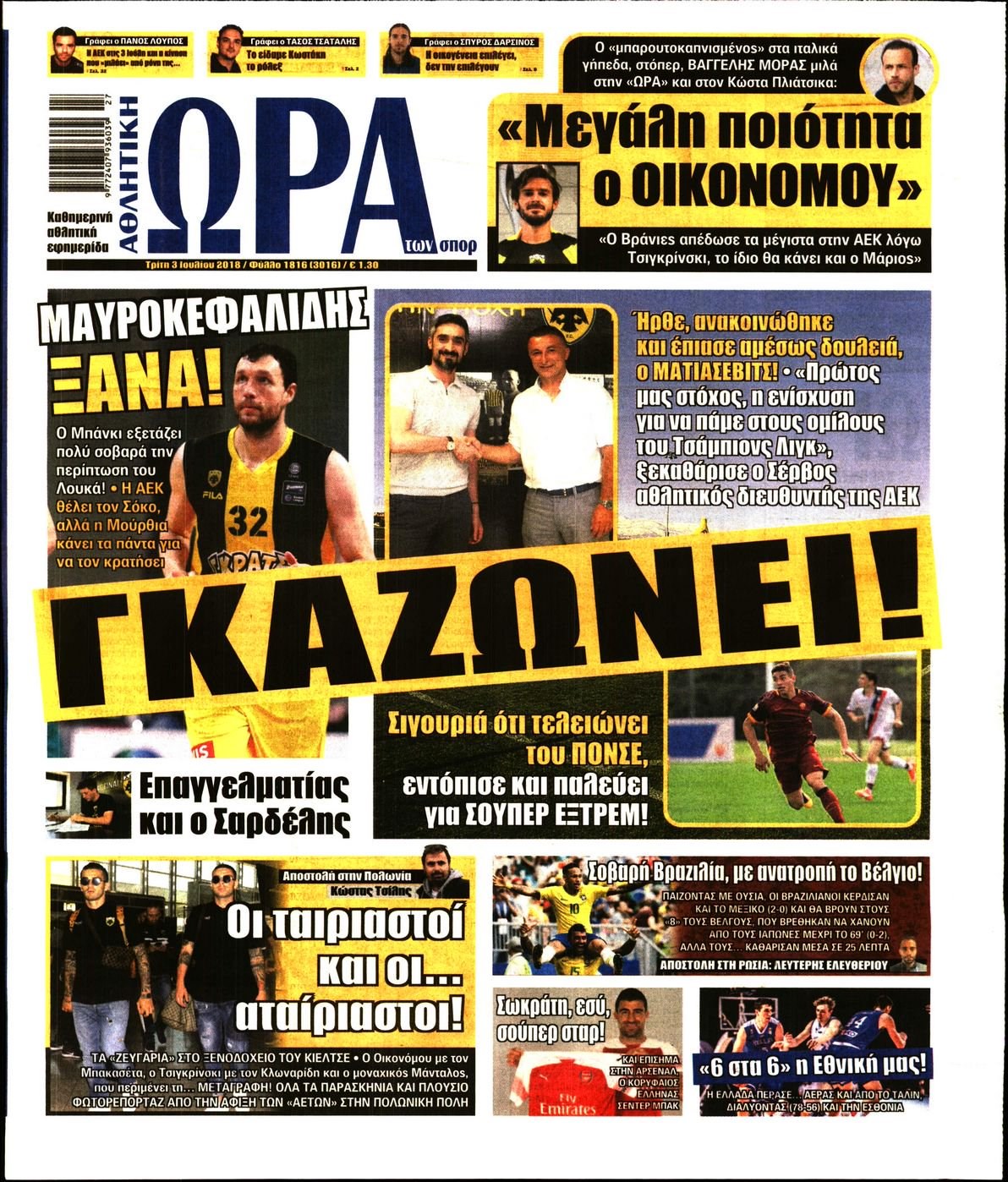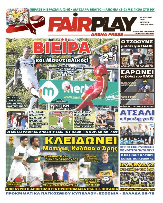 Οι αθλητικές εφημερίδες 3/7/2018 Enikos Newsroom 06:44, Τρίτη 03 Ιουλίου 2018 Media Διαβάστε τα πρωτοσέλιδα. ΑΘΛΗΤΙΚΕΣ ΕΦΗΜΕΡΙΔΕΣ Μοιράσου το: σχολίασε κι εσύ (0 σχόλια) Ακολουθήστε το enikos.gr στο Google News και μάθετε πρώτοι όλες τις ειδήσεις Δείτε όλες τις τελευταίες ειδήσεις από την Ελλάδα και τον Κόσμο στο enikos.gr Ειδήσεις Ροή Ειδήσεων 2 ώρες πριν Χριστούγεννα στα μπλόκα: Επιμένουν στις κινητοποιήσεις τους οι αγρότες – Ανοίγουν τα διόδια το Σαββατοκύριακο 2 ώρες πριν Ουκρανία: Η άνευ προηγουμένου επίθεση σε ρωσικό τάνκερ στη Μεσόγειο και το μήνυμα προς στον Πούτιν – Το «μακρύ χέρι» του Κιέβου 1 ώρα πριν Πούτιν: Τα μηνύματα σε Ευρώπη και ΝΑΤΟ από το μαραθώνιο «σόου» του – Η απαίτηση για «σεβασμό» και η ειρήνη «με τους όρους» της Μόσχας 2 ώρες πριν Τραμπ: Δεν αποκλείει την πιθανότητα ενός πολέμου στη Βενεζουέλα – «Ο Μαδούρο ξέρει καλύτερα από τον καθένα τι ακριβώς θέλω» 3 ώρες πριν Συνεχίζει να προκαλεί ο Μίτσκοσκι: «Για μένα το όνομα Μακεδονία είναι ιερό» 1 ώρα πριν Ανακαλύφθηκαν αρχαία χρυσά νομίσματα 2.200 ετών που απεικονίζουν τον θεό Απόλλωνα – Η άγνωστη σύνδεση με τον Φίλιππο Β΄ της Μακεδονίας 2 ώρες πριν Ύπνος: Μια κρυφή κατάσταση του εγκεφάλου πριν από τον ύπνο μπορεί να είναι το “κλειδί” για υψηλή ευφυΐα και δημιουργικότητα 3 ώρες πριν Αριθμολογία: Οι άνθρωποι που έχουν γεννηθεί αυτές τις 4 ημερομηνίες, συχνά παρεξηγούνται – «Η καλοσύνη τους κρύβει τεράστια δύναμη» 4 ώρες πριν Ξεχάστε το καθάρισμα το Σαββατοκύριακο: Ο «κανόνας των 20 λεπτών» που θα σας λύσει τα χέρια 11 λεπτά πριν Βασίλης Σπανούλης: Δεν εμφανίστηκε ούτε ένας δημοσιογράφος στην συνέντευξη Τύπου – «Καλησπέρα στον… κανέναν», δείτε βίντεο 23 λεπτά πριν Πόλεμος στην Ουκρανία: Εφτά νεκροί από ρωσική πυραυλική επίθεση στο λιμάνι της Οδησσού 26 λεπτά πριν ΗΠΑ: Η κυβέρνηση του Ντόναλντ Τραμπ άρχισε να δημοσιοποιεί τα αρχεία Έπσταϊν 38 λεπτά πριν Σάμος: Άνοιξε το μπλόκο των αγροτών στον κόμβο Κοκκαρίου – Σε νέα συνεδρίαση θα καθορίσουν την στάση τους 46 λεπτά πριν Άνω Λιόσια: Πυροβολισμοί σε επιχείρηση με χαλιά – Εντοπίστηκαν 10 κάλυκες ENIKOS NETWORK Το ΕΚΑΒ τιμήθηκε από την Ακαδημία Αθηνών για τα 40 χρόνια προσφοράς του Έχετε πραγματικά μεγάλη καρδιά; 10 χαρακτηριστικά όσων έχουν καλοσύνη Αναστολή μέτρων αναγκαστικής εκτέλεσης για κτηνοτρόφους που πλήττονται από την ευλογιά των αιγοπροβάτων Πλήρης επάρκεια προϊόντων στις λαϊκές της Αττικής, παρά τις αγροτικές κινητοποιήσεις – Τι απαντούν οι πωλητές Χαρτογραφώντας το «σημείο χωρίς επιστροφή»: Για πρώτη φορά αποκαλύπτεται με λεπτομέρεια το ακανθώδες όριο της ατμόσφαιρας τ... Η Google καταργεί τη λειτουργία «dark web report» – Πώς θα μπορούν οι χρήστες να διαγράφουν τα δεδομένα τους περισσότερα 22:42 , Παρασκευή 19 Δεκεμβρίου 2025 Γιώργος Γιαννόπουλος για “Το σόι σου”: “Είναι ευτυχία και ευλογία αυτή η σειρά” «Είναι ευτυχία και ευλογία η συγκυρία αυτής της σειράς», θα πει ο Γιώργος Γιαννόπουλος -ο αγαπ... 20:37 , Παρασκευή 19 Δεκεμβρίου 2025 Don’t Forget The Lyrics: Η Έλλη Κοκκίνου υποδέχεται 4 παίκτες που θα κάνουν τα πάντα για να μη χάσουν ούτε… μισή λέξη από τους στίχους Το «Don’t Forget The Lyrics» επιστρέφει απόψε, Παρασκευή 19 Δεκεμβρίου, στις 21:00 με νέο επει... 19:31 , Παρασκευή 19 Δεκεμβρίου 2025 GNTM: Απόψε ο μεγάλος τελικός για τους 4 φιναλίστ Έπειτα από μήνες γεμάτους μόδα, δημιουργία και έντονες αναμετρήσεις, το GNTM 2025 κορυφώνεται,... 18:11 , Παρασκευή 19 Δεκεμβρίου 2025 Το σόι σου: Ο Άρης έρχεται στην Ελ