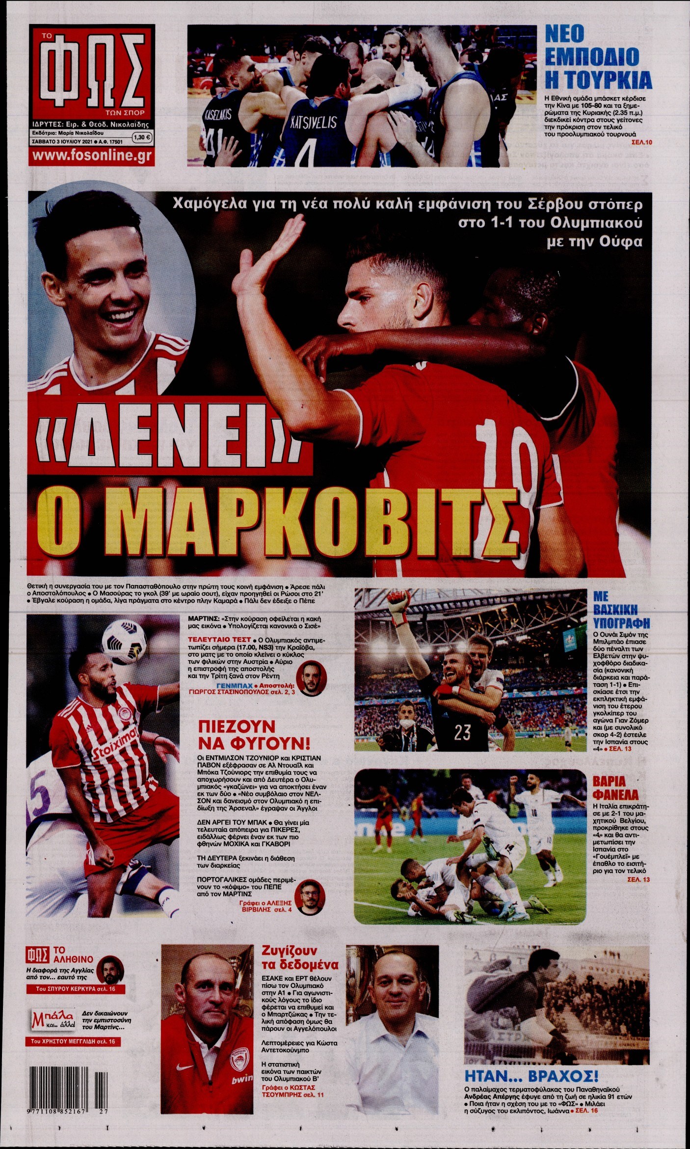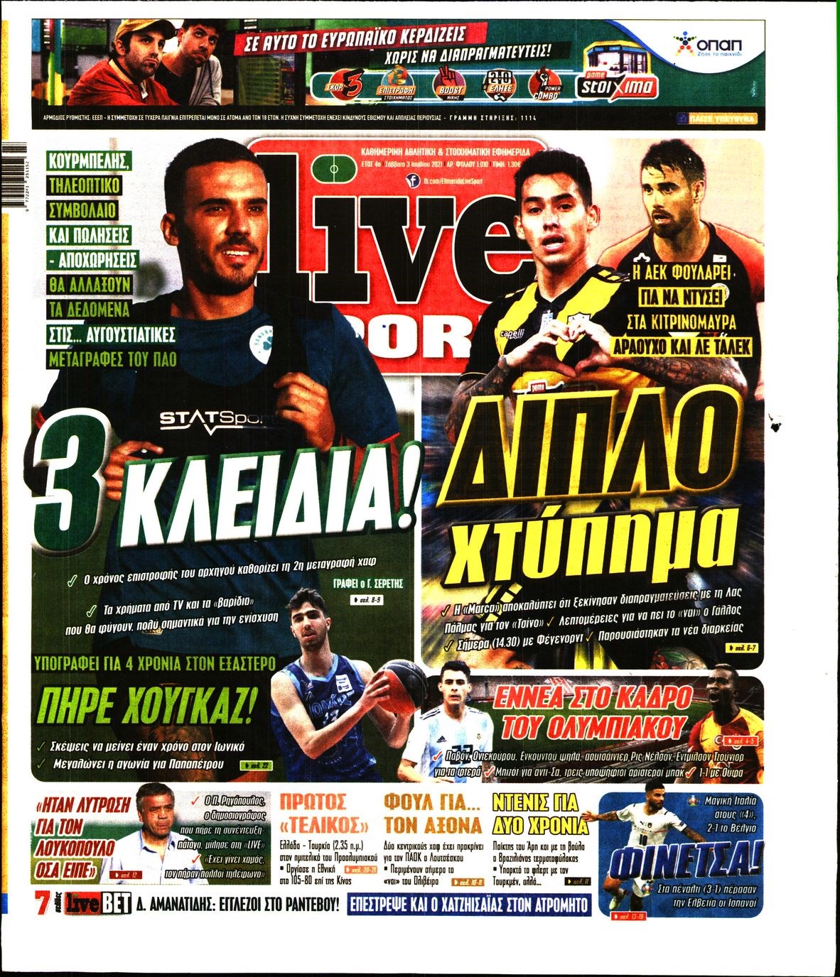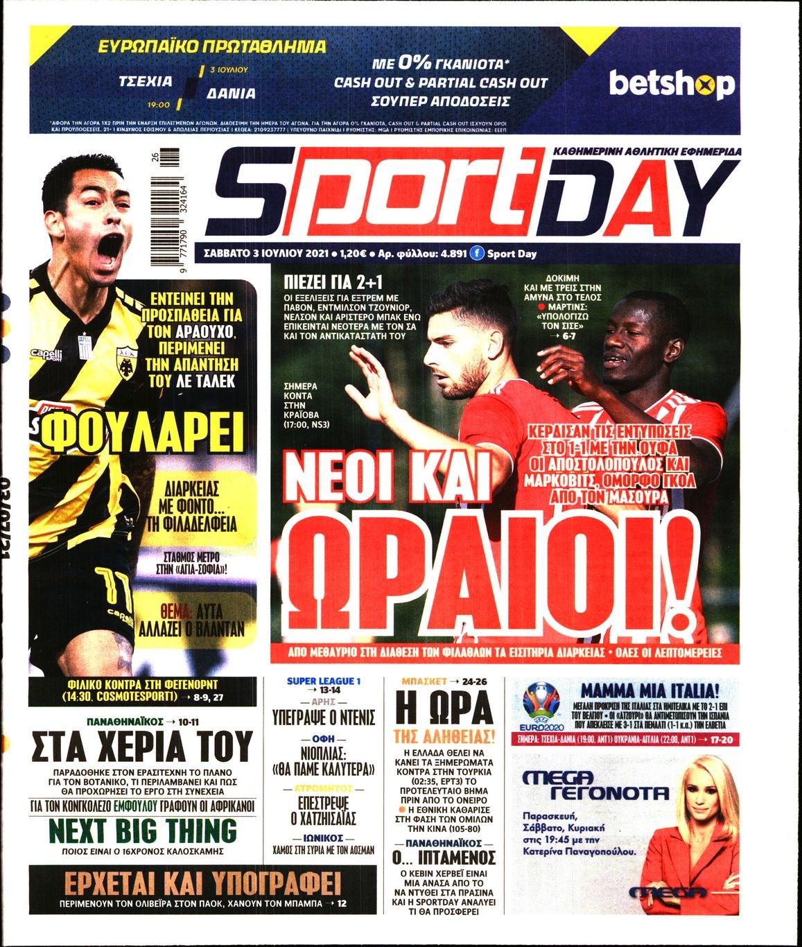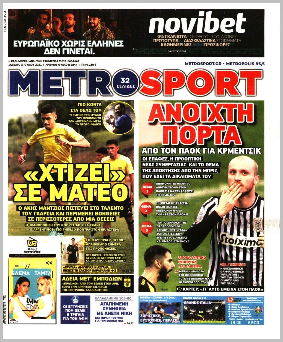 Οι αθλητικές εφημερίδες 3/7/2021 Διονύσης Νίκκας 08:18, Σάββατο 03 Ιουλίου 2021 Media Διαβάστε τα πρωτοσέλιδα των αθλητικών εφημερίδων… ΑΘΛΗΤΙΚΕΣ ΕΦΗΜΕΡΙΔΕΣ Μοιράσου το: σχολίασε κι εσύ (0 σχόλια) Ακολουθήστε το enikos.gr στο Google News και μάθετε πρώτοι όλες τις ειδήσεις Δείτε όλες τις τελευταίες ειδήσεις από την Ελλάδα και τον Κόσμο στο enikos.gr Ειδήσεις Ροή Ειδήσεων 4 ώρες πριν Θετικοί οι αγρότες στη νέα πρόσκληση για διάλογο με τον Πρωθυπουργό – Αποφασίζουν την Παρασκευή εάν θα «σπάσουν» τον 48ωρο αποκλεισμό 4 ώρες πριν Πάτρα: Την Παρασκευή οι απολογίες των 4 εμπλεκομένων για τον θανάσιμο ξυλοδαρμό του 30χρονου – Το ξέσπασμα της μητέρας του θύματος και το βίντεο-σοκ 3 ώρες πριν Μινεάπολη: Η εκτέλεση της 37χρονης Ρενέ Γκουντ αποκαλύπτει δύο εντελώς αντίθετες διαχωριστικές γραμμές στην αμερικανική πολιτική 6 ώρες πριν Κύπρος: Πολιτικές αντιδράσεις μετά την διαρροή του βίντεο με «χρηματοδοτήσεις» και «επενδυτές» – Κυβέρνηση: Υβριδική επίθεση με κακόβουλο μοντάζ 39 λεπτά πριν Χρήστος Πολίτης: Το πραγματικό του όνομα, η καριέρα και το… φαινόμενο «Γιάγκος Δράκος» 6 ώρες πριν Αριθμολογία 2026: Οι άτυχοι μήνες της χρονιάς, με βάση την ημερομηνία γέννησής σας 7 ώρες πριν Περιορίστε τη σκόνη στο σπίτι σας με μια απλή και οικονομική λύση – Ο ρόλος της υγρασίας 5 ώρες πριν Ύπνος: Δυσκολεύεστε να κοιμηθείτε; Γιατρός μοιράζεται ένα «μυστικό» συστατικό που βοηθάει στη χαλάρωση 4 ώρες πριν Ανακαλύφθηκε εντυπωσιακός τάφος 1.300 ετών – Τα τεχνουργήματα που περιείχε ρίχνουν φως στη ζωή των ελίτ της δυναστείας Τανγκ 24 λεπτά πριν Συναγερμός στο Πόρτλαντ: Πράκτορες της Υπηρεσίας Μετανάστευσης πυροβόλησαν δύο άτομα 39 λεπτά πριν Χρήστος Πολίτης: Το πραγματικό του όνομα, η καριέρα και το… φαινόμενο «Γιάγκος Δράκος» 54 λεπτά πριν Super Cup Ισπανίας: Στον τελικό με Μπαρτσελόνα η Ρεάλ, που κέρδισε 2-1 την Ατλέτικο – Δείτε τα γκολ 1 ώρα πριν Νέα ισραηλινά πλήγματα στη Λωρίδα της Γάζας: Τουλάχιστον εννέα νεκροί, ανάμεσά τους πέντε παιδιά 1 ώρα πριν Ταραχές στο Ιράν: Στους δρόμους οι πολίτες – Κόπηκε η πρόσβαση στο διαδίκτυο και οι τηλεπικοινωνίες – Δείτε βίντεο ENIKOS NETWORK Γιατί κάποιοι κρεμάνε φύλλα δάφνης στην πόρτα της κρεβατοκάμαρας; Το μυστικό για καλύτερο ύπνο ΠΟΕΔΗΝ: Σήμα κινδύνου εκπέμπει η Πνευμονολογική Κλινική του Νοσοκομείου Άρτας ΣΑΤΑ: 48ωρη απεργία για τις 13 και 14 Ιανουαρίου αποφάσισαν οι αυτοκινητιστές των ταξί στην Αττική ΔΥΠΑ: Αρχίζει η υποβολή προγραμμάτων κατάρτισης για άνεργους δικαιούχους του Ελάχιστου Εγγυημένου Εισοδήματος – Όλες οι λεπ... Ο Google Assistant θα παραμείνει λίγο περισσότερο για ορισμένους χρήστες Android Τεστ προσωπικότητας: Το βάζο που θα επιλέξετε αποκαλύπτει πώς λύνετε προβλήματα στη ζωή σας περισσότερα 18:15 , Πέμπτη 08 Ιανουαρίου 2026 Άγιος Έρωτας: Ο πατήρ Νικόλαος σώζει τη μικρή Ελευθερία και ο Παύλος παθαίνει καρδιακή προσβολή – Καθηλώνουν τα επόμενα επεισόδια Η αγαπημένη δραματική σειρά “Άγιος ‘Ερωτας” επιστρέφει στις οθόνες μας με νέ... 17:43 , Πέμπτη 08 Ιανουαρίου 2026 Οι Αθώοι: Η μουσική της μεγάλης παραγωγής του Mega – Νέο lyrics video Η σειρά εποχής, που έχει ήδη κλέψει τις εντυπώσεις από τις πρώτες κιόλας εικόνες των τρέιλερ π... 17:04 , Πέμπτη 08 Ιανουαρίου 2026 Νέα δυναμική διεθνής επένδυση του Θοδωρή Κυριακού στις ΗΠΑ Ο Πρόεδρος του Ομίλου Antenna, Θοδωρής Κυριακού, συνεχίζει να ενισχύει δυναμικά την παγκόσμια ... 12:40 , Πέμπτη 08 Ιανουαρίου 2026 Ακούστε την εκπομπή του Νίκου Χατζη