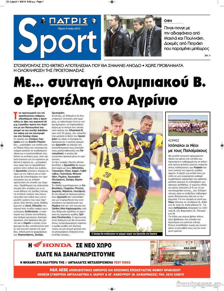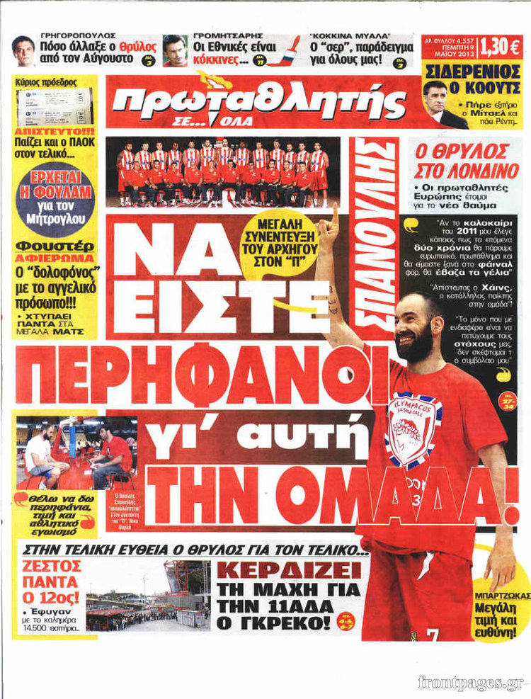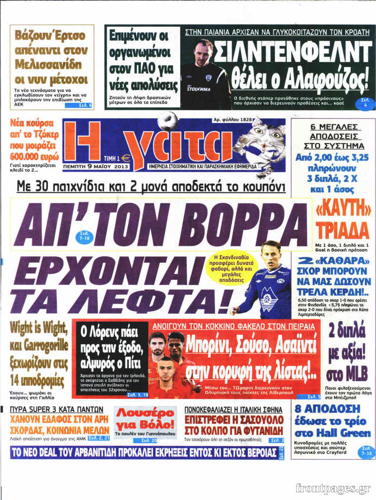 Οι αθλητικές εφημερίδες Enikos Newsroom 08:32, Πέμπτη 09 Μαΐου 2013 Media Οι αθλητικές εφημερίδες Τα πρωτοσέλιδα των αθλητικών εφημερίδων: ΑΘΛΗΤΙΚΕΣ ΕΦΗΜΕΡΙΔΕΣ ΕΦΗΜΕΡΙΔΕΣ ΠΡΩΤΟΣΕΛΙΔΑ Μοιράσου το: σχολίασε κι εσύ (0 σχόλια) Ακολουθήστε το enikos.gr στο Google News και μάθετε πρώτοι όλες τις ειδήσεις Δείτε όλες τις τελευταίες ειδήσεις από την Ελλάδα και τον Κόσμο στο enikos.gr Ειδήσεις Ροή Ειδήσεων 4 ώρες πριν Ζελένσκι: Γιατί πέταξε τώρα το μπαλάκι στον Πούτιν – Tα «αγκάθια» στις διαπραγματεύσεις και η πιθανή απάντηση του Κρεμλίνου 4 ώρες πριν Χριστούγεννα στα μπλόκα για τους αγρότες – Με λιγότερα προβλήματα από τις προηγούμενες ημέρες η κυκλοφορία των οχημάτων 7 ώρες πριν Τουρκία: Λεπτό προς λεπτό οι επικοινωνίες του πιλότου του Φάλκον πριν από την συντριβή – Είχε εκπέμψει πολλαπλά σήματα κινδύνου 4 ώρες πριν Κακοκαιρία: «Βούλιαξε» η Αττική, οι δρόμοι μετατράπηκαν σε ποτάμια, πλημμύρισαν υπόγεια – Πώς θα εξελιχθούν τα έντονα φαινόμενα 8 ώρες πριν Σέρρες: Αγωνία για τον πυροσβέστη που εξαφανίστηκε – Έφυγε από το σπίτι χωρίς το κινητό, πότε τον είδαν για τελευταία φορά 4 ώρες πριν Εκπληκτική ανακάλυψη σε αρχαία πόλη της Μικράς Ασίας – Βρέθηκε πέτρινη σκάλα 1.800 ετών που οδηγούσε σε διάσημη βιβλιοθήκη 5 ώρες πριν Ύπνος: Τι θα συμβεί στον εγκέφαλό σας όταν σταματήσετε να κοιτάτε το κινητό μόλις ξυπνάτε το πρωί 6 ώρες πριν Αριθμολογία: Οι άνθρωποι που έχουν γεννηθεί αυτές τις 3 ημερομηνίες, διαθέτουν 5 μοναδικά χαρακτηριστικά – «Ξεχωρίζετε από όλους» 7 ώρες πριν Πλύσιμο πιάτων: Το έξυπνο κόλπο που διευκολύνει την διαδικασία όταν έχετε καλεσμένους στο σπίτι 2 ώρες πριν Εφημερεύοντα φαρμακεία σε Αθήνα και Θεσσαλονίκη (25/12) 3 λεπτά πριν Φοίβος: Αποκάλυψε την ιστορία πίσω από τα «Χριστούγεννα» της Δέσποινας Βανδή – ΒΙΝΤΕΟ 21 λεπτά πριν Παναθηναϊκός: Στις 39.074 θέσεις η τελική χωρητικότητα του νέου γηπέδου στον Βοτανικό 41 λεπτά πριν Ονδούρα: Νικητής ο Νάσρι Ασφούρα στις προεδρικές εκλογές – Τον είχε στηρίξει Ντόναλντ Τραμπ 1 ώρα πριν ΗΠΑ: Ανακαλύφθηκαν πάνω από 1 εκατ. νέα έγγραφα που μπορεί να σχετίζονται με την υπόθεση Επστάιν ENIKOS NETWORK Πώς να αποφύγετε τους τοξικούς καβγάδες με την οικογένειά σας αυτά τα Χριστούγεννα ΕΟΔΥ: Οι «χρυσές» συμβουλές για να απολαύσουμε το Χριστουγεννιάτικο τραπέζι χωρίς υπερβολές Aποκαλυπτικά στοιχεία: Το 65% των παιδιών που ξεκινούν σήμερα το δημοτικό, «θα εργαστεί σε επαγγέλματα που δεν έχουν καν επ... «Εξοικονομώ 2025»: Τα ποσά και οι προθεσμίες – Όλα τα SOS πρέπει να γνωρίζετε Ο Google Assistant θα παραμείνει λίγο περισσότερο για ορισμένους χρήστες Android Τεστ προσωπικότητας: Το βάζο που θα επιλέξετε αποκαλύπτει πώς λύνετε προβλήματα στη ζωή σας περισσότερα 20:30 , Τετάρτη 24 Δεκεμβρίου 2025 Rouk Zouk: Όλα θα δούμε στο εορταστικό επεισόδιο απόψε Φέτος την Παραμονή των Χριστουγέννων η Ζέτα Μακρυπούλια και μια… εκρηκτική παρέα από την νέα κ... 16:12 , Τετάρτη 24 Δεκεμβρίου 2025 ALPHA: Παραμονή Χριστουγέννων με τον Κωνσταντίνο Αργυρό Ο Alpha παρουσιάζει απόψε σε πρώτη τηλεοπτική μετάδοση τη συναρπαστική και sold out εμφάνιση ... 15:51 , Τετάρτη 24 Δεκεμβρίου 2025 ‘Αγιος Έρωτας: Ο σεισμός που έκοψε την ανάσα – Δείτε τις συγκλονιστικές σκηνές Με έναν συγκλονιστικό τρόπο έκλεισε χθες βράδυ το τελευταίο επεισόδιο του 2025 της σειράς R... 13:27 , Τετάρτη 24 Δεκεμβρίου 2025 Ο Χριστουγεννιάτικος Τηλεμαραθώνιος του ΑΝΤ1 ένωσε τους πολιτικούς αρχηγούς – Τα εγκωμιαστικά σχόλια για τον Θοδωρή Κυριακού Σπάνι