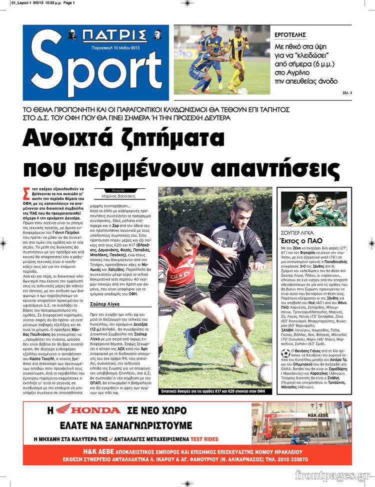Oι αθλητικές εφημερίδες Enikos Newsroom 08:31, Παρασκευή 10 Μαΐου 2013 Media Oι αθλητικές εφημερίδες ΑΘΛΗΤΙΚΕΣ ΕΦΗΜΕΡΙΔΕΣ ΕΦΗΜΕΡΙΔΕΣ Μοιράσου το: σχολίασε κι εσύ (0 σχόλια) Ακολουθήστε το enikos.gr στο Google News και μάθετε πρώτοι όλες τις ειδήσεις Δείτε όλες τις τελευταίες ειδήσεις από την Ελλάδα και τον Κόσμο στο enikos.gr Ειδήσεις Ροή Ειδήσεων 1 ώρα πριν Υπόθεση Έπσταϊν: Το Υπουργείο Δικαιοσύνης δημοσιοποίησε μια σειρά από εξαιρετικά επεξεργασμένα αρχεία – «Λείπουν τα πιο σημαντικά έγγραφα», λένε οι Δημοκρατικοί 3 ώρες πριν Σαρωτικοί οι έλεγχοι στους δρόμους ενόψει εορτών – Μπλόκα της τροχαίας σε κεντρικές αρτηρίες της Αττικής 1 ώρα πριν ΟΝΕΧ – MEGATUGS: Ξεκίνησε η ναυπήγηση ρυμουλκών στην Ελλάδα – Προθάλαμος πολεμικών πλοίων – Δείτε φωτογραφίες και βίντεο 1 ώρα πριν Καιρός: Αλλαγή σκηνικού σήμερα με βροχές και πτώση της θερμοκρασίας – Οι προβλέψεις των μετεωρολόγων για τα Χριστούγεννα 10 ώρες πριν Χριστούγεννα στα μπλόκα: Επιμένουν στις κινητοποιήσεις τους οι αγρότες – Ανοίγουν τα διόδια το Σαββατοκύριακο 3 ώρες πριν Αυγά: Πόσα μπορείτε να τρώτε την ημέρα με ασφάλεια για μέγιστη πρόσληψη πρωτεΐνης 3 ώρες πριν Τα ζώδια σήμερα, Σάββατο 20 Δεκεμβρίου: Παρθένοι, το σύμπαν σας δίνει το κλειδί 3 ώρες πριν Οπτική ψευδαίσθηση: Μόνο αν είσαι ο Σέρλοκ Χολμς θα βρεις τον αριθμό «87» σε 7 δευτερόλεπτα 41 λεπτά πριν Αρχαιολόγοι ανακάλυψαν σε χωράφι απεικόνιση 600 ετών ενός Αγίου – Τα στοιχεία που δείχνουν ότι μαρτύρησε 2 λεπτά πριν Αμαλία Κωστοπούλου: Το μήνυμα για το χειρουργείο στο γόνατο – «Αυτός ο τραυματισμός μού στέρησε πολλά…» 9 λεπτά πριν Ο «χάρτης» με τις αυξήσεις και τις φοροελαφρύνσεις του 2026 – Ποιοι και πόσα κερδίζουν 17 λεπτά πριν Η τέλεια συνταγή για cookies με κομμάτια σοκολάτας 25 λεπτά πριν MyHealth App: Τα στοιχεία για τον Προσωπικό Βοηθό Υγείας Πολίτη – Τι ερωτήματα έγιναν μέσα σε 7 ημέρες 33 λεπτά πριν Τρομεροί γονείς: Η Μαρία Καβογιάννη εισβάλλει στο σπίτι της οικογένειας Στεφανίδη ENIKOS NETWORK Το τεστ των 10 δευτερολέπτων που μπορεί να προβλέψει το προσδόκιμο ζωής σας – Τι λέει ειδικός του Cleveland Επιλέξτε καρέκλα για να μάθετε ποια είναι τα κρυφά χαρακτηριστικά σας – Τι αποκάλυψε για εσάς αυτό το τεστ προσωπικότητας; Mega χριστουγεννιάτικη φορολοταρία: «Κλείδωσε» η ημερομηνία για την κλήρωση – Ερωτήσεις και απαντήσεις Αναστολή μέτρων αναγκαστικής εκτέλεσης για κτηνοτρόφους που πλήττονται από την ευλογιά των αιγοπροβάτων Χαρτογραφώντας το «σημείο χωρίς επιστροφή»: Για πρώτη φορά αποκαλύπτεται με λεπτομέρεια το ακανθώδες όριο της ατμόσφαιρας τ... Η Google καταργεί τη λειτουργία «dark web report» – Πώς θα μπορούν οι χρήστες να διαγράφουν τα δεδομένα τους περισσότερα 08:14 , Σάββατο 20 Δεκεμβρίου 2025 Τρομεροί γονείς: Η Μαρία Καβογιάννη εισβάλλει στο σπίτι της οικογένειας Στεφανίδη Όσα θα δούμε στο νέο διπλό επεισόδιο της σειράς «Τρομεροί γονείς», σήμερα Σάββατο 20 Δεκεμβρίο... 05:48 , Σάββατο 20 Δεκεμβρίου 2025 Οι οικονομικές εφημερίδες 20/12/2025 Διαβάστε τα πρωτοσέλιδα από τις οικονομικές εφημερίδες, σήμερα 20/12/2025. 05:43 , Σάββατο 20 Δεκεμβρίου 2025 Οι αθλητικές εφημερίδες 20/12/2025 Διαβάστε τα πρωτοσέλιδα από τις αθλητικές εφημερίδες, σήμερα 20/12/2025. 05:38 , Σάββατο 20 Δεκεμβρίου 2025 Οι πολιτικές εφημερίδες 20/12/2025 Διαβάστε τα πρωτοσέλιδα από τις πολιτικές εφημερίδες, σήμερα 20/12/2025. ΤΕΛΕΥΤΑΙΕΣ ΕΙΔΗΣΕΙΣ 2 λεπτά πριν Αμαλία Κωστοπούλου: Το μήνυμα για το χειρουργείο στο... 9 λεπτά πριν Ο «χάρτης» με τις αυξήσεις και