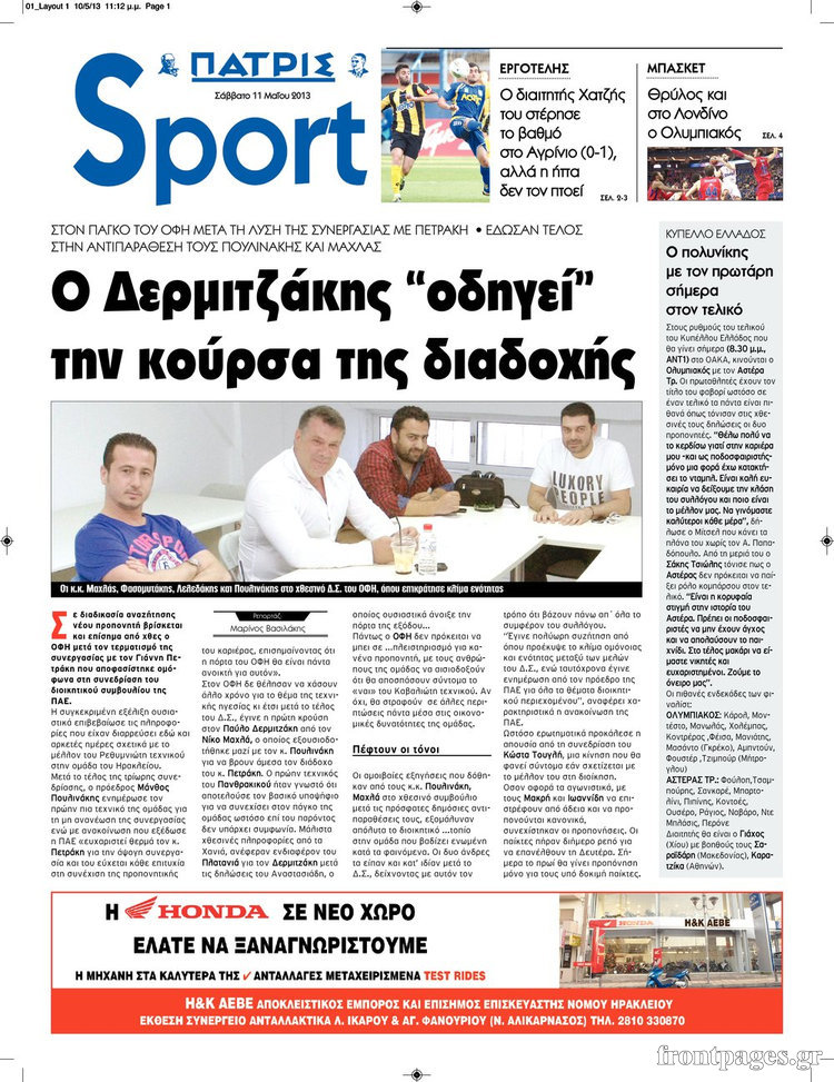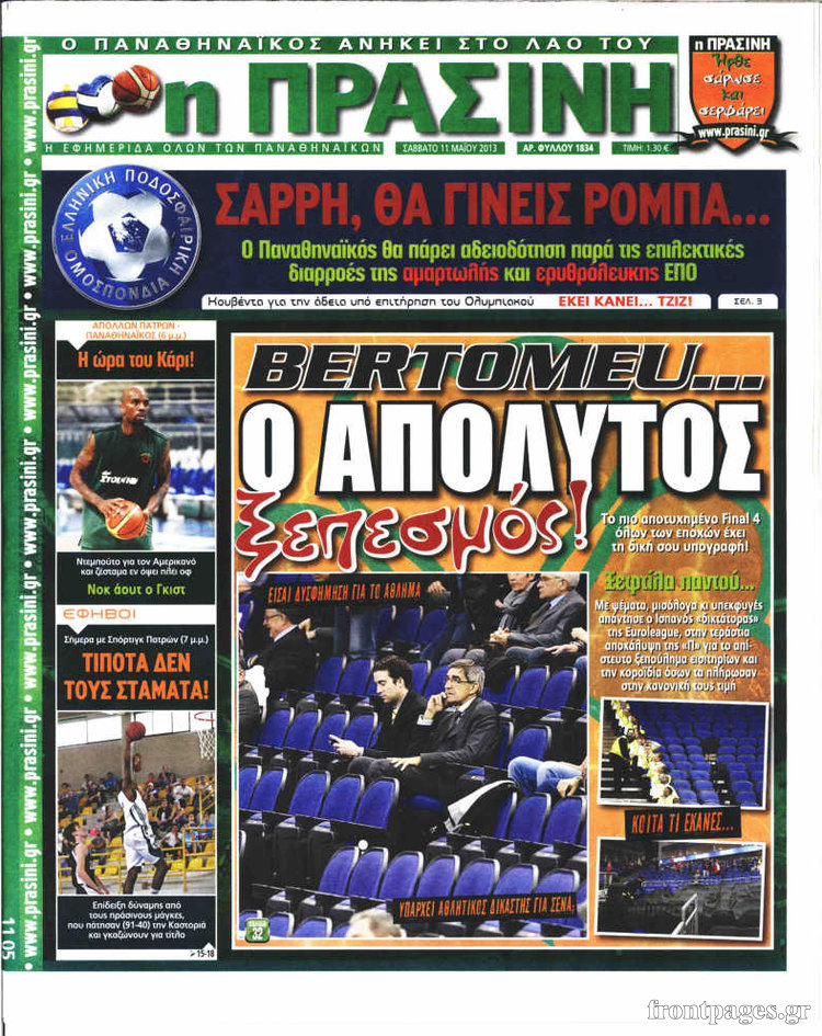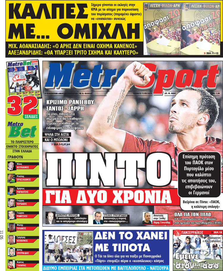 Οι αθλητικές εφημερίδες Enikos Newsroom 08:34, Σάββατο 11 Μαΐου 2013 Media Οι αθλητικές εφημερίδες ΑΘΛΗΤΙΚΕΣ ΕΦΗΜΕΡΙΔΕΣ ΕΦΗΜΕΡΙΔΕΣ Μοιράσου το: σχολίασε κι εσύ (0 σχόλια) Ακολουθήστε το enikos.gr στο Google News και μάθετε πρώτοι όλες τις ειδήσεις Δείτε όλες τις τελευταίες ειδήσεις από την Ελλάδα και τον Κόσμο στο enikos.gr Ειδήσεις Ροή Ειδήσεων 1 ώρα πριν Νίκος Παππάς: «Είχα λάθος αντίδραση στη δική του δράση-πρόκληση – Δεν θα αναλύσω σε τι κατάσταση ήταν ο δημοσιογράφος» 20 λεπτά πριν Αλεξανδρούπολη: Πολυοργανική ανεπάρκεια λόγω υποσιτισμού η αιτία θανάτου του 3χρονου αγοριού 58 λεπτά πριν Δημοσκόπηση Pulse: Η διαφορά ΝΔ-ΠΑΣΟΚ – Με ποια κριτήρια θα ψηφίσουν οι πολίτες στις επόμενες εκλογές 1 ώρα πριν Αγρότες: Άνοιξαν τον μεθοριακό σταθμό του Προμαχώνα – Κανονικά περνούν τα φορτηγά 2 ώρες πριν Συγκλονιστικό βίντεο: Τρόμος για τουρίστες που σώθηκαν την τελευταία στιγμή από λεωφορείο που κατρακυλούσε σε φαράγγι 52 λεπτά πριν Αριθμολογία: Οι άνθρωποι που έχουν γεννηθεί αυτές τις 4 ημερομηνίες, είναι τρυφεροί και αγαπούν ανιδιοτελώς 3 ώρες πριν Οι άνθρωποι που θυμούνται τα όνειρά τους, συνήθως μοιράζονται αυτά τα 6 σπάνια χαρακτηριστικά 2 ώρες πριν Καθρέφτες μπάνιου: Το απλό κόλπο με την οδοντόκρεμα για να μην θολώνουν 13 ώρες πριν 20 χρόνια τα Χριστούγεννα ξεκινούν στα Public με μεγάλη ποικιλία σε δώρα! 4 λεπτά πριν Μαρίζα Ρίζου: «Θυμάμαι ότι ενώ ο μπαμπάς μου δεν πίνει, ερχόταν οριακά μεθυσμένος στο live από το άγχος του» 12 λεπτά πριν Δημοσκόπηση MRB: Πρώτη η ΝΔ με 22,6%, στο 10,9% το ΠΑΣΟΚ – Το 80% των πολιτών στηρίζει τους αγρότες, τι λένε για Τσίπρα και Καρυστιανού 20 λεπτά πριν Αλεξανδρούπολη: Πολυοργανική ανεπάρκεια λόγω υποσιτισμού η αιτία θανάτου του 3χρονου αγοριού 27 λεπτά πριν LEFT: Ξεκίνησαν οι διαδικασίες για τη διαγραφή του Νίκου Παππά από την ομάδα της Αριστεράς στο Ευρωκοινοβούλιο 33 λεπτά πριν Λεωφόρος Αλεξάνδρας: Απειλή για βόμβα έξω από κολέγιο – Στο σημείο το ΤΕΕΜ ENIKOS NETWORK Αϋπνία: Το κόλπο που θα σας βοηθήσει να κοιμηθείτε απόψε – Είναι απλό και έχει αποτέλεσμα 2,6 εκατομμύρια πολίτες έχουν ήδη εμβολιαστεί κατά της γρίπης Πώς θα γίνει η πληρωμή αγροτεμαχίων έως 20 στρέμματα παρά τα ζητήματα ΚΑΕΚ ΟΠΕΚΕΠΕ – ΕΛΓΑ: Ολοκληρώθηκαν πληρωμές 487,9 εκατ. ευρώ – Θα καταβληθούν ακόμα 600 εκατ. έως τις 31 Δεκεμβρίου Χαρτογραφώντας το «σημείο χωρίς επιστροφή»: Για πρώτη φορά αποκαλύπτεται με λεπτομέρεια το ακανθώδες όριο της ατμόσφαιρας τ... Η Google καταργεί τη λειτουργία «dark web report» – Πώς θα μπορούν οι χρήστες να διαγράφουν τα δεδομένα τους περισσότερα 21:14 , Τετάρτη 17 Δεκεμβρίου 2025 Παιχνίδια Εκδίκησης: Θα καταφέρει ο Χρήστος να κλονίσει την εμπιστοσύνη της Μάγιας απέναντι στον Άγη; Τα «Παιχνίδια Εκδίκησης» έρχονται απόψε στις 22:30, στον Αντ1, με το τελευταίο επεισόδιο της χ... 20:57 , Τετάρτη 17 Δεκεμβρίου 2025 Άγιος Έρωτας: Η Χλόη καταθέτει εναντίον του πατέρα της και ο Χάρης αποκαλύπτει στον Κλεάνθη ότι δεν είναι ο βιολογικός του πατέρας. Γεμάτο αποκαλύψεις είναι το νέο επεισόδιο της σειράς “Άγιος Έρωτας” απόψε στις 21:... 20:15 , Τετάρτη 17 Δεκεμβρίου 2025 Η ανακοίνωση της ΕΣΗΕΑ για την επίθεση του Ευρωβουλευτή Νίκου Παππά κατά του δημοσιογράφου Νίκου Γιαννόπουλου «Το Δ.Σ. της ΕΣΗΕΑ καταδικάζει απερίφραστα την ενέργεια του Ευρωβουλευτή του ΣΥΡΙΖΑ Νίκου Παππ... 12:35 , Τετάρτη 17 Δεκεμβρίου 2025 Μίρκα Παπακωνσταντίνου: «Δεν ήμουν αισιόδοξη για τα νούμερα – Είμαι ρεαλίστρια» Στα γυρίσματα του εορταστικού επεισο