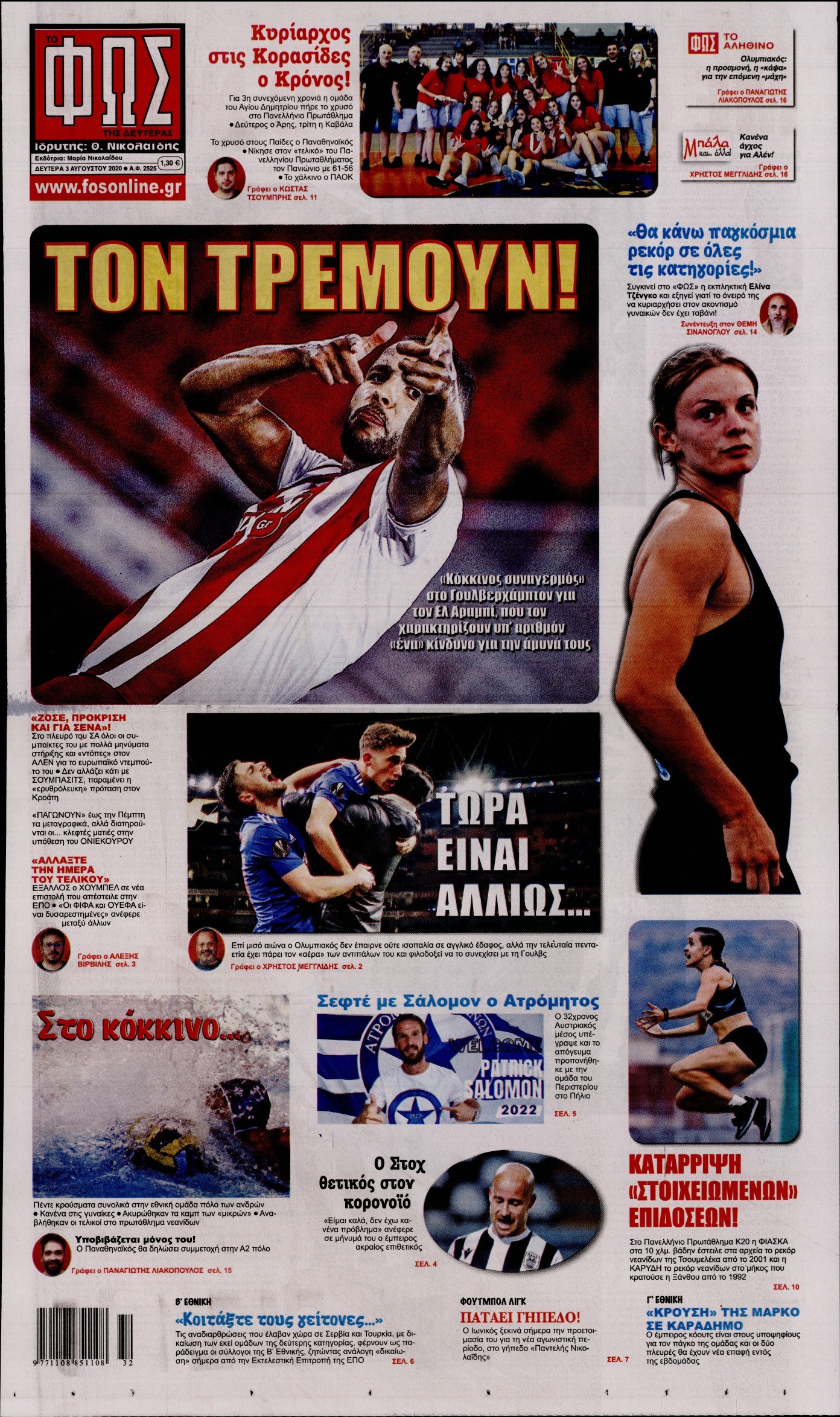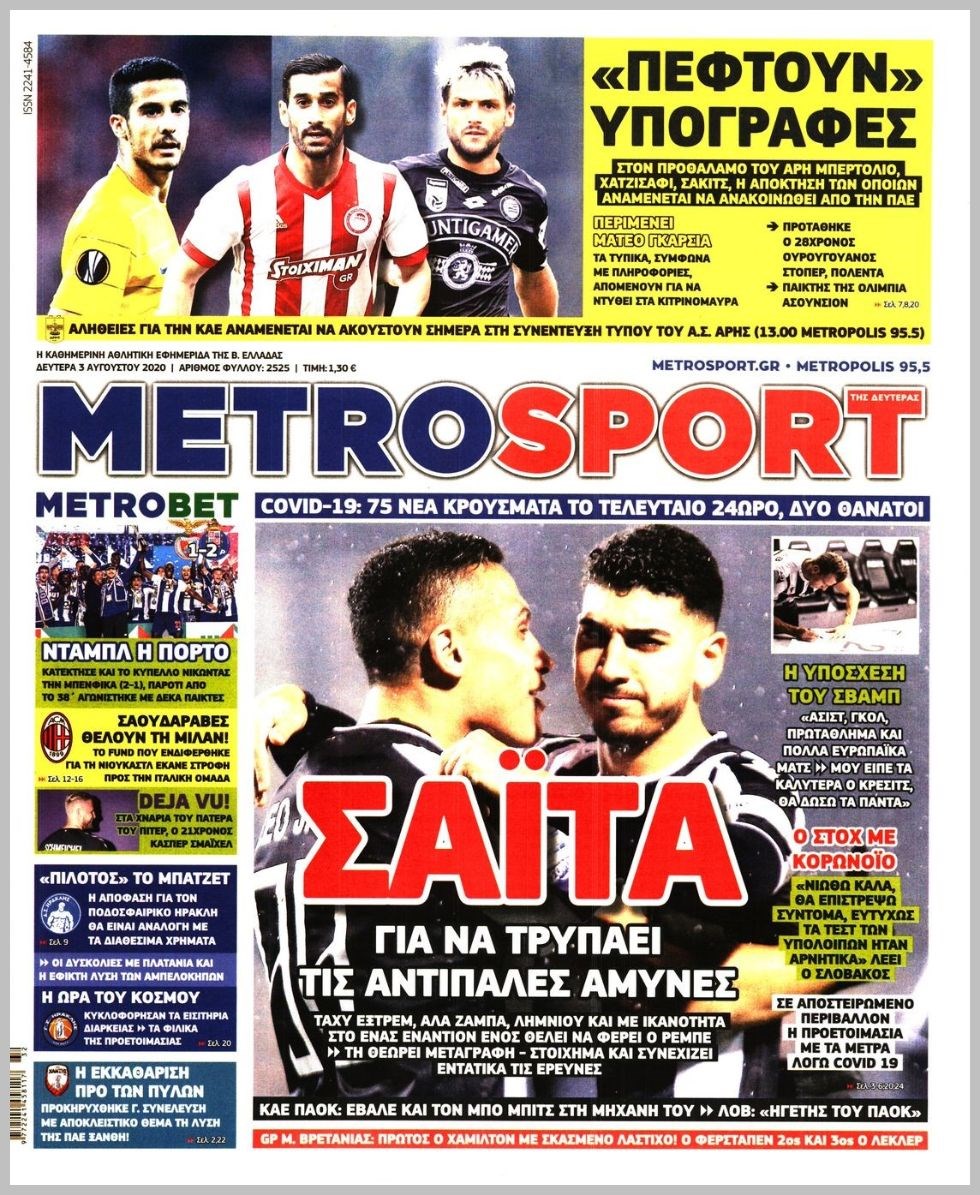 Οι αθλητικές εφημερίδες 3/8/2020 Διονύσης Νίκκας 06:43, Δευτέρα 03 Αυγούστου 2020 Media Διαβάστε τα πρωτοσέλιδα των αθλητικών εφημερίδων… ΑΘΛΗΤΙΚΕΣ ΕΦΗΜΕΡΙΔΕΣ Μοιράσου το: σχολίασε κι εσύ (0 σχόλια) Ακολουθήστε το enikos.gr στο Google News και μάθετε πρώτοι όλες τις ειδήσεις Δείτε όλες τις τελευταίες ειδήσεις από την Ελλάδα και τον Κόσμο στο enikos.gr Ειδήσεις Ροή Ειδήσεων 10 λεπτά πριν Υπόθεση Έπσταϊν: Το Υπουργείο Δικαιοσύνης δημοσιοποίησε μια σειρά από εξαιρετικά επεξεργασμένα αρχεία – «Λείπουν τα πιο σημαντικά έγγραφα», λένε οι Δημοκρατικοί 2 ώρες πριν Σαρωτικοί οι έλεγχοι στους δρόμους ενόψει εορτών – Μπλόκα της τροχαίας σε κεντρικές αρτηρίες της Αττικής 21 λεπτά πριν ΟΝΕΧ – MEGATUGS: Ξεκίνησε η ναυπήγηση ρυμουλκών στην Ελλάδα – Προθάλαμος πολεμικών πλοίων – Δείτε φωτογραφίες και βίντεο 9 ώρες πριν Χριστούγεννα στα μπλόκα: Επιμένουν στις κινητοποιήσεις τους οι αγρότες – Ανοίγουν τα διόδια το Σαββατοκύριακο 9 ώρες πριν Πούτιν: Τα μηνύματα σε Ευρώπη και ΝΑΤΟ από το μαραθώνιο «σόου» του – Η απαίτηση για «σεβασμό» και η ειρήνη «με τους όρους» της Μόσχας 2 ώρες πριν Αυγά: Πόσα μπορείτε να τρώτε την ημέρα με ασφάλεια για μέγιστη πρόσληψη πρωτεΐνης 2 ώρες πριν Τα ζώδια σήμερα, Σάββατο 20 Δεκεμβρίου: Παρθένοι, το σύμπαν σας δίνει το κλειδί 9 ώρες πριν Ανακαλύφθηκαν αρχαία χρυσά νομίσματα 2.200 ετών που απεικονίζουν τον θεό Απόλλωνα – Η άγνωστη σύνδεση με τον Φίλιππο Β΄ της Μακεδονίας 2 ώρες πριν Οπτική ψευδαίσθηση: Μόνο αν είσαι ο Σέρλοκ Χολμς θα βρεις τον αριθμό «87» σε 7 δευτερόλεπτα 4 λεπτά πριν ΗΠΑ: Τέσσερις μετανάστες πέθαναν σε κέντρα κράτησης – Αύξηση θανάτων σε επίπεδο ρεκόρ το 2025 10 λεπτά πριν Υπόθεση Έπσταϊν: Το Υπουργείο Δικαιοσύνης δημοσιοποίησε μια σειρά από εξαιρετικά επεξεργασμένα αρχεία – «Λείπουν τα πιο σημαντικά έγγραφα», λένε οι Δημοκρατικοί 13 λεπτά πριν Καιρός: Αλλαγή σκηνικού σήμερα με βροχές και πτώση της θερμοκρασίας – Οι προβλέψεις των μετεωρολόγων για τα Χριστούγεννα 21 λεπτά πριν ΟΝΕΧ – MEGATUGS: Ξεκίνησε η ναυπήγηση ρυμουλκών στην Ελλάδα – Προθάλαμος πολεμικών πλοίων – Δείτε φωτογραφίες και βίντεο 29 λεπτά πριν Φοινικούντα: Σήμερα απολογείται ο 30χρονος γιος γνωστού επιχειρηματία της Πλάκας ENIKOS NETWORK Το τεστ των 10 δευτερολέπτων που μπορεί να προβλέψει το προσδόκιμο ζωής σας – Τι λέει ειδικός του Cleveland Επιλέξτε καρέκλα για να μάθετε ποια είναι τα κρυφά χαρακτηριστικά σας – Τι αποκάλυψε για εσάς αυτό το τεστ προσωπικότητας; Αναστολή μέτρων αναγκαστικής εκτέλεσης για κτηνοτρόφους που πλήττονται από την ευλογιά των αιγοπροβάτων Πλήρης επάρκεια προϊόντων στις λαϊκές της Αττικής, παρά τις αγροτικές κινητοποιήσεις – Τι απαντούν οι πωλητές Χαρτογραφώντας το «σημείο χωρίς επιστροφή»: Για πρώτη φορά αποκαλύπτεται με λεπτομέρεια το ακανθώδες όριο της ατμόσφαιρας τ... Η Google καταργεί τη λειτουργία «dark web report» – Πώς θα μπορούν οι χρήστες να διαγράφουν τα δεδομένα τους περισσότερα 05:48 , Σάββατο 20 Δεκεμβρίου 2025 Οι οικονομικές εφημερίδες 20/12/2025 Διαβάστε τα πρωτοσέλιδα από τις οικονομικές εφημερίδες, σήμερα 20/12/2025. 05:43 , Σάββατο 20 Δεκεμβρίου 2025 Οι αθλητικές εφημερίδες 20/12/2025 Διαβάστε τα πρωτοσέλιδα από τις αθλητικές εφημερίδες, σήμερα 20/12/2025. 05:38 , Σάββατο 20 Δεκεμβρίου 2025 Οι πολιτικές εφημερίδες 20/12/2025 Διαβάστε τα πρωτοσέλιδα από τις πολιτικές εφημερίδες, σήμερα 20/12/2025. 04:20 , Σάββατο 20 Δεκεμβρίου 2025 Αγγελική Νικολούλη: Τα συλλυπητήρια για την απώλεια της Ειρήν