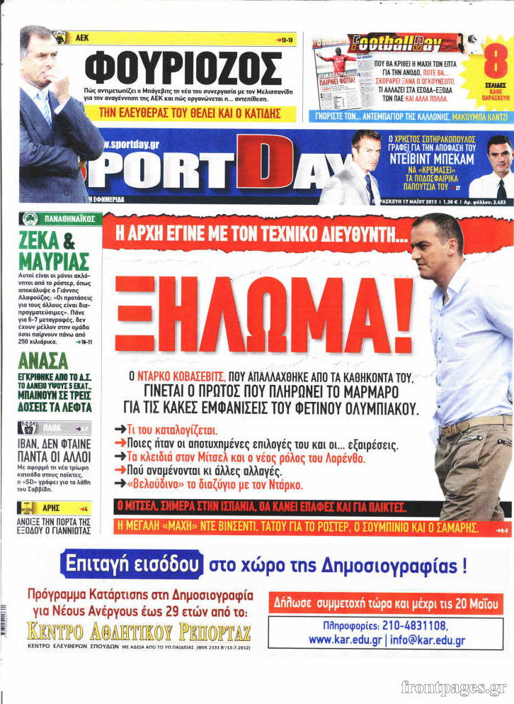 Οι αθλητικές εφημερίδες Enikos Newsroom 08:55, Παρασκευή 17 Μαΐου 2013 Media Οι αθλητικές εφημερίδες Τα πρωτοσέλιδα των αθλητικών εφημερίδων: ΑΘΛΗΤΙΚΕΣ ΕΦΗΜΕΡΙΔΕΣ ΕΦΗΜΕΡΙΔΕΣ ΠΡΩΤΟΣΕΛΙΔΑ Μοιράσου το: σχολίασε κι εσύ (0 σχόλια) Ακολουθήστε το enikos.gr στο Google News και μάθετε πρώτοι όλες τις ειδήσεις Δείτε όλες τις τελευταίες ειδήσεις από την Ελλάδα και τον Κόσμο στο enikos.gr Ειδήσεις Ροή Ειδήσεων 36 λεπτά πριν Παναγόπουλος: Κανένας πρόεδρος δεν μπορεί να κάνει ανάθεση πριν οι δαπάνες ελεγχθούν από επιτροπή – Οι απαντήσεις για τα προγράμματα κατάρτισης 1 ώρα πριν Μητσοτάκης από Βέλγιο: Να μειωθεί η ευρωπαϊκή γραφειοκρατία, χρειαζόμαστε μεγαλύτερη ενοποίηση στην αγορά ενέργειας 1 ώρα πριν Καιρός: Έκτακτο δελτίο από την ΕΜΥ – Καταιγίδες μέχρι το πρωί της Παρασκευής 2 ώρες πριν Χαμός στη Βουλή με την Κωνσταντοπούλου: «Κηφήνες οι βουλευτές της ΝΔ» – Ο έντονος διάλογος με τον Πλακιωτάκη 1 ώρα πριν Μυστήριο χωρίς τέλος στην υπόθεση της Νάνσι Γκάθρι: Το γάντι με «ύποπτο» DNA και το τρίτο σημείωμα λύτρων με αίτημα για Bitcoin 22 ώρες πριν ΕΛΤΑ: Το «φρακαρισμένο» παλιό κέντρο διαλογής στην Αττική και οι καθυστερήσεις στις παραδόσεις που αγγίζουν τους 2 μήνες – «Είμαστε επιφυλακτικοί ως προς τον σχεδιασμό» 6 ώρες πριν «Διάλογος με όρια, χωρίς αυταπάτες» – Ανάλυση του Δημήτρη Σταθακόπουλου για τη συνάντηση Μητσοτάκη – Ερντογάν 16 ώρες πριν Βιολάντα: Ο ιδιοκτήτης είχε ελεγχθεί στο παρελθόν για παράνομη διακίνηση υγραερίου 1 ώρα πριν Βουλή: Στα έδρανα της Νέας Αριστεράς η Ελένη Καραγεωργοπούλου μετά την αποχώρηση από την Πλεύση Ελευθερίας 5 λεπτά πριν Πάτρα: Μητέρα 9χρονου με αυτισμό κατήγγειλε ότι εκπαιδευτικός τον χαστούκισε 3 φορές στο πρόσωπο 11 λεπτά πριν Χειμερινοί Ολυμπιακοί Αγώνες 2026: Αποκλείστηκε ο Ουκρανός αθλητής για το «κράνος μνήμης» – «Σκοτώθηκαν, αλλά η φωνή τους είναι δυνατή» 19 λεπτά πριν Δένδιας από Βρυξέλλες: Δεν υπάρχει προγραμματισμένη συνάντηση με τον Τούρκο υπουργό Άμυνας 25 λεπτά πριν Στάρμερ κατά Ράτκλιφ: «Προσβλητικά και λανθασμένα» τα σχόλια περί «αποικιοποίησης» της Βρετανίας από μετανάστες 29 λεπτά πριν Αυτιάς σε Κομισιόν: Νέο Ταμείο για φυσικές καταστροφές και αποζημιώσεις εξπρές ENIKOS NETWORK Ακράτεια ούρων στην εμμηνόπαυση: Γιατί οι ασκήσεις Kegel δεν αρκούν – Τι να κάνετε σύμφωνα με τους ειδικούς Η γρίπη πιέζει το ΕΣΥ-Πάνω από 100.000 περιστατικά στα ΤΕΠ τον Ιανουάριο ΕΛΣΤΑΤ: Στο 2,5% ο πληθωρισμός – Πού καταγράφηκαν μεγάλες ανατιμήσεις Μικρά δέματα: Οι δασμοί από 1η Ιουλίου και η επιβάρυνση για τους καταναλωτές – Όσα αλλάζουν μετά το «πράσινο φως» του Ευρωπ... Ευπάθεια στο moltbook ai αποκαλύπτει email, tokens σύνδεσης και api keys Αυτός είναι ο ρόλος της μικρής τρύπας στους νυχοκόπτες – «Είμαι ο μόνος που δεν το ήξερε;»» περισσότερα 11:19 , Πέμπτη 12 Φεβρουαρίου 2026 Τηλεθέαση (11/2): Πρώτη στις πρωινές ενημερωτικές εκπομπές στο δυναμικό κοινό το «Ώρα Ελλάδος» Ανατροπή στην τηλεθέαση στις πρωινές ενημερωτικές εκπομπές, καθώς η εκπομπή «Ώρα Ελλάδος» του ... 09:51 , Πέμπτη 12 Φεβρουαρίου 2026 Τηλεθέαση (11/2): Τι νούμερα έκανε ο Ά ημιτελικός της Eurovision στην ΕΡΤ Ο ημιτελικός Sing for Greece που θα αναδείξει το τραγούδι που θα εκπροσωπήσει την χώρα στην Eu... 09:20 , Πέμπτη 12 Φεβρουαρίου 2026 MasterChef: Ο Κουτσόπουλος εντόπισε αίμα στο κρέας – «Δεν χρειάζεται να δείξουμε βαθμολογίες» Νέα δοκιμασία αποχώρησης έφερε ένταση και ανατροπές στο MasterChef, με καλεσμένο τον Μιχάλη Χά... 07:36 , Πέμπτη 12 Φεβρουαρίου 2026 Οι αθ