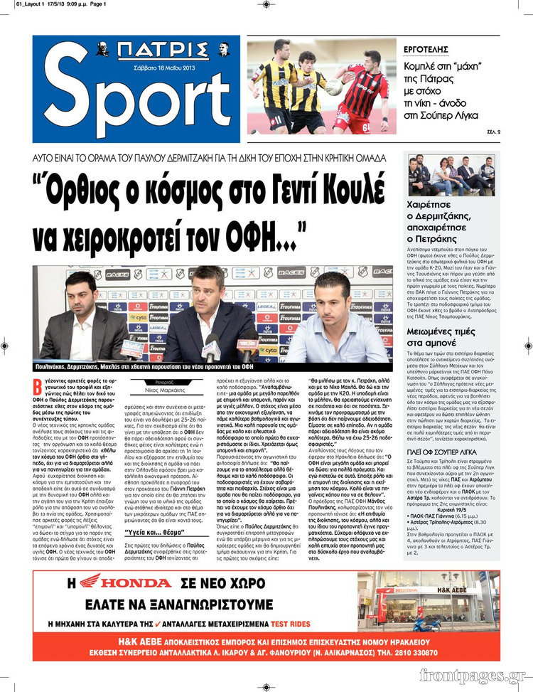 Οι αθλητικές εφημερίδες Enikos Newsroom 08:45, Σάββατο 18 Μαΐου 2013 Media Οι αθλητικές εφημερίδες Διαβάστε τα πρωτοσέλιδα των αθλητικών εφημερίδων: ΑΘΛΗΤΙΚΕΣ ΕΦΗΜΕΡΙΔΕΣ ΕΦΗΜΕΡΙΔΕΣ ΠΡΩΤΟΣΕΛΙΔΑ Μοιράσου το: σχολίασε κι εσύ (0 σχόλια) Ακολουθήστε το enikos.gr στο Google News και μάθετε πρώτοι όλες τις ειδήσεις Δείτε όλες τις τελευταίες ειδήσεις από την Ελλάδα και τον Κόσμο στο enikos.gr Ειδήσεις Ροή Ειδήσεων 3 ώρες πριν Αυξάνουν την πίεση προς την κυβέρνηση οι αγρότες: Κλείνουν παρακαμπτήριους και ανοίγουν διόδια – Τι θα γίνει τις γιορτές 2 ώρες πριν ΟΠΕΚΕΠΕ: Προφυλακιστέος ο φερόμενος αρχηγός και ο λογιστής της εγκληματικής οργάνωσης 3 ώρες πριν Φοινικούντα: Το Σάββατο απολογείται ο 30χρονος γιος γνωστού επιχειρηματία της Πλάκας που παραδόθηκε – Όσα είπε στους αστυνομικούς και ο ρόλος του στο έγκλημα 3 ώρες πριν Μπορεί ο Μαδούρο να αντέξει τον αποκλεισμό του Τραμπ; Τι θα χρειαστεί η Ουάσινγκτον για να τον ανατρέψει 4 ώρες πριν Πρίγκιπας Ουίλιαμ – Κέιτ: Η νέα οικογενειακή φωτογραφία για τις Χριστουγεννιάτικες κάρτες του 2025 4 ώρες πριν Ύπνος: Η απλή βραδινή ρουτίνα για να προστατεύσετε τα μαλλιά σας από το κρύο κατά τη διάρκεια του χειμώνα 5 ώρες πριν Manifesting: Πώς να συναντήσετε τον σύντροφο της ζωής σας, ανάλογα με τον μήνα γέννησής σας 2 ημέρες πριν 20 χρόνια τα Χριστούγεννα ξεκινούν στα Public με μεγάλη ποικιλία σε δώρα! 3 ώρες πριν Αρχαιολόγοι ανακάλυψαν ρωμαϊκά τεχνουργήματα από μια πόλη που δεν υπήρξε ποτέ – Τα τρία εντυπωσιακά κτίρια και ο αμφορέας με τις… σαρδέλες 10 λεπτά πριν Μάρκο Νίκολιτς: «Είμαι περήφανος για τους παίκτες μου, όποιος αντίπαλος και να έρθει θα προετοιμαστούμε» 19 λεπτά πριν ΟΗΕ: Την εκλογή του νέου ύπατου αρμοστή για τους Πρόσφυγες Μπαρχάμ Άχμεντ Σαλίχ χαιρέτησε ο Αντόνιο Γκουτέρες 23 λεπτά πριν Σύνοδος Κορυφής στις Βρυξέλλες: Ακόμη πιο κοντά σε διέξοδο για τη χρηματοδότηση της Ουκρανίας 31 λεπτά πριν ΟΗΕ: Iστορική επίσκεψη του Συμβουλίου Ασφαλείας στη Δαμασκό – Mήνυμα Ελλάδας για συμπερίληψη και λογοδοσία 38 λεπτά πριν Νέος πρέσβης της Μεγάλης Βρετανίας στις ΗΠΑ ο Κρίστιαν Τέρνερ ENIKOS NETWORK Σε περίοδο αυξημένης δραστηριότητας η γρίπη στην Ελλάδα-Μέτρα προστασίας από τον ΕΟΔΥ Σκέφτεστε συνέχεια συζητήσεις που έχετε κάνει; Τι σημαίνει αυτό, σύμφωνα με ειδικό Στεγαστικό: Τι λέει η ΠΟΜΙΔΑ για τα νέα μέτρα που ανακοίνωσε ο Κυριάκος Μητσοτάκης Λαγκάρντ: Αισιόδοξη για την ανάπτυξη της Ευρωζώνης, αβέβαιη για τον πληθωρισμό Χαρτογραφώντας το «σημείο χωρίς επιστροφή»: Για πρώτη φορά αποκαλύπτεται με λεπτομέρεια το ακανθώδες όριο της ατμόσφαιρας τ... Η Google καταργεί τη λειτουργία «dark web report» – Πώς θα μπορούν οι χρήστες να διαγράφουν τα δεδομένα τους περισσότερα 17:45 , Πέμπτη 18 Δεκεμβρίου 2025 ROUK ZOUK: Εορταστικό επεισόδιο με καλεσμένους τους πρωταγωνιστές του «Γιατί ρε πατέρα» Το Σάββατο 20 Δεκεμβρίου στις 21:00, η Ζέτα Μακρυπούλια υποδέχεται εκλεκτούς ηθοποιούς που όλο... 17:20 , Πέμπτη 18 Δεκεμβρίου 2025 Άγιος έρωτας: Η Χριστίνα εξομολογείται στον πατέρα Νικόλαο, απόψε στις 21:00 στον Alpha Η Νότα αποφασίζει να εκδικηθεί τον Πέτρο και τον Στέφανο, για χάρη του Λούη, όμως τα πράγματα ... 16:50 , Πέμπτη 18 Δεκεμβρίου 2025 Να μ’ αγαπάς: Ζωή και Φωτεινή συμφιλιώνονται ως μάνα με κόρη, απόψε στις 20:00 Η ταυτότητα του Άγγελου αποκαλύπτεται στο νέο επεισόδιο της σειράς “Να μ’ αγαπάς... 15:52 , Πέμπτη 18 Δεκεμβρίου 2025 Το Σπίτι Δίπλα Στο Ποτάμι: Το καθηλωτικό τελευταίο επεισόδιο για το 2025 απόψε στι