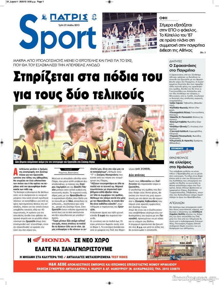 Οι αθλητικές εφημερίδες Enikos Newsroom 08:30, Τρίτη 21 Μαΐου 2013 Media Οι αθλητικές εφημερίδες Διαβάστε τα πρωτοσέλιδα των αθλητικών εφημερίδων: ΑΘΛΗΤΙΚΕΣ ΕΦΗΜΕΡΙΔΕΣ ΕΦΗΜΕΡΙΔΕΣ ΠΡΩΤΟΣΕΛΙΔΑ Μοιράσου το: σχολίασε κι εσύ (0 σχόλια) Ακολουθήστε το enikos.gr στο Google News και μάθετε πρώτοι όλες τις ειδήσεις Δείτε όλες τις τελευταίες ειδήσεις από την Ελλάδα και τον Κόσμο στο enikos.gr Ειδήσεις Ροή Ειδήσεων 3 ώρες πριν Ακίλα Σάλεχ: «Άκυρο» το τουρκολιβυκό μνημόνιο λέει ο πρόεδρος της λιβυκής Βουλής – Ανοίγει ο διάλογος με Ελλάδα, Αίγυπτο και Τουρκία 8 ώρες πριν Αγρότες: Την Τρίτη η απόφαση για διάλογο ή κλιμάκωση των κινητοποιήσεών τους – Πώς χαρακτηρίζουν τις ανακοινώσεις Τσιάρα και οι επόμενες κινήσεις 7 ώρες πριν Τραμπ για Ουκρανία: «Είμαστε πιο κοντά σε συμφωνία από ποτέ» – «Πολυεθνική δύναμη» προτείνουν οι Ευρωπαίοι 7 ώρες πριν Κυψέλη: Η 16χρονη που μαχαίρωσε την 14χρονη είχε συλληφθεί 3 φορές στο παρελθόν – Έβριζε καθηγητές, έβαζε φωτιές σε κάδους και εκβίαζε συμμαθητές της 7 ώρες πριν Τρομοκρατική επίθεση στο Σίδνεϊ: Θλίψη για τα 15 θύματα – Οργή στην εβραϊκή κοινότητα που προειδοποιούσε επί δύο χρόνια 7 ώρες πριν Επιστήμονες ίσως έλυσαν το μυστήριο γύρω από τα Χόμπιτ – Νέα έρευνα αποκαλύπτει πώς εξαφανίστηκαν 8 ώρες πριν Ύπνος: Η αρχαία μορφή άσκησης που αποδεικνύεται αποτελεσματική στην αντιμετώπιση της αϋπνίας, σύμφωνα με μελέτη 9 ώρες πριν Αριθμολογία: Ο τυχερός σας αριθμός, ανάλογα με τον μήνα γέννησής σας 10 ώρες πριν Πώς να μην μαραίνονται γρήγορα τα κομμένα λουλούδια: Το λάθος στην τοποθέτηση του βάζου που πρέπει να αποφεύγετε 2 λεπτά πριν Δώρο Χριστουγέννων 2025: Ποιοι εργαζόμενοι το δικαιούνται – Η online εφαρμογή της ΓΣΕΕ για να το υπολογίσετε 10 λεπτά πριν Υψηλή χοληστερίνη: Γιατρός αποκαλύπτει δύο τρόπους για να την μειώσετε χωρίς φαρμακευτική αγωγή 17 λεπτά πριν Σαν σήμερα 16 Δεκεμβρίου: Τα σημαντικότερα γεγονότα της ημέρας 22 λεπτά πριν Οι οικονομικές εφημερίδες 16/12/2025 27 λεπτά πριν Οι αθλητικές εφημερίδες 16/12/2025 ENIKOS NETWORK Πότε το χρόνιο ροχαλητό να αποτελέσει ένδειξη κινδύνου για την καρδιά; Τι λένε οι ειδικοί Μάριος Θεμιστοκλέους: Το ΕΣΥ ενισχύεται, εκσυγχρονίζεται, αλλάζει ΕΒΕΠ για αγροτικές κινητοποιήσεις: Κάθε επιπλέον εβδομάδα προσθέτει περίπου 200 εκατ. ευρώ ζημιά Τι προβλέπει το νομοσχέδιο του υπουργείου Εθνικής Άμυνας – Oι αλλαγές στους μισθούς Σύγχρονος Νοστράδαμος: Προειδοποιεί για «μεγάλο γεγονός» τους επόμενους μήνες που θα συγκλονίσει τη Βρετανία και τον κόσμο Τεστ παρατηρητικότητας: Μπορείτε να βρείτε τις 3 διαφορές στις εικόνες με έναν πιγκουίνο σε 14 δευτερόλεπτα περισσότερα 05:48 , Τρίτη 16 Δεκεμβρίου 2025 Οι οικονομικές εφημερίδες 16/12/2025 Διαβάστε τα πρωτοσέλιδα από τις οικονομικές εφημερίδες, σήμερα 16/12/2025. 05:43 , Τρίτη 16 Δεκεμβρίου 2025 Οι αθλητικές εφημερίδες 16/12/2025 Διαβάστε τα πρωτοσέλιδα από τις αθλητικές εφημερίδες, σήμερα 16/12/2025. 05:38 , Τρίτη 16 Δεκεμβρίου 2025 Οι πολιτικές εφημερίδες 16/12/2025 Διαβάστε τα πρωτοσέλιδα από τις πολιτικές εφημερίδες, σήμερα 16/12/2025. 21:35 , Δευτέρα 15 Δεκεμβρίου 2025 Το Σπίτι Δίπλα Στο Ποτάμι: Η Ιουλία και ο Φωκάς μετακομίζουν στη Ρόδο – Δύο νέοι χαρακτήρες μπαίνουν στη σειρά Δύο νέοι, κομβικοί χαρακτήρες κάνουν την εμφάνισή τους αυτή την εβδομάδα στην αγαπημένη σειρά ... ΤΕΛΕΥΤΑΙΕΣ ΕΙΔΗΣΕΙΣ 10 λεπτά πριν Υψηλή χοληστερίνη: Γιατρός αποκαλύπτει δύο τρόπους... 17 λεπτά πριν Σαν σήμερα 16 Δεκεμβρίου: Τα σημαντικότερα γεγονότα... 22 λε