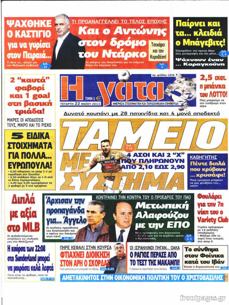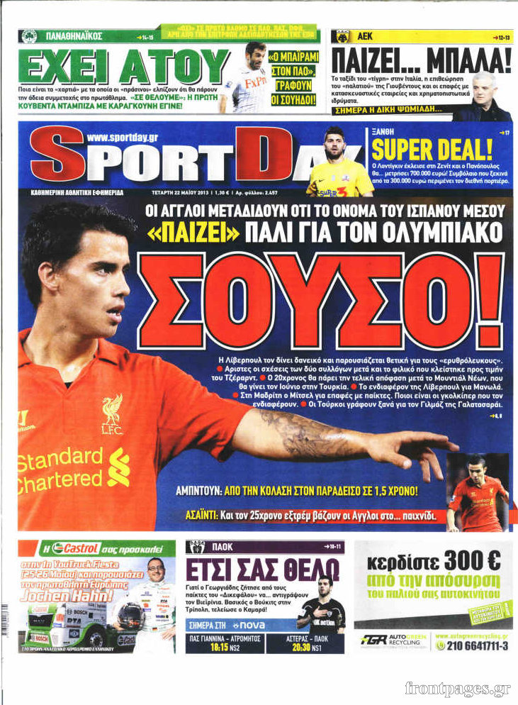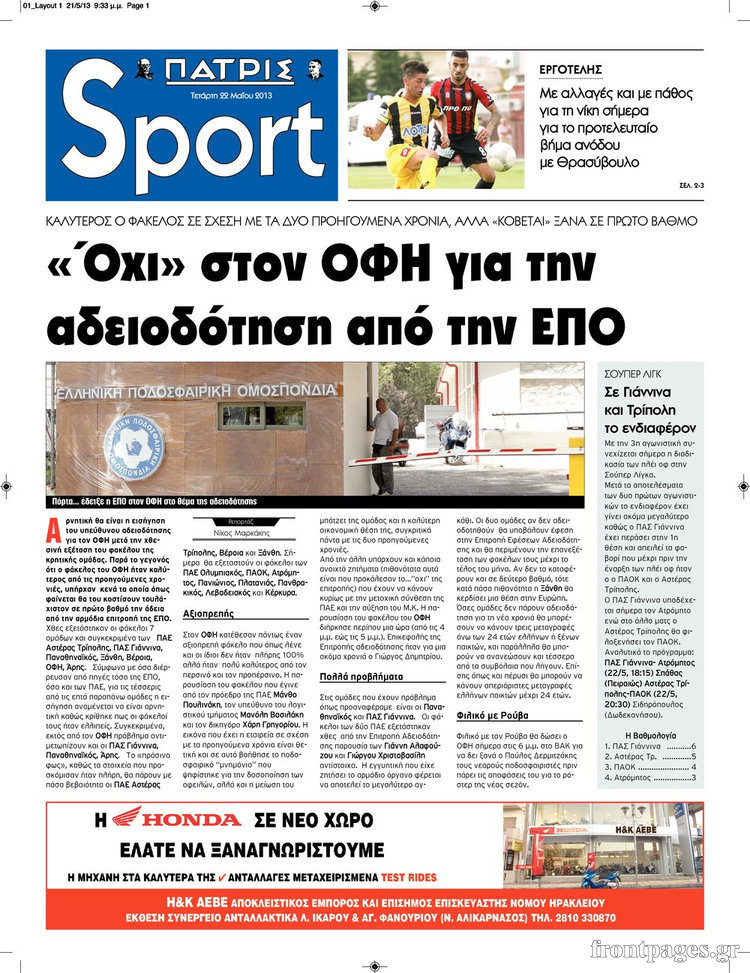 Οι αθλητικές εφημερίδες Enikos Newsroom 08:32, Τετάρτη 22 Μαΐου 2013 Media Οι αθλητικές εφημερίδες Διαβάστε τα πρωτοσέλιδα των αθλητικών εφημερίδων: ΑΘΛΗΤΙΚΕΣ ΕΦΗΜΕΡΙΔΕΣ ΕΦΗΜΕΡΙΔΕΣ ΠΡΩΤΟΣΕΛΙΔΑ Μοιράσου το: σχολίασε κι εσύ (0 σχόλια) Ακολουθήστε το enikos.gr στο Google News και μάθετε πρώτοι όλες τις ειδήσεις Δείτε όλες τις τελευταίες ειδήσεις από την Ελλάδα και τον Κόσμο στο enikos.gr Ειδήσεις Ροή Ειδήσεων 2 ώρες πριν Δημοσκόπηση Metron Analysis: Στις 10 μονάδες η διαφορά ΝΔ-ΠΑΣΟΚ, στην 3η θέση η Πλεύση Ελευθερίας – 8 στους 10 στηρίζουν τον αγώνα των αγροτών 6 ώρες πριν Αγρότες: «Όχι στον διάλογο, μας εμπαίζει η κυβέρνηση» – Αποφάσισαν κλιμάκωση των κινητοποιήσεων, τι θα γίνει τα Χριστούγεννα 1 ώρα πριν Νίκος Παππάς στον ΑΝΤ1: «Δεν κρύβομαι – Μετά το συμβάν ακολούθησα κανονικά το πρόγραμμά μου» – ΒΙΝΤΕΟ 3 ώρες πριν Αθήνα: Εξαρθρώθηκε εγκληματική οργάνωση που διακινούσε ναρκωτικά σε μορφή σοκολάτας – Δύο τράπερ ανάμεσα στους 4 συλληφθέντες – ΒΙΝΤΕΟ 1 ώρα πριν Διαμαντής Καραναστάσης: Οδηγούσε υπό την επήρεια αλκοόλ – Του αφαιρέθηκε το δίπλωμα και του επιβλήθηκε πρόστιμο 350 ευρώ 2 ώρες πριν Manifesting: Πώς να συναντήσετε τον σύντροφο της ζωής σας, ανάλογα με τον μήνα γέννησής σας 4 ώρες πριν Γάμος: 11 ψυχρές αλλά ευγενικές φράσεις, που λέει ένας άνδρας όταν σκέφτεται τον χωρισμό 3 ώρες πριν Σφουγγάρισμα: Η συνήθεια που θα σας βοηθήσει να διατηρήσετε το σπίτι σας καθαρό και τακτοποιημένο 2 ημέρες πριν 20 χρόνια τα Χριστούγεννα ξεκινούν στα Public με μεγάλη ποικιλία σε δώρα! 5 λεπτά πριν Φοινικούντα: Το Σάββατο απολογείται ο 30χρονος γιος γνωστού επιχειρηματία της Πλάκας που παραδόθηκε – Όσα είπε στους αστυνομικούς και ο ρόλος του στο έγκλημα 15 λεπτά πριν Αυξάνουν την πίεση προς την κυβέρνηση οι αγρότες: Κλείνουν παρακαμπτήριους και ανοίγουν διόδια – Τι θα γίνει τις γιορτές 19 λεπτά πριν Ελισάβετ Κωνσταντινίδου για τον Γεράσιμο Μιχελή και την Πόπη Χριστοδούλου: «Ξέρω ότι έχουν πάει απλώς κάπου αλλού, ότι δεν είναι ο θάνατος έτσι όπως τον έχουμε στο μυαλό μας» 24 λεπτά πριν Κρήτη: Νέες αποκαλύψεις για τον 54χρονο που κατηγορείται ότι εξαπάτησε τους γονείς του 33χρονου – Ζητούσε τρίχες αγνοουμένων 31 λεπτά πριν Τσιάρας: Δεν θα κινδυνέψουν οι πληρωμές των αγροτών – Χρειαζόμαστε μια νέα πολιτική, ένα restart ENIKOS NETWORK Σε περίοδο αυξημένης δραστηριότητας η γρίπη στην Ελλάδα-Μέτρα προστασίας από τον ΕΟΔΥ Σκέφτεστε συνέχεια συζητήσεις που έχετε κάνει; Τι σημαίνει αυτό, σύμφωνα με ειδικό Λαγκάρντ: Αισιόδοξη για την ανάπτυξη της Ευρωζώνης, αβέβαιη για τον πληθωρισμό ΑΣΕΠ 2ΓΒ/2025: Σήμερα αρχίζει η υποβολή ενστάσεων – Πότε θα βγουν τα οριστικά αποτελέσματα Χαρτογραφώντας το «σημείο χωρίς επιστροφή»: Για πρώτη φορά αποκαλύπτεται με λεπτομέρεια το ακανθώδες όριο της ατμόσφαιρας τ... Η Google καταργεί τη λειτουργία «dark web report» – Πώς θα μπορούν οι χρήστες να διαγράφουν τα δεδομένα τους περισσότερα 17:45 , Πέμπτη 18 Δεκεμβρίου 2025 ROUK ZOUK: Εορταστικό επεισόδιο με καλεσμένους τους πρωταγωνιστές του «Γιατί ρε πατέρα» Το Σάββατο 20 Δεκεμβρίου στις 21:00, η Ζέτα Μακρυπούλια υποδέχεται εκλεκτούς ηθοποιούς που όλο... 17:20 , Πέμπτη 18 Δεκεμβρίου 2025 Άγιος έρωτας: Η Χριστίνα εξομολογείται στον πατέρα Νικόλαο, απόψε στις 21:00 στον Alpha Η Νότα αποφασίζει να εκδικηθεί τον Πέτρο και τον Στέφανο, για χάρη του Λούη, όμως τα πράγματα ... 16:50 , Πέμπτη 18 Δεκεμβρίου 2025 Να μ’ αγαπάς: Ζωή και Φωτεινή συμφιλιώνονται ως μάνα με κόρη, απόψε στις 20:00 Η ταυτότη