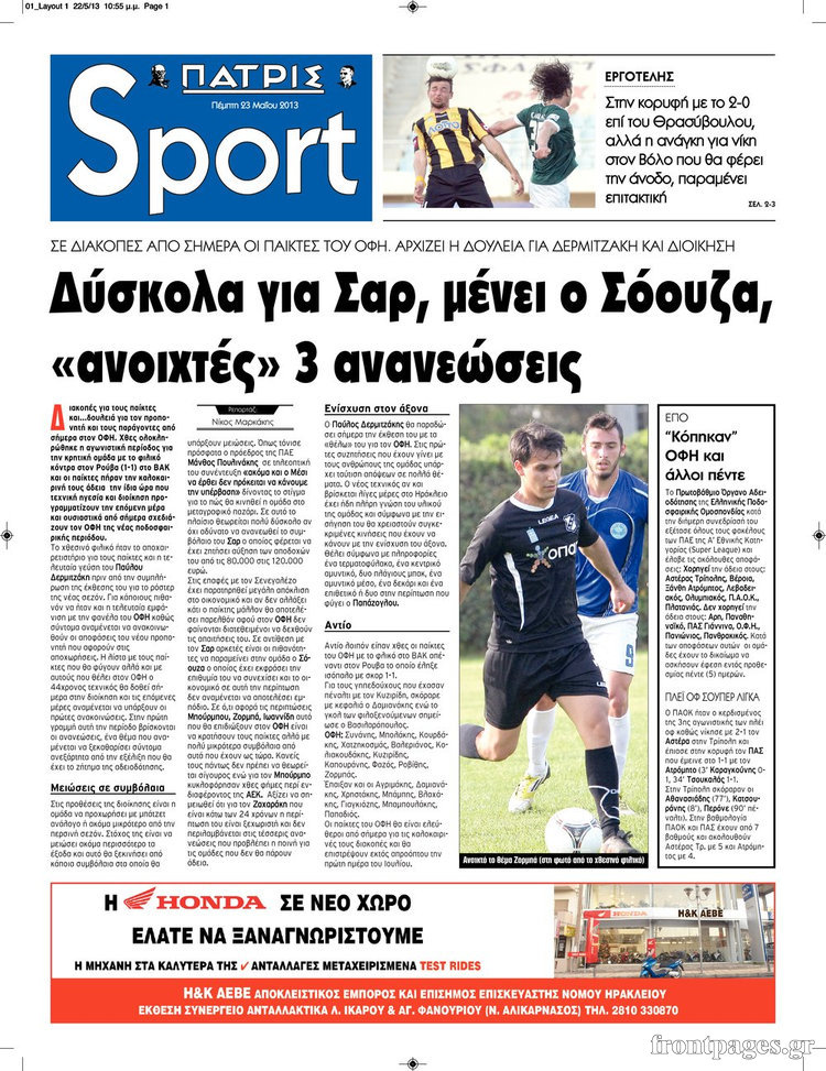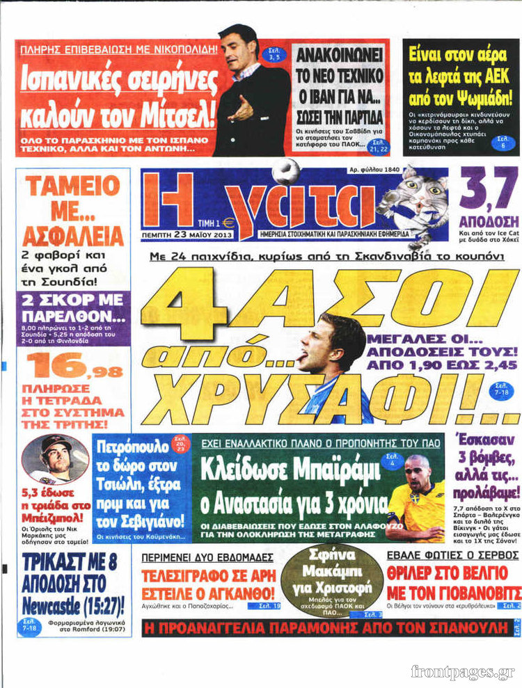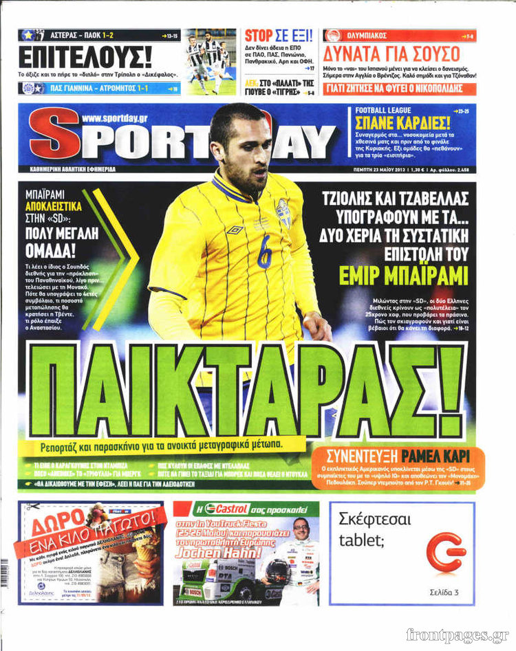 Οι αθλητικές εφημερίδες Enikos Newsroom 08:57, Πέμπτη 23 Μαΐου 2013 Media Οι αθλητικές εφημερίδες Διαβάστε τα πρωτοσέλιδα των αθλητικών εφημερίδων: ΑΘΛΗΤΙΚΕΣ ΕΦΗΜΕΡΙΔΕΣ ΕΦΗΜΕΡΙΔΕΣ ΠΡΩΤΟΣΕΛΙΔΑ Μοιράσου το: σχολίασε κι εσύ (0 σχόλια) Ακολουθήστε το enikos.gr στο Google News και μάθετε πρώτοι όλες τις ειδήσεις Δείτε όλες τις τελευταίες ειδήσεις από την Ελλάδα και τον Κόσμο στο enikos.gr Ειδήσεις Ροή Ειδήσεων 1 ώρα πριν Δημοσκόπηση Alco: Στο 23,6% η ΝΔ, στο 11,6% το ΠΑΣΟΚ – Η άποψη των πολιτών για αγρότες, εκλογές και Τσίπρα 5 ώρες πριν Κυψέλη: Για πρώτη ημέρα βρισκόταν στο σχολείο η 16χρονη που επιτέθηκε με μαχαίρι στην 14χρονη – Τι αναφέρουν μαρτυρίες μαθητών για το επεισόδιο 2 ώρες πριν Φοινικούντα: Αρνούνται τις κατηγορίες οι 2 συλληφθέντες – «Θέλω να συμβάλλω στην αποκάλυψη της αλήθειας» λέει ο ανιψιός του θύματος 3 ώρες πριν Κρήτη: Εντοπίστηκε στίγμα του 33χρονου γιατρού που έχει εξαφανιστεί μέσω νέας τεχνολογίας που εφαρμόζεται για πρώτη φορά στην Ελλάδα 4 ώρες πριν Ρομπ και Μισέλ Ράινερ: Συνελήφθη ο γιος τους ως ύποπτος για την δολοφονία τους 6 ώρες πριν Τα 3 ζώδια που θα έχουν τύχη «βουνό» έως τις 21 Δεκεμβρίου – «Η ανατροπή που περιμένετε πλησιάζει» 3 ώρες πριν Γάμος: Αν ένας άνδρας νιώθει βαθιά μοναξιά, θα αρχίσει να κάνει αυτά τα 11 πράγματα μέσα στο σπίτι 2 ώρες πριν Πώς να μην μαραίνονται γρήγορα τα κομμένα λουλούδια: Το λάθος στην τοποθέτηση του βάζου που πρέπει να αποφεύγετε 7 ώρες πριν Επιστήμονες του CERN έλυσαν ένα μυστήριο δεκαετιών της σωματιδιακής φυσικής – Τι ανακάλυψαν 6 λεπτά πριν Βάσω Λασκαράκη: «Χρόνια πολλά, αγάπη μου σε ευχαριστώ που κάνεις την ζωή μου πιο ωραία» – Οι ευχές στον Λευτέρη Σουλτάτο για την γιορτή του 11 λεπτά πριν Μερτς: Οι συνομιλίες για την Ουκρανία είναι «ίσως η μεγαλύτερη διπλωματική δυναμική» – Ζελένσκι: «Επώδυνο το εδαφικό» 16 λεπτά πριν Κόντρα Θεοδωρικάκου – Φάμελλου στη Βουλή – Τα «πυρά» της Κωνσταντοπούλου 21 λεπτά πριν Πιερρακάκης: Σύντομα η Ελλάδα θα έχει περάσει στην πρώτη πεντάδα της Ευρώπης στην ψηφιακή πολιτική – Έχουμε πετύχει έναν άθλο 26 λεπτά πριν Νέα σύλληψη στο «Ελ. Βενιζέλος» για ναρκωτικά – Χειροπέδες σε 23χρονο που είχε 18,5 κιλά κάνναβης στη βαλίτσα του ENIKOS NETWORK Πότε το χρόνιο ροχαλητό να αποτελέσει ένδειξη κινδύνου για την καρδιά; Τι λένε οι ειδικοί Μάριος Θεμιστοκλέους: Το ΕΣΥ ενισχύεται, εκσυγχρονίζεται, αλλάζει ΟΠΕΚΑ: Ποιο επίδομα αυξάνεται από τον επόμενο μήνα και γιατί Ευλογιά αιγοπροβάτων: Έως το τέλος του έτους η οικονομική στήριξη 187 εκατ. ευρώ σε κτηνοτρόφους – Όλα όσα είπε ο Πρωτοψάλτ... Σύγχρονος Νοστράδαμος: Προειδοποιεί για «μεγάλο γεγονός» τους επόμενους μήνες που θα συγκλονίσει τη Βρετανία και τον κόσμο Τεστ παρατηρητικότητας: Μπορείτε να βρείτε τις 3 διαφορές στις εικόνες με έναν πιγκουίνο σε 14 δευτερόλεπτα περισσότερα 19:46 , Δευτέρα 15 Δεκεμβρίου 2025 Άγιος έρωτας: Η Χριστίνα λέει την αλήθεια στον Αντρέα Ο Βασίλης δέχεται επίθεση από τους συμμαθητές του, η Αναστασία είναι συντετριμμένη με την απώλ... 18:45 , Δευτέρα 15 Δεκεμβρίου 2025 Συνέδριο «Ελληνικός Τουρισμός 2025, Μια εθνική υπόθεση!» – «Ο Θαλάσσιος Πυλώνας ως Ενιαία Στρατηγική: Συνέργειες σε Λιμάνια, Μαρίνες, Ακτοπλοΐα, Κρουαζιέρα και Yachting» Στο πλαίσιο της τέταρτης και τελευταίας ενότητας του 7ου συνεδρίου «Ελληνικός Τουρισμός 2025, ... 18:13 , Δευτέρα 15 Δεκεμβρίου 2025 Συνέδριο «Ελληνικός Τουρισμός 2025, Μια εθνική υπόθεση!» – Κικίλιας: «Μεγάλα asset της Ελλάδας η ναυτιλ