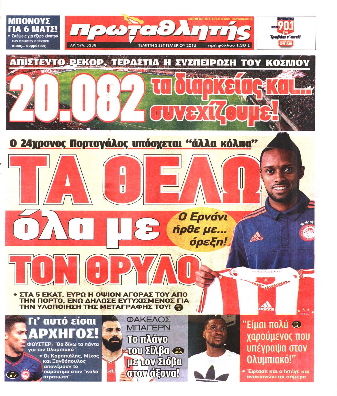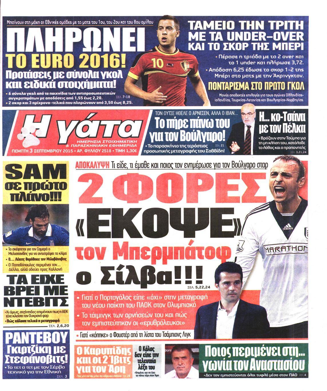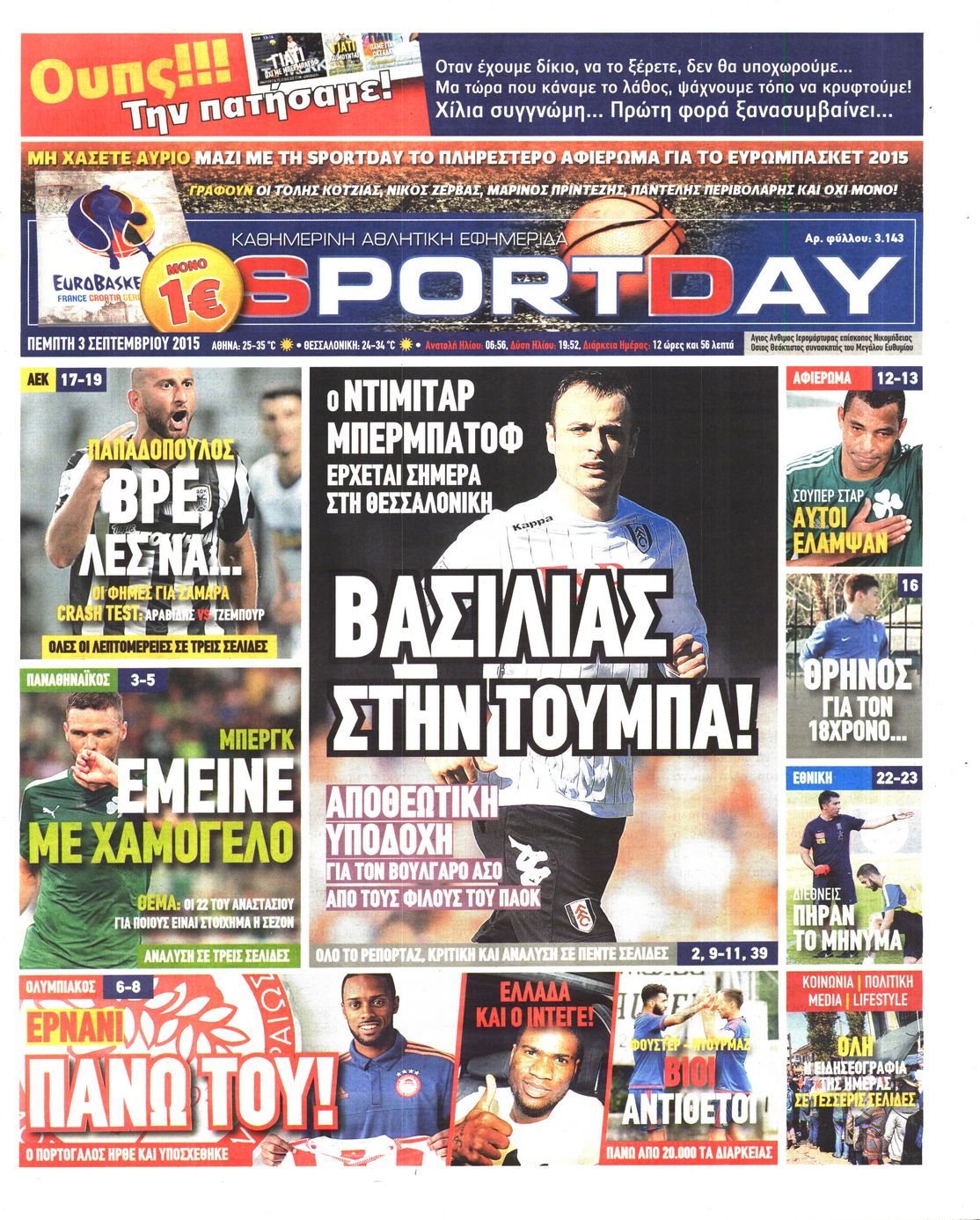 Οι αθλητικές εφημερίδες 3/9/2015 Enikos Newsroom 08:07, Πέμπτη 03 Σεπτεμβρίου 2015 Media Διαβάστε τα πρωτοσέλιδα των αθλητικών εφημερίδων. ΑΘΛΗΤΙΚΕΣ ΕΦΗΜΕΡΙΔΕΣ ΠΡΩΤΟΣΕΛΙΔΑ Μοιράσου το: σχολίασε κι εσύ (0 σχόλια) Ακολουθήστε το enikos.gr στο Google News και μάθετε πρώτοι όλες τις ειδήσεις Δείτε όλες τις τελευταίες ειδήσεις από την Ελλάδα και τον Κόσμο στο enikos.gr Ειδήσεις Ροή Ειδήσεων 4 ώρες πριν Χριστούγεννα στα μπλόκα: Επιμένουν στις κινητοποιήσεις τους οι αγρότες – Ανοίγουν τα διόδια το Σαββατοκύριακο 4 ώρες πριν Ουκρανία: Η άνευ προηγουμένου επίθεση σε ρωσικό τάνκερ στη Μεσόγειο και το μήνυμα προς στον Πούτιν – Το «μακρύ χέρι» του Κιέβου 3 ώρες πριν Πούτιν: Τα μηνύματα σε Ευρώπη και ΝΑΤΟ από το μαραθώνιο «σόου» του – Η απαίτηση για «σεβασμό» και η ειρήνη «με τους όρους» της Μόσχας 4 ώρες πριν Τραμπ: Δεν αποκλείει την πιθανότητα ενός πολέμου στη Βενεζουέλα – «Ο Μαδούρο ξέρει καλύτερα από τον καθένα τι ακριβώς θέλω» 5 ώρες πριν Συνεχίζει να προκαλεί ο Μίτσκοσκι: «Για μένα το όνομα Μακεδονία είναι ιερό» 3 ώρες πριν Ανακαλύφθηκαν αρχαία χρυσά νομίσματα 2.200 ετών που απεικονίζουν τον θεό Απόλλωνα – Η άγνωστη σύνδεση με τον Φίλιππο Β΄ της Μακεδονίας 4 ώρες πριν Ύπνος: Μια κρυφή κατάσταση του εγκεφάλου πριν από τον ύπνο μπορεί να είναι το “κλειδί” για υψηλή ευφυΐα και δημιουργικότητα 5 ώρες πριν Αριθμολογία: Οι άνθρωποι που έχουν γεννηθεί αυτές τις 4 ημερομηνίες, συχνά παρεξηγούνται – «Η καλοσύνη τους κρύβει τεράστια δύναμη» 6 ώρες πριν Ξεχάστε το καθάρισμα το Σαββατοκύριακο: Ο «κανόνας των 20 λεπτών» που θα σας λύσει τα χέρια 9 λεπτά πριν Εξάρχεια: Ένταση με μολότοφ, χημικά και κρότου λάμψης 24 λεπτά πριν ΗΠΑ: Τραγωδία στην Αλαμπάμα – Σκότωσε την δημοσιογράφο σύζυγό του και αυτοκτόνησε μπροστά στον 3χρονο γιο τους 39 λεπτά πριν Πρόταση γάμου στο ΣΕΦ κατά την διάρκεια του αγώνα Ολυμπιακός-Βιλερμπάν – Δείτε βίντεο 54 λεπτά πριν Euroleague: Επέστρεψε στις νίκες ο Ολυμπιακός, πήρε την ματσάρα της χρονιάς η Μπάρτσα – Τα αποτελέσματα και η βαθμολογία 1 ώρα πριν Συρία: Μαζικά πλήγματα των ΗΠΑ σε θέσεις του Ισλαμικού Κράτους – Χέγκσεθ: «Δεν είναι αρχή πολέμου, είναι μια δήλωση εκδίκησης» για το θάνατο των στρατιωτών μας ENIKOS NETWORK Το ΕΚΑΒ τιμήθηκε από την Ακαδημία Αθηνών για τα 40 χρόνια προσφοράς του Έχετε πραγματικά μεγάλη καρδιά; 10 χαρακτηριστικά όσων έχουν καλοσύνη Αναστολή μέτρων αναγκαστικής εκτέλεσης για κτηνοτρόφους που πλήττονται από την ευλογιά των αιγοπροβάτων Πλήρης επάρκεια προϊόντων στις λαϊκές της Αττικής, παρά τις αγροτικές κινητοποιήσεις – Τι απαντούν οι πωλητές Χαρτογραφώντας το «σημείο χωρίς επιστροφή»: Για πρώτη φορά αποκαλύπτεται με λεπτομέρεια το ακανθώδες όριο της ατμόσφαιρας τ... Η Google καταργεί τη λειτουργία «dark web report» – Πώς θα μπορούν οι χρήστες να διαγράφουν τα δεδομένα τους περισσότερα 22:42 , Παρασκευή 19 Δεκεμβρίου 2025 Γιώργος Γιαννόπουλος για “Το σόι σου”: “Είναι ευτυχία και ευλογία αυτή η σειρά” «Είναι ευτυχία και ευλογία η συγκυρία αυτής της σειράς», θα πει ο Γιώργος Γιαννόπουλος -ο αγαπ... 20:37 , Παρασκευή 19 Δεκεμβρίου 2025 Don’t Forget The Lyrics: Η Έλλη Κοκκίνου υποδέχεται 4 παίκτες που θα κάνουν τα πάντα για να μη χάσουν ούτε… μισή λέξη από τους στίχους Το «Don’t Forget The Lyrics» επιστρέφει απόψε, Παρασκευή 19 Δεκεμβρίου, στις 21:00 με νέο επει... 19:31 , Παρασκευή 19 Δεκεμβρίου 2025 GNTM: Απόψε ο μεγάλος τελικός για τους 4 φιναλίστ Έπειτα από μήνες γεμάτους μόδα, δημιουργία και έντονες 