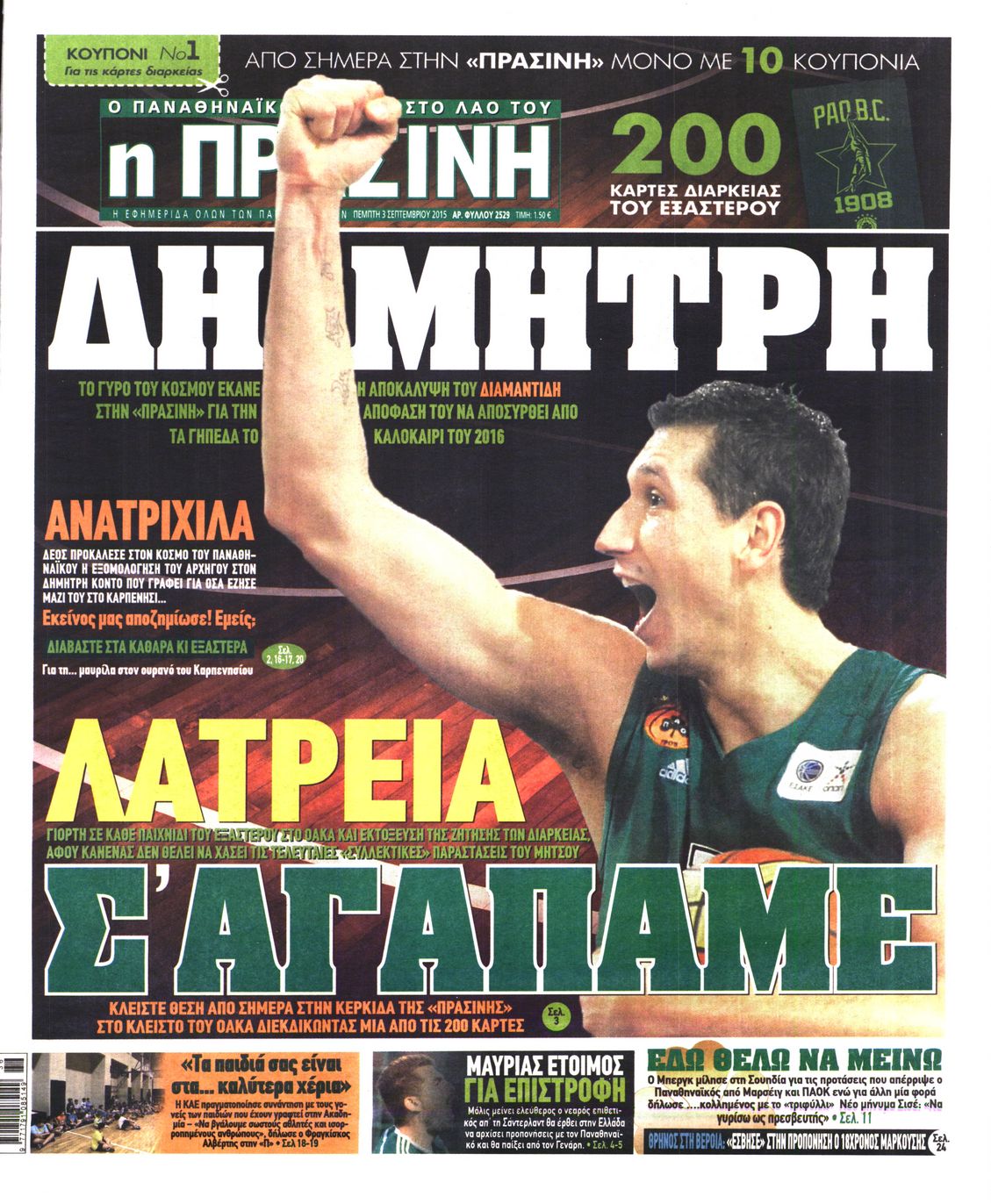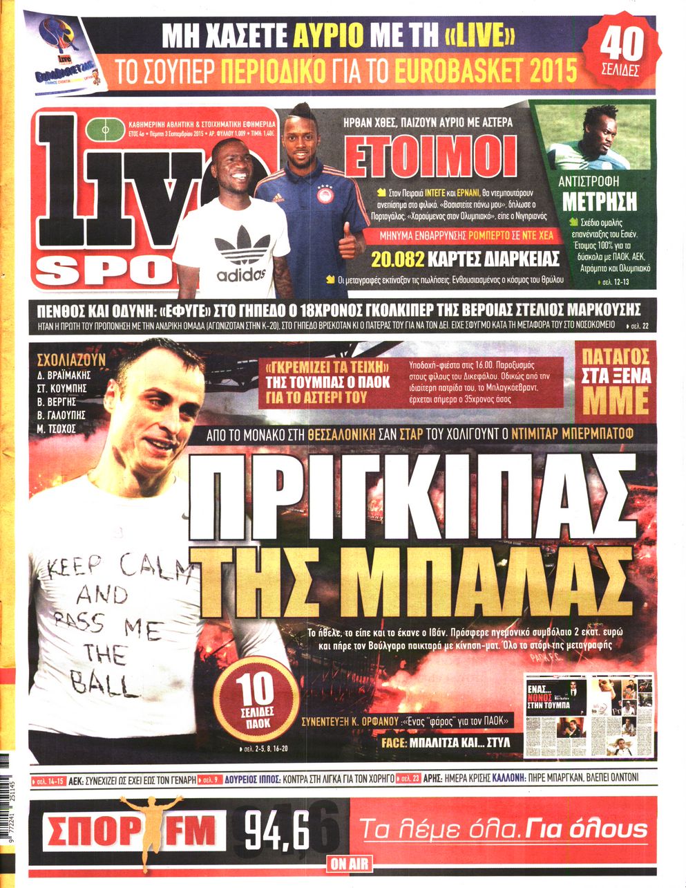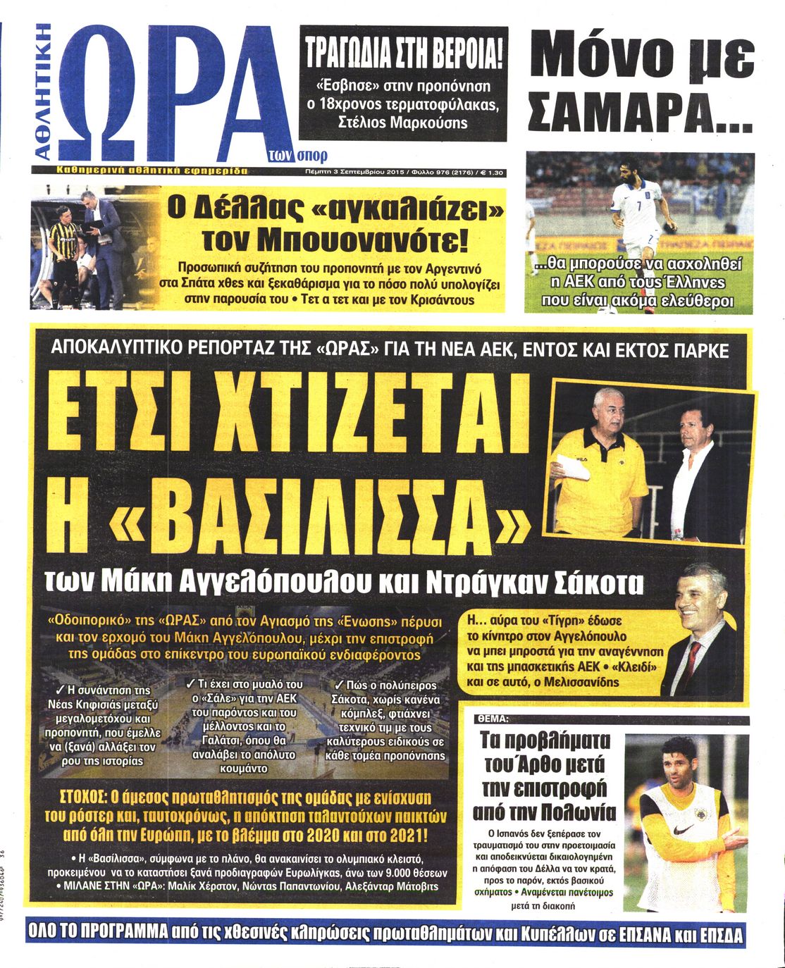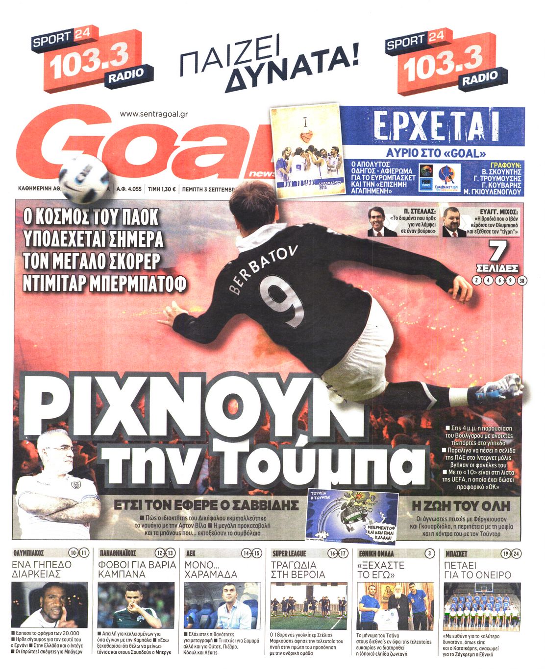 Οι αθλητικές εφημερίδες 3/9/2015 Enikos Newsroom 08:07, Πέμπτη 03 Σεπτεμβρίου 2015 Media Διαβάστε τα πρωτοσέλιδα των αθλητικών εφημερίδων. ΑΘΛΗΤΙΚΕΣ ΕΦΗΜΕΡΙΔΕΣ ΠΡΩΤΟΣΕΛΙΔΑ Μοιράσου το: σχολίασε κι εσύ (0 σχόλια) Ακολουθήστε το enikos.gr στο Google News και μάθετε πρώτοι όλες τις ειδήσεις Δείτε όλες τις τελευταίες ειδήσεις από την Ελλάδα και τον Κόσμο στο enikos.gr Ειδήσεις Ροή Ειδήσεων 4 ώρες πριν Χριστούγεννα στα μπλόκα: Επιμένουν στις κινητοποιήσεις τους οι αγρότες – Ανοίγουν τα διόδια το Σαββατοκύριακο 4 ώρες πριν Ουκρανία: Η άνευ προηγουμένου επίθεση σε ρωσικό τάνκερ στη Μεσόγειο και το μήνυμα προς στον Πούτιν – Το «μακρύ χέρι» του Κιέβου 3 ώρες πριν Πούτιν: Τα μηνύματα σε Ευρώπη και ΝΑΤΟ από το μαραθώνιο «σόου» του – Η απαίτηση για «σεβασμό» και η ειρήνη «με τους όρους» της Μόσχας 4 ώρες πριν Τραμπ: Δεν αποκλείει την πιθανότητα ενός πολέμου στη Βενεζουέλα – «Ο Μαδούρο ξέρει καλύτερα από τον καθένα τι ακριβώς θέλω» 5 ώρες πριν Συνεχίζει να προκαλεί ο Μίτσκοσκι: «Για μένα το όνομα Μακεδονία είναι ιερό» 3 ώρες πριν Ανακαλύφθηκαν αρχαία χρυσά νομίσματα 2.200 ετών που απεικονίζουν τον θεό Απόλλωνα – Η άγνωστη σύνδεση με τον Φίλιππο Β΄ της Μακεδονίας 4 ώρες πριν Ύπνος: Μια κρυφή κατάσταση του εγκεφάλου πριν από τον ύπνο μπορεί να είναι το “κλειδί” για υψηλή ευφυΐα και δημιουργικότητα 5 ώρες πριν Αριθμολογία: Οι άνθρωποι που έχουν γεννηθεί αυτές τις 4 ημερομηνίες, συχνά παρεξηγούνται – «Η καλοσύνη τους κρύβει τεράστια δύναμη» 6 ώρες πριν Ξεχάστε το καθάρισμα το Σαββατοκύριακο: Ο «κανόνας των 20 λεπτών» που θα σας λύσει τα χέρια 9 λεπτά πριν Εξάρχεια: Ένταση με μολότοφ, χημικά και κρότου λάμψης 24 λεπτά πριν ΗΠΑ: Τραγωδία στην Αλαμπάμα – Σκότωσε την δημοσιογράφο σύζυγό του και αυτοκτόνησε μπροστά στον 3χρονο γιο τους 39 λεπτά πριν Πρόταση γάμου στο ΣΕΦ κατά την διάρκεια του αγώνα Ολυμπιακός-Βιλερμπάν – Δείτε βίντεο 54 λεπτά πριν Euroleague: Επέστρεψε στις νίκες ο Ολυμπιακός, πήρε την ματσάρα της χρονιάς η Μπάρτσα – Τα αποτελέσματα και η βαθμολογία 1 ώρα πριν Συρία: Μαζικά πλήγματα των ΗΠΑ σε θέσεις του Ισλαμικού Κράτους – Χέγκσεθ: «Δεν είναι αρχή πολέμου, είναι μια δήλωση εκδίκησης» για το θάνατο των στρατιωτών μας ENIKOS NETWORK Το ΕΚΑΒ τιμήθηκε από την Ακαδημία Αθηνών για τα 40 χρόνια προσφοράς του Έχετε πραγματικά μεγάλη καρδιά; 10 χαρακτηριστικά όσων έχουν καλοσύνη Αναστολή μέτρων αναγκαστικής εκτέλεσης για κτηνοτρόφους που πλήττονται από την ευλογιά των αιγοπροβάτων Πλήρης επάρκεια προϊόντων στις λαϊκές της Αττικής, παρά τις αγροτικές κινητοποιήσεις – Τι απαντούν οι πωλητές Χαρτογραφώντας το «σημείο χωρίς επιστροφή»: Για πρώτη φορά αποκαλύπτεται με λεπτομέρεια το ακανθώδες όριο της ατμόσφαιρας τ... Η Google καταργεί τη λειτουργία «dark web report» – Πώς θα μπορούν οι χρήστες να διαγράφουν τα δεδομένα τους περισσότερα 22:42 , Παρασκευή 19 Δεκεμβρίου 2025 Γιώργος Γιαννόπουλος για “Το σόι σου”: “Είναι ευτυχία και ευλογία αυτή η σειρά” «Είναι ευτυχία και ευλογία η συγκυρία αυτής της σειράς», θα πει ο Γιώργος Γιαννόπουλος -ο αγαπ... 20:37 , Παρασκευή 19 Δεκεμβρίου 2025 Don’t Forget The Lyrics: Η Έλλη Κοκκίνου υποδέχεται 4 παίκτες που θα κάνουν τα πάντα για να μη χάσουν ούτε… μισή λέξη από τους στίχους Το «Don’t Forget The Lyrics» επιστρέφει απόψε, Παρασκευή 19 Δεκεμβρίου, στις 21:00 με νέο επει... 19:31 , Παρασκευή 19 Δεκεμβρίου 2025 GNTM: Απόψε ο μεγάλος τελικός για τους 4 φιναλίστ Έπειτα από μήνες γεμάτους μόδα, δημιουργία και έντονες 