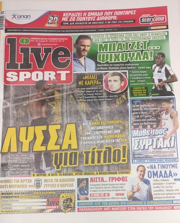 Οι αθλητικές εφημερίδες 3/9/2019 Κώστας Τεό 06:52, Τρίτη 03 Σεπτεμβρίου 2019 Media Διαβάστε τα πρωτοσέλιδα των αθλητικών εφημερίδων: ΑΘΛΗΤΙΚΕΣ ΕΦΗΜΕΡΙΔΕΣ ΠΡΩΤΟΣΕΛΙΔΑ Μοιράσου το: σχολίασε κι εσύ (0 σχόλια) Ακολουθήστε το enikos.gr στο Google News και μάθετε πρώτοι όλες τις ειδήσεις Δείτε όλες τις τελευταίες ειδήσεις από την Ελλάδα και τον Κόσμο στο enikos.gr Ειδήσεις Ροή Ειδήσεων 4 ώρες πριν Χριστούγεννα στα μπλόκα: Επιμένουν στις κινητοποιήσεις τους οι αγρότες – Ανοίγουν τα διόδια το Σαββατοκύριακο 4 ώρες πριν Ουκρανία: Η άνευ προηγουμένου επίθεση σε ρωσικό τάνκερ στη Μεσόγειο και το μήνυμα προς στον Πούτιν – Το «μακρύ χέρι» του Κιέβου 3 ώρες πριν Πούτιν: Τα μηνύματα σε Ευρώπη και ΝΑΤΟ από το μαραθώνιο «σόου» του – Η απαίτηση για «σεβασμό» και η ειρήνη «με τους όρους» της Μόσχας 4 ώρες πριν Τραμπ: Δεν αποκλείει την πιθανότητα ενός πολέμου στη Βενεζουέλα – «Ο Μαδούρο ξέρει καλύτερα από τον καθένα τι ακριβώς θέλω» 5 ώρες πριν Συνεχίζει να προκαλεί ο Μίτσκοσκι: «Για μένα το όνομα Μακεδονία είναι ιερό» 3 ώρες πριν Ανακαλύφθηκαν αρχαία χρυσά νομίσματα 2.200 ετών που απεικονίζουν τον θεό Απόλλωνα – Η άγνωστη σύνδεση με τον Φίλιππο Β΄ της Μακεδονίας 4 ώρες πριν Ύπνος: Μια κρυφή κατάσταση του εγκεφάλου πριν από τον ύπνο μπορεί να είναι το “κλειδί” για υψηλή ευφυΐα και δημιουργικότητα 5 ώρες πριν Αριθμολογία: Οι άνθρωποι που έχουν γεννηθεί αυτές τις 4 ημερομηνίες, συχνά παρεξηγούνται – «Η καλοσύνη τους κρύβει τεράστια δύναμη» 6 ώρες πριν Ξεχάστε το καθάρισμα το Σαββατοκύριακο: Ο «κανόνας των 20 λεπτών» που θα σας λύσει τα χέρια 13 λεπτά πριν Εξάρχεια: Ένταση με μολότοφ, χημικά και κρότου λάμψης 28 λεπτά πριν ΗΠΑ: Τραγωδία στην Αλαμπάμα – Σκότωσε την δημοσιογράφο σύζυγό του και αυτοκτόνησε μπροστά στον 3χρονο γιο τους 43 λεπτά πριν Πρόταση γάμου στο ΣΕΦ κατά την διάρκεια του αγώνα Ολυμπιακός-Βιλερμπάν – Δείτε βίντεο 58 λεπτά πριν Euroleague: Επέστρεψε στις νίκες ο Ολυμπιακός, πήρε την ματσάρα της χρονιάς η Μπάρτσα – Τα αποτελέσματα και η βαθμολογία 1 ώρα πριν Συρία: Μαζικά πλήγματα των ΗΠΑ σε θέσεις του Ισλαμικού Κράτους – Χέγκσεθ: «Δεν είναι αρχή πολέμου, είναι μια δήλωση εκδίκησης» για το θάνατο των στρατιωτών μας ENIKOS NETWORK Το ΕΚΑΒ τιμήθηκε από την Ακαδημία Αθηνών για τα 40 χρόνια προσφοράς του Έχετε πραγματικά μεγάλη καρδιά; 10 χαρακτηριστικά όσων έχουν καλοσύνη Αναστολή μέτρων αναγκαστικής εκτέλεσης για κτηνοτρόφους που πλήττονται από την ευλογιά των αιγοπροβάτων Πλήρης επάρκεια προϊόντων στις λαϊκές της Αττικής, παρά τις αγροτικές κινητοποιήσεις – Τι απαντούν οι πωλητές Χαρτογραφώντας το «σημείο χωρίς επιστροφή»: Για πρώτη φορά αποκαλύπτεται με λεπτομέρεια το ακανθώδες όριο της ατμόσφαιρας τ... Η Google καταργεί τη λειτουργία «dark web report» – Πώς θα μπορούν οι χρήστες να διαγράφουν τα δεδομένα τους περισσότερα 22:42 , Παρασκευή 19 Δεκεμβρίου 2025 Γιώργος Γιαννόπουλος για “Το σόι σου”: “Είναι ευτυχία και ευλογία αυτή η σειρά” «Είναι ευτυχία και ευλογία η συγκυρία αυτής της σειράς», θα πει ο Γιώργος Γιαννόπουλος -ο αγαπ... 20:37 , Παρασκευή 19 Δεκεμβρίου 2025 Don’t Forget The Lyrics: Η Έλλη Κοκκίνου υποδέχεται 4 παίκτες που θα κάνουν τα πάντα για να μη χάσουν ούτε… μισή λέξη από τους στίχους Το «Don’t Forget The Lyrics» επιστρέφει απόψε, Παρασκευή 19 Δεκεμβρίου, στις 21:00 με νέο επει... 19:31 , Παρασκευή 19 Δεκεμβρίου 2025 GNTM: Απόψε ο μεγάλος τελικός για τους 4 φιναλίστ Έπειτα από μήνες γεμάτους μόδα, δημιουργία και έντονε