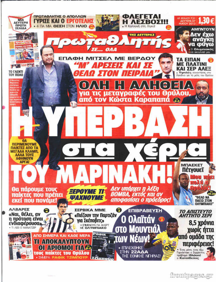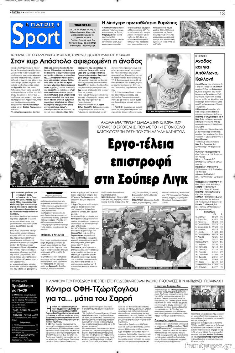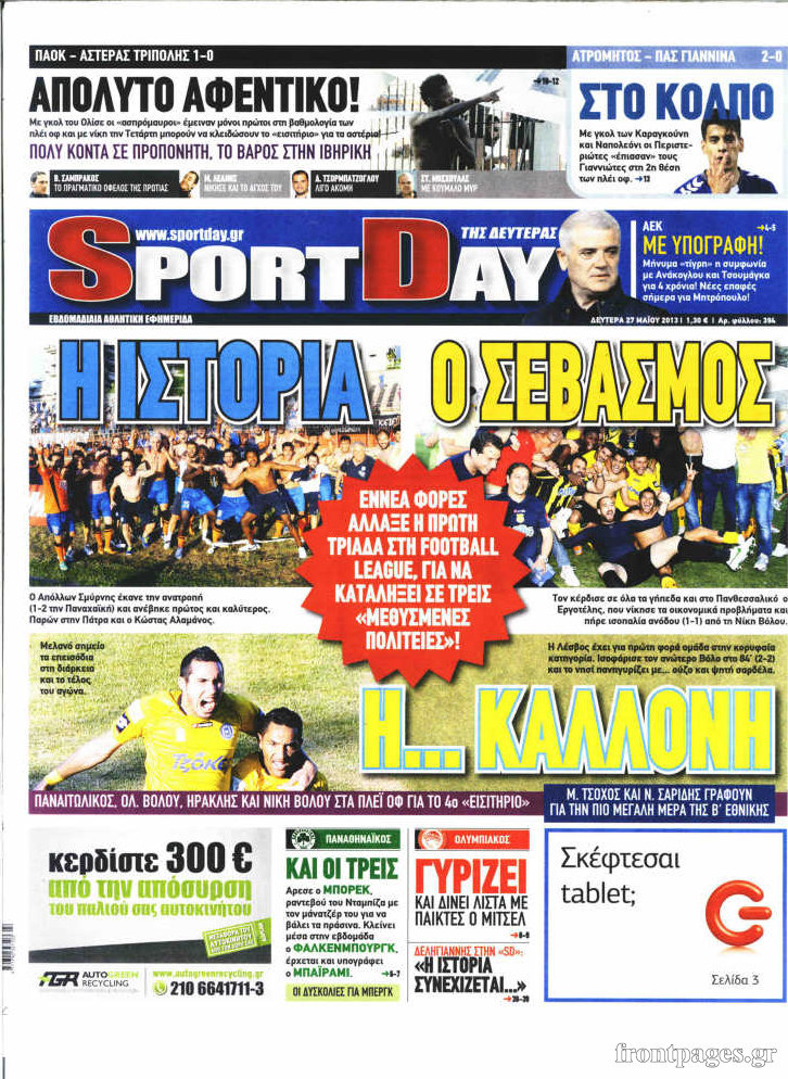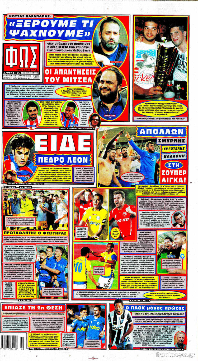 Οι αθλητικές εφημερίδες Enikos Newsroom 08:21, Δευτέρα 27 Μαΐου 2013 Media Οι αθλητικές εφημερίδες Διαβάστε τα πρωτοσέλιδα των αθλητικών εφημερίδων: ΑΘΛΗΤΙΚΕΣ ΕΦΗΜΕΡΙΔΕΣ ΕΦΗΜΕΡΙΔΕΣ ΠΡΩΤΟΣΕΛΙΔΑ Μοιράσου το: σχολίασε κι εσύ (0 σχόλια) Ακολουθήστε το enikos.gr στο Google News και μάθετε πρώτοι όλες τις ειδήσεις Δείτε όλες τις τελευταίες ειδήσεις από την Ελλάδα και τον Κόσμο στο enikos.gr Ειδήσεις Ροή Ειδήσεων 52 λεπτά πριν Ευρωπαϊκή Ένωση: Χωρίς συμφωνία, για την μακροπρόθεσμη χρηματοδότηση της Ουκρανίας, ολοκληρώθηκε η Σύνοδος Κορυφής στις Βρυξέλλες 4 ώρες πριν ΟΠΕΚΕΠΕ: Προφυλακιστέος ο φερόμενος αρχηγός και ο λογιστής της εγκληματικής οργάνωσης 5 ώρες πριν Αυξάνουν την πίεση προς την κυβέρνηση οι αγρότες: Κλείνουν παρακαμπτήριους και ανοίγουν διόδια – Τι θα γίνει τις γιορτές 5 ώρες πριν Φοινικούντα: Το Σάββατο απολογείται ο 30χρονος γιος γνωστού επιχειρηματία της Πλάκας που παραδόθηκε – Όσα είπε στους αστυνομικούς και ο ρόλος του στο έγκλημα 4 ώρες πριν ΑΕΚ – Κραϊόβα 3-2: Επική ανατροπή και πρόκριση στους «16» του Conference League η Ένωση 5 ώρες πριν Αρχαιολόγοι ανακάλυψαν ρωμαϊκά τεχνουργήματα από μια πόλη που δεν υπήρξε ποτέ – Τα τρία εντυπωσιακά κτίρια και ο αμφορέας με τις… σαρδέλες 6 ώρες πριν Ύπνος: Η απλή βραδινή ρουτίνα για να προστατεύσετε τα μαλλιά σας από το κρύο κατά τη διάρκεια του χειμώνα 7 ώρες πριν Manifesting: Πώς να συναντήσετε τον σύντροφο της ζωής σας, ανάλογα με τον μήνα γέννησής σας 2 ημέρες πριν 20 χρόνια τα Χριστούγεννα ξεκινούν στα Public με μεγάλη ποικιλία σε δώρα! 4 λεπτά πριν Αιματηρή βομβιστική επίθεση στην Υεμένη: Τουλάχιστον τρεις νεκροί και 13 τραυματίες 8 λεπτά πριν Στη Φλόριντα σήμερα οι διαβουλεύσεις σχετικά με τα επόμενα στάδια για τη Λωρίδα της Γάζας 12 λεπτά πριν Σίσσυ Τουμάση: «Είμαι ασθενοφοβική πάρα πολύ και με πιάνει μια παράνοια μ’ αυτό» 36 λεπτά πριν Ντόναλντ Τραμπ: Δεν χρειάζομαι την έγκριση του Κογκρέσου για να διατάξω στρατιωτικά πλήγματα στη Βενεζουέλα 52 λεπτά πριν Ευρωπαϊκή Ένωση: Χωρίς συμφωνία, για την μακροπρόθεσμη χρηματοδότηση της Ουκρανίας, ολοκληρώθηκε η Σύνοδος Κορυφής στις Βρυξέλλες ENIKOS NETWORK Σε περίοδο αυξημένης δραστηριότητας η γρίπη στην Ελλάδα-Μέτρα προστασίας από τον ΕΟΔΥ Σκέφτεστε συνέχεια συζητήσεις που έχετε κάνει; Τι σημαίνει αυτό, σύμφωνα με ειδικό Στεγαστικό: Τι λέει η ΠΟΜΙΔΑ για τα νέα μέτρα που ανακοίνωσε ο Κυριάκος Μητσοτάκης Λαγκάρντ: Αισιόδοξη για την ανάπτυξη της Ευρωζώνης, αβέβαιη για τον πληθωρισμό Χαρτογραφώντας το «σημείο χωρίς επιστροφή»: Για πρώτη φορά αποκαλύπτεται με λεπτομέρεια το ακανθώδες όριο της ατμόσφαιρας τ... Η Google καταργεί τη λειτουργία «dark web report» – Πώς θα μπορούν οι χρήστες να διαγράφουν τα δεδομένα τους περισσότερα 02:50 , Παρασκευή 19 Δεκεμβρίου 2025 GNTM: «Κλείδωσαν» οι τέσσερις φιναλίστ – Μεγάλη ανατροπή στις τελευταίες αποχωρήσεις Για προτελευταία φορά εμφανίστηκαν στο πλατό του GNTM οι φιναλίστ του φετινού κύκλου, το βράδυ... 17:45 , Πέμπτη 18 Δεκεμβρίου 2025 ROUK ZOUK: Εορταστικό επεισόδιο με καλεσμένους τους πρωταγωνιστές του «Γιατί ρε πατέρα» Το Σάββατο 20 Δεκεμβρίου στις 21:00, η Ζέτα Μακρυπούλια υποδέχεται εκλεκτούς ηθοποιούς που όλο... 17:20 , Πέμπτη 18 Δεκεμβρίου 2025 Άγιος έρωτας: Η Χριστίνα εξομολογείται στον πατέρα Νικόλαο, απόψε στις 21:00 στον Alpha Η Νότα αποφασίζει να εκδικηθεί τον Πέτρο και τον Στέφανο, για χάρη του Λούη, όμως τα πράγματα ... 16:50 , Πέμπτη 18 Δεκεμβρίου 2025 Να μ’ αγαπάς: Ζωή και Φωτεινή συμφι