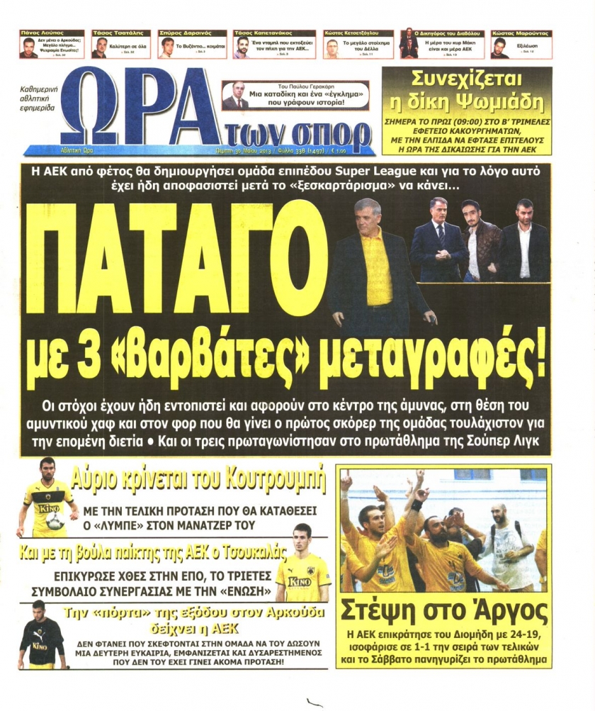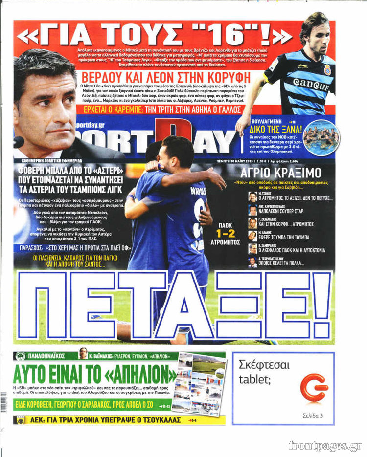 Οι αθλητικές εφημερίδες Enikos Newsroom 08:18, Πέμπτη 30 Μαΐου 2013 Media Οι αθλητικές εφημερίδες Διαβάστε τα πρωτοσέλιδα των αθλητικών εφημερίδων: ΑΘΛΗΤΙΚΕΣ ΕΦΗΜΕΡΙΔΕΣ ΕΦΗΜΕΡΙΔΕΣ ΠΡΩΤΟΣΕΛΙΔΑ Μοιράσου το: σχολίασε κι εσύ (0 σχόλια) Ακολουθήστε το enikos.gr στο Google News και μάθετε πρώτοι όλες τις ειδήσεις Δείτε όλες τις τελευταίες ειδήσεις από την Ελλάδα και τον Κόσμο στο enikos.gr Ειδήσεις Ροή Ειδήσεων 2 ώρες πριν Αυξάνουν την πίεση προς την κυβέρνηση οι αγρότες: Κλείνουν παρακαμπτήριους και ανοίγουν διόδια – Τι θα γίνει τις γιορτές 44 λεπτά πριν ΟΠΕΚΕΠΕ: Προφυλακιστέος ο φερόμενος αρχηγός και ο λογιστής της εγκληματικής οργάνωσης 2 ώρες πριν Φοινικούντα: Το Σάββατο απολογείται ο 30χρονος γιος γνωστού επιχειρηματία της Πλάκας που παραδόθηκε – Όσα είπε στους αστυνομικούς και ο ρόλος του στο έγκλημα 1 ώρα πριν Μπορεί ο Μαδούρο να αντέξει τον αποκλεισμό του Τραμπ; Τι θα χρειαστεί η Ουάσινγκτον για να τον ανατρέψει 3 ώρες πριν Πρίγκιπας Ουίλιαμ – Κέιτ: Η νέα οικογενειακή φωτογραφία για τις Χριστουγεννιάτικες κάρτες του 2025 2 ώρες πριν Ύπνος: Η απλή βραδινή ρουτίνα για να προστατεύσετε τα μαλλιά σας από το κρύο κατά τη διάρκεια του χειμώνα 3 ώρες πριν Manifesting: Πώς να συναντήσετε τον σύντροφο της ζωής σας, ανάλογα με τον μήνα γέννησής σας 2 ημέρες πριν 20 χρόνια τα Χριστούγεννα ξεκινούν στα Public με μεγάλη ποικιλία σε δώρα! 1 ώρα πριν Αρχαιολόγοι ανακάλυψαν ρωμαϊκά τεχνουργήματα από μια πόλη που δεν υπήρξε ποτέ – Τα τρία εντυπωσιακά κτίρια και ο αμφορέας με τις… σαρδέλες 24 λεπτά πριν ΑΕΚ – Κραϊόβα 3-2: Επική ανατροπή και πρόκριση στους «16» του Conference League η Ένωση 44 λεπτά πριν ΟΠΕΚΕΠΕ: Προφυλακιστέος ο φερόμενος αρχηγός και ο λογιστής της εγκληματικής οργάνωσης 54 λεπτά πριν Αθηνά Μαξίμου: Η τρυφερή ανάρτηση για τα γενέθλια του Αιμίλιου Χειλάκη – «Είναι η εκλεκτική συγγένειά μου, η επιλογή και η ευθύνη μου» 1 ώρα πριν Παναθηναϊκός – Χάποελ Τελ Αβίβ 93-82: Με… φόρα από την Κωνσταντινούπολη 1 ώρα πριν Μπορεί ο Μαδούρο να αντέξει τον αποκλεισμό του Τραμπ; Τι θα χρειαστεί η Ουάσινγκτον για να τον ανατρέψει ENIKOS NETWORK Σε περίοδο αυξημένης δραστηριότητας η γρίπη στην Ελλάδα-Μέτρα προστασίας από τον ΕΟΔΥ Σκέφτεστε συνέχεια συζητήσεις που έχετε κάνει; Τι σημαίνει αυτό, σύμφωνα με ειδικό Στεγαστικό: Τι λέει η ΠΟΜΙΔΑ για τα νέα μέτρα που ανακοίνωσε ο Κυριάκος Μητσοτάκης Λαγκάρντ: Αισιόδοξη για την ανάπτυξη της Ευρωζώνης, αβέβαιη για τον πληθωρισμό Χαρτογραφώντας το «σημείο χωρίς επιστροφή»: Για πρώτη φορά αποκαλύπτεται με λεπτομέρεια το ακανθώδες όριο της ατμόσφαιρας τ... Η Google καταργεί τη λειτουργία «dark web report» – Πώς θα μπορούν οι χρήστες να διαγράφουν τα δεδομένα τους περισσότερα 17:45 , Πέμπτη 18 Δεκεμβρίου 2025 ROUK ZOUK: Εορταστικό επεισόδιο με καλεσμένους τους πρωταγωνιστές του «Γιατί ρε πατέρα» Το Σάββατο 20 Δεκεμβρίου στις 21:00, η Ζέτα Μακρυπούλια υποδέχεται εκλεκτούς ηθοποιούς που όλο... 17:20 , Πέμπτη 18 Δεκεμβρίου 2025 Άγιος έρωτας: Η Χριστίνα εξομολογείται στον πατέρα Νικόλαο, απόψε στις 21:00 στον Alpha Η Νότα αποφασίζει να εκδικηθεί τον Πέτρο και τον Στέφανο, για χάρη του Λούη, όμως τα πράγματα ... 16:50 , Πέμπτη 18 Δεκεμβρίου 2025 Να μ’ αγαπάς: Ζωή και Φωτεινή συμφιλιώνονται ως μάνα με κόρη, απόψε στις 20:00 Η ταυτότητα του Άγγελου αποκαλύπτεται στο νέο επεισόδιο της σειράς “Να μ’ αγαπάς... 15:52 , Πέμπτη 18 Δεκεμβρίου 2025 Το Σπίτι Δίπλα Στο Ποτάμι: Το καθηλωτικό τελευταίο επεισόδιο για το 2025 απόψε στις 22:30 Καθηλώνει
