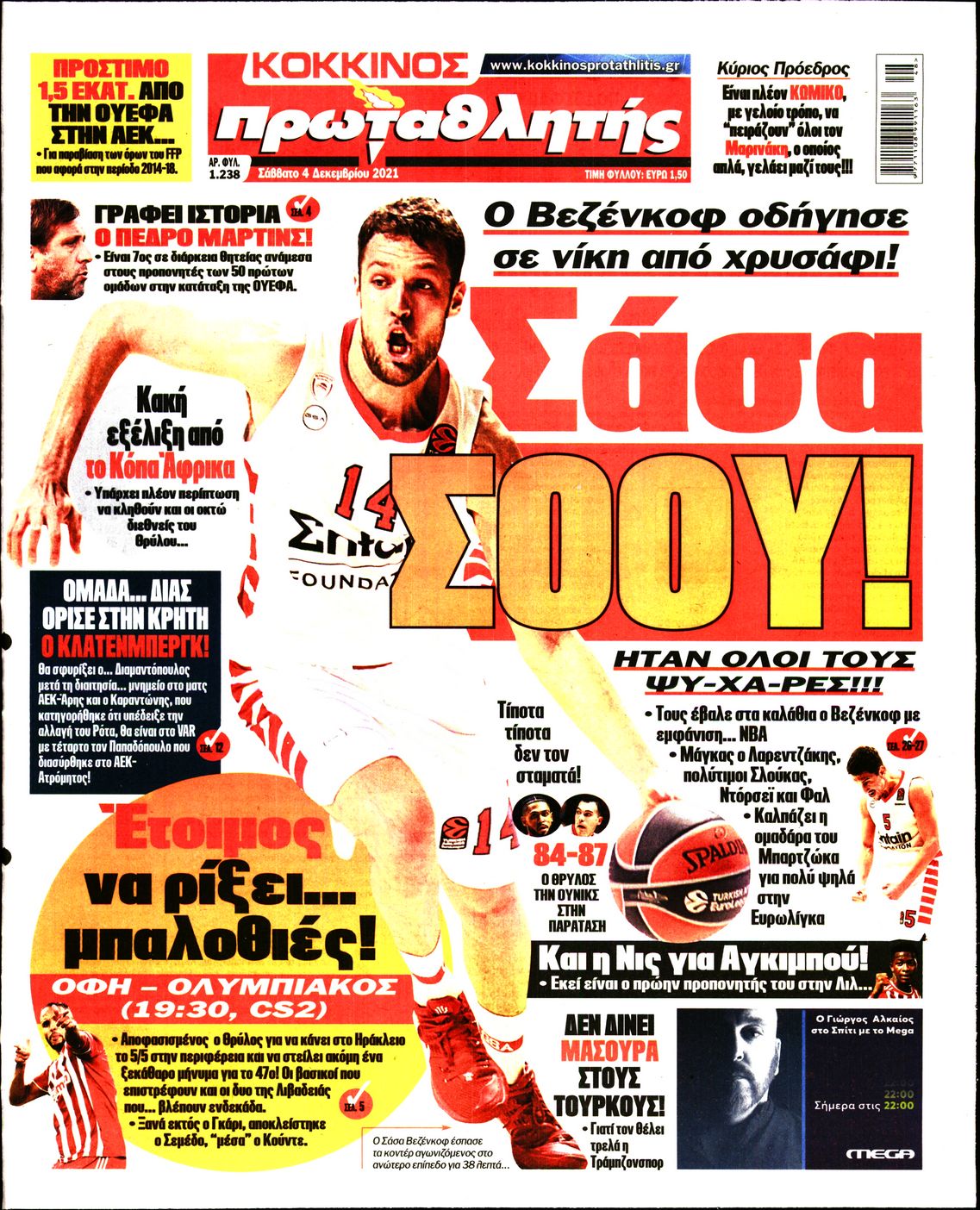 Οι αθλητικές εφημερίδες 4/12/2021 Διονύσης Νίκκας 07:48, Σάββατο 04 Δεκεμβρίου 2021 Media Διαβάστε τα πρωτοσέλιδα από τις αθλητικές εφημερίδες… ΑΘΛΗΤΙΚΕΣ ΕΦΗΜΕΡΙΔΕΣ Μοιράσου το: σχολίασε κι εσύ (0 σχόλια) Ακολουθήστε το enikos.gr στο Google News και μάθετε πρώτοι όλες τις ειδήσεις Δείτε όλες τις τελευταίες ειδήσεις από την Ελλάδα και τον Κόσμο στο enikos.gr Ειδήσεις Ροή Ειδήσεων 2 ώρες πριν Κύκλωμα διακίνησης ναρκωτικών σε σχολεία: Βίντεο ντοκουμέντο από τα βασανιστήρια στους ανήλικους – Συζητούσαν για το πώς θα κάνουν «ξέπλυμα χρήματος» 37 λεπτά πριν Κλιμακώνουν τις κινητοποιήσεις τους οι αγρότες: Κλείνουν τη Δευτέρα τις σήραγγες των Τεμπών για τα φορτηγά – Ανοίγουν την Τρίτη τους δρόμους για τους εκδρομείς 2 ώρες πριν Αιματηρό επεισόδιο στον Άγιο Παντελεήμονα – Δύο τραυματίες, αναζητείται ο δράστης 45 λεπτά πριν ΗΠΑ: Αυξάνουν την πίεση στην Βενεζουέλα – Το νέο ρεσάλτο σε τάνκερ και ο στόχος του Τραμπ 1 ώρα πριν Κασσελάκης για παραίτηση Μάλαμα: «Η πορεία μας δεν θα καθοριστεί από μεμονωμένα πρόσωπα, μηχανισμούς και προσωπικές ατζέντες» 2 ώρες πριν Ύπνος: Τι είναι ο «κανόνας 3-3-3» που χρησιμοποιεί ένας γιατρός για να ξεχωρίσει την κόπωση από την αϋπνία 3 ώρες πριν Αριθμολογία: Οι άνθρωποι που έχουν γεννηθεί αυτές τις 4 ημερομηνίες, είναι οι πιο πιστοί και αφοσιωμένοι σύντροφοι 32 λεπτά πριν Αρχαιολογικό θρίλερ στην καρδιά της Ευρώπης: Παράξενο θραύσμα με ανάγλυφα και σφηνοειδή γραφή ανακαλύφθηκε σε μέρος που δεν περίμενε κανείς 2 ημέρες πριν Enerwave: Το νέο «ρεύμα» στη λιανική ενέργειας που αλλάζει την εμπειρία του καταναλωτή 13 λεπτά πριν Super League: Καλά… ΑΕΚούγεννα με «κιτρινόμαυρη» κορυφή, σε απόσταση αναπνοής ο Ολυμπιακός, στο -2 ο ΠΑΟΚ – Τα αποτελέσματα και η βαθμολογία 29 λεπτά πριν ΑΕΚ – ΟΦΗ 2-1: Γιορτές στην κορυφή με… ανατροπή 32 λεπτά πριν Αρχαιολογικό θρίλερ στην καρδιά της Ευρώπης: Παράξενο θραύσμα με ανάγλυφα και σφηνοειδή γραφή ανακαλύφθηκε σε μέρος που δεν περίμενε κανείς 37 λεπτά πριν Κλιμακώνουν τις κινητοποιήσεις τους οι αγρότες: Κλείνουν τη Δευτέρα τις σήραγγες των Τεμπών για τα φορτηγά – Ανοίγουν την Τρίτη τους δρόμους για τους εκδρομείς 38 λεπτά πριν Γουίτκοφ: «Εποικοδομητικές και παραγωγικές» οι συνομιλίες στο Μαϊάμι ENIKOS NETWORK Οι γυναίκες έχουν βρει μια νέα απόλαυση στην κρεβατοκάμαρα που οι περισσότεροι άνδρες αγνοούν Christmas glow: 5 χρυσές συμβουλές για επιδερμίδα που λάμπει από ομορφιά τα Χριστούγεννα Νέο έτος ρεκόρ για τον ελληνικό τουρισμό το 2025: «Είμαστε μέσα στους 10 πλέον επισκέψιμους προορισμούς παγκοσμίως» λέει η ... Τιμές καυσίμων: Πόσο θα πληρώσουν οι εκδρομείς των Χριστουγέννων – Το κόστος μετακινήσεων σε δημοφιλείς προορισμούς Χαρτογραφώντας το «σημείο χωρίς επιστροφή»: Για πρώτη φορά αποκαλύπτεται με λεπτομέρεια το ακανθώδες όριο της ατμόσφαιρας τ... Η Google καταργεί τη λειτουργία «dark web report» – Πώς θα μπορούν οι χρήστες να διαγράφουν τα δεδομένα τους περισσότερα 21:30 , Κυριακή 21 Δεκεμβρίου 2025 Ο Δικαστής: Στα χέρια της Αστυνομίας βίντεο, που ανατρέπει όλα τα δεδομένα – Στενεύει ο κλοιός γύρω από τον Δικαστή Καταιγιστικές εξελίξεις στο τελευταίο επεισόδιο της χρονιάς της σειράς “Ο Δικαστής”... 17:18 , Κυριακή 21 Δεκεμβρίου 2025 «Η Μεγάλη Χίμαιρα»: Μάγεψε το κοινό κατά την avant-première της προβολής της Την Πρωτοχρονιά (Πέμπτη 1η Ιανουαρίου 2026) στο ERTFLIX θα γίνει η πρεμιέρα της πολυαναμενόμεν... 15:08 , Κυριακή 21 Δεκεμβρίου 2025 Μια νύχτα μόνο: Η Αρετή και ο Οδ