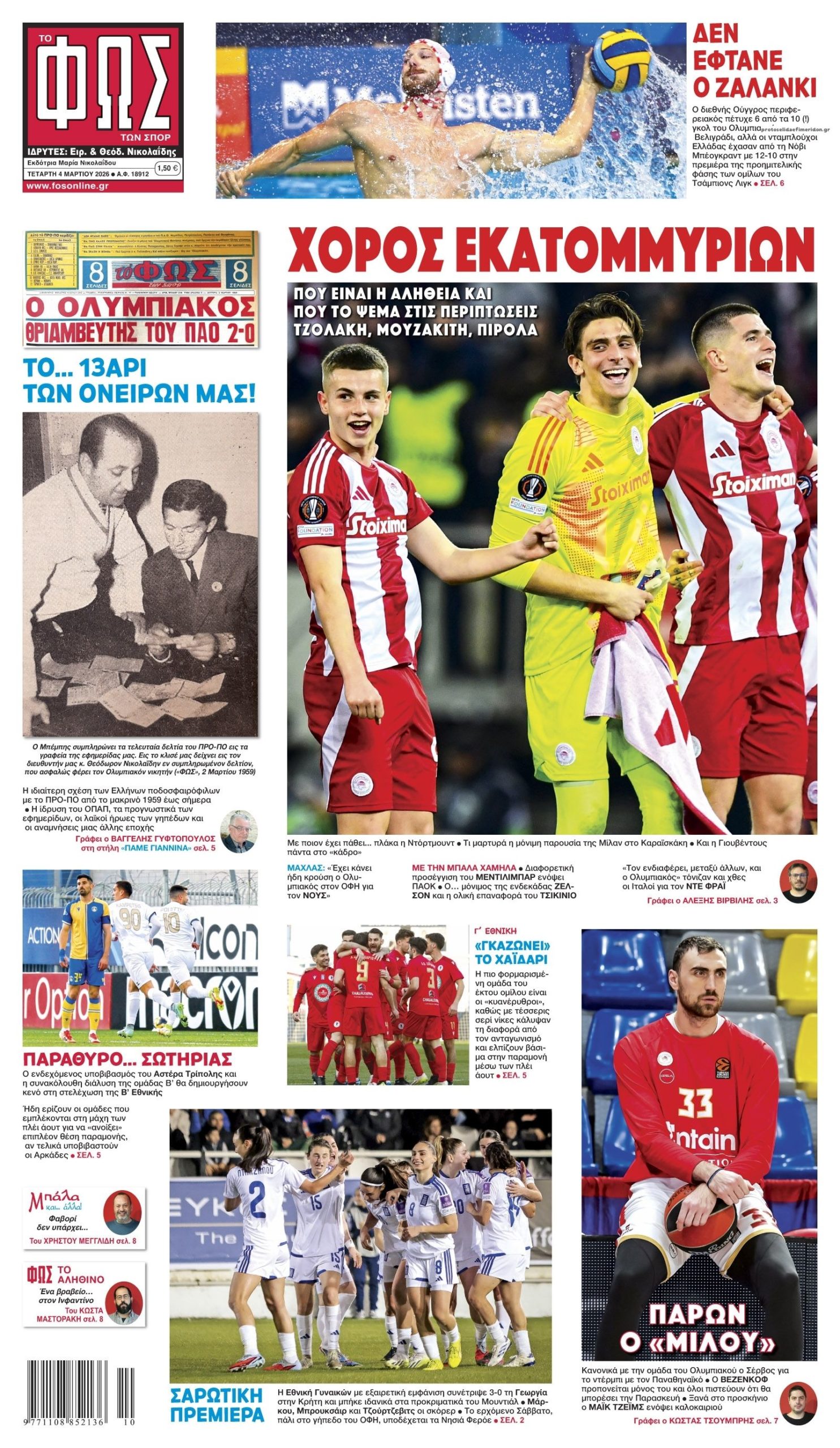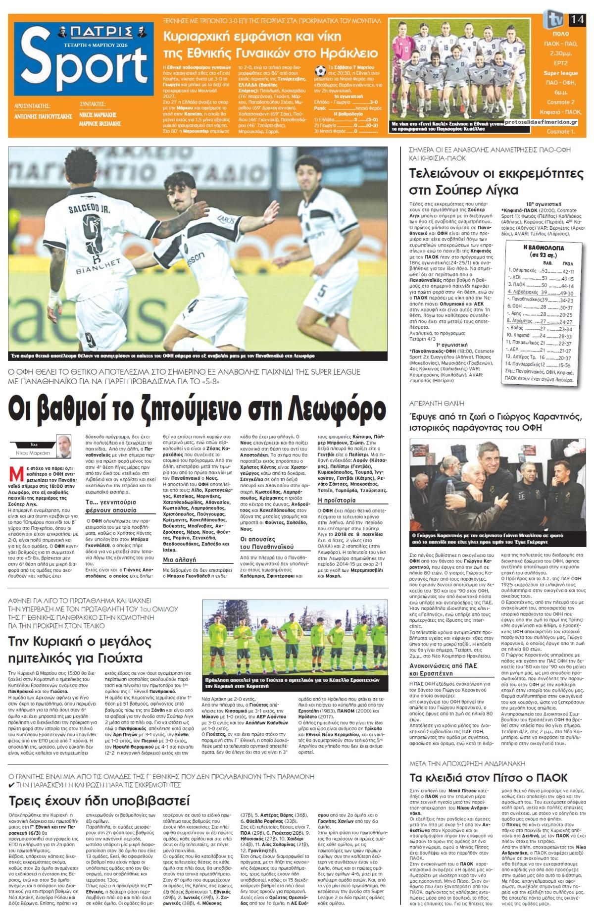 Οι αθλητικές εφημερίδες 4/3/2026 Enikos Newsroom 05:43, Τετάρτη 04 Μαρτίου 2026 Media Διαβάστε τα πρωτοσέλιδα από τις αθλητικές εφημερίδες, σήμερα 4/3/2026. ΑΘΛΗΤΙΚΕΣ ΕΦΗΜΕΡΙΔΕΣ ΕΦΗΜΕΡΙΔΕΣ ΠΡΩΤΟΣΕΛΙΔΑ Μοιράσου το: Στο δρόμο για Θεσσαλονίκη από Κωνσταντινούπολη, όπου προσγειώθηκε από Αμπού Ντάμπι η ομάδα νέων του Άρη Premier League: H ουραγός Γουλβς στο 90+4΄ «ξέρανε» την Λίβερπουλ – Νίκες για Έβερτον και Σάντερλαντ Πόλο: Ήττα 12-10 στο Βελιγράδι για τον Ολυμπιακό στο Champions League σχολίασε κι εσύ (0 σχόλια) Ακολουθήστε το enikos.gr στο Google News και μάθετε πρώτοι όλες τις ειδήσεις Δείτε όλες τις τελευταίες ειδήσεις από την Ελλάδα και τον Κόσμο στο enikos.gr Ειδήσεις Ροή Ειδήσεων 23 ώρες πριν LIVE Μέση Ανατολή – Εκρήξεις και καπνοί στο αμερικανικό προξενείο στο Ντουμπάι – Νέες απειλές από Ιράν: «Είμαστε έτοιμοι για πόλεμο μακράς διαρκείας» – Όλες οι εξελίξεις 8 ώρες πριν Ο γιος του Αλί Χαμενεΐ, νέος ανώτατος θρησκευτικός ηγέτης του Ιράν – Εκλέχθηκε με τηλεδιάσκεψη από τη Συνέλευση Εμπειρογνωμόνων 8 ώρες πριν Τραμπ: Τι παραδέχτηκε και τι έκρυψε στις δηλώσεις του για τον πόλεμο στη Μέση Ανατολή παρουσία του καγκελάριου Μερτς 8 ώρες πριν Σούδα: Τα μυστικά στις συσκευές του 36χρονου – Η σύνδεση με τον 26χρονο Αζέρο που είχε συλληφθεί για κατασκοπεία τον Ιούνιο του 2025 10 ώρες πριν Διάγγελμα Μακρόν: «Η Τεχεράνη φέρει την πρώτη ευθύνη για τον πόλεμο – Στέλνουμε φρεγάτα στην Κύπρο, έχουμε αποφασίσει την στήριξή της 49 λεπτά πριν Οπτική ψευδαίσθηση: Μόνο όσοι έχουν τέλεια όραση μπορούν να εντοπίσουν την πιπίλα μέσα σε 8 δευτερόλεπτα 31 λεπτά πριν Μυϊκή ενδυνάμωση και ισορροπία: Η θρεπτική τροφή που πρέπει να τρώτε περισσότερο καθώς μεγαλώνετε, σύμφωνα με μελέτη 4 ώρες πριν Ζώδια 4/3: Ημερήσιες προβλέψεις – Υδροχόοι, βγείτε μπροστά, ακόμα κι αν νιώθετε λίγο άβολα στην αρχή 8 ώρες πριν Εκπληκτική ανακάλυψη κοντά στην αρχαία Θήβα της Αιγύπτου – Βρέθηκε κρύπτη με 22 σαρκοφάγους με 8 άθικτους παπύρους 11 λεπτά πριν Τρίκαλα: Φωτιά σε τουριστικό γραφείο την Τρίτη 17 λεπτά πριν Αυστραλία: Ο πρωθυπουργός Άντονι Αλμπανέζε δήλωσε ότι «δεν υπάρχει καμία δικαιολογία» για τις «τυφλές» επιθέσεις του Ιράν 30 λεπτά πριν ΔΕΔΔΗΕ: Διακοπές ρεύματος σήμερα (4/3) στην Αθήνα και σε άλλες 12 περιοχές της Αττικής 31 λεπτά πριν Μυϊκή ενδυνάμωση και ισορροπία: Η θρεπτική τροφή που πρέπει να τρώτε περισσότερο καθώς μεγαλώνετε, σύμφωνα με μελέτη 34 λεπτά πριν Σαουδική Αραβία: Αναχαιτίστηκαν δύο πύραυλοι κρουζ στην πόλη Αλ Χαρτζ ENIKOS NETWORK Πόσες γάτες περιπλανιούνται σε αυτόν τον χώρο που μοιάζει με λαβύρινθο; Μόνο αν είστε στο 1% των πιο έξυπνων θα μπορέσετε ν... Το όσπριο από το παραμύθι του Hans Christian Andersen που μπορεί να προστατεύσει την όραση και να καταπολεμήσει τη φλεγμονή Ιδρύεται Παρατηρητήριο Καθυστερήσεων και Κακοδικίας στα δικαστήρια της Αθήνας – Πώς θα λειτουργεί Κεντρική Μακεδονία: Σχέδιο στήριξης για τους ορυζοκαλλιεργητές – Παρεμβάσεις για κόστος, ανταγωνιστικότητα και βιωσιμότητα Ευπάθεια στο moltbook ai αποκαλύπτει email, tokens σύνδεσης και api keys Αυτός είναι ο ρόλος της μικρής τρύπας στους νυχοκόπτες – «Είμαι ο μόνος που δεν το ήξερε;»» περισσότερα 05:48 , Τετάρτη 04 Μαρτίου 2026 Οι οικονομικές εφημερίδες 4/3/2026 Διαβάστε τα πρωτοσέλιδα από τις οικονομικές εφημερίδες, σήμερα 4/3/2026. 20:20 , Τρίτη 03 Μαρτίου 2026 Grand Hotel: Η Ελένη επιστρέφει στο ξενοδοχείο συγκλονισμένη για το θάνατο του Νικόλα Όλα όσα θα δούμε στο νέο επεισόδιο της σειράς “Grand Hotel” απ