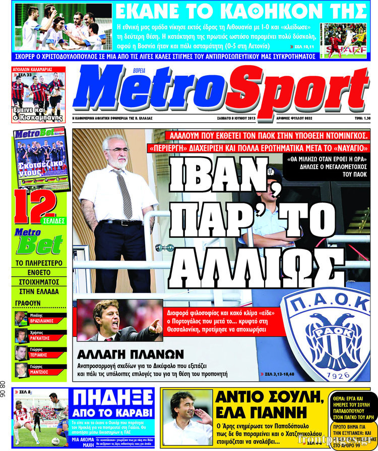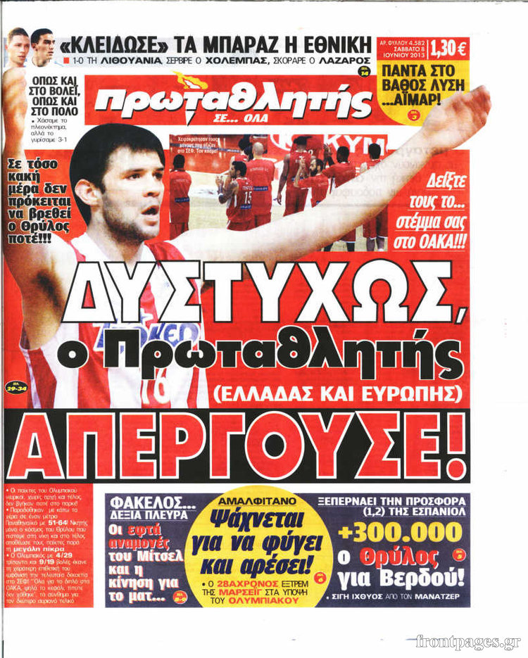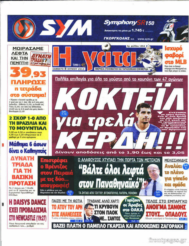 Οι αθλητικές εφημερίδες Enikos Newsroom 08:50, Σάββατο 08 Ιουνίου 2013 Media Οι αθλητικές εφημερίδες ΑΘΛΗΤΙΚΕΣ ΕΦΗΜΕΙΔΕΣ ΠΡΩΤΟΣΕΛΙΔΑ Μοιράσου το: σχολίασε κι εσύ (0 σχόλια) Ακολουθήστε το enikos.gr στο Google News και μάθετε πρώτοι όλες τις ειδήσεις Δείτε όλες τις τελευταίες ειδήσεις από την Ελλάδα και τον Κόσμο στο enikos.gr Ειδήσεις Ροή Ειδήσεων 2 ώρες πριν Εκτός ευρωομάδας ΣΥΡΙΖΑ ο Νίκος Παππάς μετά την επίθεση στον δημοσιογράφο Νίκο Γιαννόπουλο – Η μήνυση και οι νέες δηλώσεις 3 ώρες πριν «Αγριεύουν» οι αγρότες: «Δεν συντρέχει λόγος συνάντησης με τον πρωθυπουργό» – Ώρα αποφάσεων στη σύσκεψη της Πέμπτης 3 ώρες πριν Κυψέλη: Χωρίς την οικογένειά της δίπλα της απολογήθηκε η 16χρονη – «Της είχε επιτεθεί κάποιος για να την βιάσει, φοβήθηκε και κυκλοφορούσε με μαχαίρι» 2 ώρες πριν Politico: Το πρόβλημα της Ευρώπης δεν είναι το Βέλγιο αλλά ο Ντόναλντ Τραμπ 4 ώρες πριν Αλεξανδρούπολη: Πολυοργανική ανεπάρκεια λόγω υποσιτισμού η αιτία θανάτου του 3χρονου αγοριού 3 ώρες πριν Μυστήριο με τεράστιες κυκλικές πέτρες 200 κιλών – Ανακαλύφθηκαν τυχαία κατά τη διάρκεια οδικών έργων και κανείς δεν ξέρει από πού προέρχονται 4 ώρες πριν Ύπνος: Ειδικός εξηγεί τον πραγματικό λόγο που ξυπνάτε στις 4 τα ξημερώματα – Ο ρόλος των ορμονών και του κιρκάδιου ρυθμού 5 ώρες πριν Αριθμολογία: Οι άνθρωποι που έχουν γεννηθεί αυτές τις 4 ημερομηνίες, είναι τρυφεροί και αγαπούν ανιδιοτελώς 16 ώρες πριν 20 χρόνια τα Χριστούγεννα ξεκινούν στα Public με μεγάλη ποικιλία σε δώρα! 5 λεπτά πριν Μουντιάλ 2026: Η νέα ταξιδιωτική απαγόρευση του Ντόναλντ Τραμπ πλήττει (και) τους οπαδούς Σενεγάλης – Ακτής Ελεφαντοστού 17 λεπτά πριν Κυριάκος Μητσοτάκης: Στις Βρυξέλλες για την Σύνοδο Κορυφής ΕΕ και Δυτικών Βαλκανίων – Δείτε φωτογραφίες 29 λεπτά πριν Σάρα Εσκενάζυ: Η πρώτη ανάρτηση για το θάνατο του πατέρα της, Αλμπέρτο Εσκενάζυ και η επιθυμία της οικογένειας 45 λεπτά πριν Παρί Σεν Ζερμέν – Φλαμένγκο 2-1 πεν. (1-1 κ.δ.): Οι Γάλλοι σήκωσαν και το Διηπειρωτικό με ήρωα τον Σαφόνοφ που έπιασε 4 πέναλτι 60 λεπτά πριν Βέλγους πολιτικούς και επικεφαλής χρηματοπιστωτικών ιδρυμάτων στοχοποιεί η Μόσχα για τα κατασχεθέντα περιουσιακά στοιχεία ENIKOS NETWORK Αϋπνία: Το κόλπο που θα σας βοηθήσει να κοιμηθείτε απόψε – Είναι απλό και έχει αποτέλεσμα 2,6 εκατομμύρια πολίτες έχουν ήδη εμβολιαστεί κατά της γρίπης ΕΛΣΤΑΤ: Τι δείχνουν τα νέα στοιχεία για τις ηλεκτρονικές παραγγελίες των επιχειρήσεων ΚΕΠΕ: Οι 3 διακριτές συμβολές των ΜμΕ και της μεταποίησης στην ελληνική οικονομία Χαρτογραφώντας το «σημείο χωρίς επιστροφή»: Για πρώτη φορά αποκαλύπτεται με λεπτομέρεια το ακανθώδες όριο της ατμόσφαιρας τ... Η Google καταργεί τη λειτουργία «dark web report» – Πώς θα μπορούν οι χρήστες να διαγράφουν τα δεδομένα τους περισσότερα 22:24 , Τετάρτη 17 Δεκεμβρίου 2025 Το Σπίτι Δίπλα Στο Ποτάμι: Σε κίνδυνο η υγεία του Απόστολου – Τι θα δούμε απόψε “Το Σπίτι Δίπλα στο Ποτάμι” ξετυλίγει το νήμα της ζωής των πέντε αδελφών με καταισ... 21:14 , Τετάρτη 17 Δεκεμβρίου 2025 Παιχνίδια Εκδίκησης: Θα καταφέρει ο Χρήστος να κλονίσει την εμπιστοσύνη της Μάγιας απέναντι στον Άγη; Τα «Παιχνίδια Εκδίκησης» έρχονται απόψε στις 22:30, στον Αντ1, με το τελευταίο επεισόδιο της χ... 20:57 , Τετάρτη 17 Δεκεμβρίου 2025 Άγιος Έρωτας: Η Χλόη καταθέτει εναντίον του πατέρα της και ο Χάρης αποκαλύπτει στον Κλεάνθη ότι δεν είναι ο βιολογικός του πατέρας. Γεμάτο αποκαλύψεις είναι το νέο επεισόδιο της σειράς “Άγιος Έρωτας” απόψε 