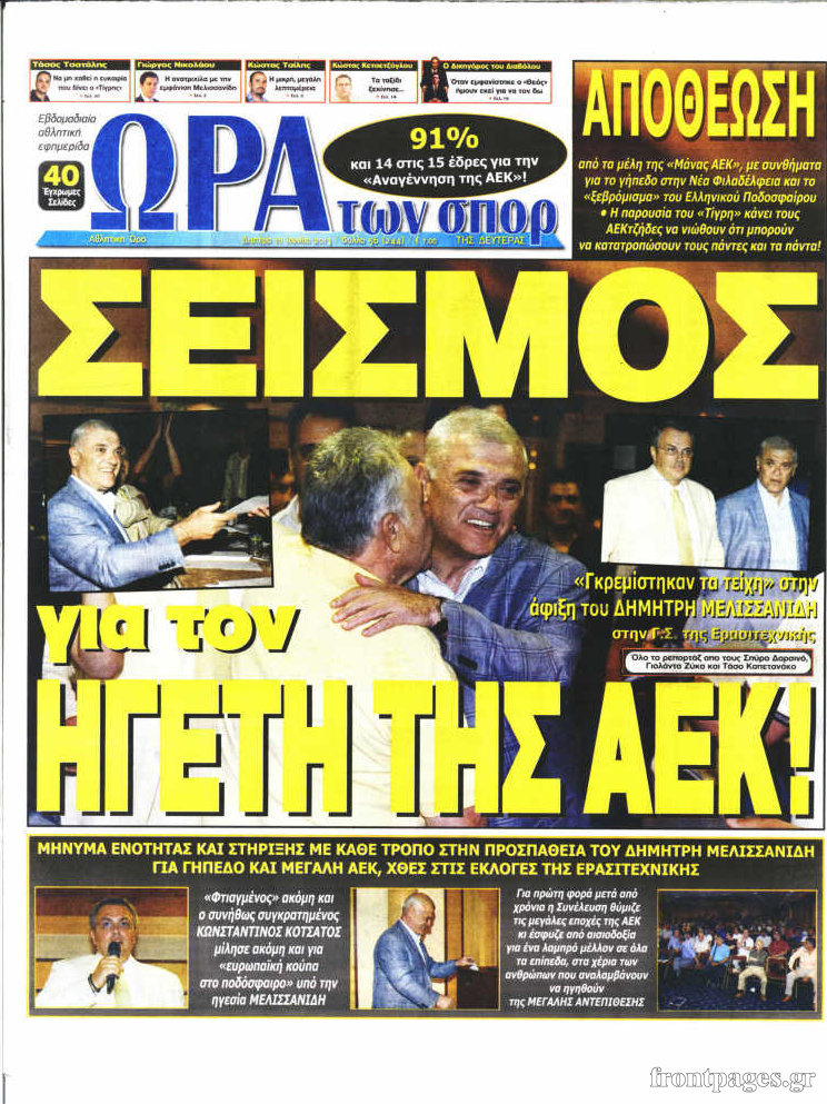 Οι αθλητικές εφημερίδες Enikos Newsroom 09:08, Δευτέρα 10 Ιουνίου 2013 Media Οι αθλητικές εφημερίδες Διαβάστε τα πρωτοσέλιδα των αθλητικών εφημερίδων: ΑΘΛΗΤΙΚΕΣ ΕΦΗΜΕΡΙΔΕΣ ΕΦΗΜΕΡΙΔΕΣ ΠΡΩΤΟΣΕΛΙΔΑ Μοιράσου το: σχολίασε κι εσύ (0 σχόλια) Ακολουθήστε το enikos.gr στο Google News και μάθετε πρώτοι όλες τις ειδήσεις Δείτε όλες τις τελευταίες ειδήσεις από την Ελλάδα και τον Κόσμο στο enikos.gr Ειδήσεις Ροή Ειδήσεων 51 λεπτά πριν Ευρωπαϊκή Ένωση: Χωρίς συμφωνία, για την μακροπρόθεσμη χρηματοδότηση της Ουκρανίας, ολοκληρώθηκε η Σύνοδος Κορυφής στις Βρυξέλλες 4 ώρες πριν ΟΠΕΚΕΠΕ: Προφυλακιστέος ο φερόμενος αρχηγός και ο λογιστής της εγκληματικής οργάνωσης 5 ώρες πριν Αυξάνουν την πίεση προς την κυβέρνηση οι αγρότες: Κλείνουν παρακαμπτήριους και ανοίγουν διόδια – Τι θα γίνει τις γιορτές 5 ώρες πριν Φοινικούντα: Το Σάββατο απολογείται ο 30χρονος γιος γνωστού επιχειρηματία της Πλάκας που παραδόθηκε – Όσα είπε στους αστυνομικούς και ο ρόλος του στο έγκλημα 4 ώρες πριν ΑΕΚ – Κραϊόβα 3-2: Επική ανατροπή και πρόκριση στους «16» του Conference League η Ένωση 5 ώρες πριν Αρχαιολόγοι ανακάλυψαν ρωμαϊκά τεχνουργήματα από μια πόλη που δεν υπήρξε ποτέ – Τα τρία εντυπωσιακά κτίρια και ο αμφορέας με τις… σαρδέλες 6 ώρες πριν Ύπνος: Η απλή βραδινή ρουτίνα για να προστατεύσετε τα μαλλιά σας από το κρύο κατά τη διάρκεια του χειμώνα 7 ώρες πριν Manifesting: Πώς να συναντήσετε τον σύντροφο της ζωής σας, ανάλογα με τον μήνα γέννησής σας 2 ημέρες πριν 20 χρόνια τα Χριστούγεννα ξεκινούν στα Public με μεγάλη ποικιλία σε δώρα! 4 λεπτά πριν Αιματηρή βομβιστική επίθεση στην Υεμένη: Τουλάχιστον τρεις νεκροί και 13 τραυματίες 7 λεπτά πριν Στη Φλόριντα σήμερα οι διαβουλεύσεις σχετικά με τα επόμενα στάδια για τη Λωρίδα της Γάζας 11 λεπτά πριν Σίσσυ Τουμάση: «Είμαι ασθενοφοβική πάρα πολύ και με πιάνει μια παράνοια μ’ αυτό» 35 λεπτά πριν Ντόναλντ Τραμπ: Δεν χρειάζομαι την έγκριση του Κογκρέσου για να διατάξω στρατιωτικά πλήγματα στη Βενεζουέλα 51 λεπτά πριν Ευρωπαϊκή Ένωση: Χωρίς συμφωνία, για την μακροπρόθεσμη χρηματοδότηση της Ουκρανίας, ολοκληρώθηκε η Σύνοδος Κορυφής στις Βρυξέλλες ENIKOS NETWORK Σε περίοδο αυξημένης δραστηριότητας η γρίπη στην Ελλάδα-Μέτρα προστασίας από τον ΕΟΔΥ Σκέφτεστε συνέχεια συζητήσεις που έχετε κάνει; Τι σημαίνει αυτό, σύμφωνα με ειδικό Στεγαστικό: Τι λέει η ΠΟΜΙΔΑ για τα νέα μέτρα που ανακοίνωσε ο Κυριάκος Μητσοτάκης Λαγκάρντ: Αισιόδοξη για την ανάπτυξη της Ευρωζώνης, αβέβαιη για τον πληθωρισμό Χαρτογραφώντας το «σημείο χωρίς επιστροφή»: Για πρώτη φορά αποκαλύπτεται με λεπτομέρεια το ακανθώδες όριο της ατμόσφαιρας τ... Η Google καταργεί τη λειτουργία «dark web report» – Πώς θα μπορούν οι χρήστες να διαγράφουν τα δεδομένα τους περισσότερα 02:50 , Παρασκευή 19 Δεκεμβρίου 2025 GNTM: «Κλείδωσαν» οι τέσσερις φιναλίστ – Μεγάλη ανατροπή στις τελευταίες αποχωρήσεις Για προτελευταία φορά εμφανίστηκαν στο πλατό του GNTM οι φιναλίστ του φετινού κύκλου, το βράδυ... 17:45 , Πέμπτη 18 Δεκεμβρίου 2025 ROUK ZOUK: Εορταστικό επεισόδιο με καλεσμένους τους πρωταγωνιστές του «Γιατί ρε πατέρα» Το Σάββατο 20 Δεκεμβρίου στις 21:00, η Ζέτα Μακρυπούλια υποδέχεται εκλεκτούς ηθοποιούς που όλο... 17:20 , Πέμπτη 18 Δεκεμβρίου 2025 Άγιος έρωτας: Η Χριστίνα εξομολογείται στον πατέρα Νικόλαο, απόψε στις 21:00 στον Alpha Η Νότα αποφασίζει να εκδικηθεί τον Πέτρο και τον Στέφανο, για χάρη του Λούη, όμως τα πράγματα ... 16:50 , Πέμπτη 18 Δεκεμβρίου 2025 Να μ’ αγαπάς: Ζωή και Φωτεινή συμ