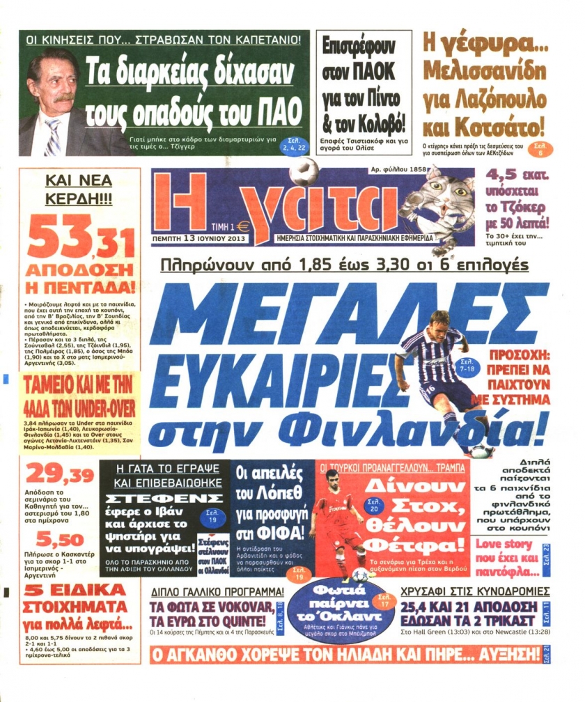 Οι αθλητικές εφημερίδες Enikos Newsroom 08:32, Πέμπτη 13 Ιουνίου 2013 Media Οι αθλητικές εφημερίδες Διαβάστε τα πρωτοσέλιδα των αθλητικών εφημερίδων: ΑΘΛΗΤΙΚΕΣ ΕΦΗΜΕΡΙΔΕΣ ΕΦΗΜΕΡΙΔΕΣ ΠΡΩΤΟΣΕΛΙΔΑ Μοιράσου το: σχολίασε κι εσύ (0 σχόλια) Ακολουθήστε το enikos.gr στο Google News και μάθετε πρώτοι όλες τις ειδήσεις Δείτε όλες τις τελευταίες ειδήσεις από την Ελλάδα και τον Κόσμο στο enikos.gr Ειδήσεις Ροή Ειδήσεων 3 ώρες πριν Ακίλα Σάλεχ: «Άκυρο» το τουρκολιβυκό μνημόνιο λέει ο πρόεδρος της λιβυκής Βουλής – Ανοίγει ο διάλογος με Ελλάδα, Αίγυπτο και Τουρκία 7 ώρες πριν Αγρότες: Την Τρίτη η απόφαση για διάλογο ή κλιμάκωση των κινητοποιήσεών τους – Πώς χαρακτηρίζουν τις ανακοινώσεις Τσιάρα και οι επόμενες κινήσεις 7 ώρες πριν Τραμπ για Ουκρανία: «Είμαστε πιο κοντά σε συμφωνία από ποτέ» – «Πολυεθνική δύναμη» προτείνουν οι Ευρωπαίοι 7 ώρες πριν Κυψέλη: Η 16χρονη που μαχαίρωσε την 14χρονη είχε συλληφθεί 3 φορές στο παρελθόν – Έβριζε καθηγητές, έβαζε φωτιές σε κάδους και εκβίαζε συμμαθητές της 6 ώρες πριν Τρομοκρατική επίθεση στο Σίδνεϊ: Θλίψη για τα 15 θύματα – Οργή στην εβραϊκή κοινότητα που προειδοποιούσε επί δύο χρόνια 7 ώρες πριν Επιστήμονες ίσως έλυσαν το μυστήριο γύρω από τα Χόμπιτ – Νέα έρευνα αποκαλύπτει πώς εξαφανίστηκαν 8 ώρες πριν Ύπνος: Η αρχαία μορφή άσκησης που αποδεικνύεται αποτελεσματική στην αντιμετώπιση της αϋπνίας, σύμφωνα με μελέτη 9 ώρες πριν Αριθμολογία: Ο τυχερός σας αριθμός, ανάλογα με τον μήνα γέννησής σας 10 ώρες πριν Πώς να μην μαραίνονται γρήγορα τα κομμένα λουλούδια: Το λάθος στην τοποθέτηση του βάζου που πρέπει να αποφεύγετε 25 δευτερόλεπτα πριν Οι οικονομικές εφημερίδες 16/12/2025 5 λεπτά πριν Οι αθλητικές εφημερίδες 16/12/2025 10 λεπτά πριν Οι πολιτικές εφημερίδες 16/12/2025 18 λεπτά πριν Τα ζώδια σήμερα, Τρίτη 16 Δεκεμβρίου: Ιχθύες, δεν χρειάζεται να έχετε όλες τις απαντήσεις 26 λεπτά πριν Εφημερεύοντα φαρμακεία σε Αθήνα και Θεσσαλονίκη (16/12) ENIKOS NETWORK Πότε το χρόνιο ροχαλητό να αποτελέσει ένδειξη κινδύνου για την καρδιά; Τι λένε οι ειδικοί Μάριος Θεμιστοκλέους: Το ΕΣΥ ενισχύεται, εκσυγχρονίζεται, αλλάζει ΕΒΕΠ για αγροτικές κινητοποιήσεις: Κάθε επιπλέον εβδομάδα προσθέτει περίπου 200 εκατ. ευρώ ζημιά Τι προβλέπει το νομοσχέδιο του υπουργείου Εθνικής Άμυνας – Oι αλλαγές στους μισθούς Σύγχρονος Νοστράδαμος: Προειδοποιεί για «μεγάλο γεγονός» τους επόμενους μήνες που θα συγκλονίσει τη Βρετανία και τον κόσμο Τεστ παρατηρητικότητας: Μπορείτε να βρείτε τις 3 διαφορές στις εικόνες με έναν πιγκουίνο σε 14 δευτερόλεπτα περισσότερα 05:48 , Τρίτη 16 Δεκεμβρίου 2025 Οι οικονομικές εφημερίδες 16/12/2025 Διαβάστε τα πρωτοσέλιδα από τις οικονομικές εφημερίδες, σήμερα 16/12/2025. 05:43 , Τρίτη 16 Δεκεμβρίου 2025 Οι αθλητικές εφημερίδες 16/12/2025 Διαβάστε τα πρωτοσέλιδα από τις αθλητικές εφημερίδες, σήμερα 16/12/2025. 05:38 , Τρίτη 16 Δεκεμβρίου 2025 Οι πολιτικές εφημερίδες 16/12/2025 Διαβάστε τα πρωτοσέλιδα από τις πολιτικές εφημερίδες, σήμερα 16/12/2025. 21:35 , Δευτέρα 15 Δεκεμβρίου 2025 Το Σπίτι Δίπλα Στο Ποτάμι: Η Ιουλία και ο Φωκάς μετακομίζουν στη Ρόδο – Δύο νέοι χαρακτήρες μπαίνουν στη σειρά Δύο νέοι, κομβικοί χαρακτήρες κάνουν την εμφάνισή τους αυτή την εβδομάδα στην αγαπημένη σειρά ... ΤΕΛΕΥΤΑΙΕΣ ΕΙΔΗΣΕΙΣ 5 λεπτά πριν Οι αθλητικές εφημερίδες 16/12/2025 10 λεπτά πριν Οι πολιτικές εφημερίδες 16/12/2025 18 λεπτά πριν Τα ζώδια σήμερα, Τρίτη 16 Δεκεμβρίου: Ιχθύες, δεν... 26 λεπτά πριν Εφημερεύοντα φαρμακεία σε Αθήνα και Θεσσαλονίκη (16/12) 32 λ