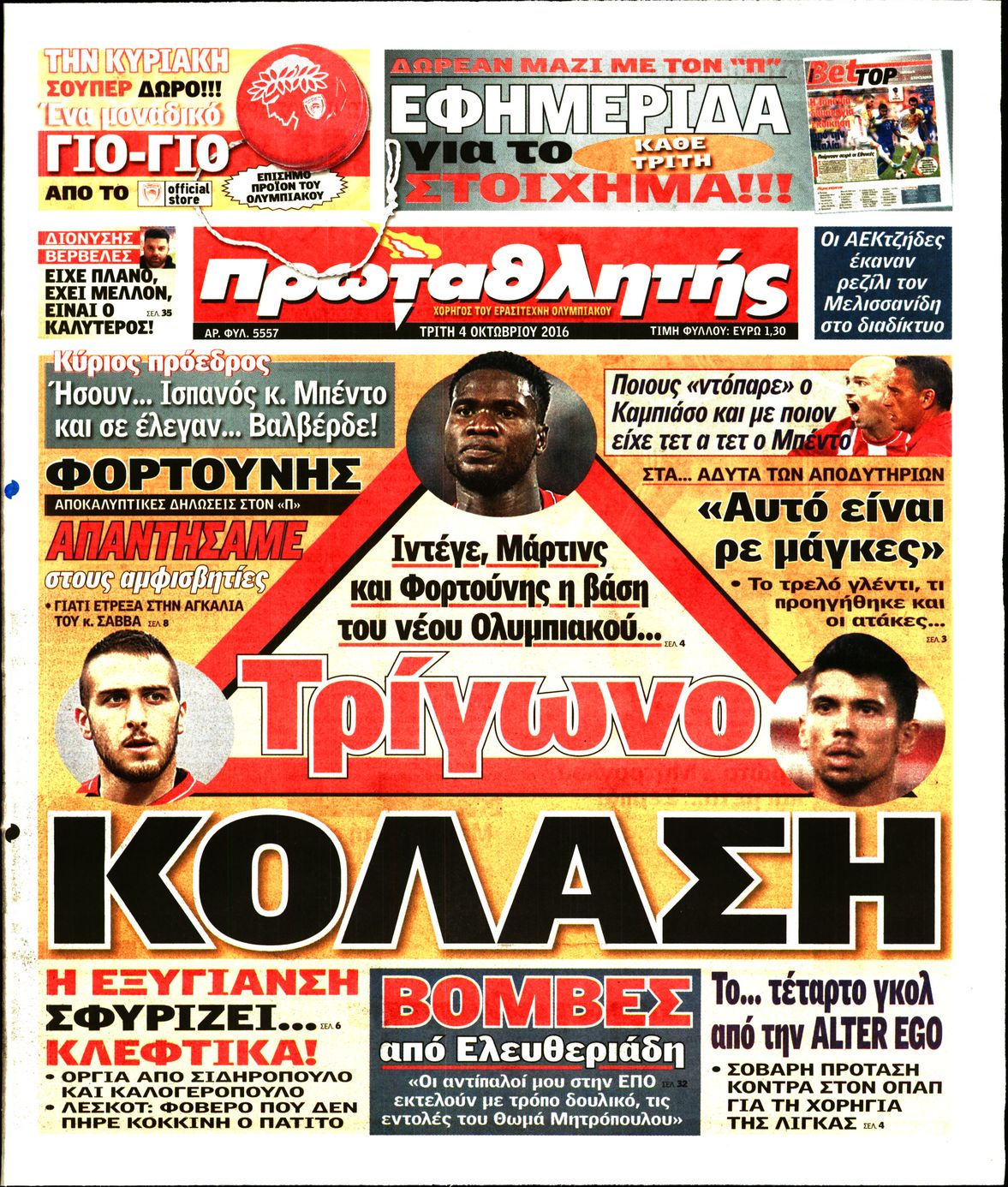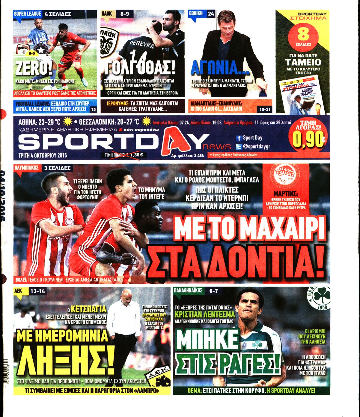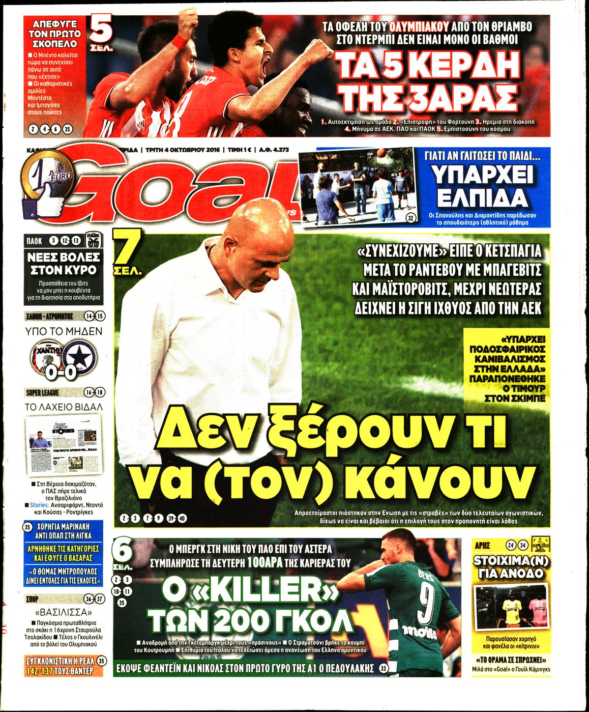 Οι αθλητικές εφημερίδες 4/10/2016 Enikos Newsroom 07:24, Τρίτη 04 Οκτωβρίου 2016 Media Διαβάστε τα σημερινά πρωτοσέλιδα των αθλητικών εφημερίδων. Μοιράσου το: σχολίασε κι εσύ (0 σχόλια) Ακολουθήστε το enikos.gr στο Google News και μάθετε πρώτοι όλες τις ειδήσεις Δείτε όλες τις τελευταίες ειδήσεις από την Ελλάδα και τον Κόσμο στο enikos.gr Ειδήσεις Ροή Ειδήσεων 1 ώρα πριν Αυξάνουν την πίεση προς την κυβέρνηση οι αγρότες: Κλείνουν παρακαμπτήριους και ανοίγουν διόδια – Τι θα γίνει τις γιορτές 17 λεπτά πριν ΟΠΕΚΕΠΕ: Προφυλακιστέος ο φερόμενος αρχηγός και ο λογιστής της εγκληματικής οργάνωσης 1 ώρα πριν Φοινικούντα: Το Σάββατο απολογείται ο 30χρονος γιος γνωστού επιχειρηματία της Πλάκας που παραδόθηκε – Όσα είπε στους αστυνομικούς και ο ρόλος του στο έγκλημα 58 λεπτά πριν Μπορεί ο Μαδούρο να αντέξει τον αποκλεισμό του Τραμπ; Τι θα χρειαστεί η Ουάσινγκτον για να τον ανατρέψει 2 ώρες πριν Πρίγκιπας Ουίλιαμ – Κέιτ: Η νέα οικογενειακή φωτογραφία για τις Χριστουγεννιάτικες κάρτες του 2025 2 ώρες πριν Ύπνος: Η απλή βραδινή ρουτίνα για να προστατεύσετε τα μαλλιά σας από το κρύο κατά τη διάρκεια του χειμώνα 3 ώρες πριν Manifesting: Πώς να συναντήσετε τον σύντροφο της ζωής σας, ανάλογα με τον μήνα γέννησής σας 2 ημέρες πριν 20 χρόνια τα Χριστούγεννα ξεκινούν στα Public με μεγάλη ποικιλία σε δώρα! 1 ώρα πριν Αρχαιολόγοι ανακάλυψαν ρωμαϊκά τεχνουργήματα από μια πόλη που δεν υπήρξε ποτέ – Τα τρία εντυπωσιακά κτίρια και ο αμφορέας με τις… σαρδέλες 17 λεπτά πριν ΟΠΕΚΕΠΕ: Προφυλακιστέος ο φερόμενος αρχηγός και ο λογιστής της εγκληματικής οργάνωσης 27 λεπτά πριν Αθηνά Μαξίμου: Η τρυφερή ανάρτηση για τα γενέθλια του Αιμίλιου Χειλάκη – «Είναι η εκλεκτική συγγένειά μου, η επιλογή και η ευθύνη μου» 43 λεπτά πριν Παναθηναϊκός – Χάποελ Τελ Αβίβ 93-82: Με… φόρα από την Κωνσταντινούπολη 58 λεπτά πριν Μπορεί ο Μαδούρο να αντέξει τον αποκλεισμό του Τραμπ; Τι θα χρειαστεί η Ουάσινγκτον για να τον ανατρέψει 1 ώρα πριν Αρχαιολόγοι ανακάλυψαν ρωμαϊκά τεχνουργήματα από μια πόλη που δεν υπήρξε ποτέ – Τα τρία εντυπωσιακά κτίρια και ο αμφορέας με τις… σαρδέλες ENIKOS NETWORK Σε περίοδο αυξημένης δραστηριότητας η γρίπη στην Ελλάδα-Μέτρα προστασίας από τον ΕΟΔΥ Σκέφτεστε συνέχεια συζητήσεις που έχετε κάνει; Τι σημαίνει αυτό, σύμφωνα με ειδικό Στεγαστικό: Τι λέει η ΠΟΜΙΔΑ για τα νέα μέτρα που ανακοίνωσε ο Κυριάκος Μητσοτάκης Λαγκάρντ: Αισιόδοξη για την ανάπτυξη της Ευρωζώνης, αβέβαιη για τον πληθωρισμό Χαρτογραφώντας το «σημείο χωρίς επιστροφή»: Για πρώτη φορά αποκαλύπτεται με λεπτομέρεια το ακανθώδες όριο της ατμόσφαιρας τ... Η Google καταργεί τη λειτουργία «dark web report» – Πώς θα μπορούν οι χρήστες να διαγράφουν τα δεδομένα τους περισσότερα 17:45 , Πέμπτη 18 Δεκεμβρίου 2025 ROUK ZOUK: Εορταστικό επεισόδιο με καλεσμένους τους πρωταγωνιστές του «Γιατί ρε πατέρα» Το Σάββατο 20 Δεκεμβρίου στις 21:00, η Ζέτα Μακρυπούλια υποδέχεται εκλεκτούς ηθοποιούς που όλο... 17:20 , Πέμπτη 18 Δεκεμβρίου 2025 Άγιος έρωτας: Η Χριστίνα εξομολογείται στον πατέρα Νικόλαο, απόψε στις 21:00 στον Alpha Η Νότα αποφασίζει να εκδικηθεί τον Πέτρο και τον Στέφανο, για χάρη του Λούη, όμως τα πράγματα ... 16:50 , Πέμπτη 18 Δεκεμβρίου 2025 Να μ’ αγαπάς: Ζωή και Φωτεινή συμφιλιώνονται ως μάνα με κόρη, απόψε στις 20:00 Η ταυτότητα του Άγγελου αποκαλύπτεται στο νέο επεισόδιο της σειράς “Να μ’ αγαπάς... 15:52 , Πέμπτη 18 Δεκεμβρίου 2025 Το Σπίτι Δίπλα Στο Ποτάμι: Το καθηλωτικό τελευταίο επεισόδιο για το 2025 απόψε στ