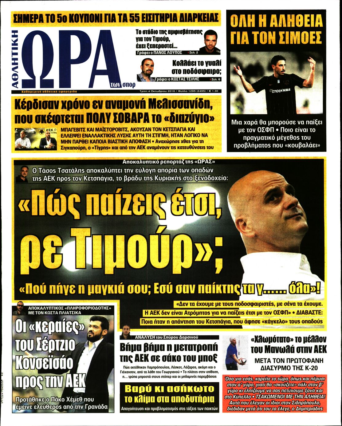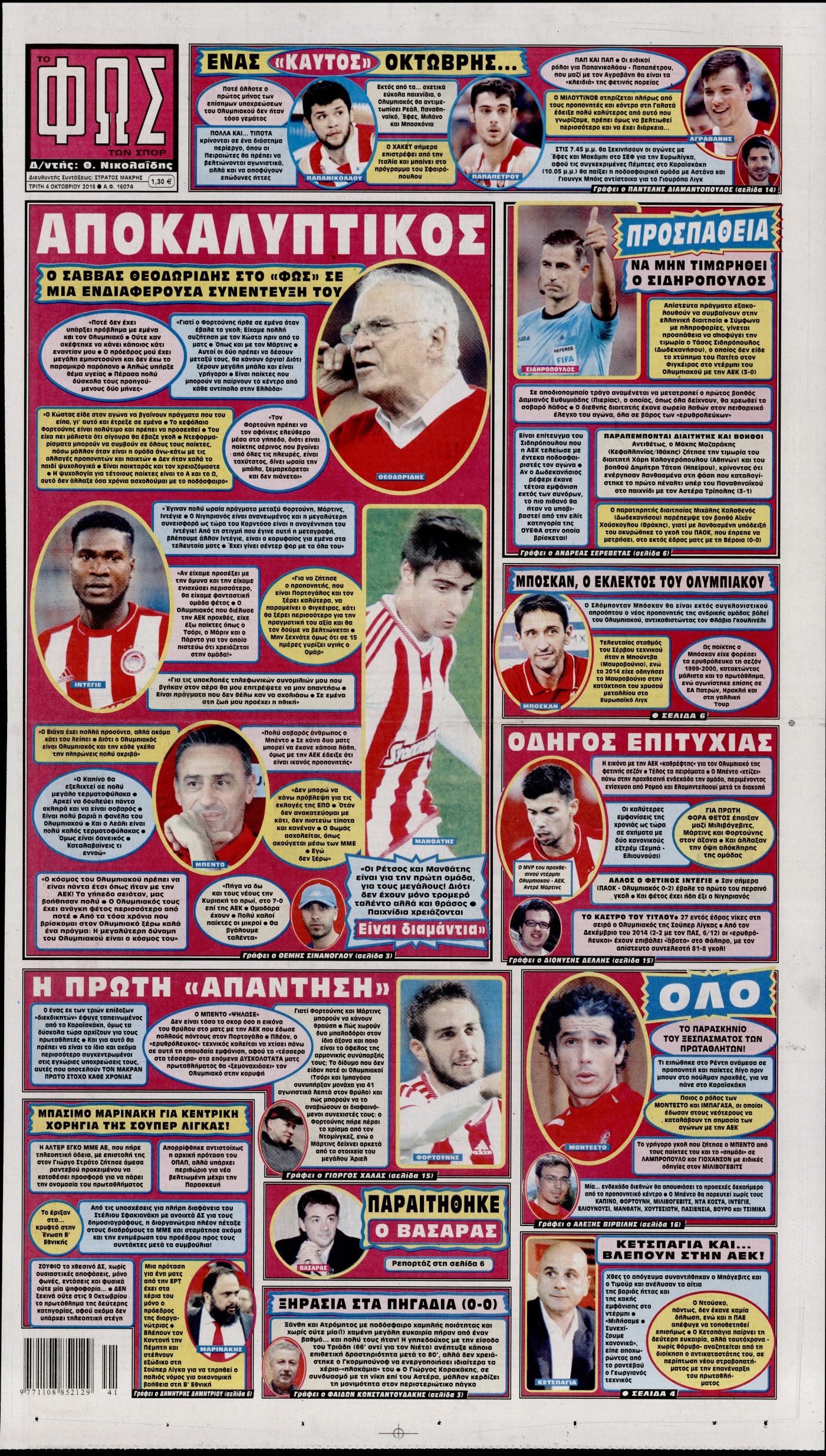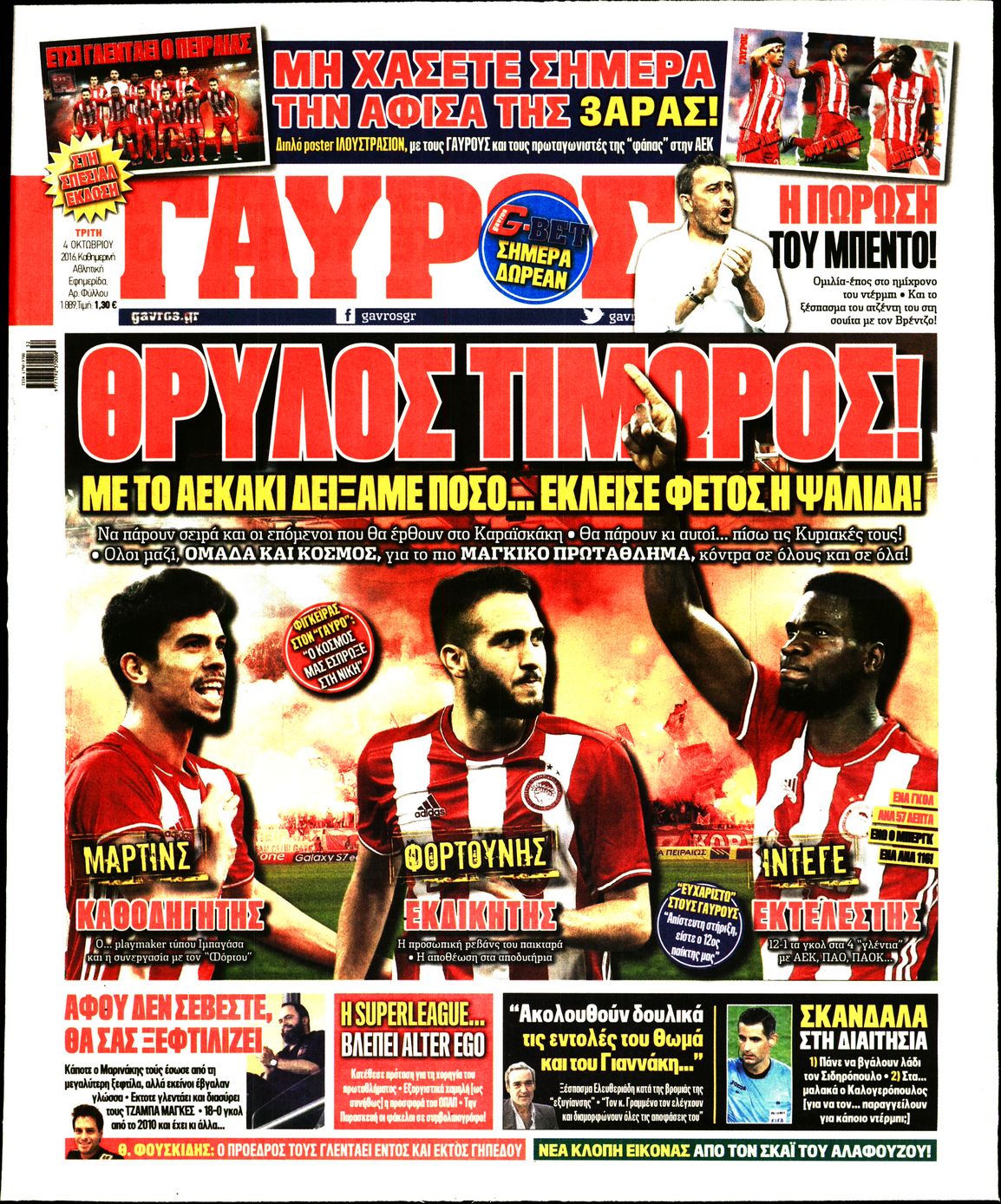 Οι αθλητικές εφημερίδες 4/10/2016 Enikos Newsroom 07:24, Τρίτη 04 Οκτωβρίου 2016 Media Διαβάστε τα σημερινά πρωτοσέλιδα των αθλητικών εφημερίδων. Μοιράσου το: σχολίασε κι εσύ (0 σχόλια) Ακολουθήστε το enikos.gr στο Google News και μάθετε πρώτοι όλες τις ειδήσεις Δείτε όλες τις τελευταίες ειδήσεις από την Ελλάδα και τον Κόσμο στο enikos.gr Ειδήσεις Ροή Ειδήσεων 1 ώρα πριν Αυξάνουν την πίεση προς την κυβέρνηση οι αγρότες: Κλείνουν παρακαμπτήριους και ανοίγουν διόδια – Τι θα γίνει τις γιορτές 17 λεπτά πριν ΟΠΕΚΕΠΕ: Προφυλακιστέος ο φερόμενος αρχηγός και ο λογιστής της εγκληματικής οργάνωσης 1 ώρα πριν Φοινικούντα: Το Σάββατο απολογείται ο 30χρονος γιος γνωστού επιχειρηματία της Πλάκας που παραδόθηκε – Όσα είπε στους αστυνομικούς και ο ρόλος του στο έγκλημα 58 λεπτά πριν Μπορεί ο Μαδούρο να αντέξει τον αποκλεισμό του Τραμπ; Τι θα χρειαστεί η Ουάσινγκτον για να τον ανατρέψει 2 ώρες πριν Πρίγκιπας Ουίλιαμ – Κέιτ: Η νέα οικογενειακή φωτογραφία για τις Χριστουγεννιάτικες κάρτες του 2025 2 ώρες πριν Ύπνος: Η απλή βραδινή ρουτίνα για να προστατεύσετε τα μαλλιά σας από το κρύο κατά τη διάρκεια του χειμώνα 3 ώρες πριν Manifesting: Πώς να συναντήσετε τον σύντροφο της ζωής σας, ανάλογα με τον μήνα γέννησής σας 2 ημέρες πριν 20 χρόνια τα Χριστούγεννα ξεκινούν στα Public με μεγάλη ποικιλία σε δώρα! 1 ώρα πριν Αρχαιολόγοι ανακάλυψαν ρωμαϊκά τεχνουργήματα από μια πόλη που δεν υπήρξε ποτέ – Τα τρία εντυπωσιακά κτίρια και ο αμφορέας με τις… σαρδέλες 17 λεπτά πριν ΟΠΕΚΕΠΕ: Προφυλακιστέος ο φερόμενος αρχηγός και ο λογιστής της εγκληματικής οργάνωσης 27 λεπτά πριν Αθηνά Μαξίμου: Η τρυφερή ανάρτηση για τα γενέθλια του Αιμίλιου Χειλάκη – «Είναι η εκλεκτική συγγένειά μου, η επιλογή και η ευθύνη μου» 43 λεπτά πριν Παναθηναϊκός – Χάποελ Τελ Αβίβ 93-82: Με… φόρα από την Κωνσταντινούπολη 58 λεπτά πριν Μπορεί ο Μαδούρο να αντέξει τον αποκλεισμό του Τραμπ; Τι θα χρειαστεί η Ουάσινγκτον για να τον ανατρέψει 1 ώρα πριν Αρχαιολόγοι ανακάλυψαν ρωμαϊκά τεχνουργήματα από μια πόλη που δεν υπήρξε ποτέ – Τα τρία εντυπωσιακά κτίρια και ο αμφορέας με τις… σαρδέλες ENIKOS NETWORK Σε περίοδο αυξημένης δραστηριότητας η γρίπη στην Ελλάδα-Μέτρα προστασίας από τον ΕΟΔΥ Σκέφτεστε συνέχεια συζητήσεις που έχετε κάνει; Τι σημαίνει αυτό, σύμφωνα με ειδικό Στεγαστικό: Τι λέει η ΠΟΜΙΔΑ για τα νέα μέτρα που ανακοίνωσε ο Κυριάκος Μητσοτάκης Λαγκάρντ: Αισιόδοξη για την ανάπτυξη της Ευρωζώνης, αβέβαιη για τον πληθωρισμό Χαρτογραφώντας το «σημείο χωρίς επιστροφή»: Για πρώτη φορά αποκαλύπτεται με λεπτομέρεια το ακανθώδες όριο της ατμόσφαιρας τ... Η Google καταργεί τη λειτουργία «dark web report» – Πώς θα μπορούν οι χρήστες να διαγράφουν τα δεδομένα τους περισσότερα 17:45 , Πέμπτη 18 Δεκεμβρίου 2025 ROUK ZOUK: Εορταστικό επεισόδιο με καλεσμένους τους πρωταγωνιστές του «Γιατί ρε πατέρα» Το Σάββατο 20 Δεκεμβρίου στις 21:00, η Ζέτα Μακρυπούλια υποδέχεται εκλεκτούς ηθοποιούς που όλο... 17:20 , Πέμπτη 18 Δεκεμβρίου 2025 Άγιος έρωτας: Η Χριστίνα εξομολογείται στον πατέρα Νικόλαο, απόψε στις 21:00 στον Alpha Η Νότα αποφασίζει να εκδικηθεί τον Πέτρο και τον Στέφανο, για χάρη του Λούη, όμως τα πράγματα ... 16:50 , Πέμπτη 18 Δεκεμβρίου 2025 Να μ’ αγαπάς: Ζωή και Φωτεινή συμφιλιώνονται ως μάνα με κόρη, απόψε στις 20:00 Η ταυτότητα του Άγγελου αποκαλύπτεται στο νέο επεισόδιο της σειράς “Να μ’ αγαπάς... 15:52 , Πέμπτη 18 Δεκεμβρίου 2025 Το Σπίτι Δίπλα Στο Ποτάμι: Το καθηλωτικό τελευταίο επεισόδιο για το 2025 απόψε στ
