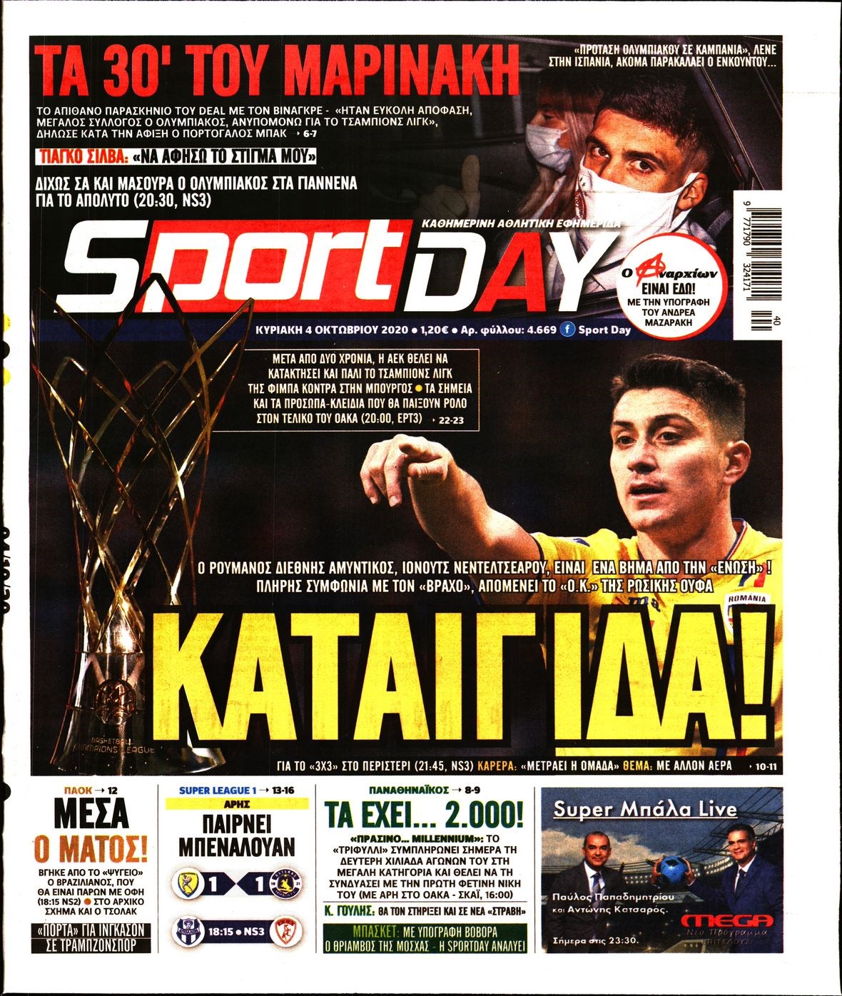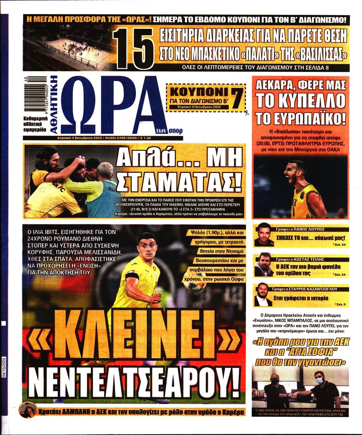 Οι αθλητικές εφημερίδες 4/10/2020 Διονύσης Νίκκας 07:45, Κυριακή 04 Οκτωβρίου 2020 Media Διαβάστε τα πρωτοσέλιδα των αθλητικών εφημερίδων… ΑΘΛΗΤΙΚΕΣ ΕΦΗΜΕΡΙΔΕΣ Μοιράσου το: σχολίασε κι εσύ (0 σχόλια) Ακολουθήστε το enikos.gr στο Google News και μάθετε πρώτοι όλες τις ειδήσεις Δείτε όλες τις τελευταίες ειδήσεις από την Ελλάδα και τον Κόσμο στο enikos.gr Ειδήσεις Ροή Ειδήσεων 4 ώρες πριν Μεσόγειος: Η διαδρομή του ρωσικού τάνκερ «Qendil» και η στοχευμένη επίθεση της Ουκρανίας με drone – Ο Πούτιν προειδοποίησε για αντίποινα 43 λεπτά πριν Αγρότες: Έκλεισαν για μία ώρα την παρακαμπτήρια της Ιόνιας Οδού στη θέση Χαλίκι 2 ώρες πριν Εμπλοκή και αερομαχίες με οπλισμένα τουρκικά F-16 στο Αιγαίο 2 ώρες πριν Πούτιν: «Ναι, είμαι ερωτευμένος» – Βίντεο από τη σπάνια προσωπική παραδοχή του 47 λεπτά πριν Ανδρέας Λυκουρέντζος: Υπέβαλε την παραίτησή του ο πρόεδρος του ΕΛΓΑ, αλλά δεν έγινε δεκτή – Όλο το παρασκήνιο 57 λεπτά πριν Αριθμολογία: Οι άνθρωποι που έχουν γεννηθεί αυτές τις 4 ημερομηνίες, συχνά παρεξηγούνται – «Η καλοσύνη τους κρύβει τεράστια δύναμη» 3 ώρες πριν Μήπως έχετε χάσει τον εαυτό σας στη σχέση σας; 7 «αθόρυβες» υποχωρήσεις που μάλλον κάνατε, χωρίς να το συνειδητοποιήσετε 2 ώρες πριν Ξεχάστε το καθάρισμα το Σαββατοκύριακο: Ο «κανόνας των 20 λεπτών» που θα σας λύσει τα χέρια 5 ώρες πριν Κουίζ για την παλιά Αθήνα: Αναγνωρίζετε την περιοχή; Έχετε περάσει 100% από εκεί 3 λεπτά πριν ΕΕ: «Κάποια στιγμή θα χρησιμοποιήσουμε τα ρωσικά περιουσιακά στοιχεία» δήλωσε ο πρόεδρος του ΕΛΚ 7 λεπτά πριν Conference League: Καλύτερη επίθεση η ΑΕΚ στη διοργάνωση και 2η σε προσπάθειες στην εστία – Ξεχωρίζουν Πινέδα, Ελίασον και Ρότα 8 λεπτά πριν Έγκυος η Άννα Κορακάκη: «Η οικογένειά μας μεγαλώνει…» – Η αποκάλυψη για το φύλο του μωρού 16 λεπτά πριν Τραγωδία στο Βελεστίνο: Πέθανε ο αντιδήμαρχος Γιάννης Παπαϊωάννου 20 λεπτά πριν Ολυμπιακός – Βιλερμπάν: Μάτωσε στο πρόσωπο ο Παπανικολάου έπειτα από αγκωνιά του Βοτιέ – ΦΩΤΟ ENIKOS NETWORK Το ΕΚΑΒ τιμήθηκε από την Ακαδημία Αθηνών για τα 40 χρόνια προσφοράς του Έχετε πραγματικά μεγάλη καρδιά; 10 χαρακτηριστικά όσων έχουν καλοσύνη Έρχονται νέες προσλήψεις σε Δήμο – Όλες οι λεπτομέρειες Επίδομα παιδιού: Πότε ανοίγει ξανά η πλατφόρμα για τις αιτήσεις Χαρτογραφώντας το «σημείο χωρίς επιστροφή»: Για πρώτη φορά αποκαλύπτεται με λεπτομέρεια το ακανθώδες όριο της ατμόσφαιρας τ... Η Google καταργεί τη λειτουργία «dark web report» – Πώς θα μπορούν οι χρήστες να διαγράφουν τα δεδομένα τους περισσότερα 20:37 , Παρασκευή 19 Δεκεμβρίου 2025 Don’t Forget The Lyrics: Η Έλλη Κοκκίνου υποδέχεται 4 παίκτες που θα κάνουν τα πάντα για να μη χάσουν ούτε… μισή λέξη από τους στίχους Το «Don’t Forget The Lyrics» επιστρέφει απόψε, Παρασκευή 19 Δεκεμβρίου, στις 21:00 με νέο επει... 19:31 , Παρασκευή 19 Δεκεμβρίου 2025 GNTM: Απόψε ο μεγάλος τελικός για τους 4 φιναλίστ Έπειτα από μήνες γεμάτους μόδα, δημιουργία και έντονες αναμετρήσεις, το GNTM 2025 κορυφώνεται,... 18:11 , Παρασκευή 19 Δεκεμβρίου 2025 Το σόι σου: Ο Άρης έρχεται στην Ελλάδα για τις γιορτές των Χριστουγέννων – Τι θα δούμε στο αποψινό εορταστικό επεισόδιο Ένα απολαυστικό, εορταστικό επεισόδιο της σειράς “Το σόι σου”, γεμάτο ευτράπελα αλ... 15:15 , Παρασκευή 19 Δεκεμβρίου 2025 Την Κυριακή με τη Realnews: Ό,τι και αν αγοράσεις, σκανάρεις και κερδίζεις! Την Κυριακή με τη Realnews: Ό,τι και αν αγοράσεις, σκανάρεις και κερδίζεις! Με το PADU app, το... ΤΕΛΕΥΤΑΙΕΣ ΕΙΔΗΣΕΙΣ 3 λεπτά πριν ΕΕ: «Κάποια στιγμή θα χρησιμοποιήσουμε τα ρ