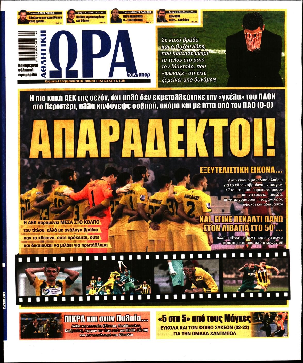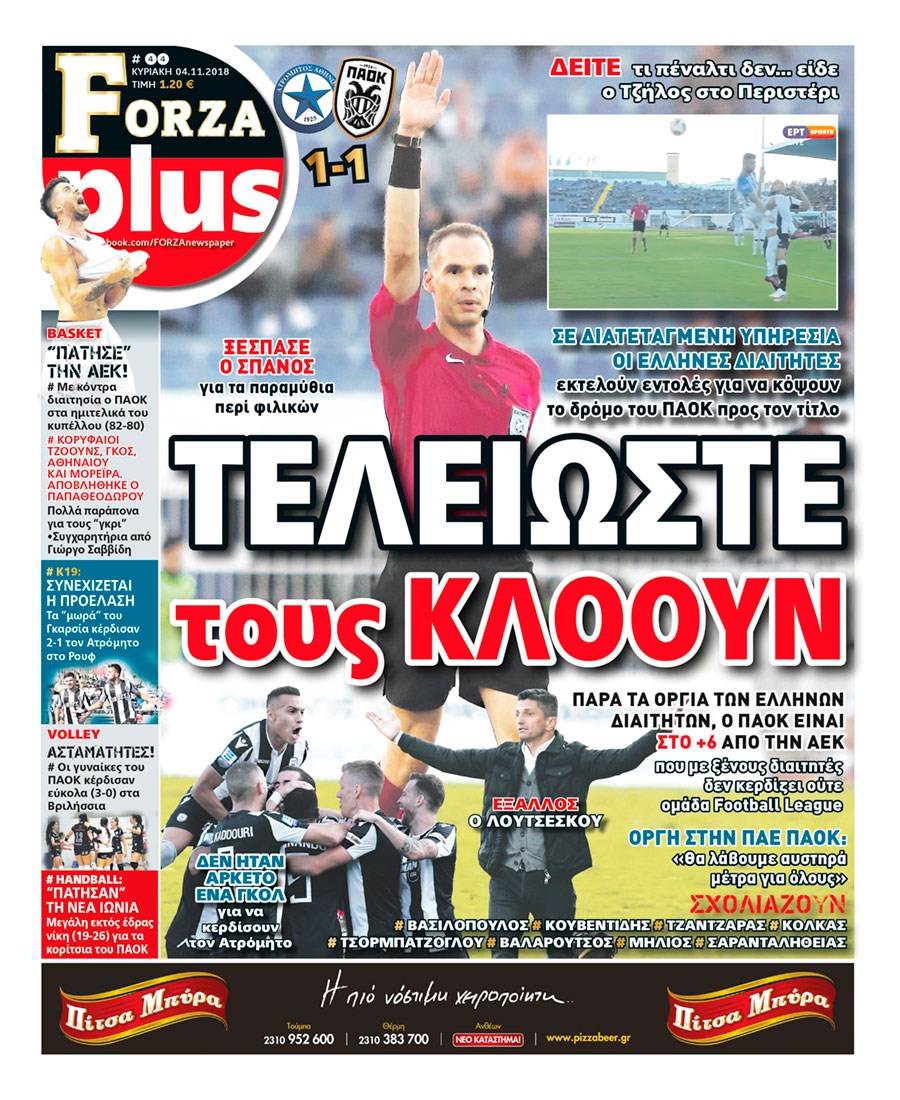 Οι αθλητικές εφημερίδες 4/11/18 Enikos Newsroom 06:42, Κυριακή 04 Νοεμβρίου 2018 Media Διαβάστε τα πρωτοσέλιδα: ΑΘΛΗΤΙΚΕΣ ΕΦΗΜΕΡΙΔΕΣ ΠΡΩΤΟΣΕΛΙΔΑ Μοιράσου το: σχολίασε κι εσύ (0 σχόλια) Ακολουθήστε το enikos.gr στο Google News και μάθετε πρώτοι όλες τις ειδήσεις Δείτε όλες τις τελευταίες ειδήσεις από την Ελλάδα και τον Κόσμο στο enikos.gr Ειδήσεις Ροή Ειδήσεων 4 ώρες πριν Υπόθεση Έπσταϊν: Το Υπουργείο Δικαιοσύνης δημοσιοποίησε μια σειρά από εξαιρετικά επεξεργασμένα αρχεία – «Λείπουν τα πιο σημαντικά έγγραφα», λένε οι Δημοκρατικοί 45 λεπτά πριν Γιορτές με μπλόκα για τους αγρότες: Ανοίγουν διόδια και μοιράζουν προϊόντα στους ταξιδιώτες 1 ώρα πριν Εξαφάνιση 33χρονου γιατρού στην Κρήτη: «Άναψα τα φώτα, τρόμαξε και άρχισε να τρέχει στα χωράφια» – Η τελευταία διαδρομή και η μαρτυρία «κλειδί» 3 ώρες πριν Ο «χάρτης» με τις αυξήσεις και τις φοροελαφρύνσεις του 2026 – Ποιοι και πόσα κερδίζουν 1 ώρα πριν Τα αρχεία του Έπσταϊν αποκαλύπτουν φωτογραφία του έκπτωτου πρίγκιπα Άντριου – Είναι ξαπλωμένος στην αγκαλιά 5 γυναικών 1 ώρα πριν Μία νέα «χρυσή» περίοδος αρχίζει για 3 ζώδια από σήμερα – «Μία αναπάντεχη ευκαιρία οδηγεί στην επιτυχία» 5 ώρες πριν Αυγά: Πόσα μπορείτε να τρώτε την ημέρα με ασφάλεια για μέγιστη πρόσληψη πρωτεΐνης 3 ώρες πριν Αρχαιολόγοι ανακάλυψαν σε χωράφι απεικόνιση 600 ετών ενός Αγίου – Τα στοιχεία που δείχνουν ότι μαρτύρησε 2 ώρες πριν Αγχώνεται για το χριστουγεννιάτικο δώρο που πήρε στην πλούσια σύντροφό του – «Φοβάμαι πως θα το βρει φθηνιάρικο, φοράει βραχιόλια Cartier» 2 λεπτά πριν Τα Labubu «μετακομίζουν» στο Χόλιγουντ: Η Sony Pictures ετοιμάζει live-action ταινία με τον σκηνοθέτη του «Wonka» 10 λεπτά πριν Νέες ταυτότητες: Μεγάλη αναμονή για ραντεβού στην Αττική – Τέλος τα ταξίδια εκτός Ελλάδος από τον Αύγουστο για όσους δεν έχουν αλλάξει 18 λεπτά πριν Οι 7 φράσεις που δεν λένε ποτέ οι συναισθηματικά έξυπνοι άνθρωποι κατά τη διάρκεια ενός καβγά 22 λεπτά πριν Τηλεθέαση (19/12): Ανατροπές και πρωτιές στην πρωινή ζώνη 29 λεπτά πριν Πώς η κλιματική αλλαγή επηρεάζει εγκύους και βρέφη – Οι επιπτώσεις των υψηλών θερμοκρασιών ENIKOS NETWORK Είστε μόνιμα απρόσεκτοι; 3 σημάδια που δείχνουν ότι μπορεί να είναι σύμπτωμα πάθησης Πόσα κιλά παίρνουμε πραγματικά τα Χριστούγεννα, σύμφωνα με την επιστήμη – Πώς να το αποτρέψουμε; Επίδομα παιδιού: Τι αλλάζει από το 2026 – Το όφελος από τις φορολογικές ελαφρύνσεις Mega χριστουγεννιάτικη φορολοταρία: «Κλείδωσε» η ημερομηνία για την κλήρωση – Ερωτήσεις και απαντήσεις Χαρτογραφώντας το «σημείο χωρίς επιστροφή»: Για πρώτη φορά αποκαλύπτεται με λεπτομέρεια το ακανθώδες όριο της ατμόσφαιρας τ... Η Google καταργεί τη λειτουργία «dark web report» – Πώς θα μπορούν οι χρήστες να διαγράφουν τα δεδομένα τους περισσότερα 09:30 , Σάββατο 20 Δεκεμβρίου 2025 «Porto Leone: Στη γειτονιά με τα κόκκινα φανάρια» – Ο Χρόνης αποκαλύπτει στην Αλεξάνδρα το μυστικό για το παιδί της Λένας Η μεγάλη δραματική σειρά του Apha «Porto Leone: Στη γειτονιά με τα κόκκινα φανάρια» μας μεταφέ... 08:14 , Σάββατο 20 Δεκεμβρίου 2025 Τρομεροί γονείς: Η Μαρία Καβογιάννη εισβάλλει στο σπίτι της οικογένειας Στεφανίδη Όσα θα δούμε στο νέο διπλό επεισόδιο της σειράς «Τρομεροί γονείς», σήμερα Σάββατο 20 Δεκεμβρίο... 05:48 , Σάββατο 20 Δεκεμβρίου 2025 Οι οικονομικές εφημερίδες 20/12/2025 Διαβάστε τα πρωτοσέλιδα από τις οικονομικές εφημερίδες, σήμερα 20/12/2025. 05:43 , Σάββατο 20 Δεκεμβρίου 2025 Οι αθλητικές εφημερίδες 20/12/2025 Διαβάστε τα πρωτοσέλιδα από τις αθλητι
