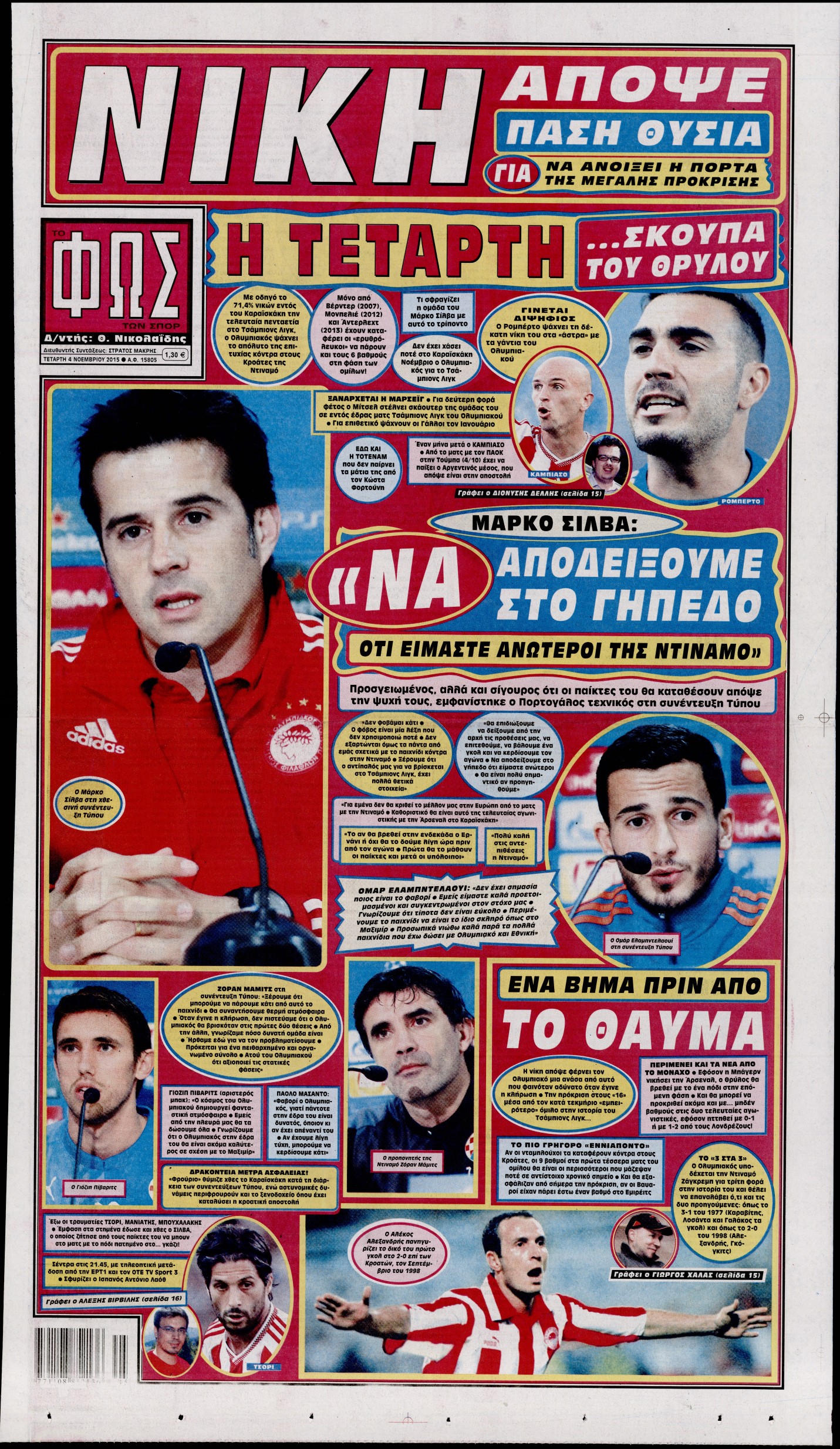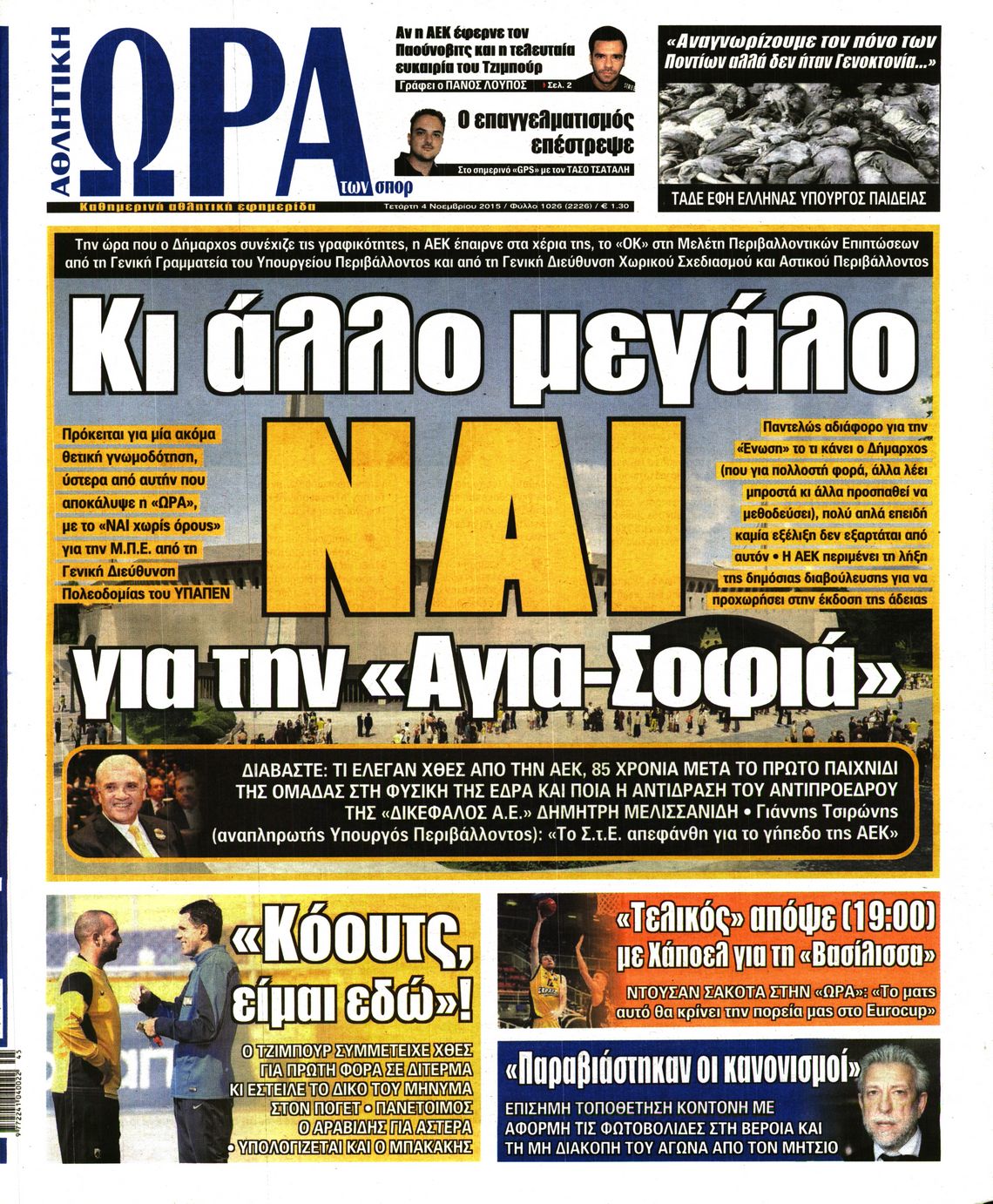 Οι αθλητικές εφημερίδες 4/11/2015 Enikos Newsroom 06:18, Τετάρτη 04 Νοεμβρίου 2015 Media Διαβάστε τα σημερινά πρωτοσέλιδα των αθλητικών εφημερίδων: ΑΘΛΗΤΙΚΕΣ ΕΦΗΜΕΙΔΕΣ ΠΡΩΤΟΣΕΛΙΔΑ Μοιράσου το: σχολίασε κι εσύ (0 σχόλια) Ακολουθήστε το enikos.gr στο Google News και μάθετε πρώτοι όλες τις ειδήσεις Δείτε όλες τις τελευταίες ειδήσεις από την Ελλάδα και τον Κόσμο στο enikos.gr Ειδήσεις Ροή Ειδήσεων 4 ώρες πριν Ντέλσι Ροντρίγκες: Από πιστή του Μαδούρο, μεταβατική λύση της Ουάσινγκτον – Γιατί βρίσκεται σε «τεντωμένο σχοινί» και τι περιμένει ο Τραμπ από εκείνη 9 ώρες πριν Γιώργος Παπαδάκης: Η τελευταία συνέντευξη στο «Ενώπιος Ενωπίω» και τον Νίκο Χατζηνικολάου – Τι είχε πει για την πορεία του στην τηλεόραση, το «Καλημέρα Ελλάδα» και την οικογένειά του 4 ώρες πριν Βενεζουέλα-BBC: Η ενέργεια του Τραμπ θα μπορούσε να δημιουργήσει προηγούμενο για τις αυταρχικές δυνάμεις σε όλο τον κόσμο 5 ώρες πριν ΕΕ: Ζητεί σεβασμό στη βούληση του λαού της Βενεζουέλας – Yπέγραψαν 25 χώρες και η Ελλάδα 5 ώρες πριν Ελβετία: Νεκρή η 15χρονη Αλίκη Καλλέργη – Ενημερώθηκαν επίσημα οι ελληνικές Αρχές 6 ώρες πριν Ύπνος: Τι συμβαίνει στο σώμα και τον εγκέφαλό σας όταν κάνετε διατάσεις πριν κοιμηθείτε 7 ώρες πριν Πόσο σπάνια είναι η μέρα των γενεθλίων σας; Η λίστα με τις πιο κοινές και τις πιο σπάνιες ημερομηνίες γέννησης – Τι σημαίνουν 9 ώρες πριν Σχέσεις: 8 φράσεις που χρησιμοποιούν οι άνθρωποι όταν δεν είναι πλέον ερωτευμένοι, αλλά δεν το έχουν συνειδητοποιήσει ακόμα 8 ώρες πριν Κουζίνα: Το κοινό εργαλείο που κάνει τον καθαρισμό του χώρου μεταξύ φούρνου και πάγκου παιχνιδάκι 11 λεπτά πριν Κάρμεν Ρουγγέρη: «Το καταδικάζω εντελώς αυτό για τα παιδιά» 27 λεπτά πριν Ντμίτρι Μεντβέντεφ: «Παράνομος αλλά συνεπής ο Τραμπ» 41 λεπτά πριν Λίβανος: Δυο νεκροί σε βομβαρδισμό του Ισραήλ 57 λεπτά πριν Πτώση των τιμών πετρελαίου μετά την επίθεση των ΗΠΑ στη Βενεζουέλα 1 ώρα πριν Γιώργος Παπαδάκης: Σύσσωμη η ελληνική τηλεόραση αποχαιρέτησε τον «βασιλιά» της πρωινής ενημέρωσης ENIKOS NETWORK Ένα νέο κεφάλαιο για την παγκόσμια υγεία ανοίγει το 2026 Έφυγε από τη ζωή ο δημοσιογράφος Γιώργος Παπαδάκης myPROPERTY: Νέες κατηγορίες δηλώσεων στην πλατφόρμα από αύριο – Ποιες αφορά Καιρός: Νεφώσεις και τοπικές βροχές στο μεγαλύτερο μέρος της χώρας – Σκόνη από την Σαχάρα στα δυτικά και νότια Ο Google Assistant θα παραμείνει λίγο περισσότερο για ορισμένους χρήστες Android Τεστ προσωπικότητας: Το βάζο που θα επιλέξετε αποκαλύπτει πώς λύνετε προβλήματα στη ζωή σας περισσότερα 02:25 , Δευτέρα 05 Ιανουαρίου 2026 Γιώργος Παπαδάκης: Σύσσωμη η ελληνική τηλεόραση αποχαιρέτησε τον «βασιλιά» της πρωινής ενημέρωσης Ο θάνατος του Γιώργου Παπαδάκη βύθισε σε βαθιά θλίψη τον χώρο της ελληνικής τηλεόρασης και της... 22:32 , Κυριακή 04 Ιανουαρίου 2026 Θοδωρής Κυριακού: Αποχαιρετώ τον Γιώργο Παπαδάκη με σεβασμό και ειλικρινή ευγνωμοσύνη «Ο Γιώργος Παπαδάκης υπήρξε ανεκτίμητος συνεργάτης, με ήθος, συνέπεια και βαθιά αγάπη για τη δ... 21:40 , Κυριακή 04 Ιανουαρίου 2026 Ο ΑΝΤ1 αποχαιρετά τον Γιώργο Παπαδάκη – «Η απώλειά του αφήνει δυσαναπλήρωτο κενό» Με βαθιά θλίψη η οικογένεια του ΑΝΤ1 αποχαιρετά το αγαπημένο και ιστορικό της μέλος, Γιώργο Πα... 19:57 , Κυριακή 04 Ιανουαρίου 2026 Γιώργος Παπαδάκης: «Σίγησε» η ιστορική πρώτη καλημέρα της πρωινής ενημέρωσης – Η πορεία του και οι σταθμοί της καριέρας του Ο Γιώργος Παπαδάκης έγραψε ιστορία στην ελληνική τηλεόραση παρουσιάζοντας επί 34 χρόνια την εκ... ΤΕΛΕΥ