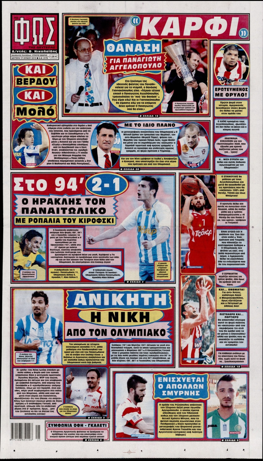 Οι αθλητικές εφημερίδες Enikos Newsroom 08:29, Δευτέρα 17 Ιουνίου 2013 Media Οι αθλητικές εφημερίδες Διαβάστε τα πρωτοσέλιδα των αθλητικών εφημερίδων: ΑΘΛΗΤΙΚΕΣ ΕΦΗΜΕΡΙΔΕΣ ΕΦΗΜΕΡΙΔΕΣ ΠΡΩΤΟΣΕΛΙΔΑ Μοιράσου το: σχολίασε κι εσύ (0 σχόλια) Ακολουθήστε το enikos.gr στο Google News και μάθετε πρώτοι όλες τις ειδήσεις Δείτε όλες τις τελευταίες ειδήσεις από την Ελλάδα και τον Κόσμο στο enikos.gr Ειδήσεις Ροή Ειδήσεων 3 ώρες πριν Ακίλα Σάλεχ: «Άκυρο» το τουρκολιβυκό μνημόνιο λέει ο πρόεδρος της λιβυκής Βουλής – Ανοίγει ο διάλογος με Ελλάδα, Αίγυπτο και Τουρκία 7 ώρες πριν Αγρότες: Την Τρίτη η απόφαση για διάλογο ή κλιμάκωση των κινητοποιήσεών τους – Πώς χαρακτηρίζουν τις ανακοινώσεις Τσιάρα και οι επόμενες κινήσεις 7 ώρες πριν Τραμπ για Ουκρανία: «Είμαστε πιο κοντά σε συμφωνία από ποτέ» – «Πολυεθνική δύναμη» προτείνουν οι Ευρωπαίοι 7 ώρες πριν Κυψέλη: Η 16χρονη που μαχαίρωσε την 14χρονη είχε συλληφθεί 3 φορές στο παρελθόν – Έβριζε καθηγητές, έβαζε φωτιές σε κάδους και εκβίαζε συμμαθητές της 6 ώρες πριν Τρομοκρατική επίθεση στο Σίδνεϊ: Θλίψη για τα 15 θύματα – Οργή στην εβραϊκή κοινότητα που προειδοποιούσε επί δύο χρόνια 7 ώρες πριν Επιστήμονες ίσως έλυσαν το μυστήριο γύρω από τα Χόμπιτ – Νέα έρευνα αποκαλύπτει πώς εξαφανίστηκαν 8 ώρες πριν Ύπνος: Η αρχαία μορφή άσκησης που αποδεικνύεται αποτελεσματική στην αντιμετώπιση της αϋπνίας, σύμφωνα με μελέτη 9 ώρες πριν Αριθμολογία: Ο τυχερός σας αριθμός, ανάλογα με τον μήνα γέννησής σας 10 ώρες πριν Πώς να μην μαραίνονται γρήγορα τα κομμένα λουλούδια: Το λάθος στην τοποθέτηση του βάζου που πρέπει να αποφεύγετε 4 λεπτά πριν Οι αθλητικές εφημερίδες 16/12/2025 9 λεπτά πριν Οι πολιτικές εφημερίδες 16/12/2025 17 λεπτά πριν Τα ζώδια σήμερα, Τρίτη 16 Δεκεμβρίου: Ιχθύες, δεν χρειάζεται να έχετε όλες τις απαντήσεις 25 λεπτά πριν Εφημερεύοντα φαρμακεία σε Αθήνα και Θεσσαλονίκη (16/12) 31 λεπτά πριν Οκτώ νεκροί σε πλήγματα των ΗΠΑ κατά τριών σκαφών που φέρεται να μετέφεραν ναρκωτικά στον Ανατολικό Ειρηνικό ENIKOS NETWORK Πότε το χρόνιο ροχαλητό να αποτελέσει ένδειξη κινδύνου για την καρδιά; Τι λένε οι ειδικοί Μάριος Θεμιστοκλέους: Το ΕΣΥ ενισχύεται, εκσυγχρονίζεται, αλλάζει ΕΒΕΠ για αγροτικές κινητοποιήσεις: Κάθε επιπλέον εβδομάδα προσθέτει περίπου 200 εκατ. ευρώ ζημιά Τι προβλέπει το νομοσχέδιο του υπουργείου Εθνικής Άμυνας – Oι αλλαγές στους μισθούς Σύγχρονος Νοστράδαμος: Προειδοποιεί για «μεγάλο γεγονός» τους επόμενους μήνες που θα συγκλονίσει τη Βρετανία και τον κόσμο Τεστ παρατηρητικότητας: Μπορείτε να βρείτε τις 3 διαφορές στις εικόνες με έναν πιγκουίνο σε 14 δευτερόλεπτα περισσότερα 05:43 , Τρίτη 16 Δεκεμβρίου 2025 Οι αθλητικές εφημερίδες 16/12/2025 Διαβάστε τα πρωτοσέλιδα από τις αθλητικές εφημερίδες, σήμερα 16/12/2025. 05:38 , Τρίτη 16 Δεκεμβρίου 2025 Οι πολιτικές εφημερίδες 16/12/2025 Διαβάστε τα πρωτοσέλιδα από τις πολιτικές εφημερίδες, σήμερα 16/12/2025. 21:35 , Δευτέρα 15 Δεκεμβρίου 2025 Το Σπίτι Δίπλα Στο Ποτάμι: Η Ιουλία και ο Φωκάς μετακομίζουν στη Ρόδο – Δύο νέοι χαρακτήρες μπαίνουν στη σειρά Δύο νέοι, κομβικοί χαρακτήρες κάνουν την εμφάνισή τους αυτή την εβδομάδα στην αγαπημένη σειρά ... 19:46 , Δευτέρα 15 Δεκεμβρίου 2025 Άγιος έρωτας: Η Χριστίνα λέει την αλήθεια στον Αντρέα Ο Βασίλης δέχεται επίθεση από τους συμμαθητές του, η Αναστασία είναι συντετριμμένη με την απώλ... ΤΕΛΕΥΤΑΙΕΣ ΕΙΔΗΣΕΙΣ 4 λεπτά πριν Οι αθλητικές εφημερίδες 16/12/2025 9 λεπτά πριν Οι πολιτικές εφημερίδες 16/12/2025 17 λεπτά πριν